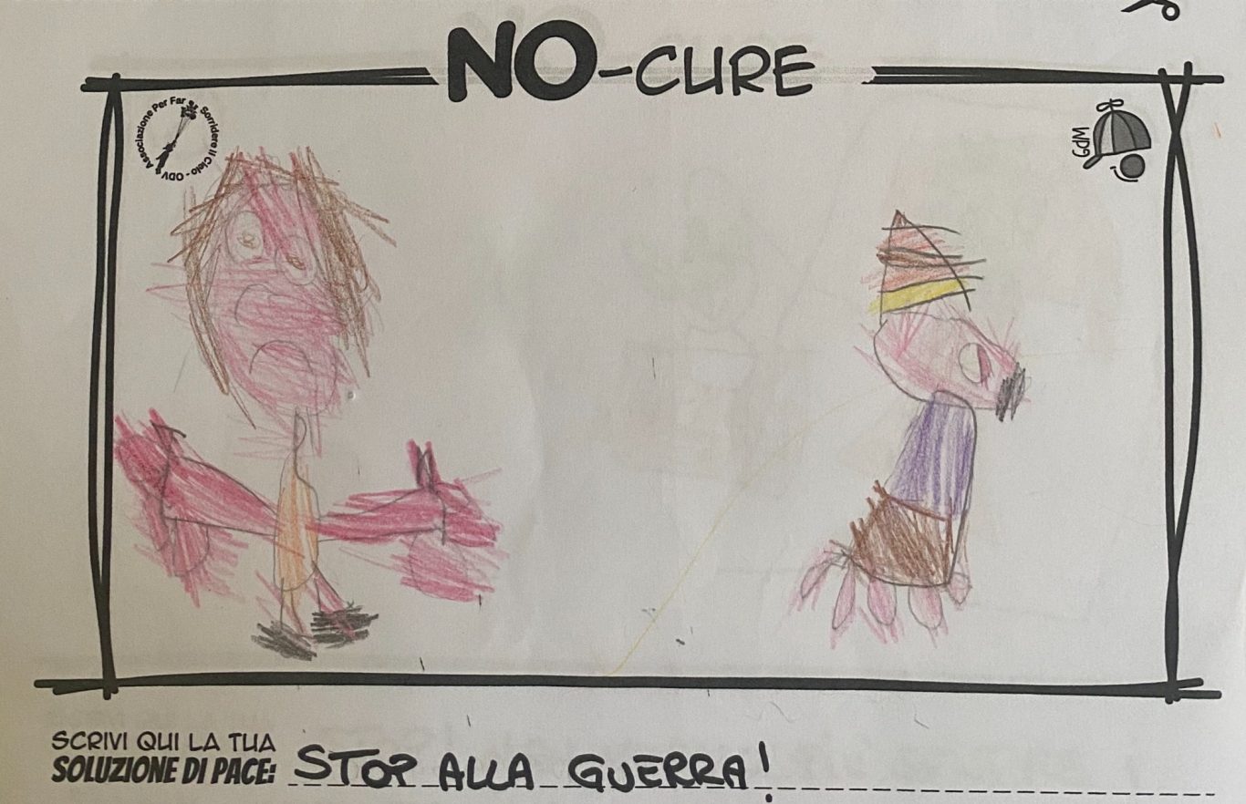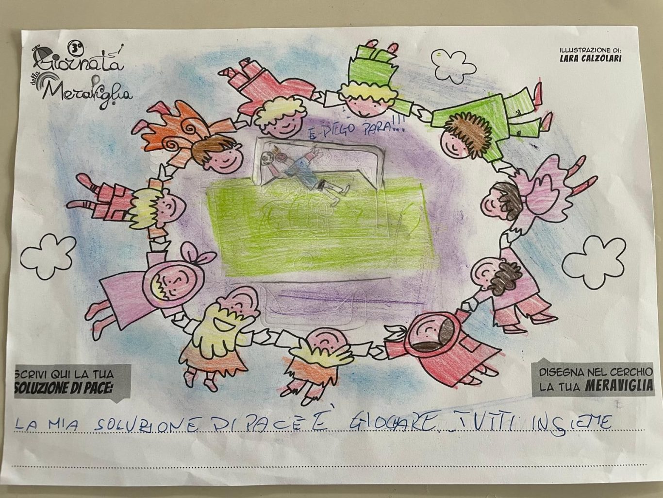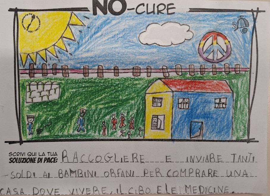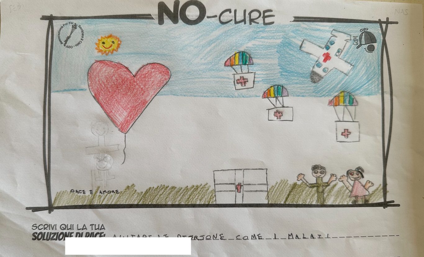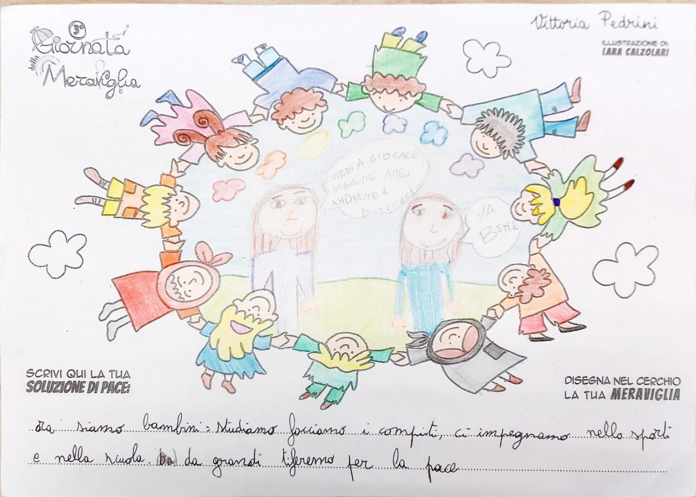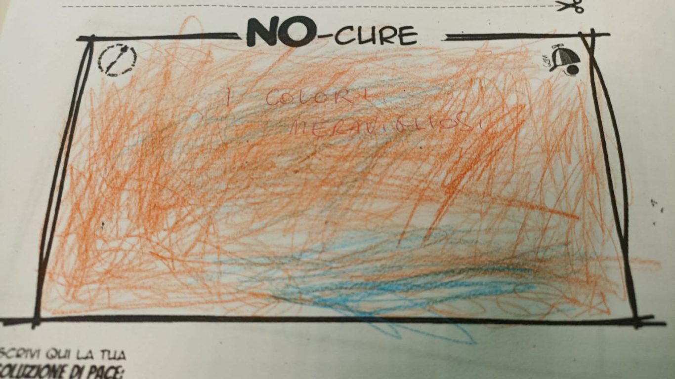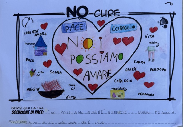 L’opera di sensibilizzazione si si esprime concretamente con la creazione di un DISEGNO DELLA MERAVIGLIA che andrà ad aiutare una delle 12 fatiche. Allo stesso modo chiederemo a tutti i partecipanti di andare a scrivere una “Soluzione di Pace” che possa aiutare anch’essa una delle 12 fatiche dei Bambini della guerra.