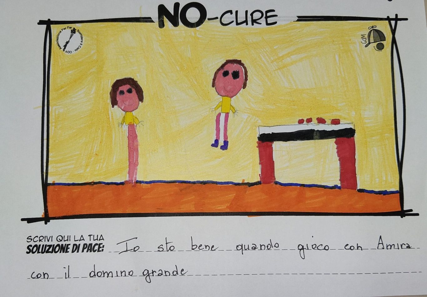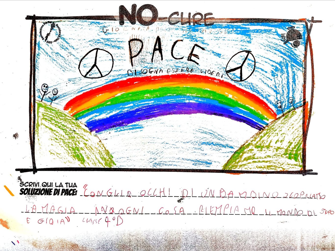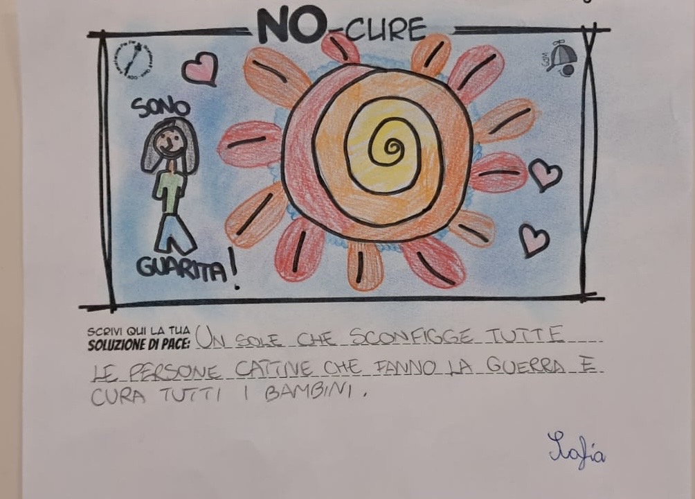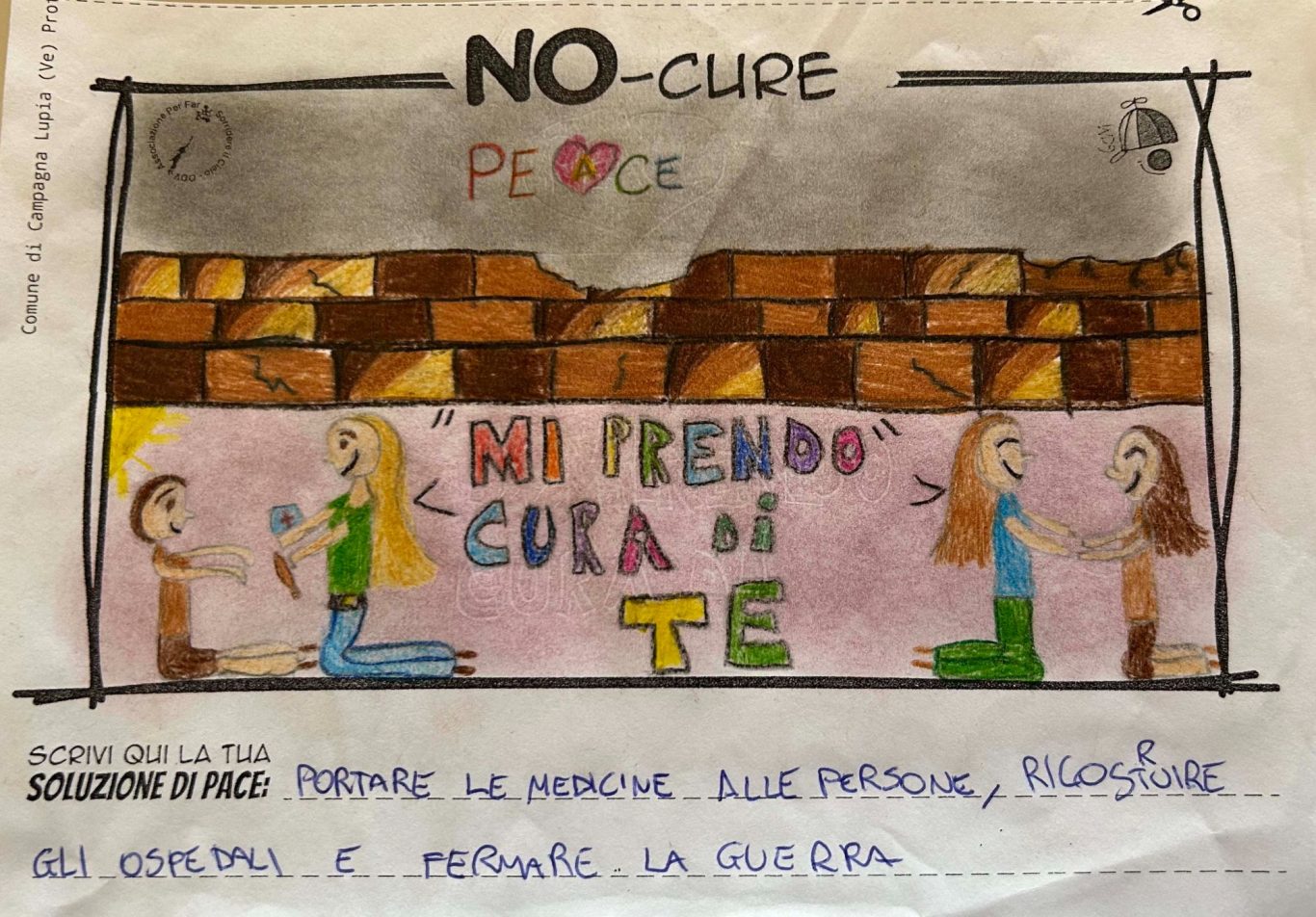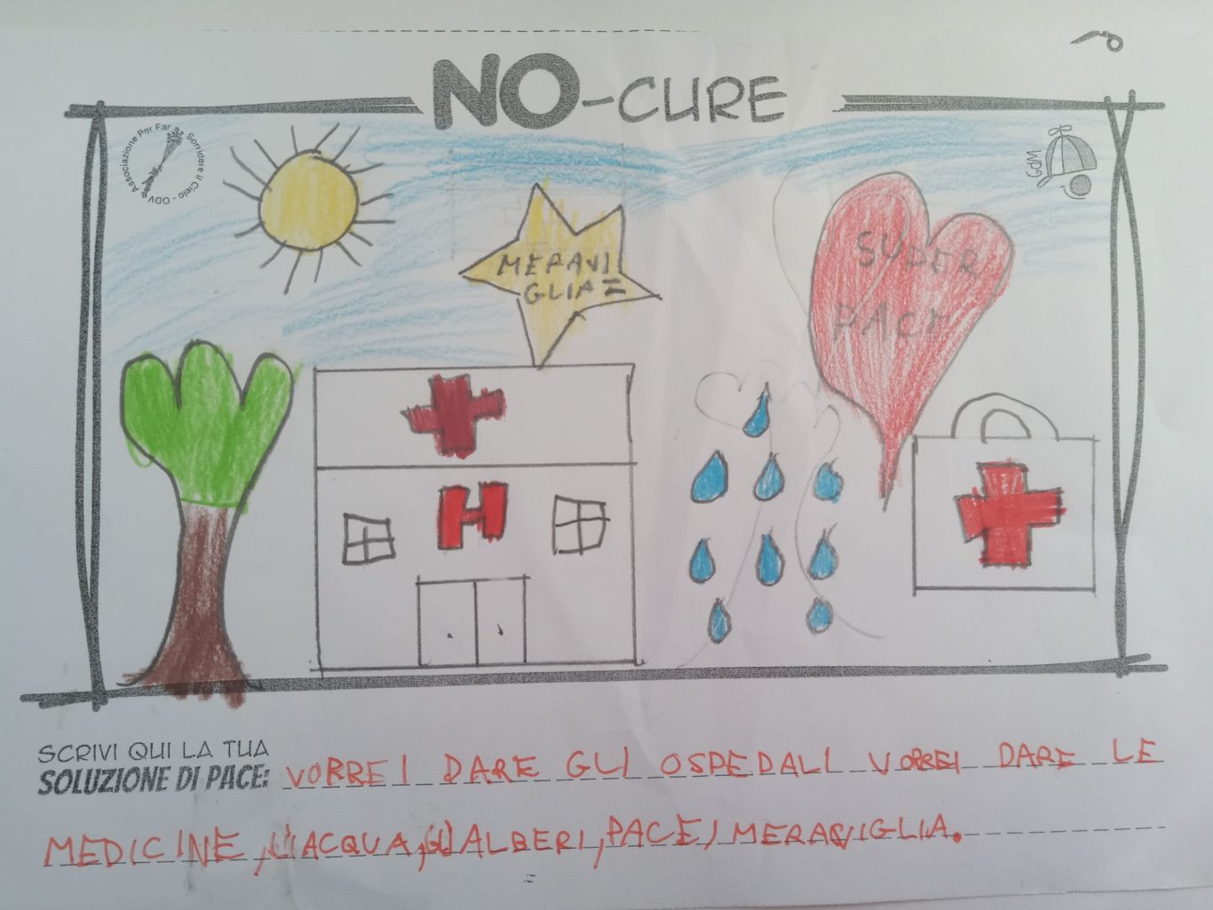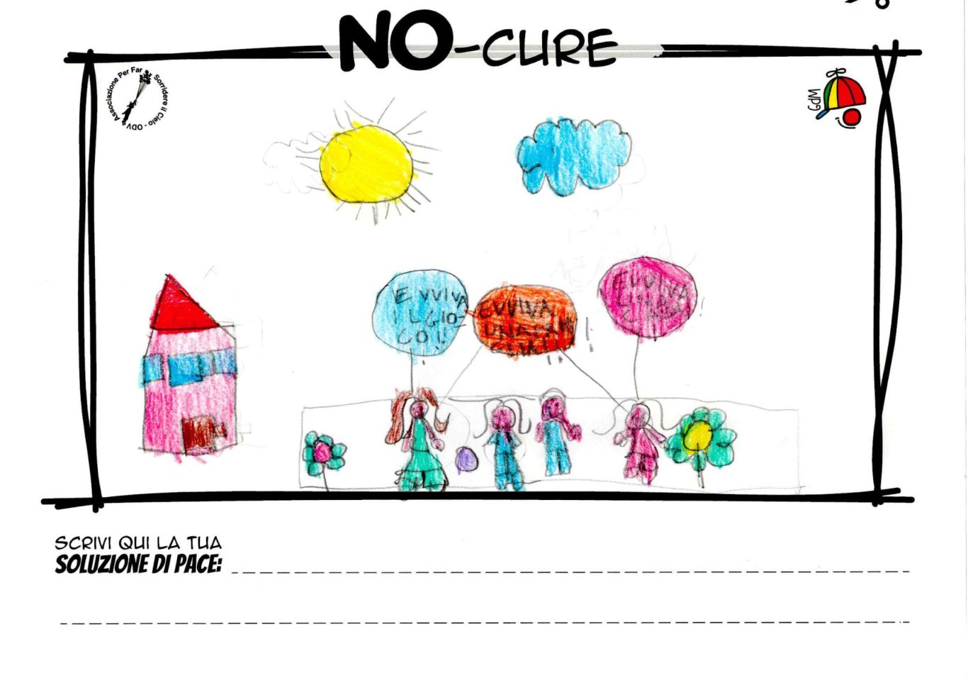 L’opera di sensibilizzazione si si esprime concretamente con la creazione di un DISEGNO DELLA MERAVIGLIA che andrà ad aiutare una delle 12 fatiche. Allo stesso modo chiederemo a tutti i partecipanti di andare a scrivere una “Soluzione di Pace” che possa aiutare anch’essa una delle 12 fatiche dei Bambini della guerra.
