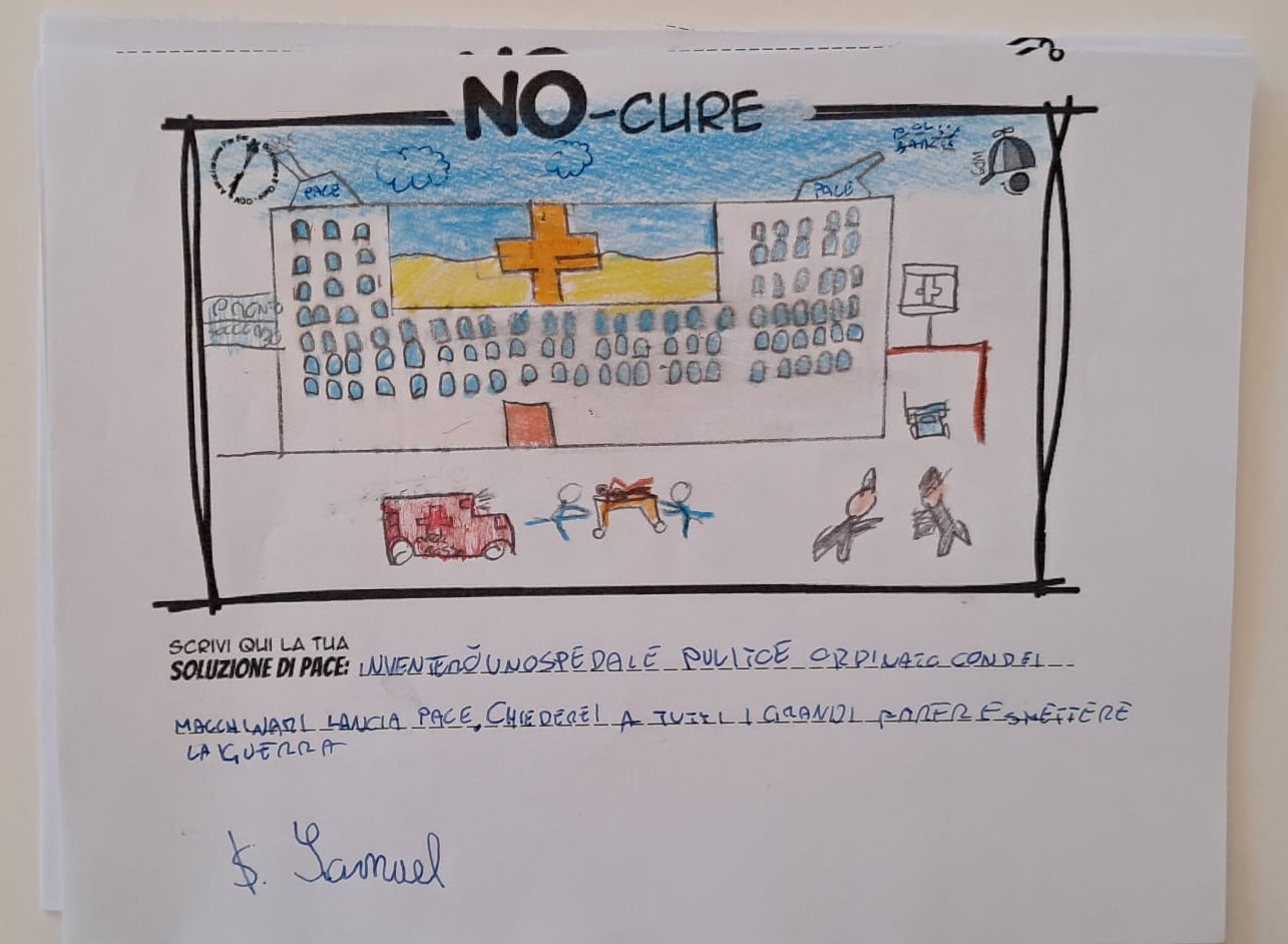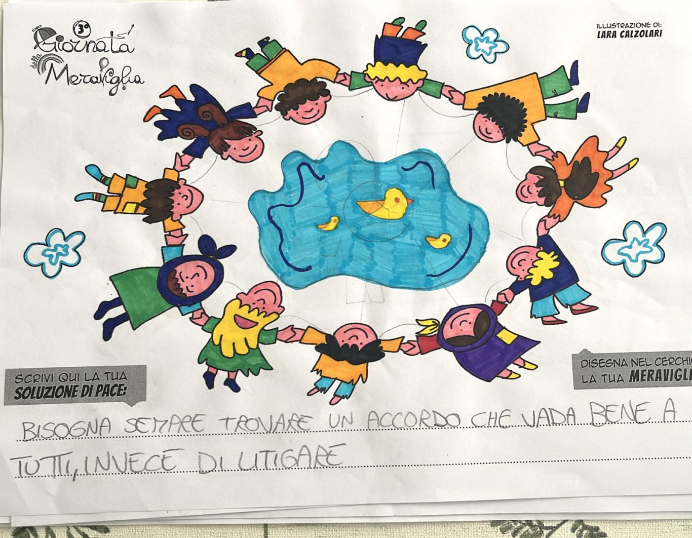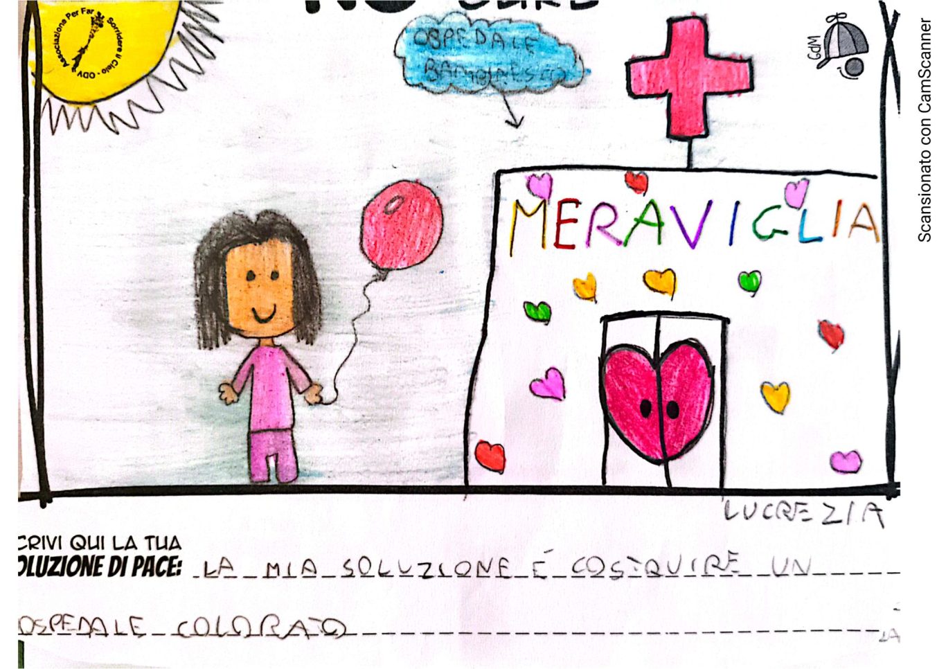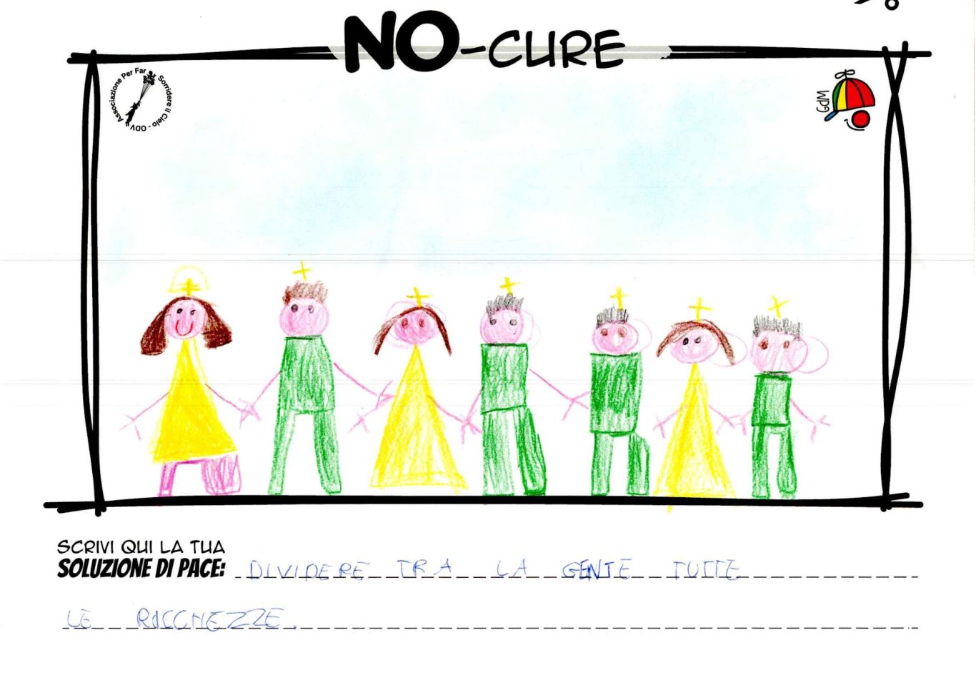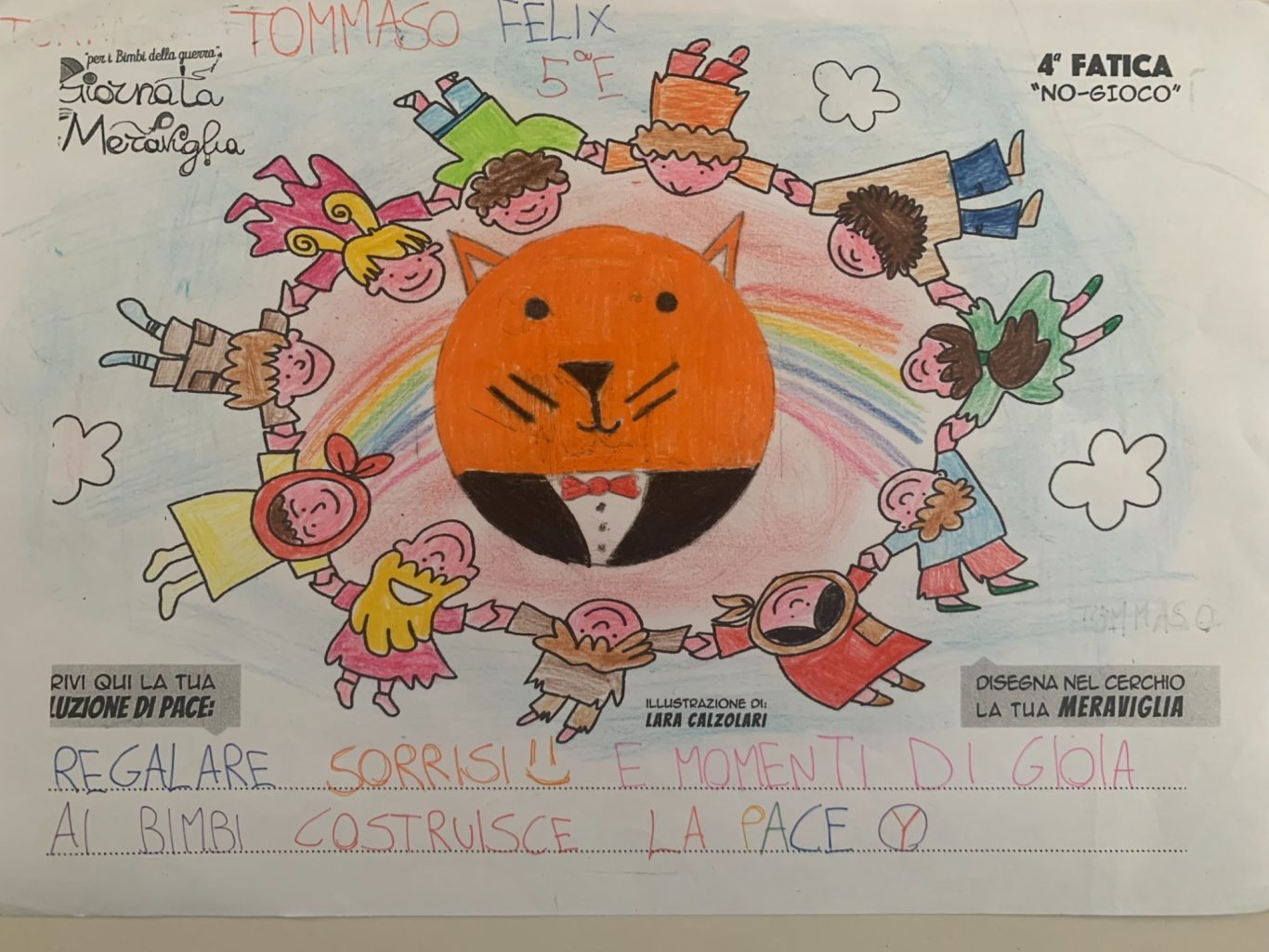 L’opera di sensibilizzazione si si esprime concretamente con la creazione di un DISEGNO DELLA MERAVIGLIA che andrà ad aiutare una delle 12 fatiche. Allo stesso modo chiederemo a tutti i partecipanti di andare a scrivere una “Soluzione di Pace” che possa aiutare anch’essa una delle 12 fatiche dei Bambini della guerra.