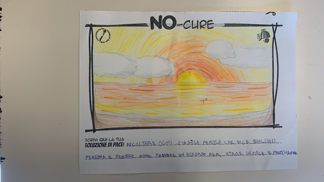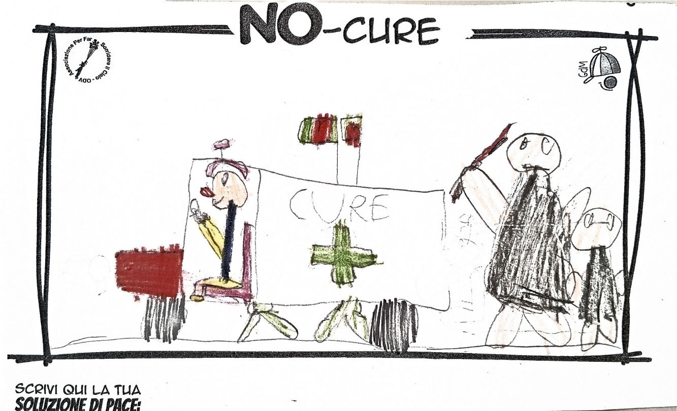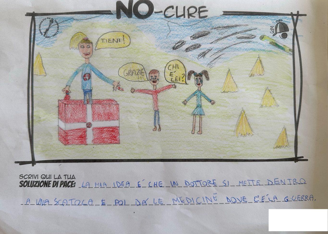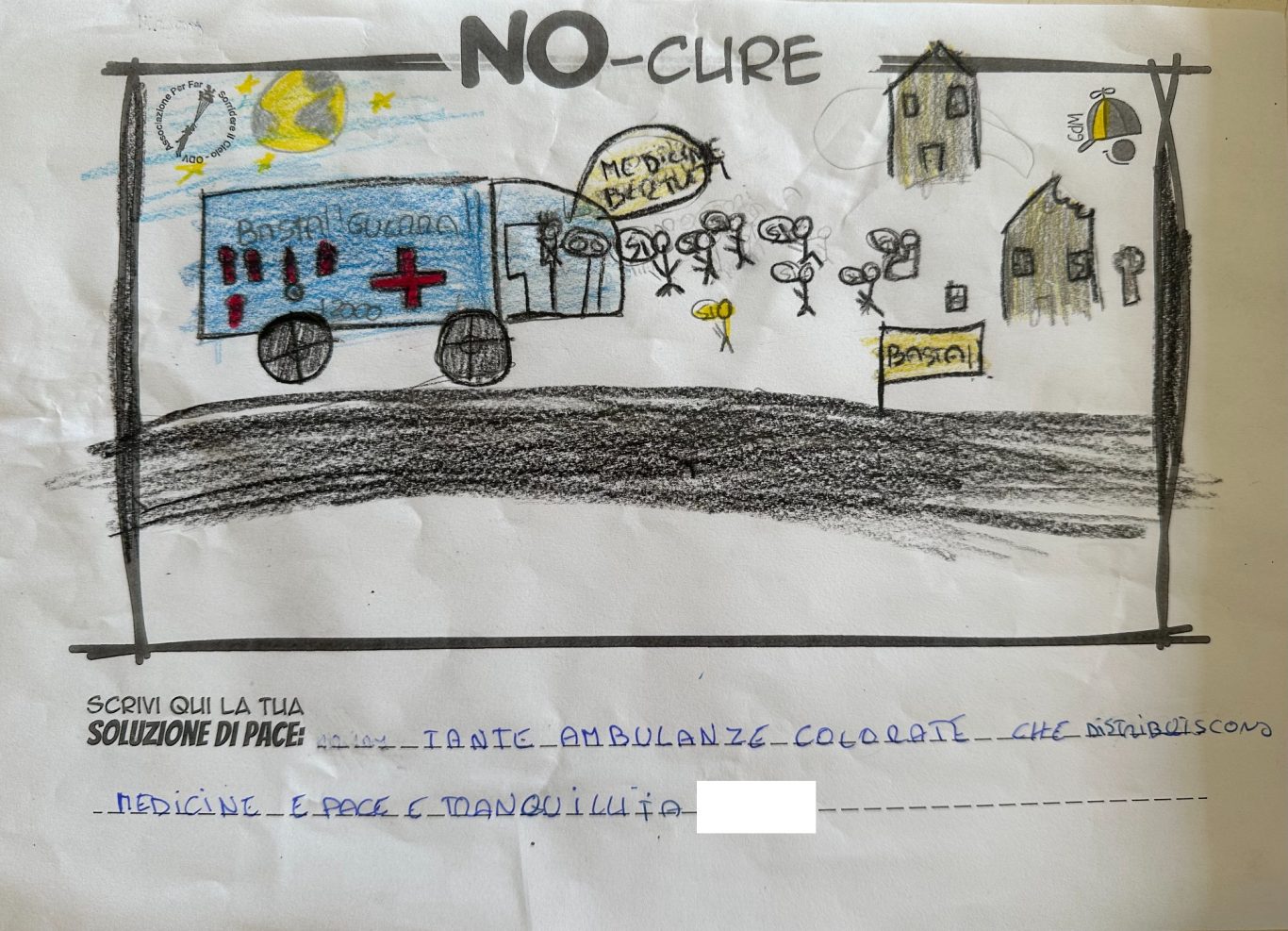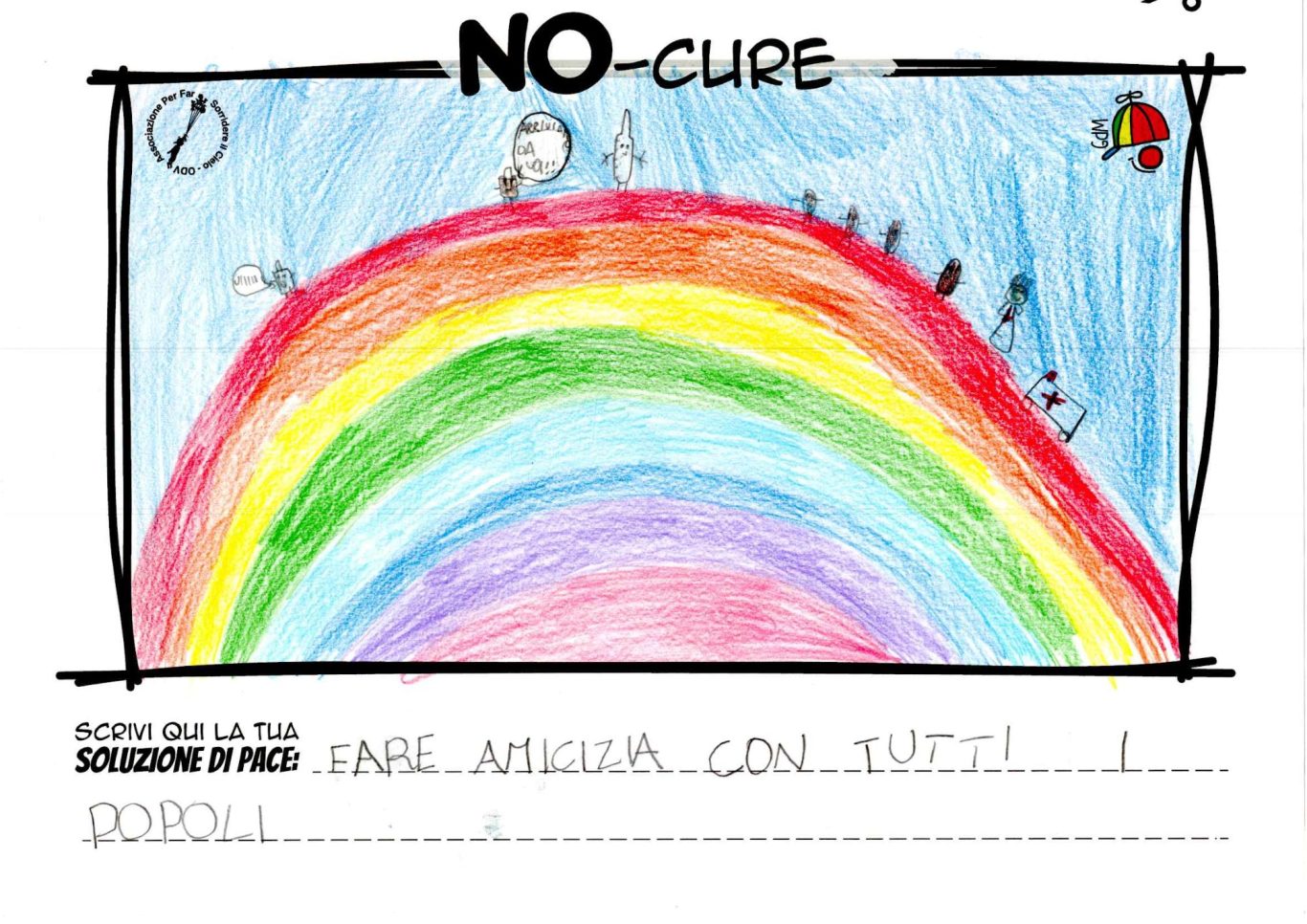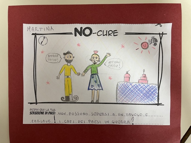L’opera di sensibilizzazione si si esprime concretamente con la creazione di un DISEGNO DELLA MERAVIGLIA che andrà ad aiutare una delle 12 fatiche. Allo stesso modo chiederemo a tutti i partecipanti di andare a scrivere una “Soluzione di Pace” che possa aiutare anch’essa una delle 12 fatiche dei Bambini della guerra.