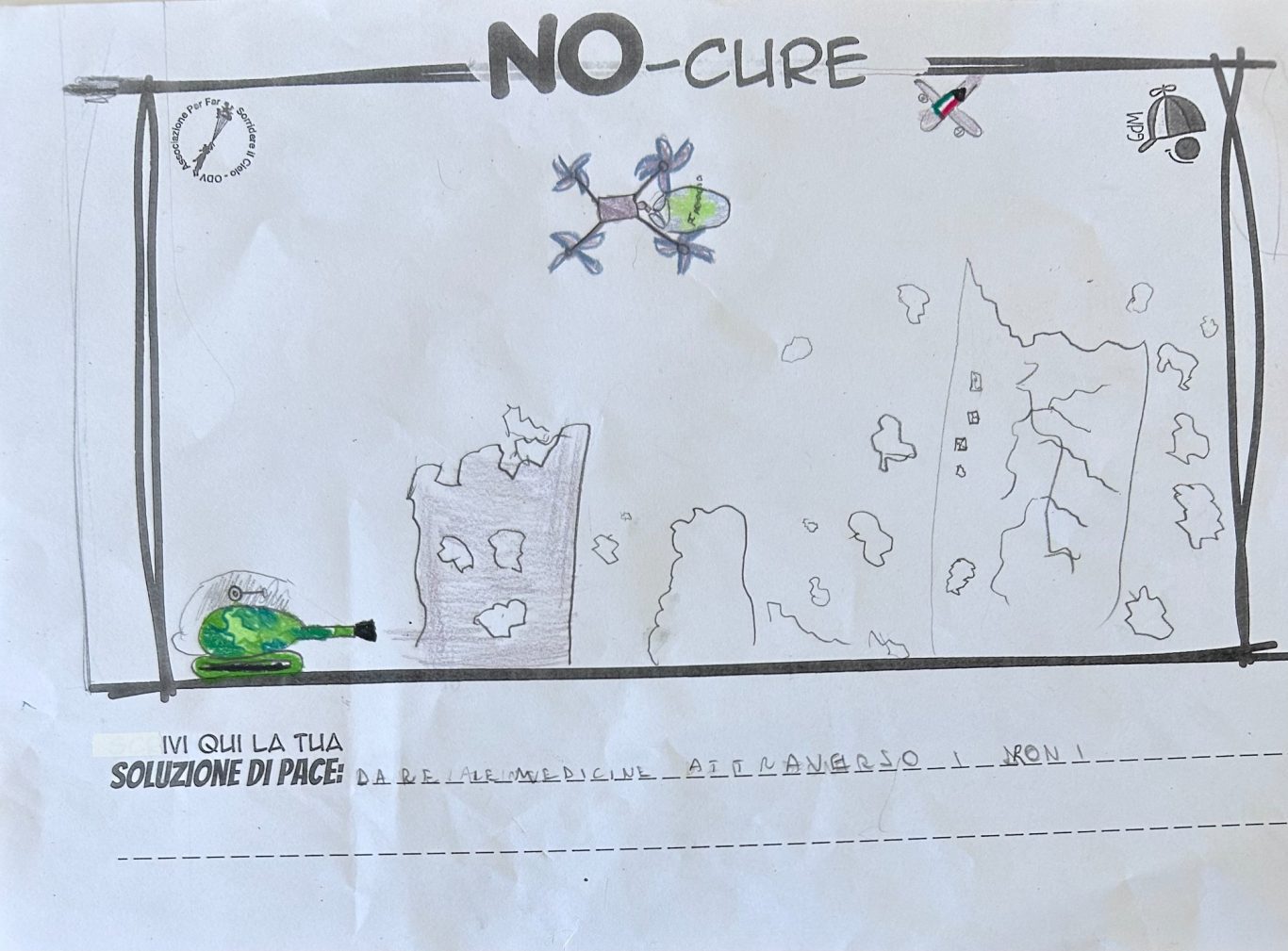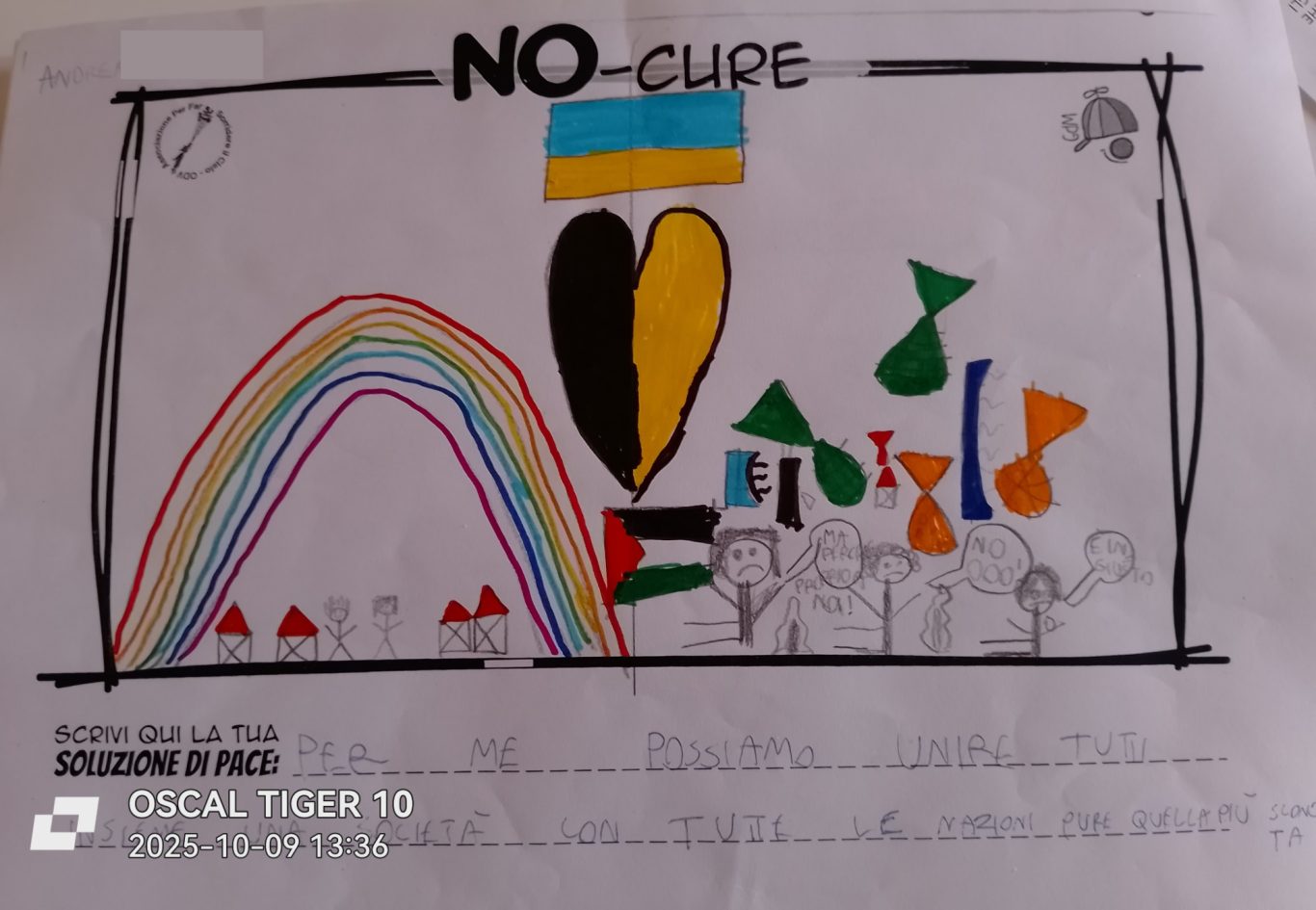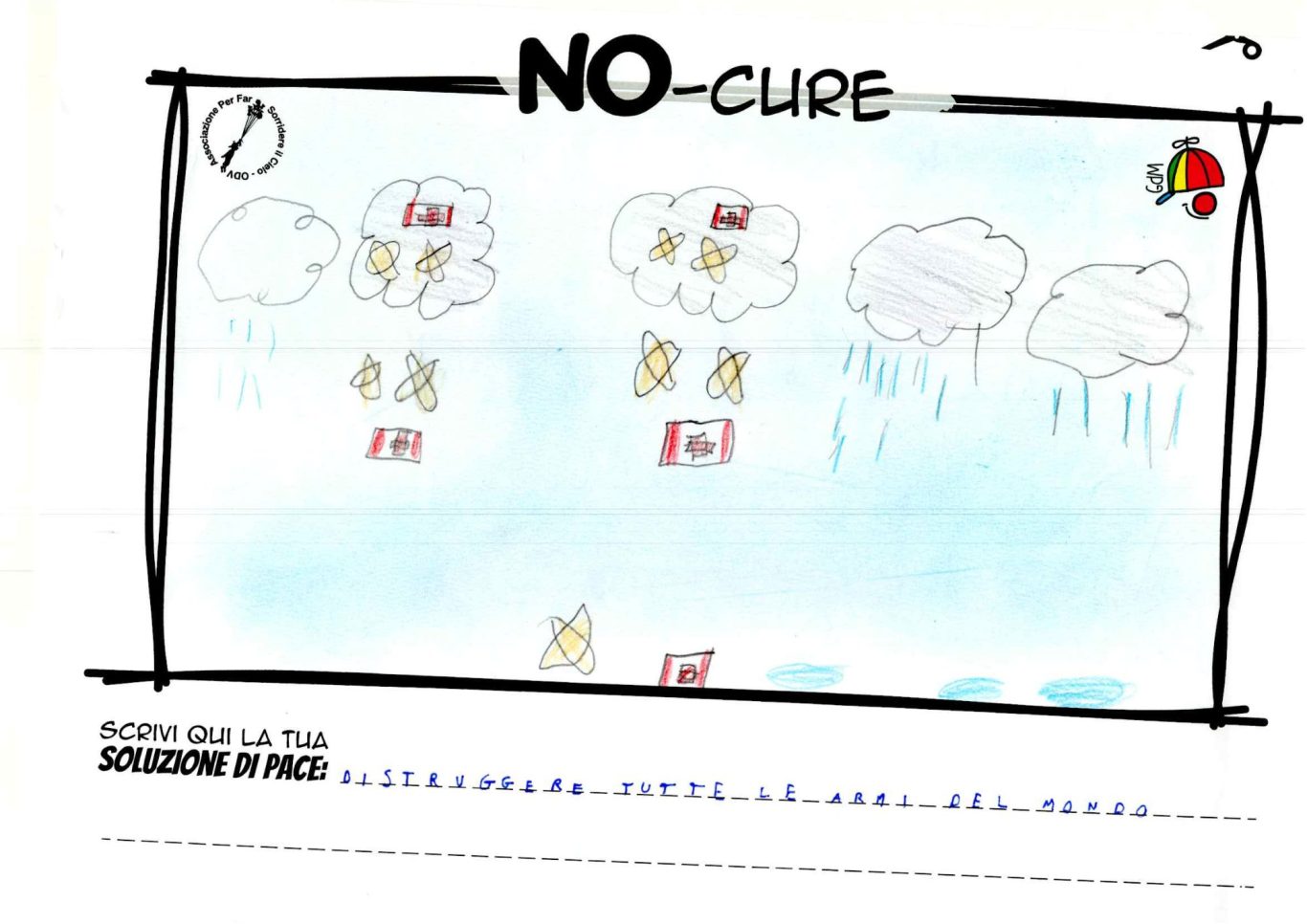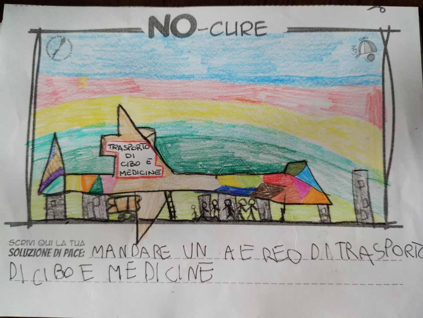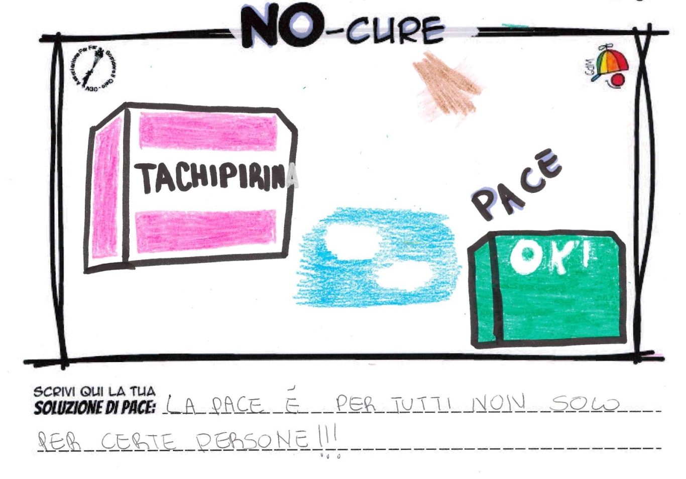 L’opera di sensibilizzazione si si esprime concretamente con la creazione di un DISEGNO DELLA MERAVIGLIA che andrà ad aiutare una delle 12 fatiche. Allo stesso modo chiederemo a tutti i partecipanti di andare a scrivere una “Soluzione di Pace” che possa aiutare anch’essa una delle 12 fatiche dei Bambini della guerra.