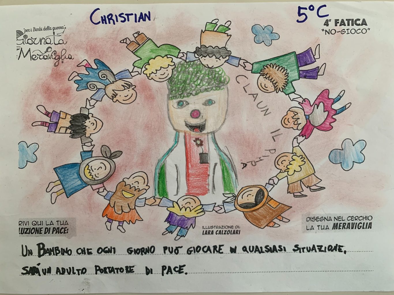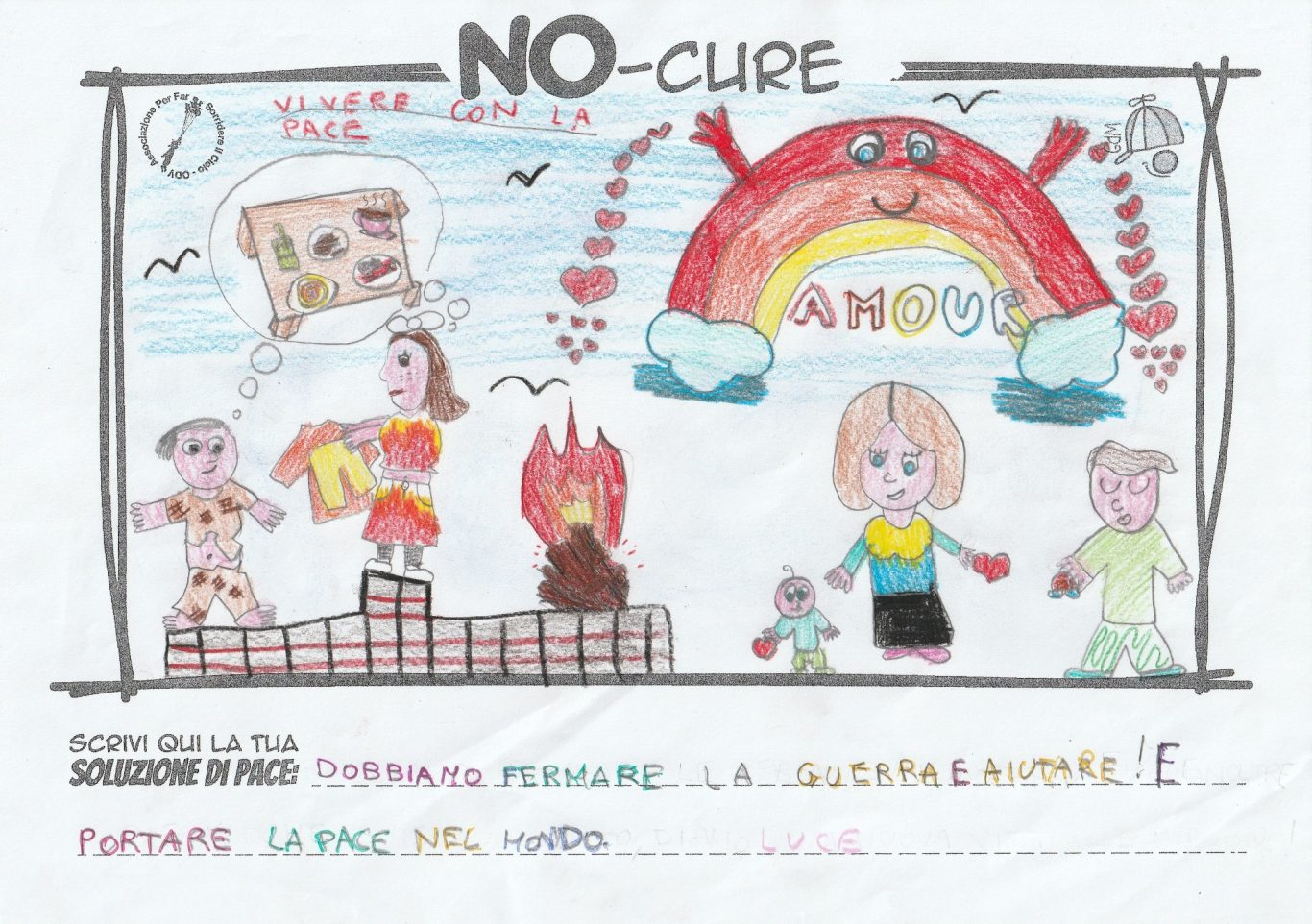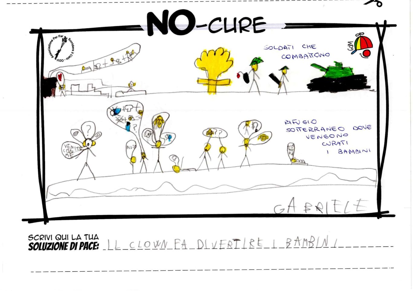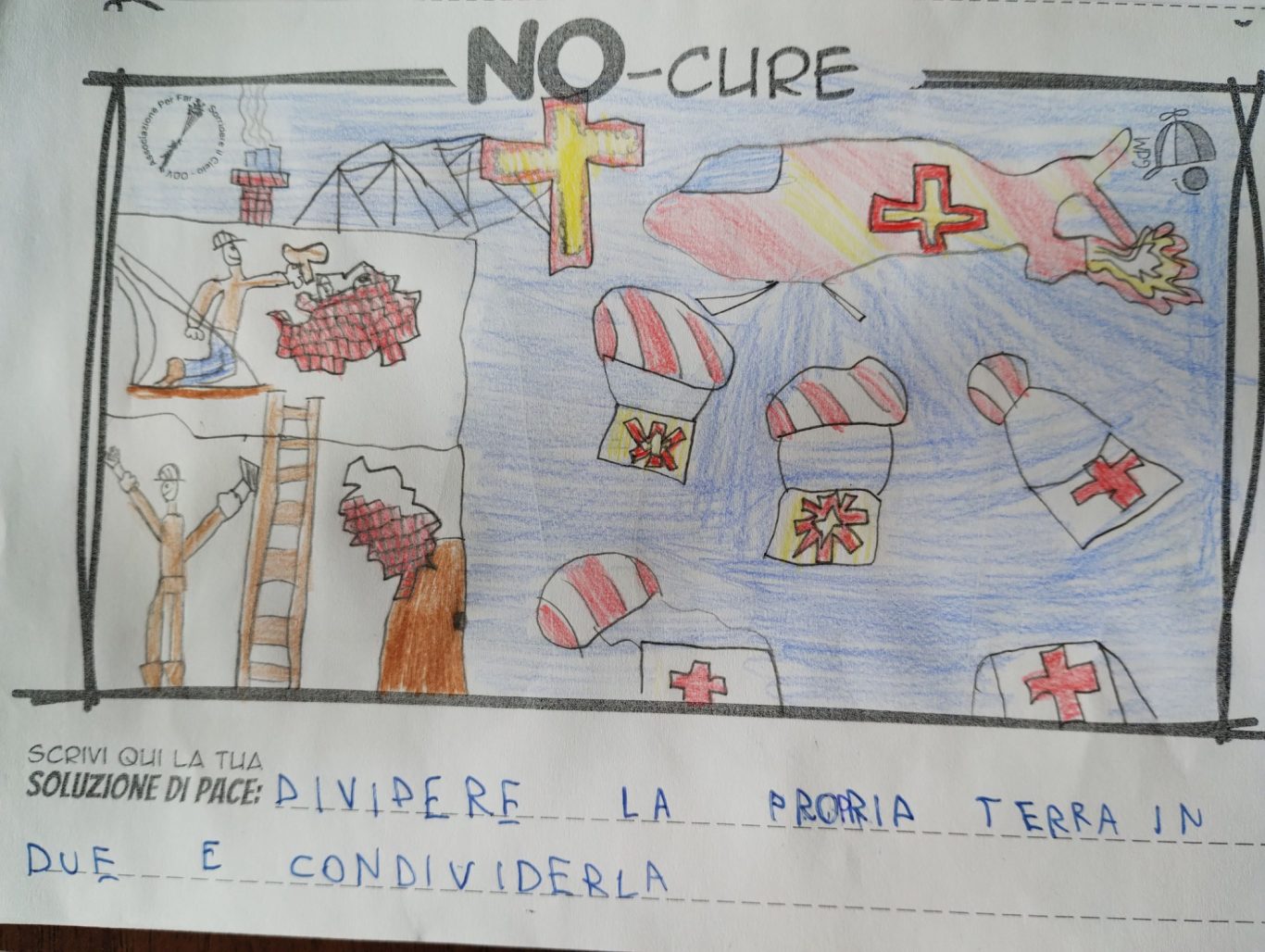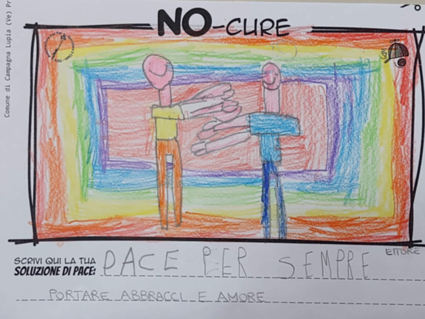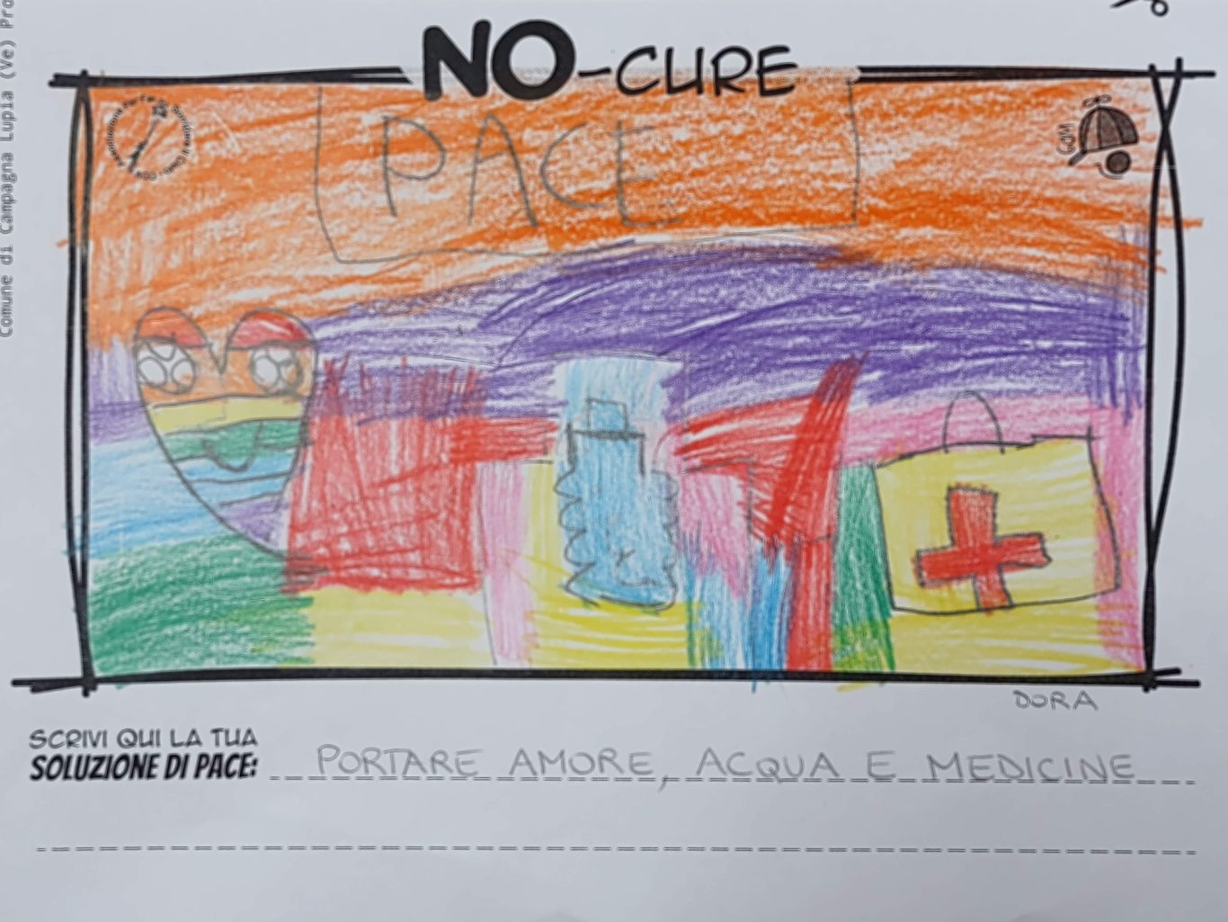 L’opera di sensibilizzazione si si esprime concretamente con la creazione di un DISEGNO DELLA MERAVIGLIA che andrà ad aiutare una delle 12 fatiche. Allo stesso modo chiederemo a tutti i partecipanti di andare a scrivere una “Soluzione di Pace” che possa aiutare anch’essa una delle 12 fatiche dei Bambini della guerra.