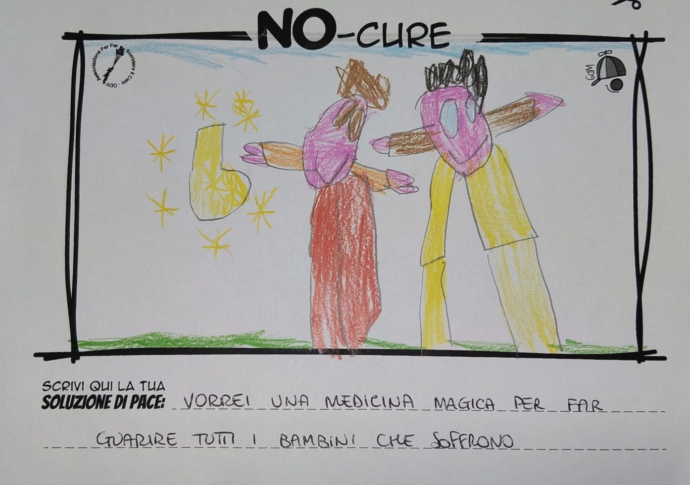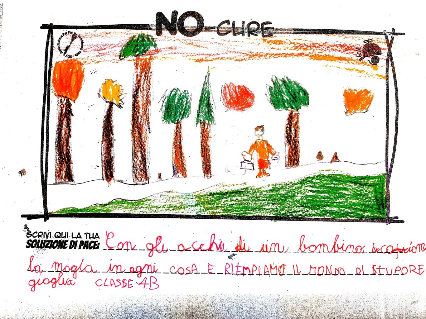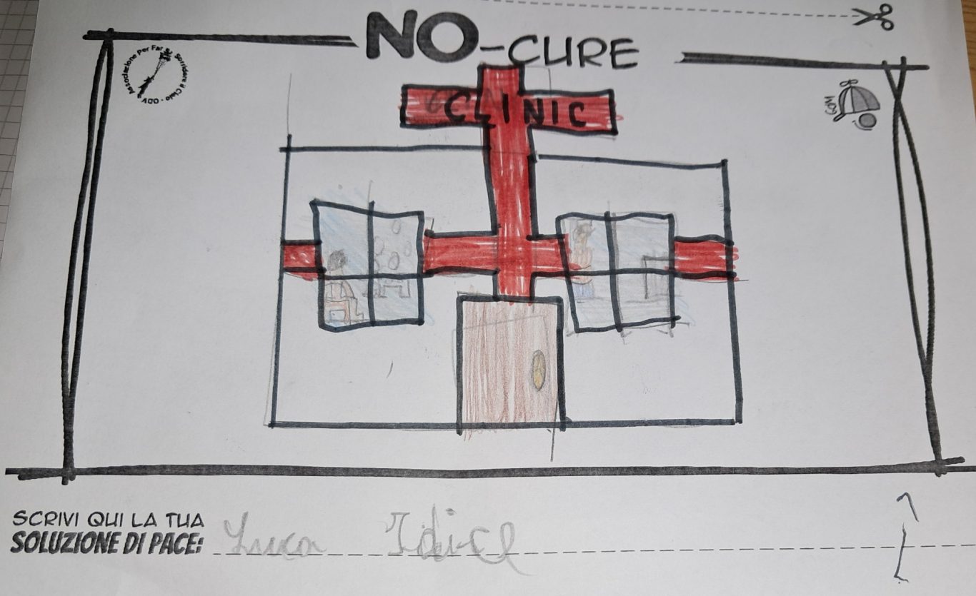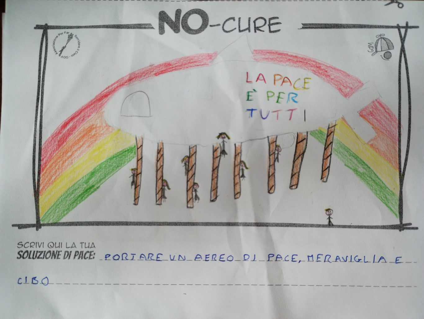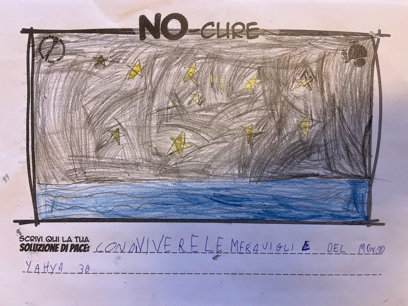 L’opera di sensibilizzazione si si esprime concretamente con la creazione di un DISEGNO DELLA MERAVIGLIA che andrà ad aiutare una delle 12 fatiche. Allo stesso modo chiederemo a tutti i partecipanti di andare a scrivere una “Soluzione di Pace” che possa aiutare anch’essa una delle 12 fatiche dei Bambini della guerra.