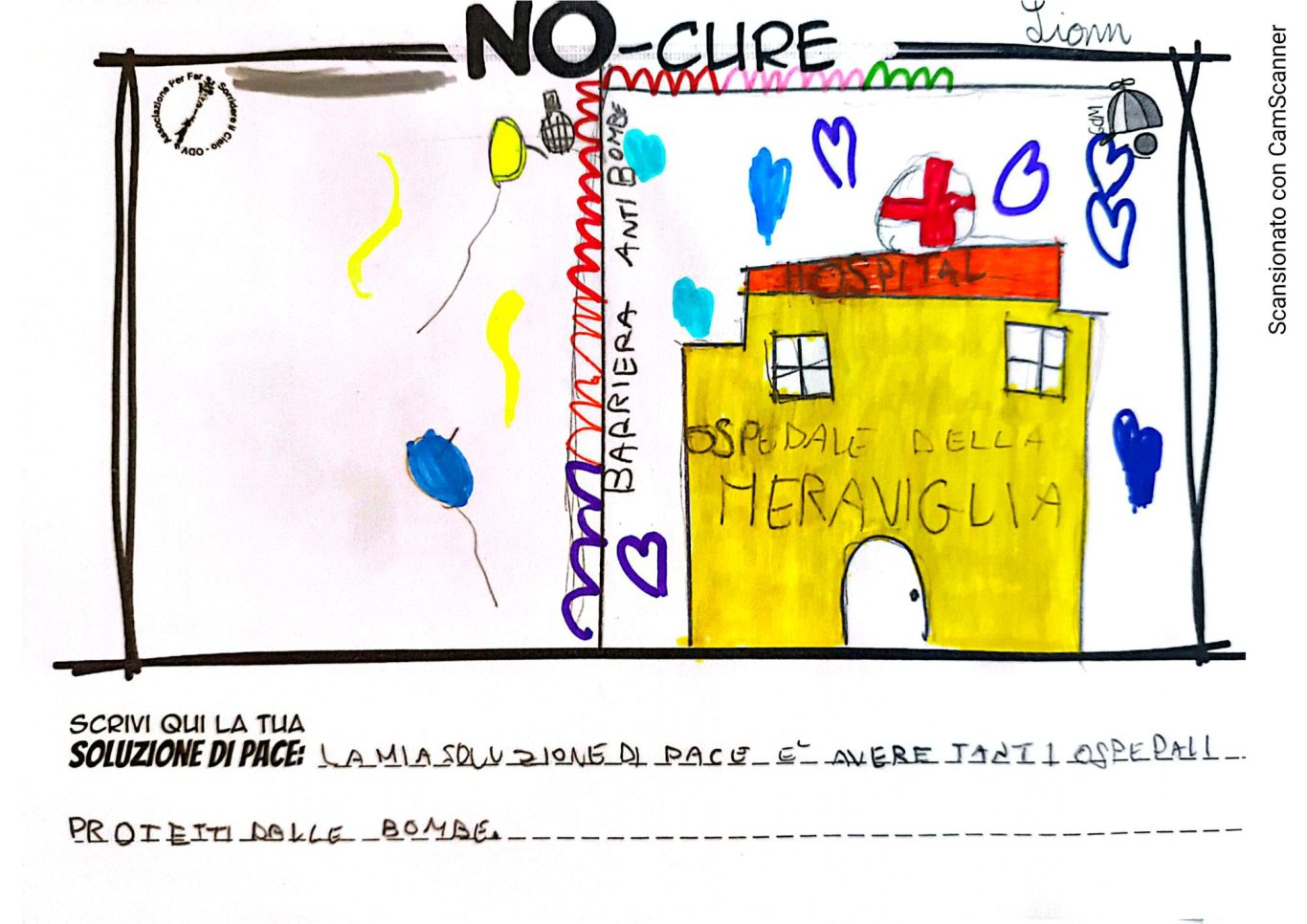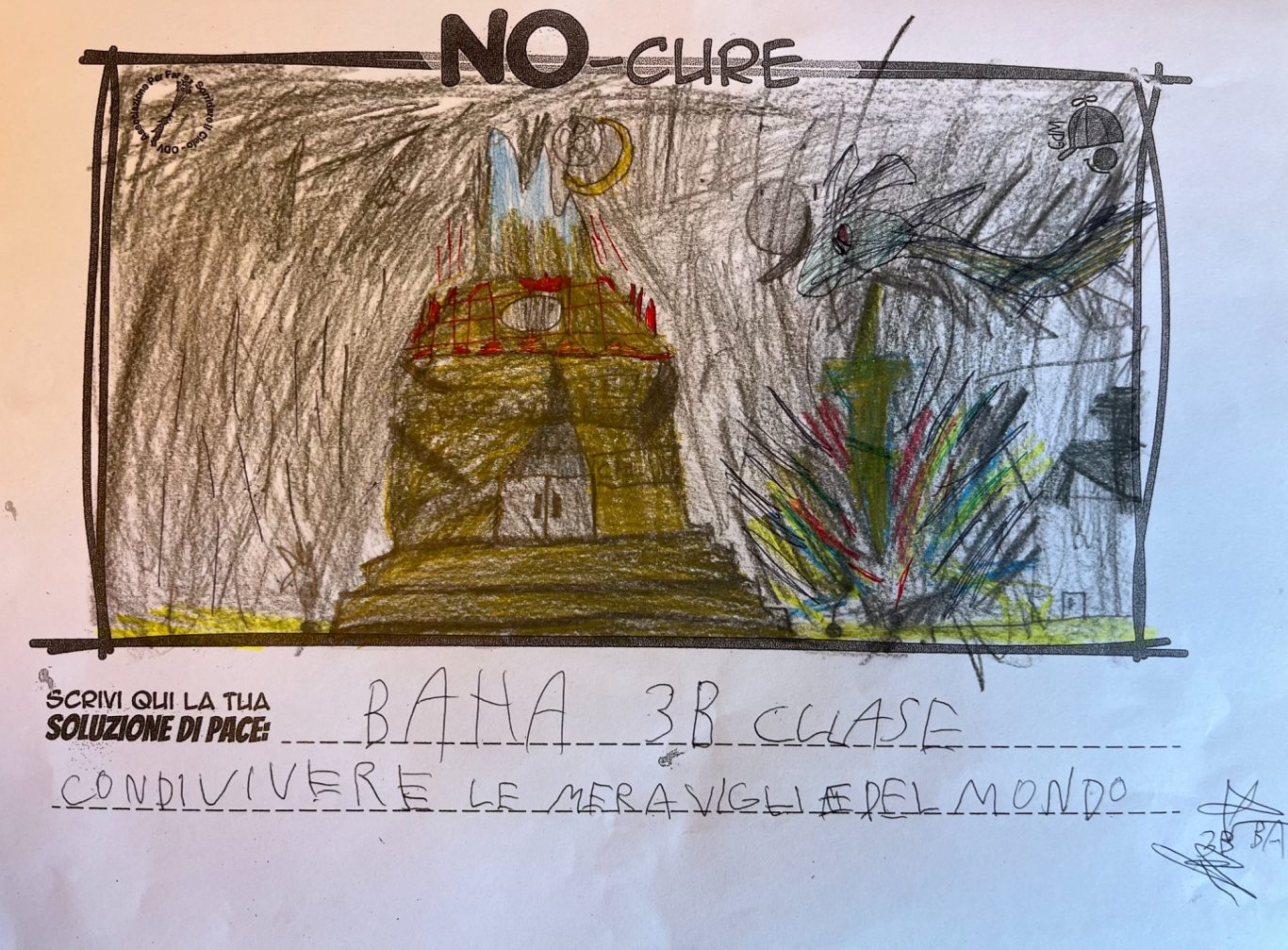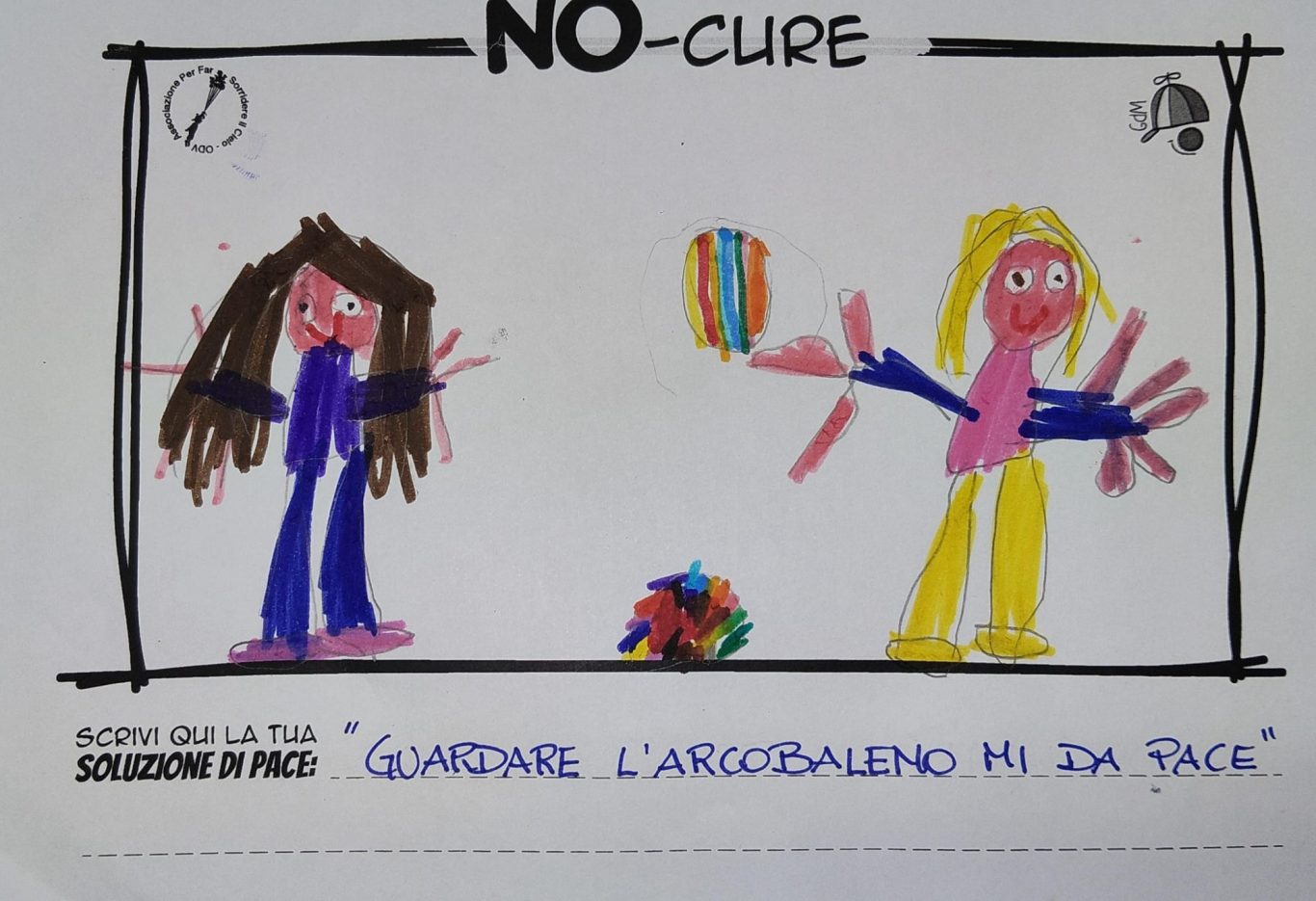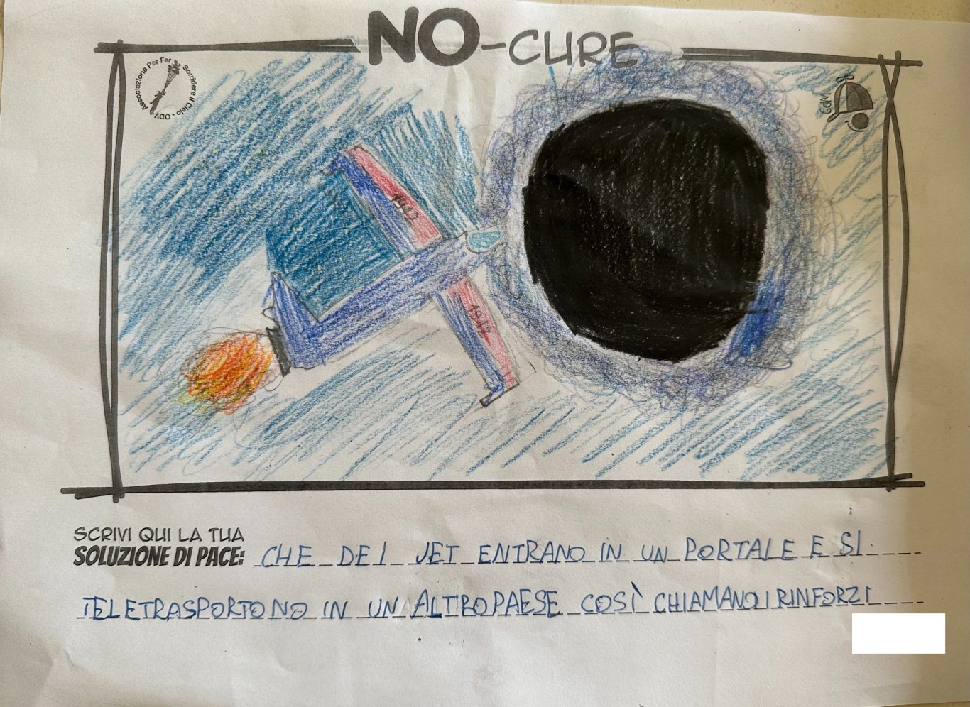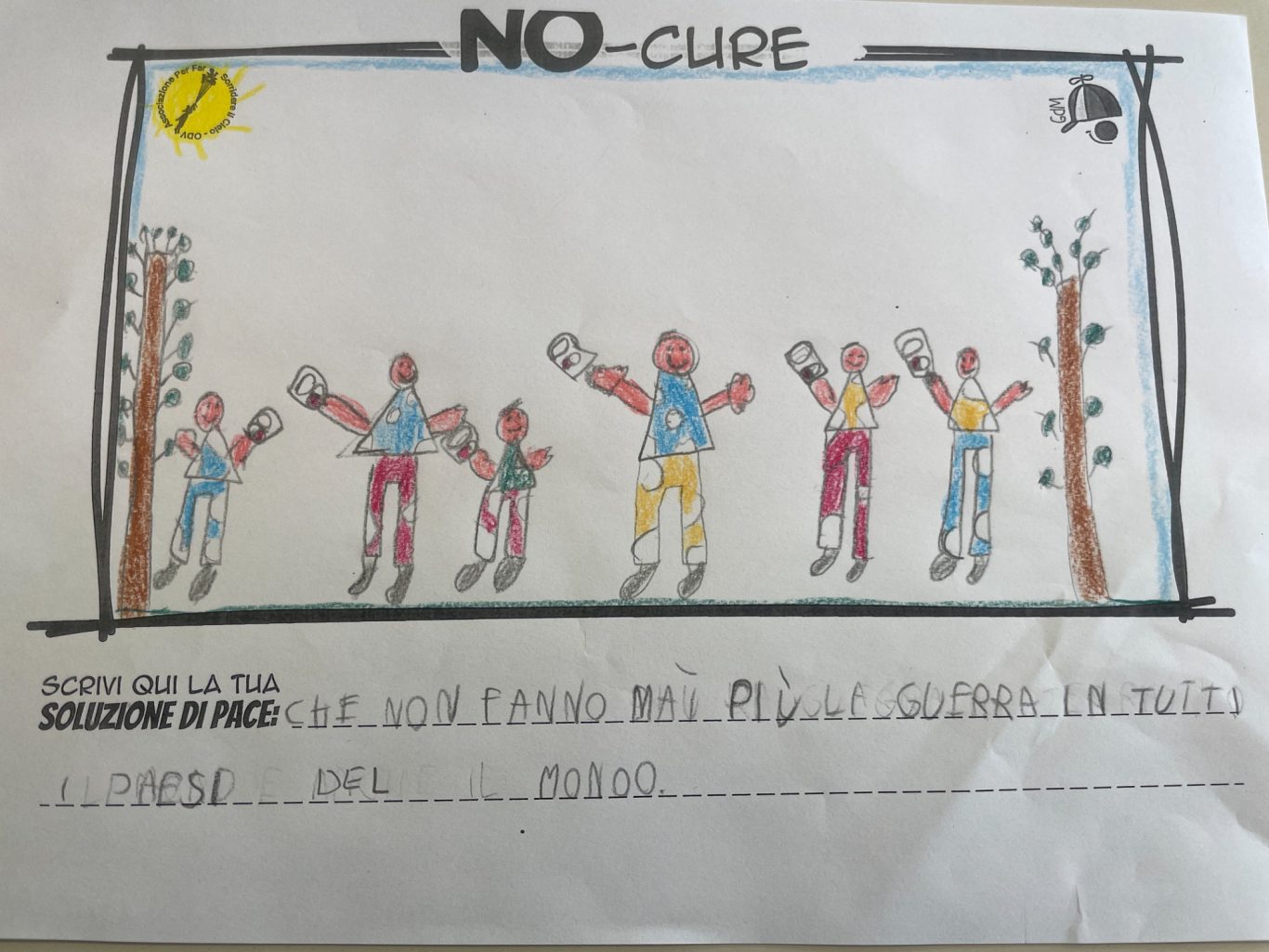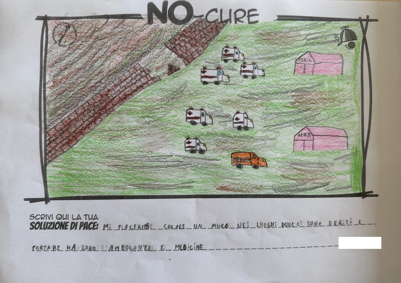 L’opera di sensibilizzazione si si esprime concretamente con la creazione di un DISEGNO DELLA MERAVIGLIA che andrà ad aiutare una delle 12 fatiche. Allo stesso modo chiederemo a tutti i partecipanti di andare a scrivere una “Soluzione di Pace” che possa aiutare anch’essa una delle 12 fatiche dei Bambini della guerra.