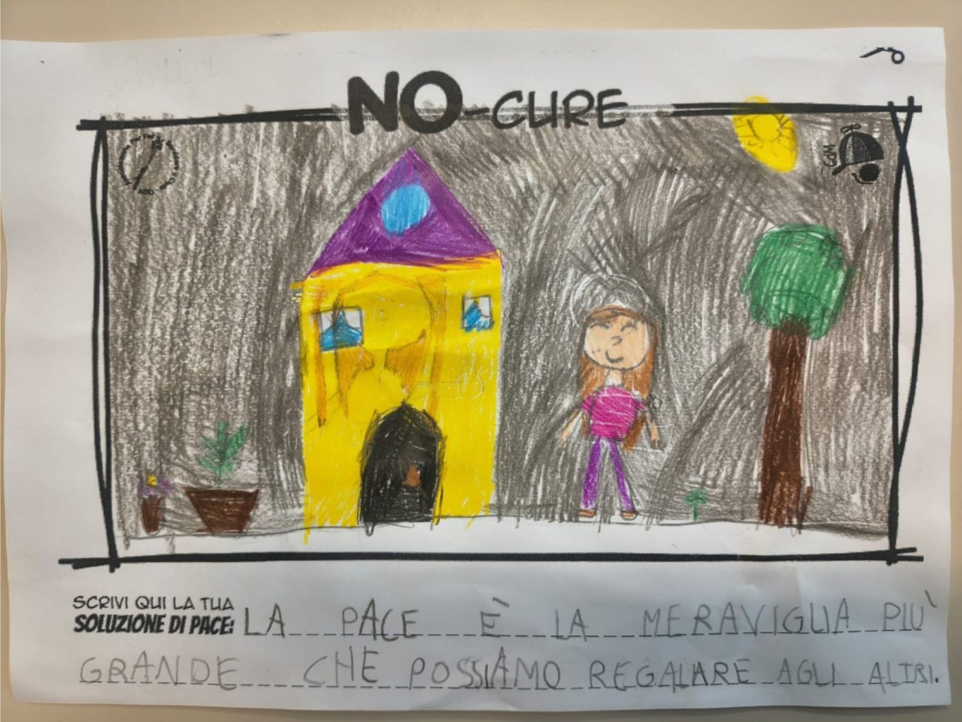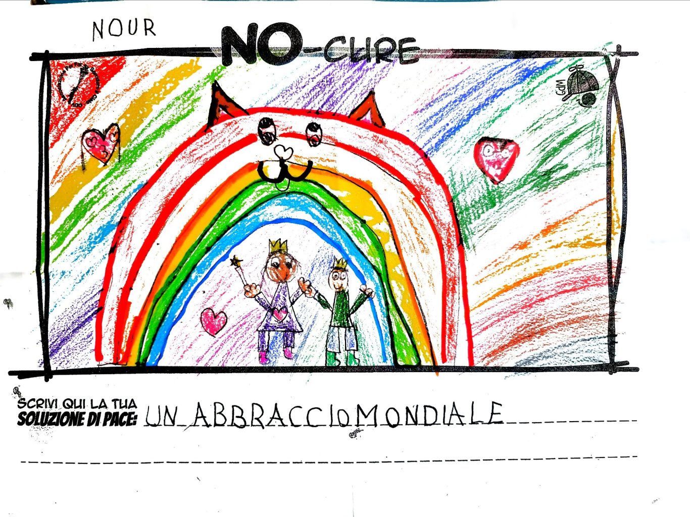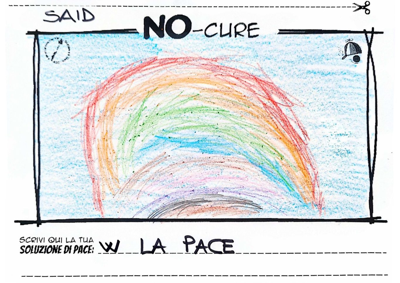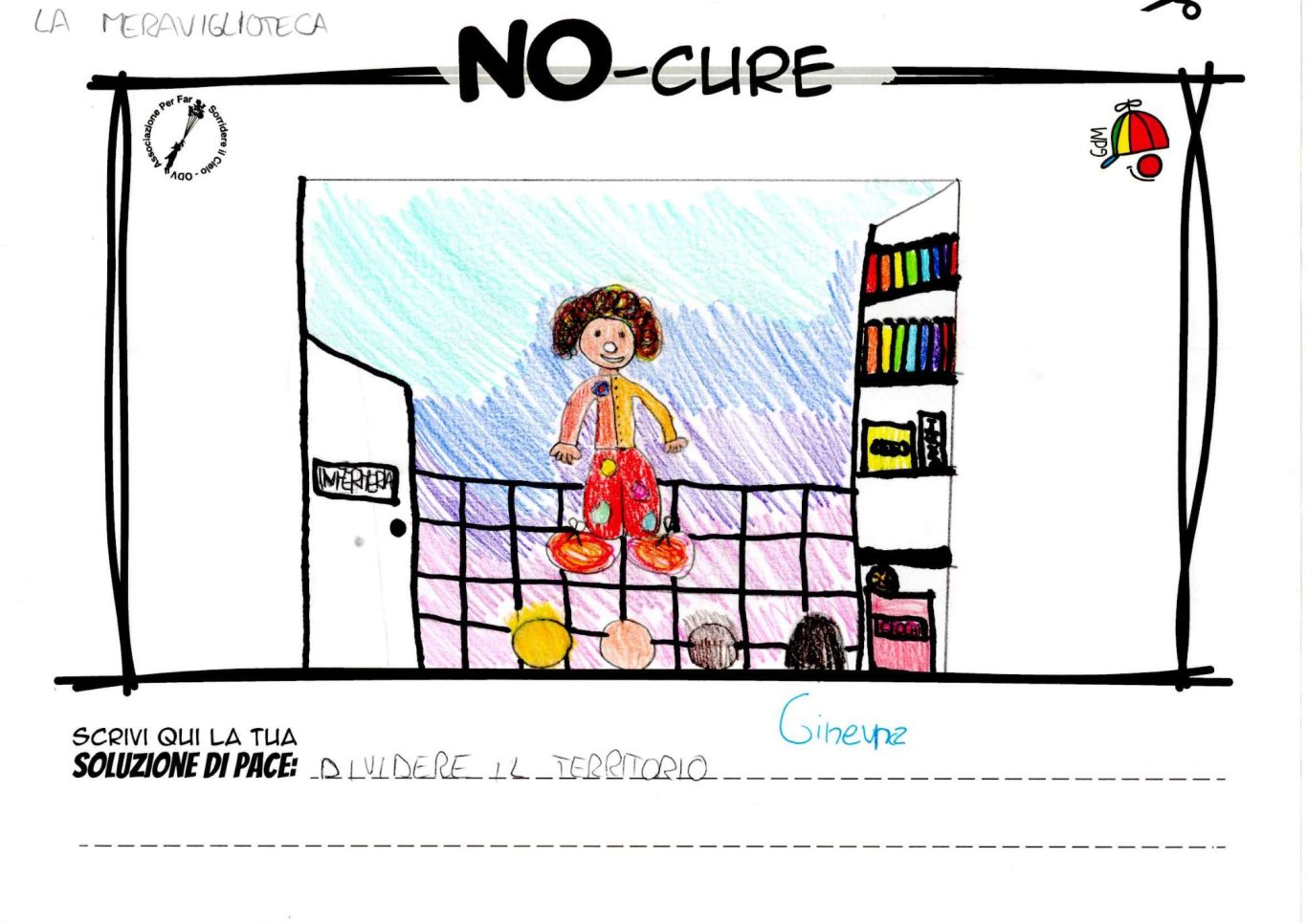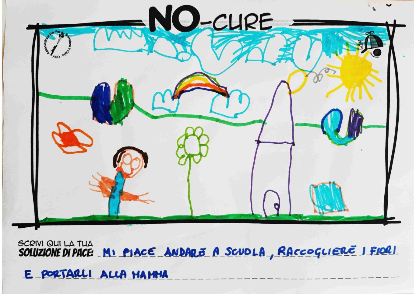 L’opera di sensibilizzazione si si esprime concretamente con la creazione di un DISEGNO DELLA MERAVIGLIA che andrà ad aiutare una delle 12 fatiche. Allo stesso modo chiederemo a tutti i partecipanti di andare a scrivere una “Soluzione di Pace” che possa aiutare anch’essa una delle 12 fatiche dei Bambini della guerra.
