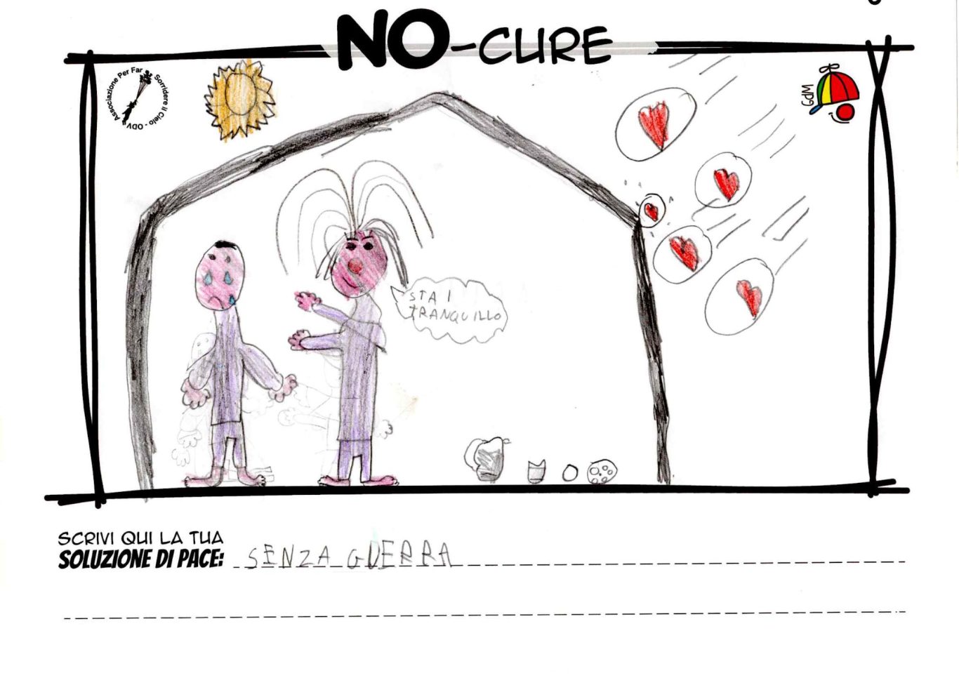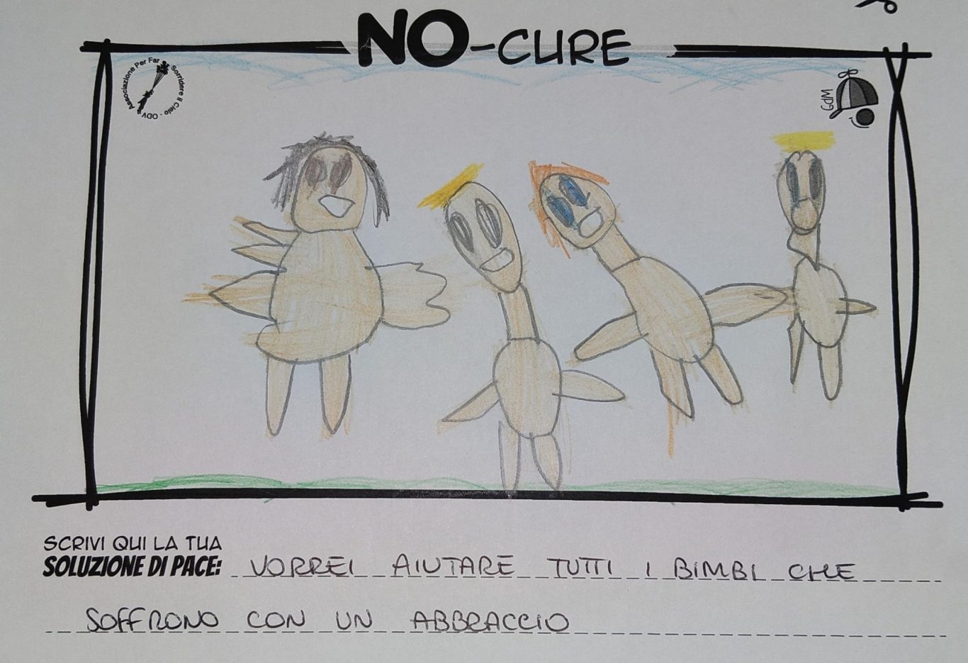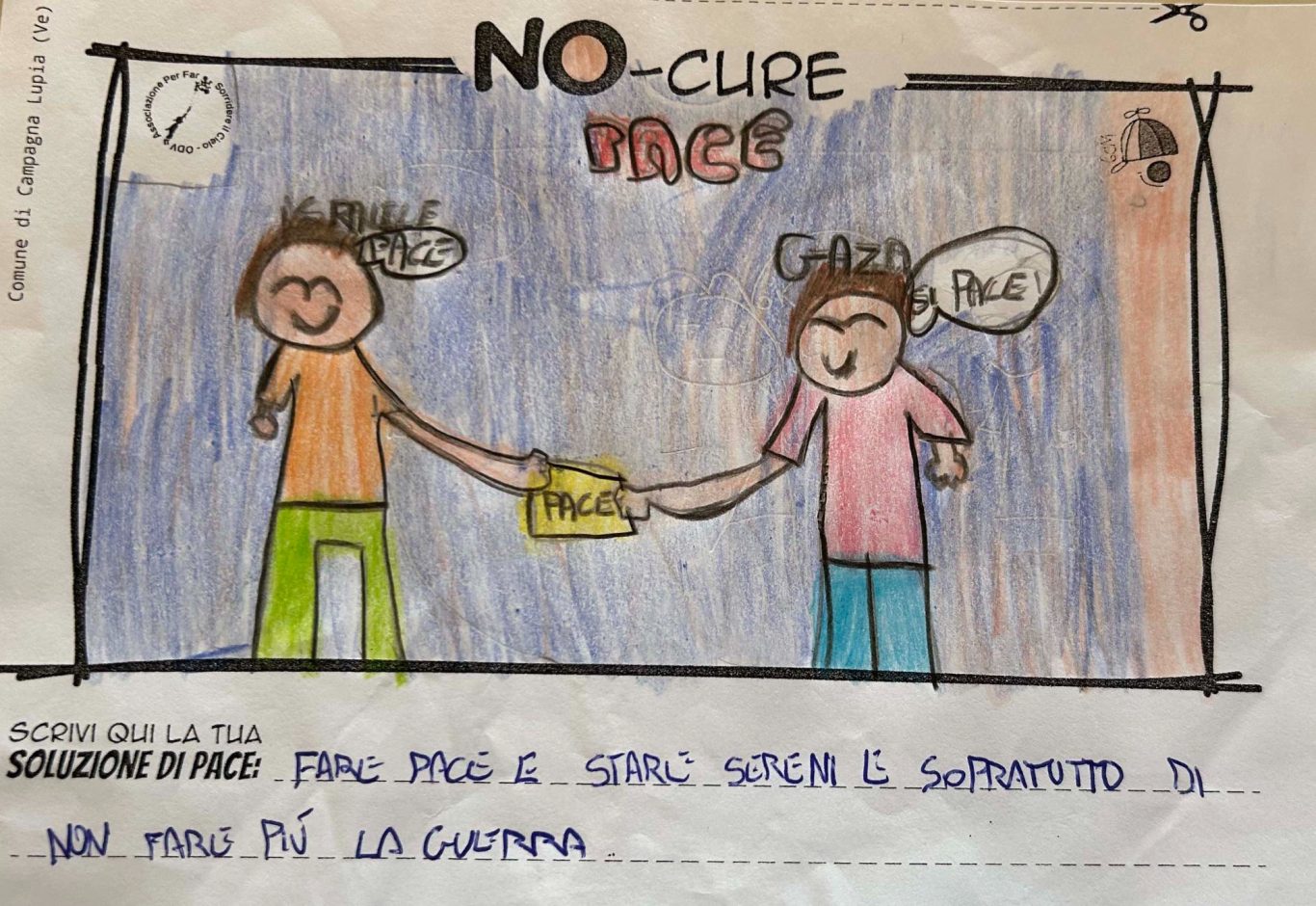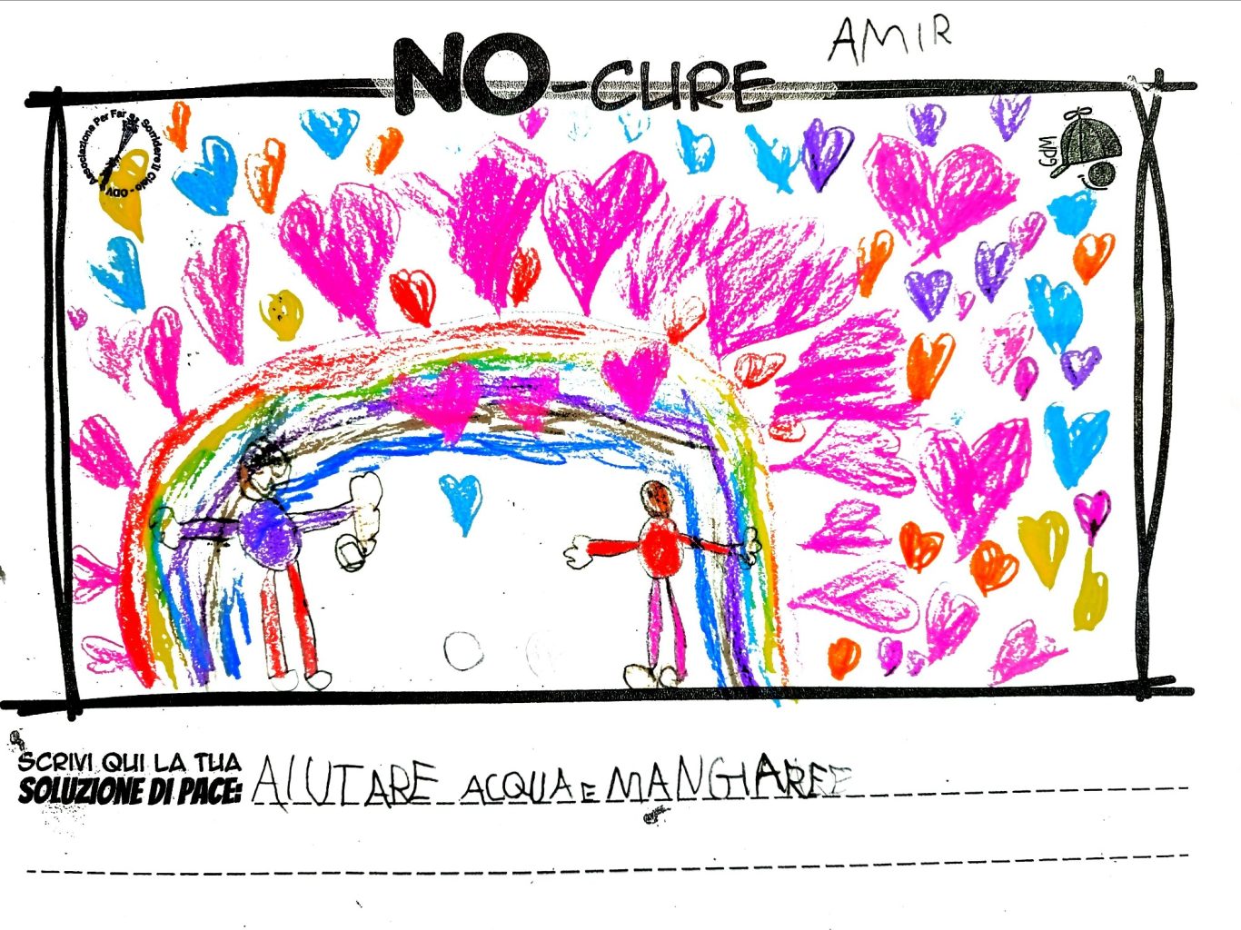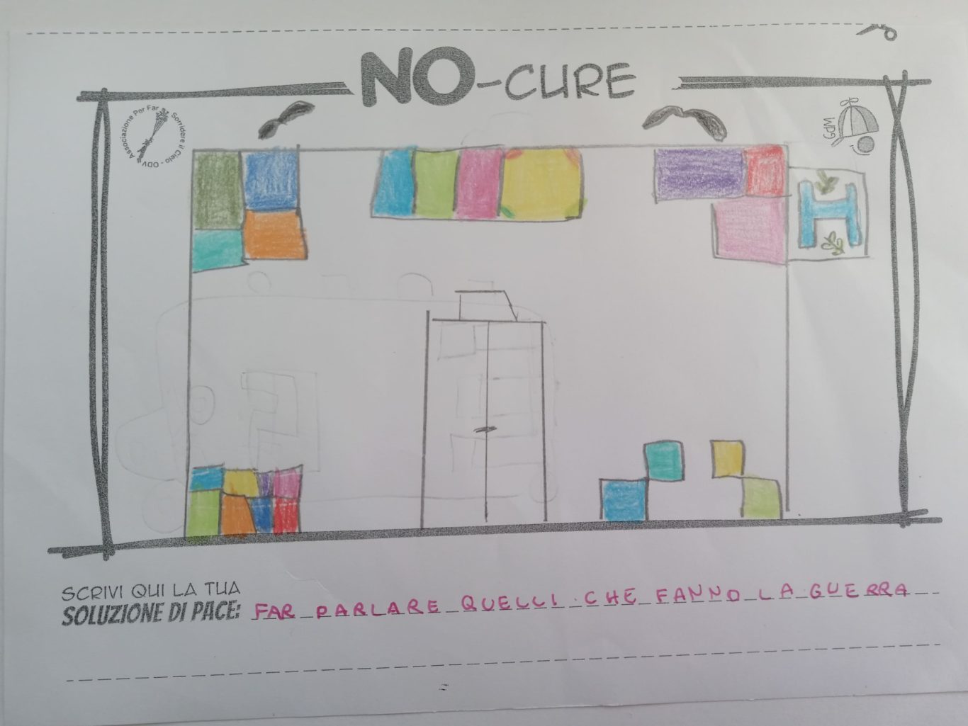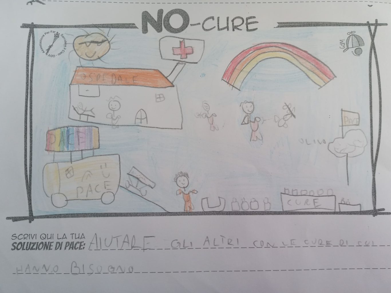 L’opera di sensibilizzazione si si esprime concretamente con la creazione di un DISEGNO DELLA MERAVIGLIA che andrà ad aiutare una delle 12 fatiche. Allo stesso modo chiederemo a tutti i partecipanti di andare a scrivere una “Soluzione di Pace” che possa aiutare anch’essa una delle 12 fatiche dei Bambini della guerra.