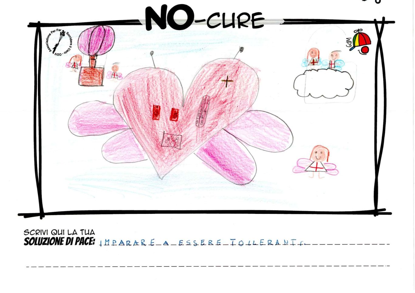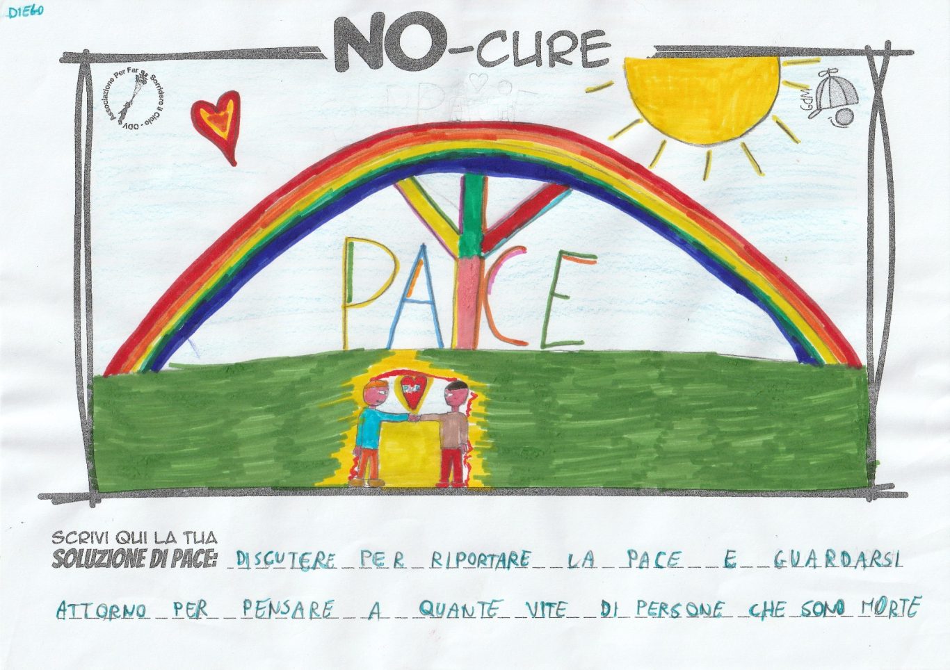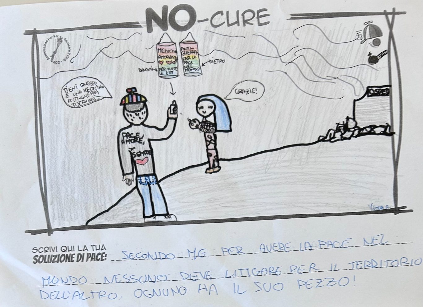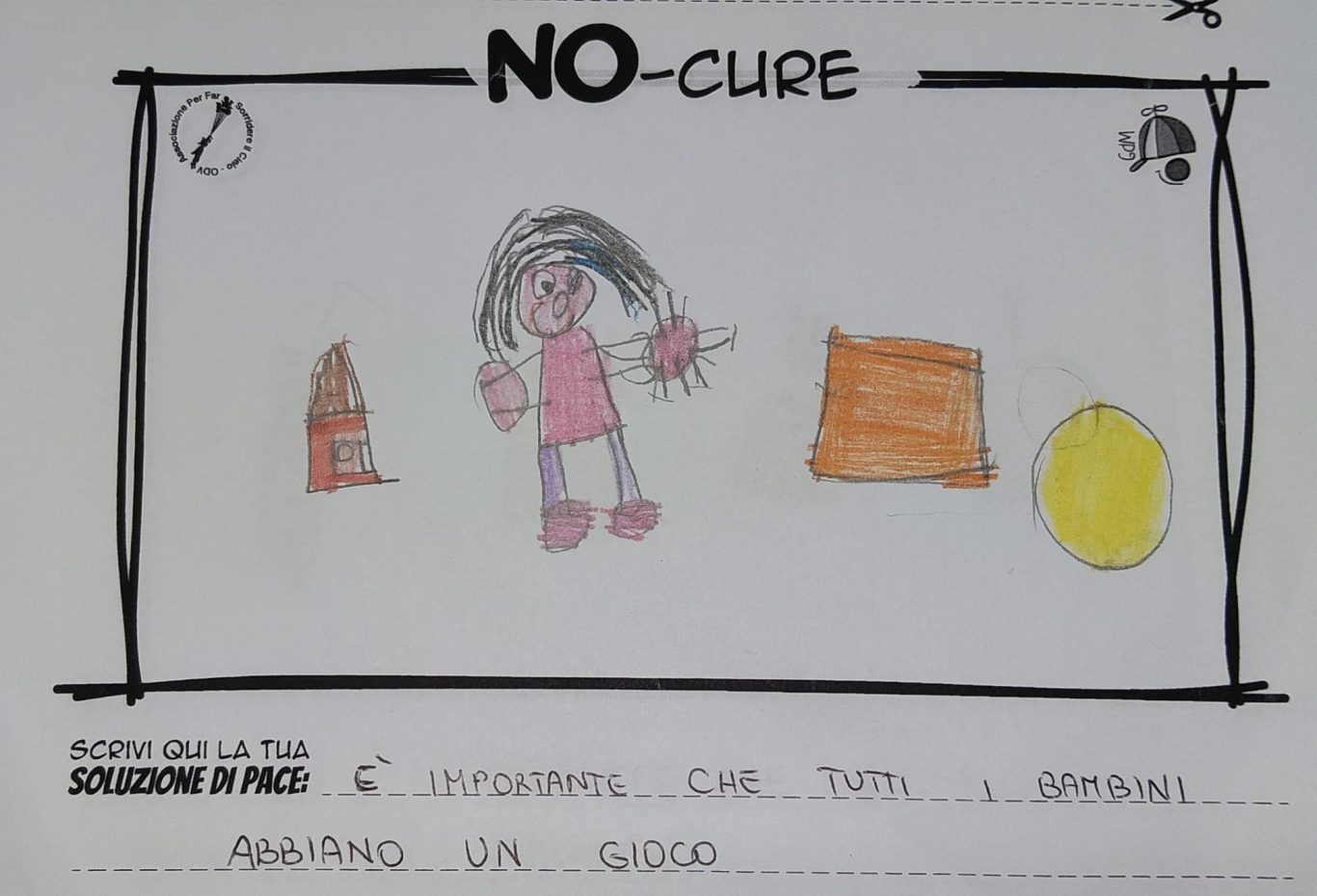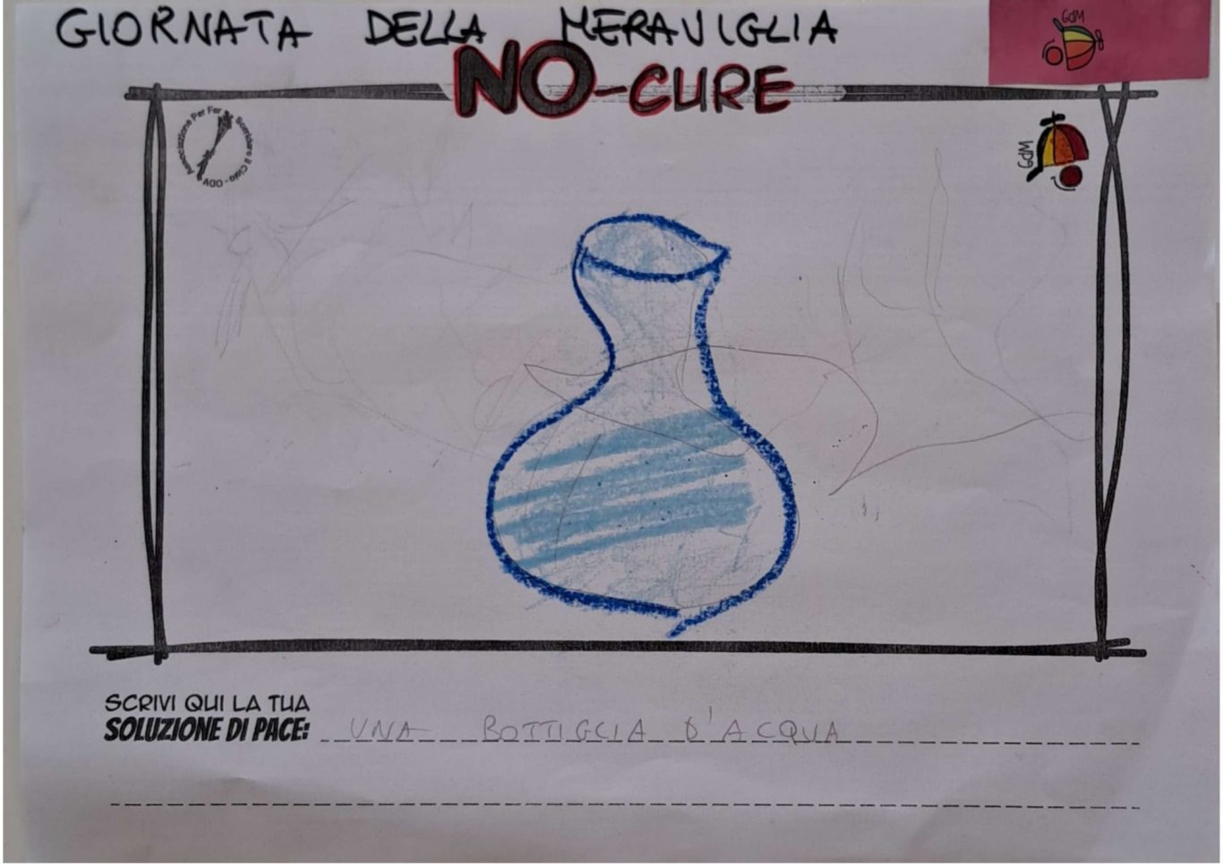 L’opera di sensibilizzazione si si esprime concretamente con la creazione di un DISEGNO DELLA MERAVIGLIA che andrà ad aiutare una delle 12 fatiche. Allo stesso modo chiederemo a tutti i partecipanti di andare a scrivere una “Soluzione di Pace” che possa aiutare anch’essa una delle 12 fatiche dei Bambini della guerra.