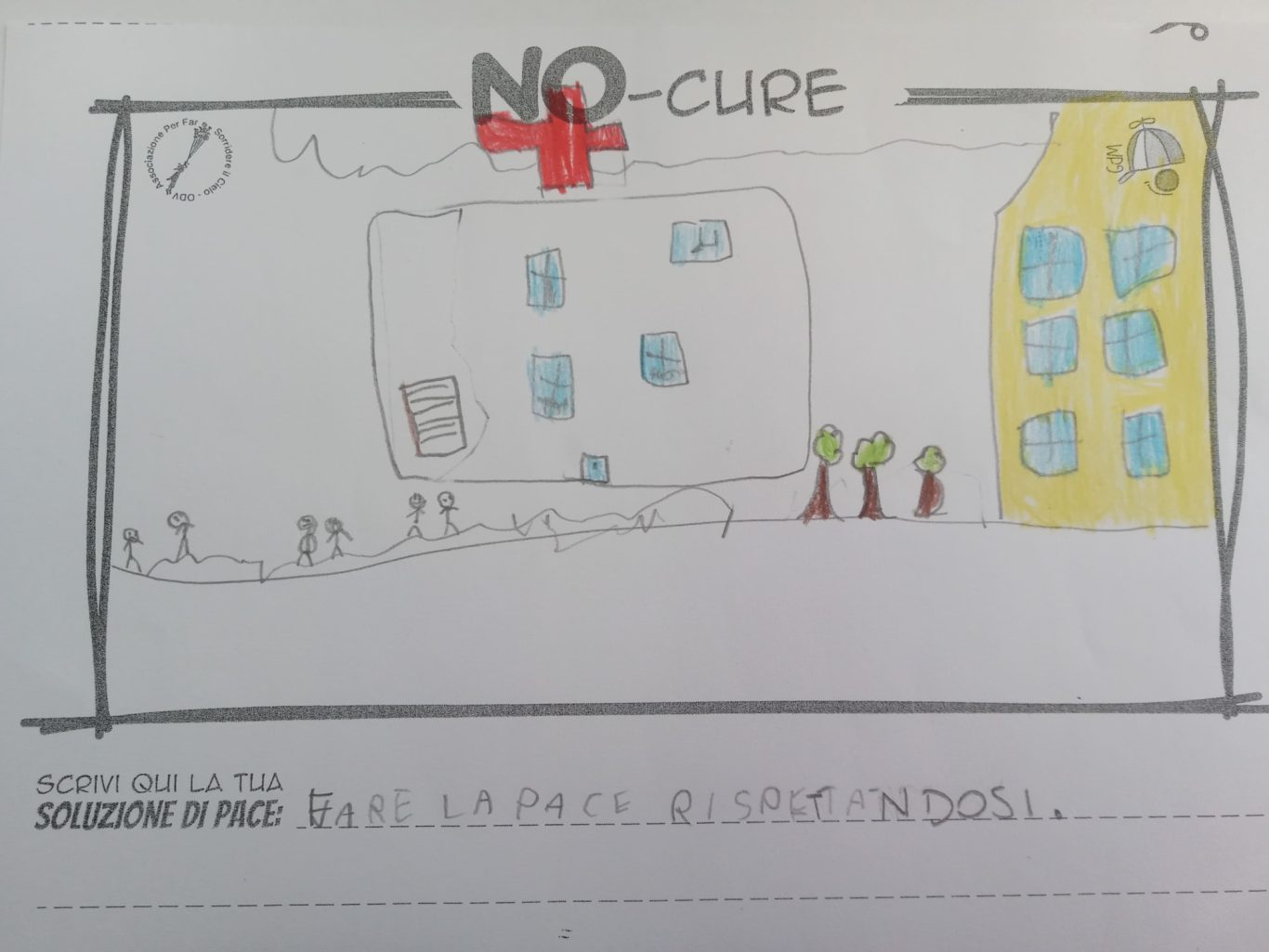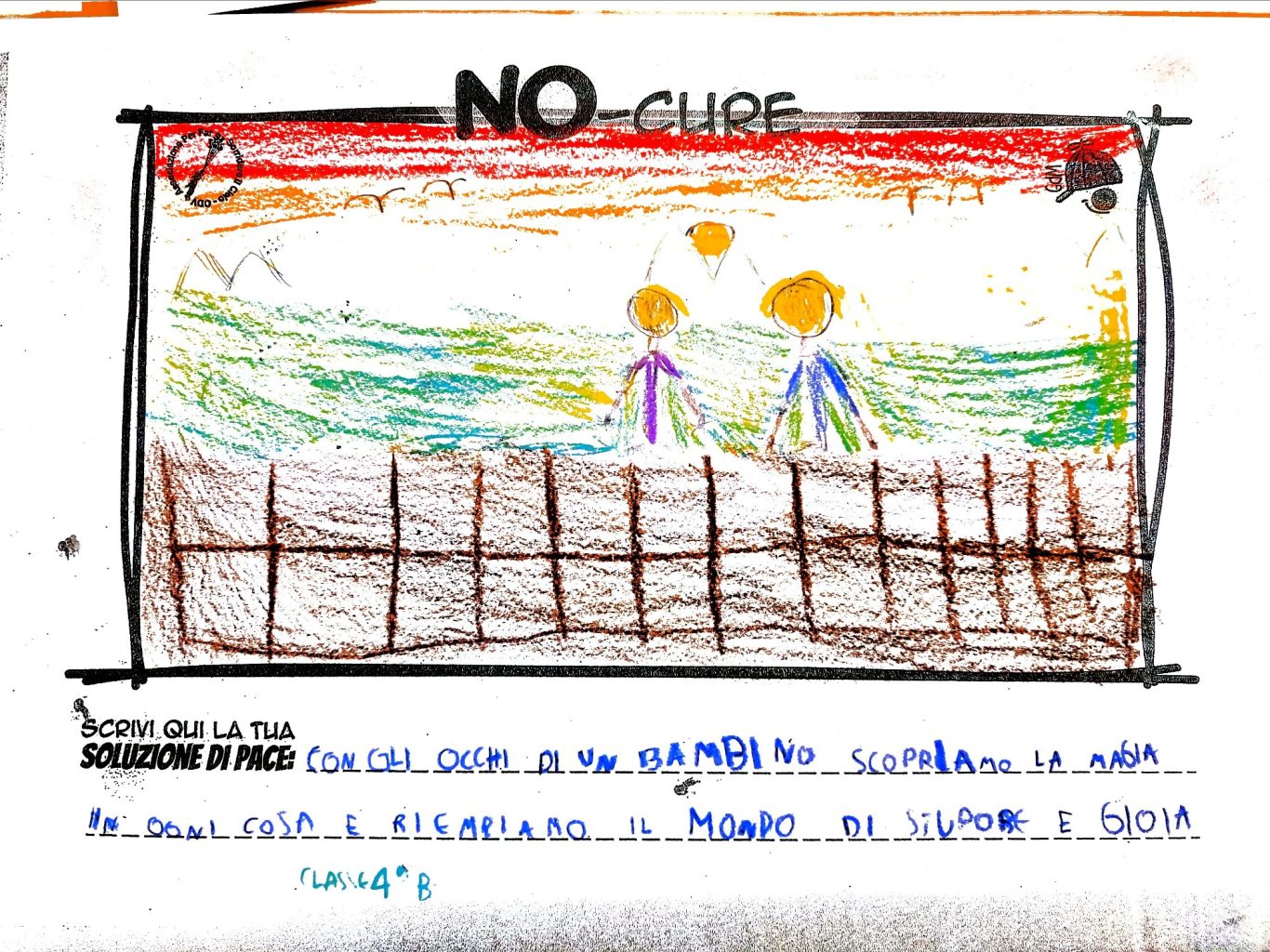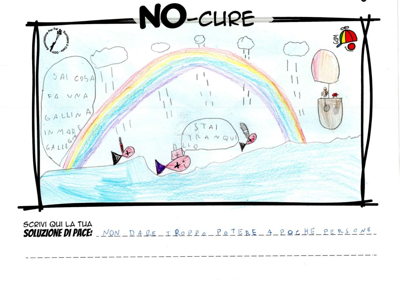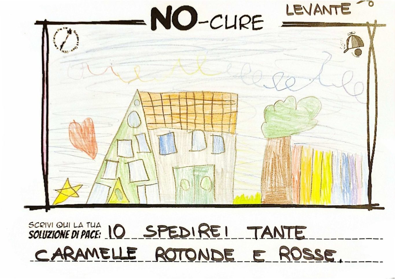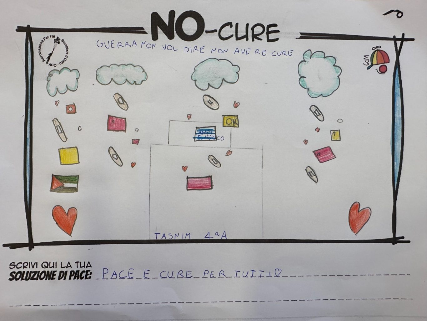 L’opera di sensibilizzazione si si esprime concretamente con la creazione di un DISEGNO DELLA MERAVIGLIA che andrà ad aiutare una delle 12 fatiche. Allo stesso modo chiederemo a tutti i partecipanti di andare a scrivere una “Soluzione di Pace” che possa aiutare anch’essa una delle 12 fatiche dei Bambini della guerra.
