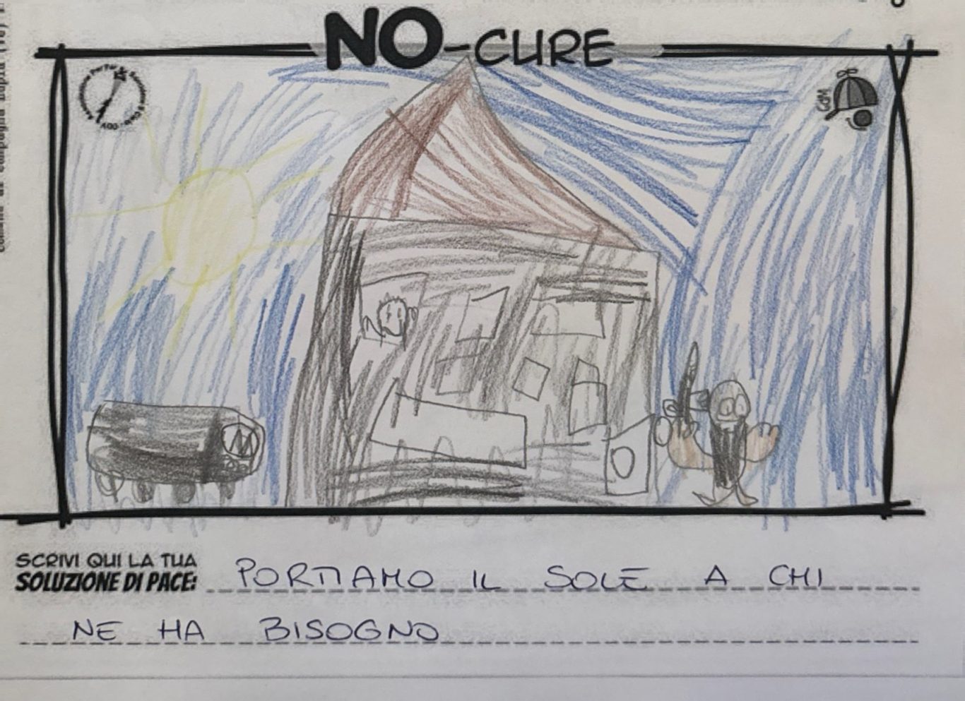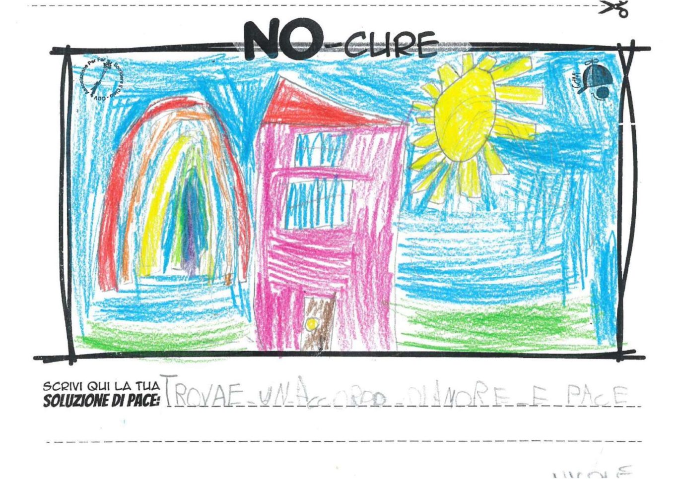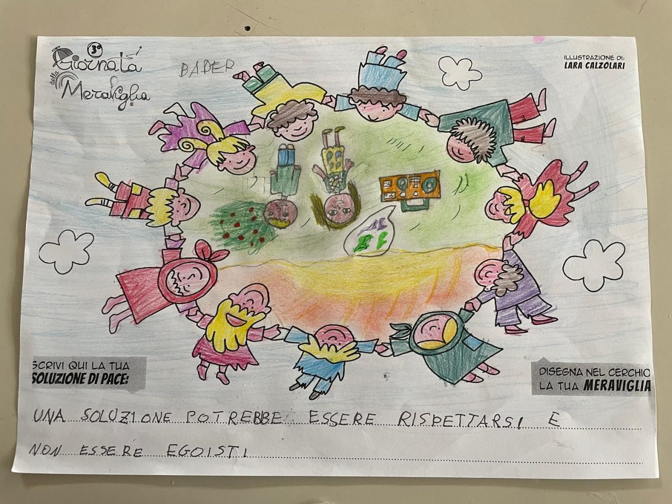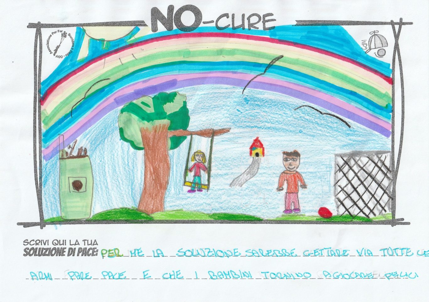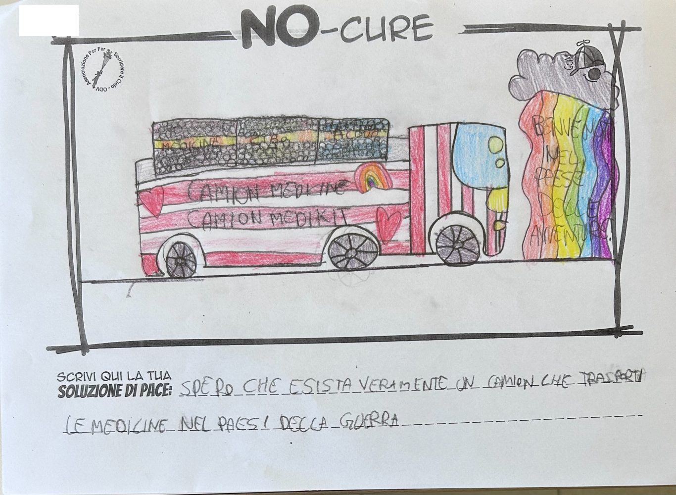L’opera di sensibilizzazione si si esprime concretamente con la creazione di un DISEGNO DELLA MERAVIGLIA che andrà ad aiutare una delle 12 fatiche. Allo stesso modo chiederemo a tutti i partecipanti di andare a scrivere una “Soluzione di Pace” che possa aiutare anch’essa una delle 12 fatiche dei Bambini della guerra.