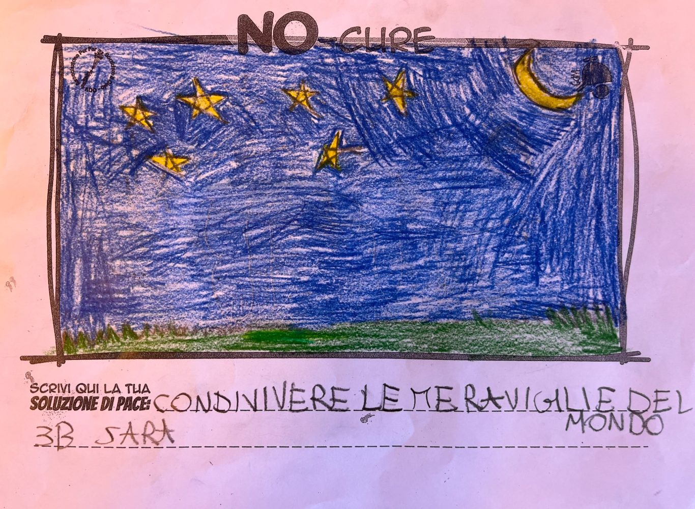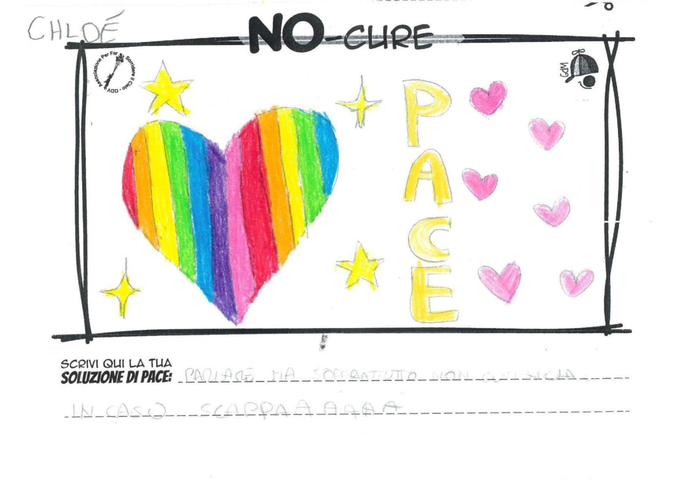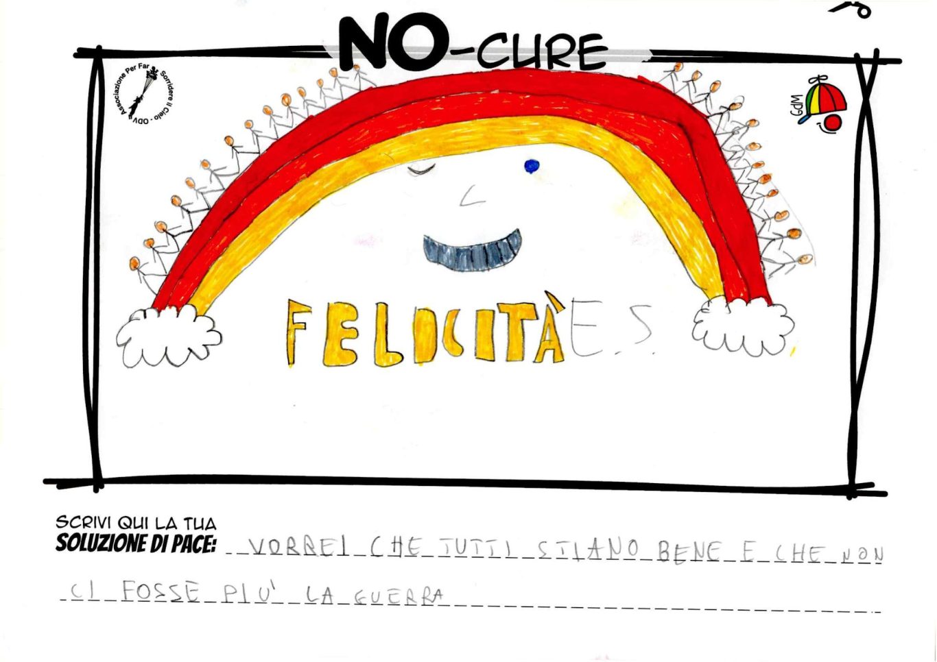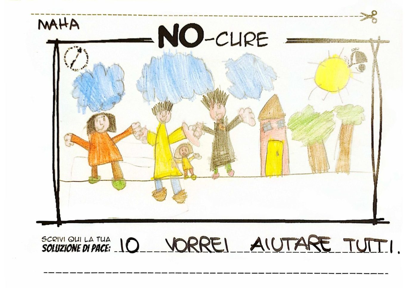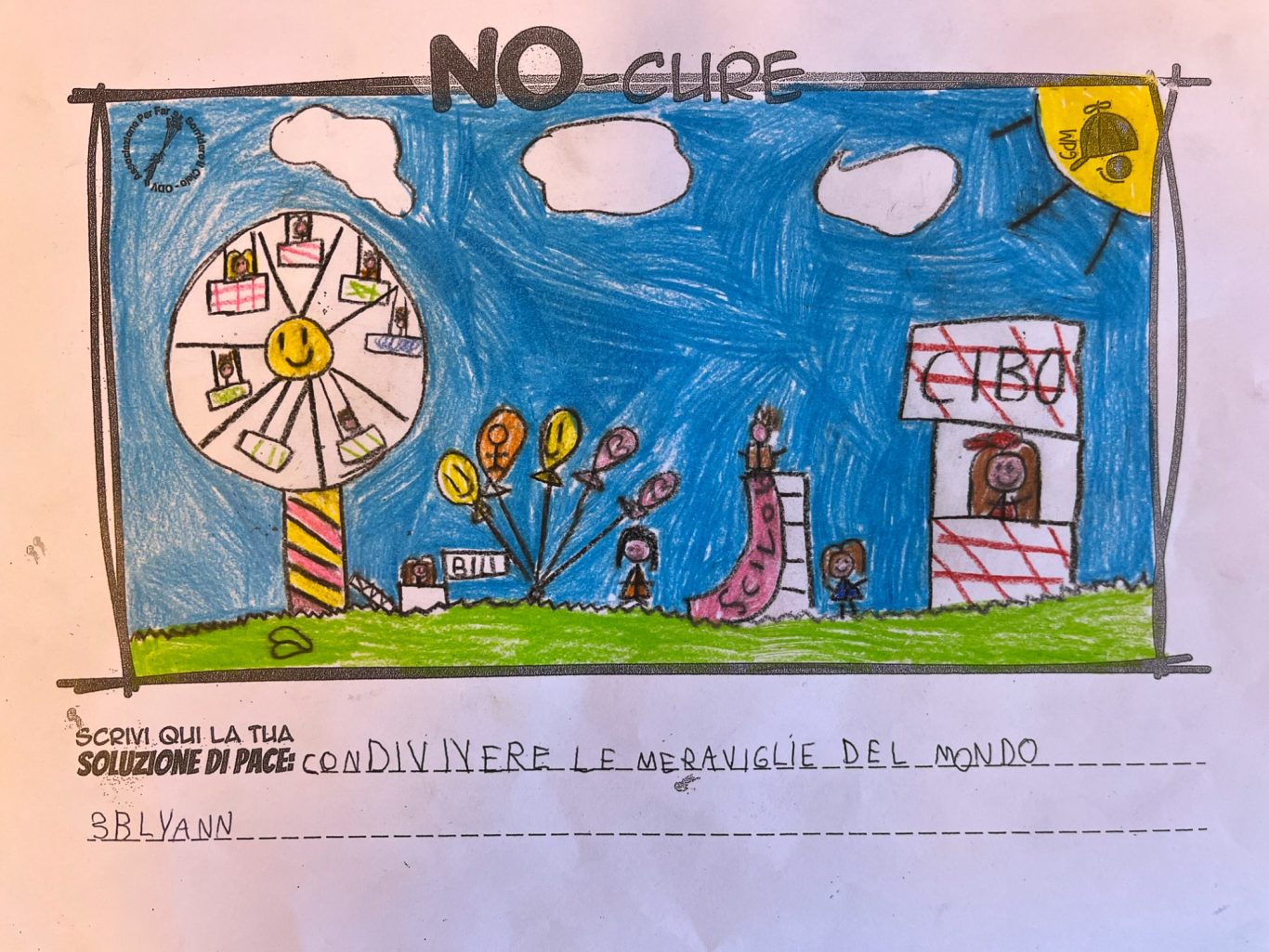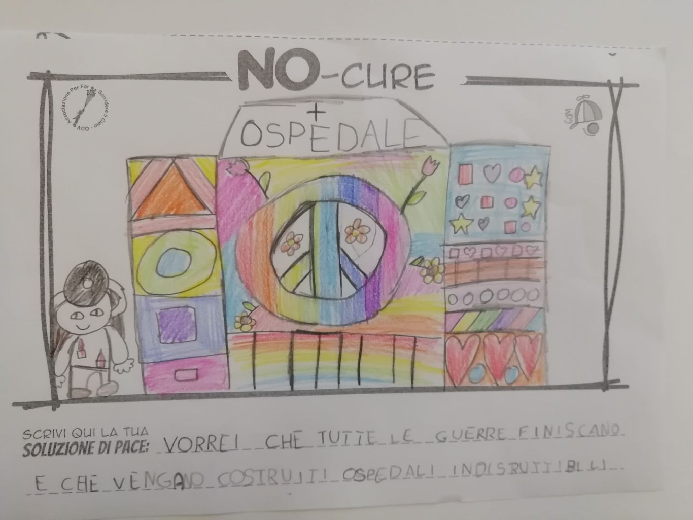 L’opera di sensibilizzazione si si esprime concretamente con la creazione di un DISEGNO DELLA MERAVIGLIA che andrà ad aiutare una delle 12 fatiche. Allo stesso modo chiederemo a tutti i partecipanti di andare a scrivere una “Soluzione di Pace” che possa aiutare anch’essa una delle 12 fatiche dei Bambini della guerra.