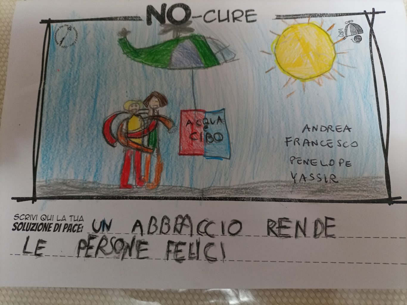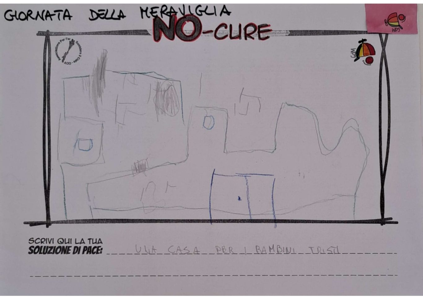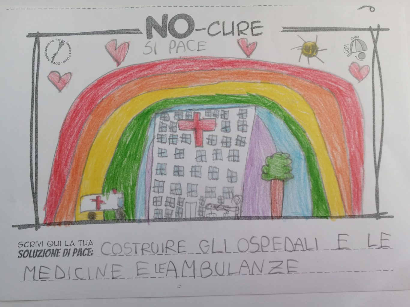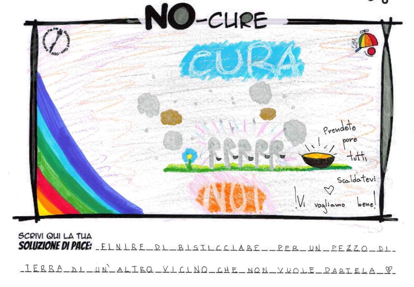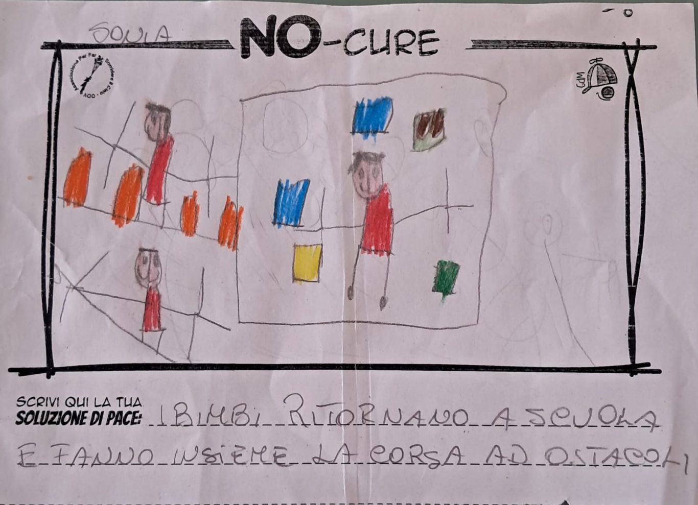 L’opera di sensibilizzazione si si esprime concretamente con la creazione di un DISEGNO DELLA MERAVIGLIA che andrà ad aiutare una delle 12 fatiche. Allo stesso modo chiederemo a tutti i partecipanti di andare a scrivere una “Soluzione di Pace” che possa aiutare anch’essa una delle 12 fatiche dei Bambini della guerra.