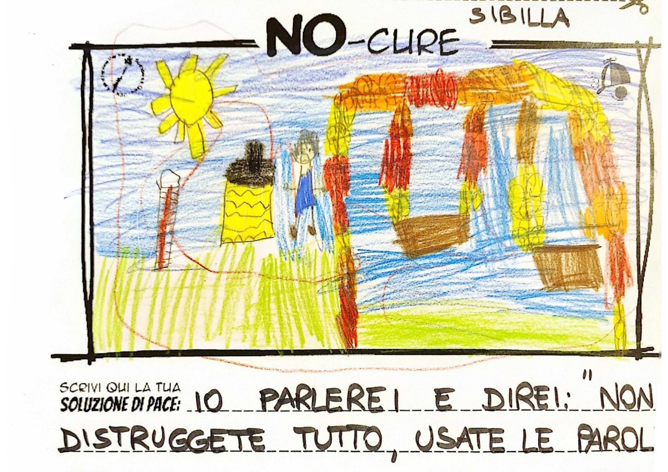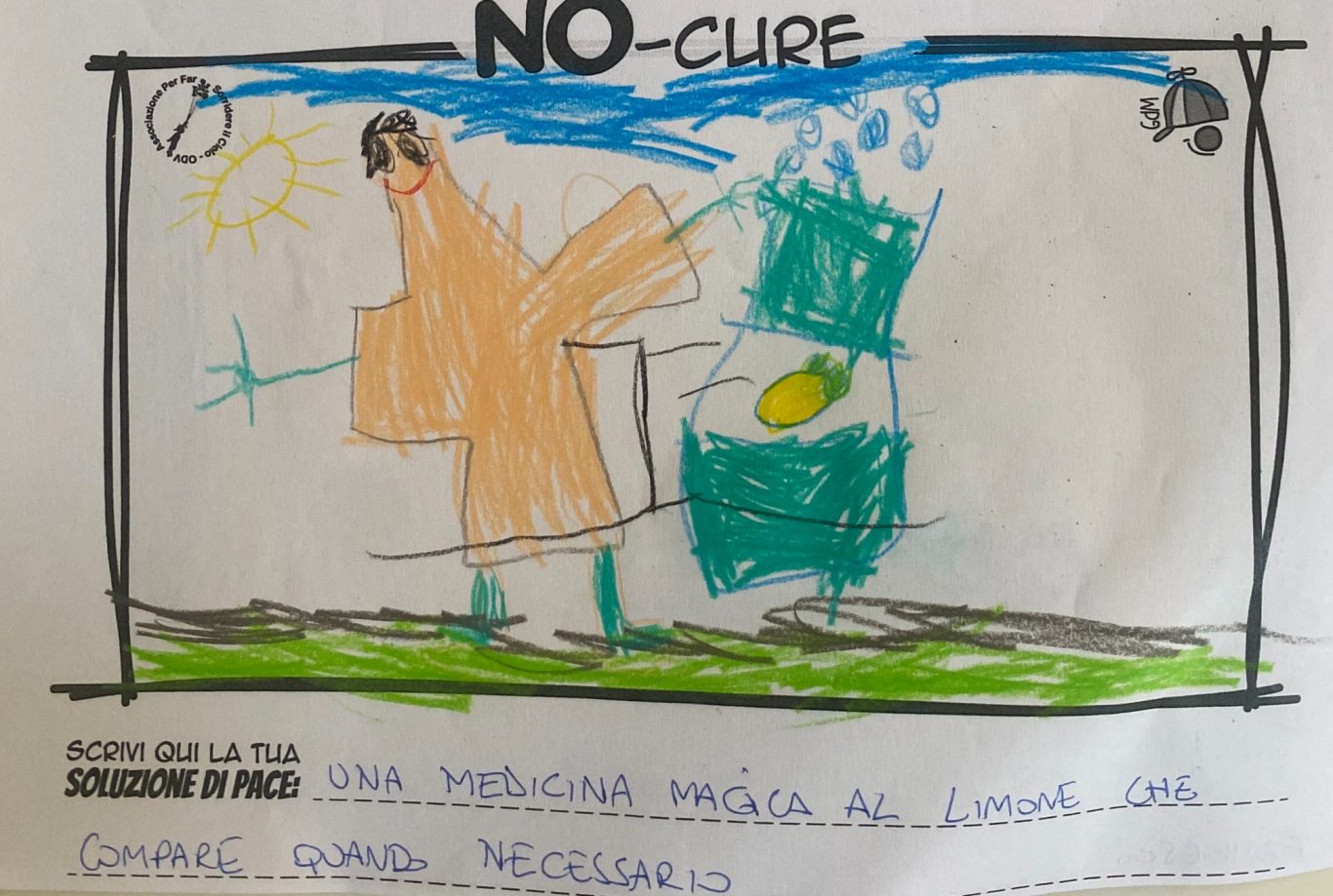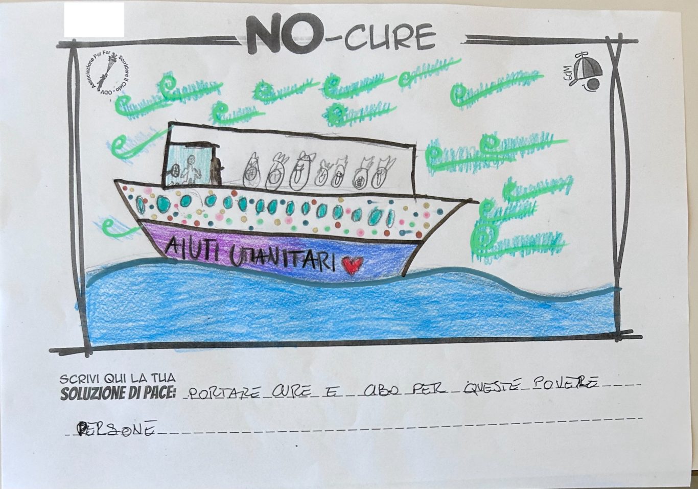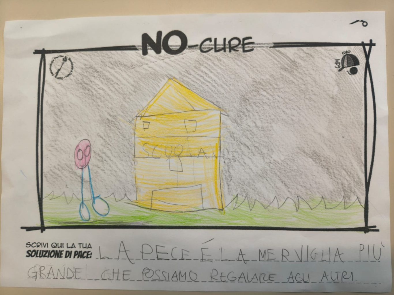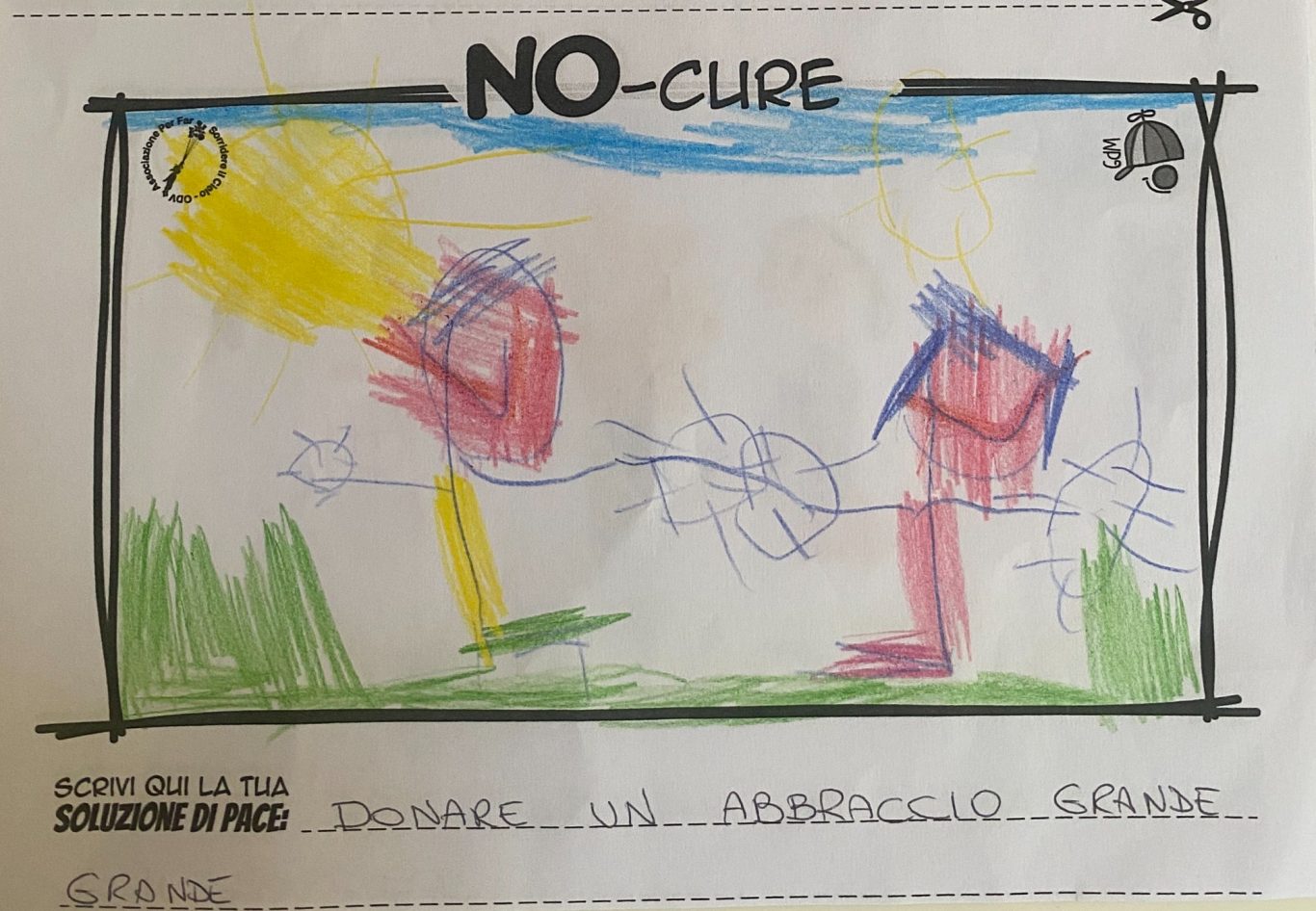 L’opera di sensibilizzazione si si esprime concretamente con la creazione di un DISEGNO DELLA MERAVIGLIA che andrà ad aiutare una delle 12 fatiche. Allo stesso modo chiederemo a tutti i partecipanti di andare a scrivere una “Soluzione di Pace” che possa aiutare anch’essa una delle 12 fatiche dei Bambini della guerra.