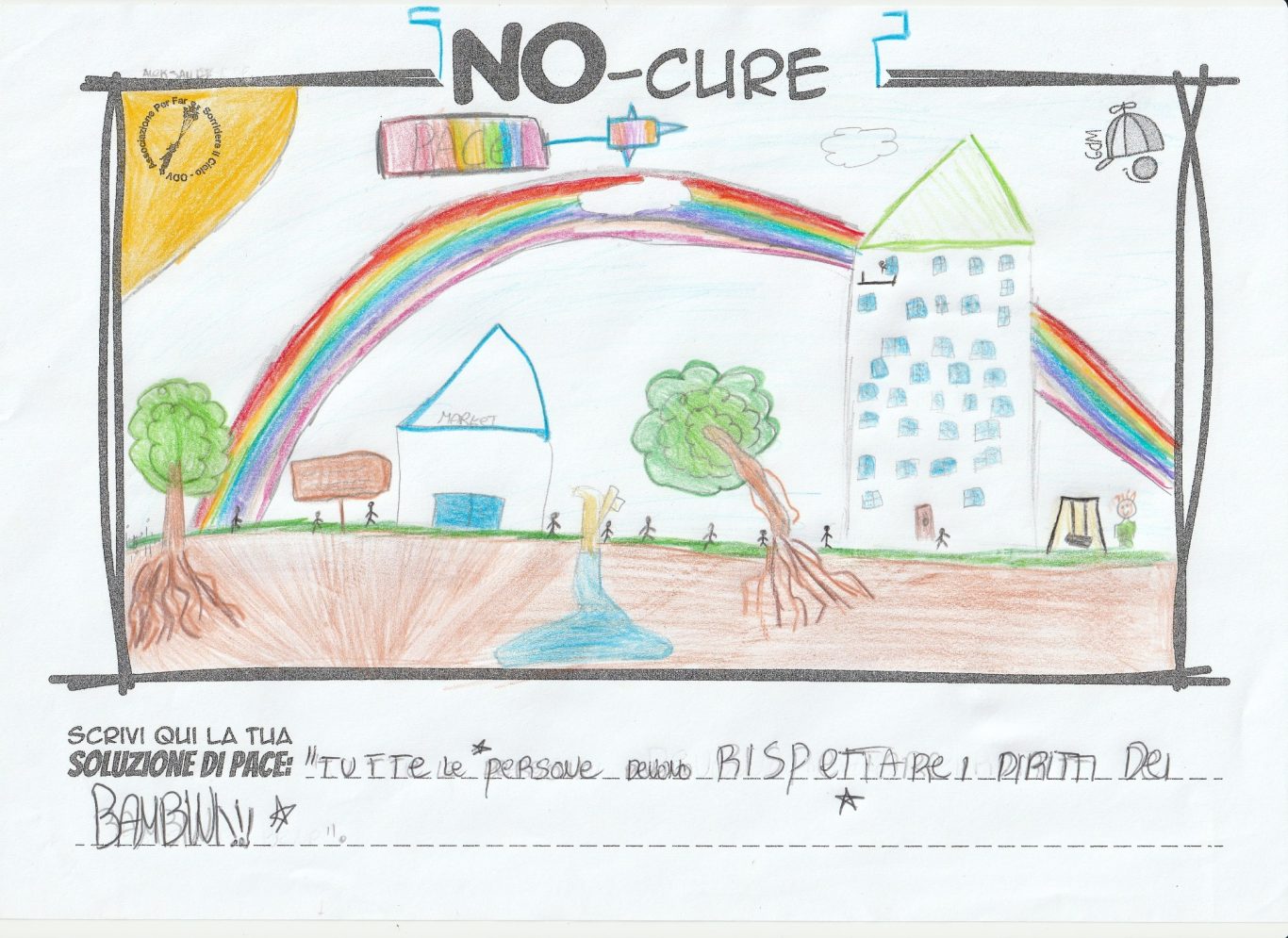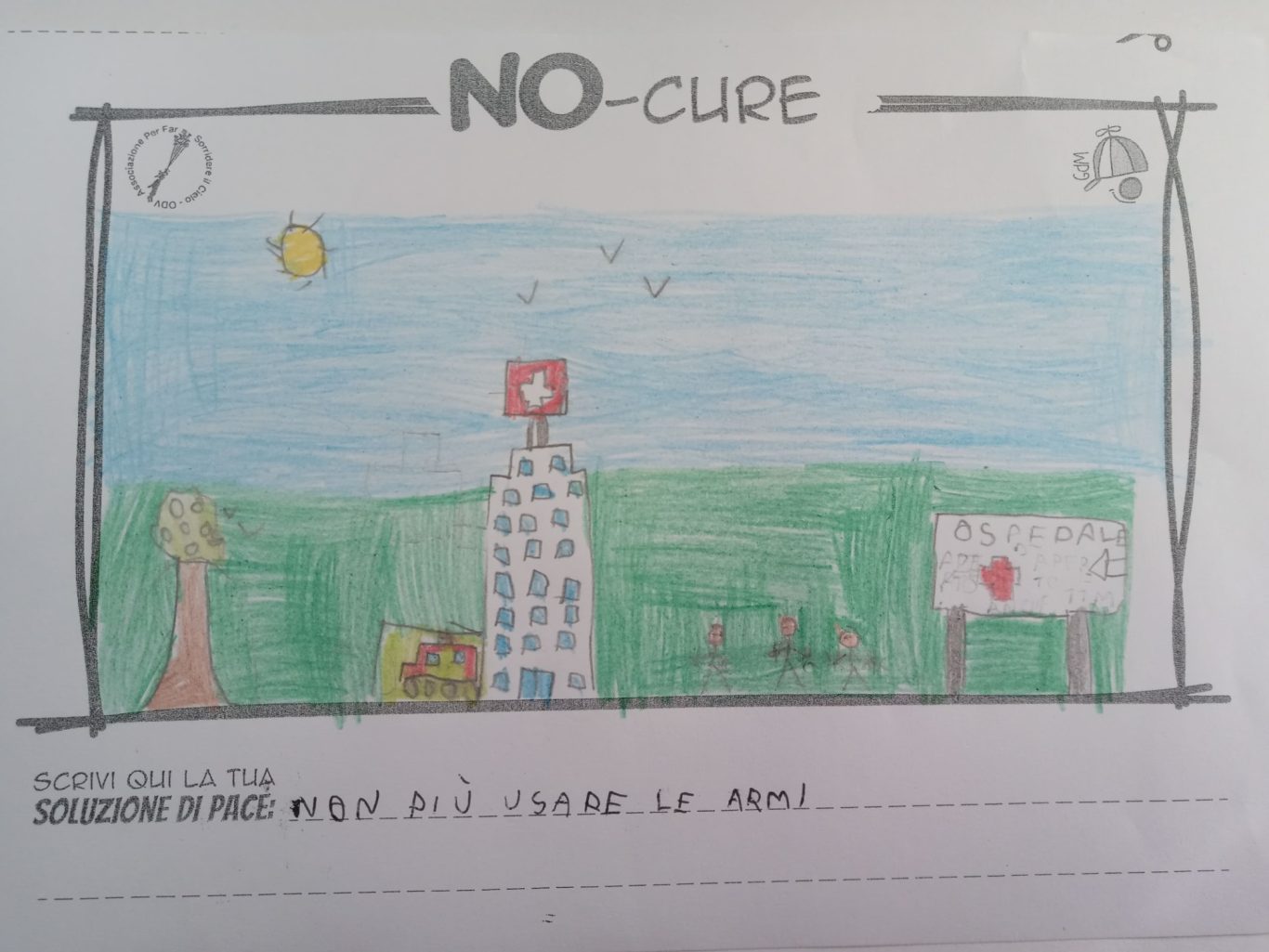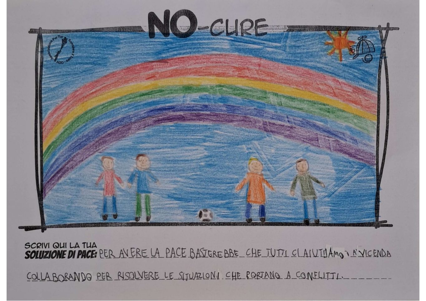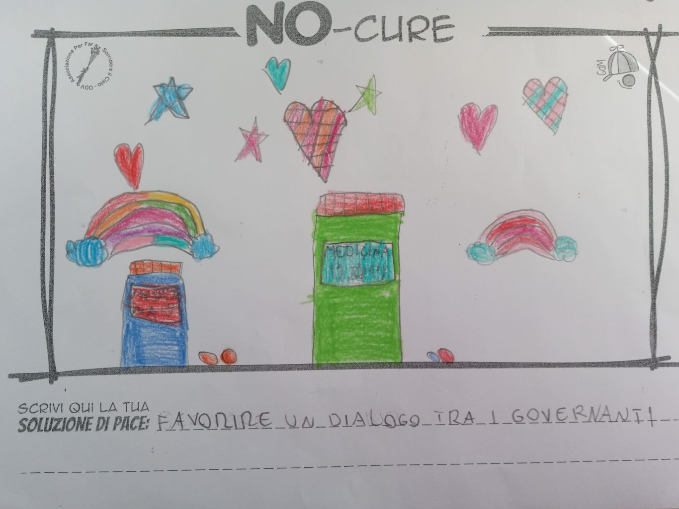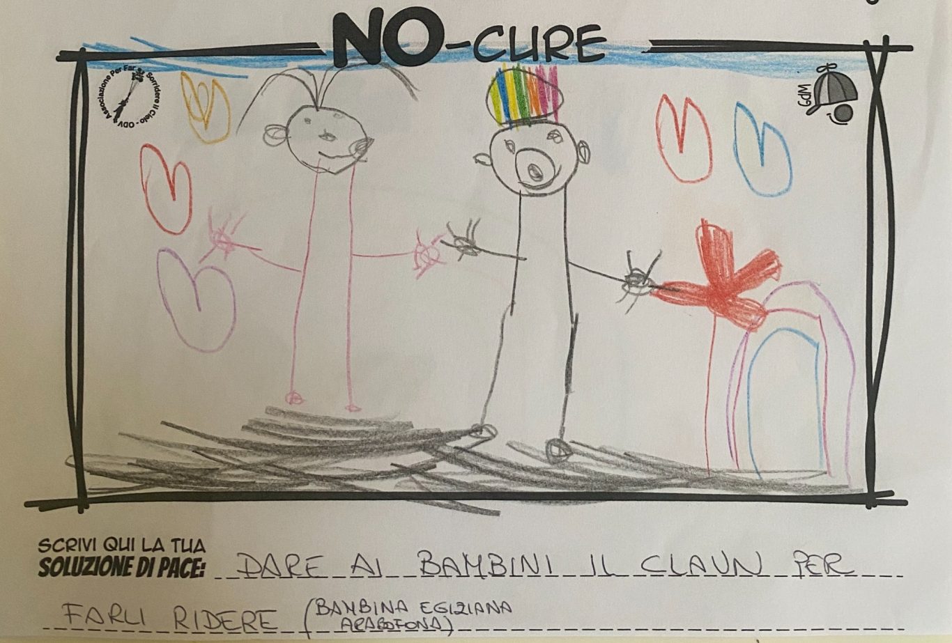 L’opera di sensibilizzazione si si esprime concretamente con la creazione di un DISEGNO DELLA MERAVIGLIA che andrà ad aiutare una delle 12 fatiche. Allo stesso modo chiederemo a tutti i partecipanti di andare a scrivere una “Soluzione di Pace” che possa aiutare anch’essa una delle 12 fatiche dei Bambini della guerra.