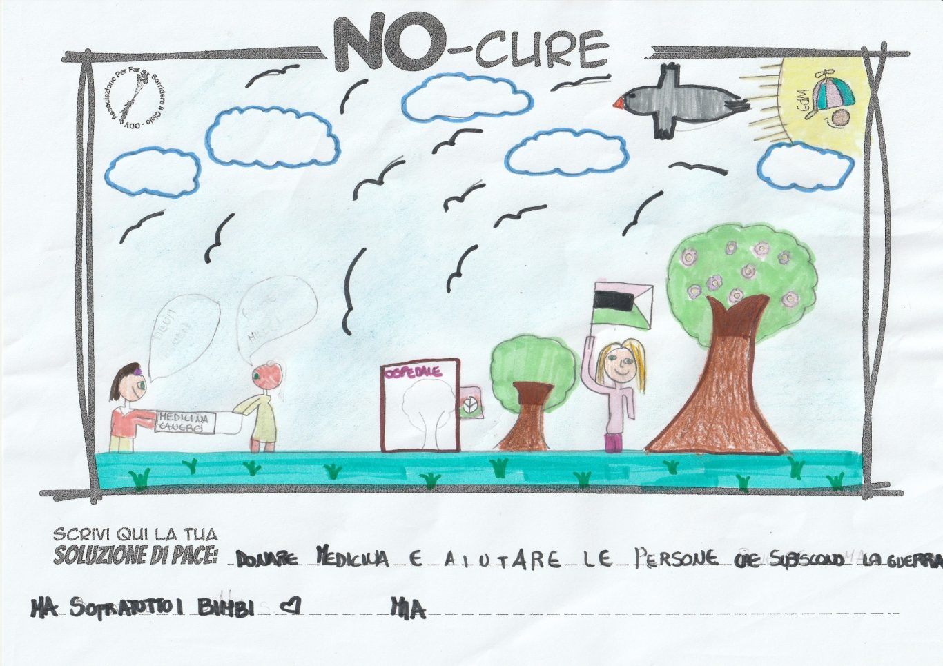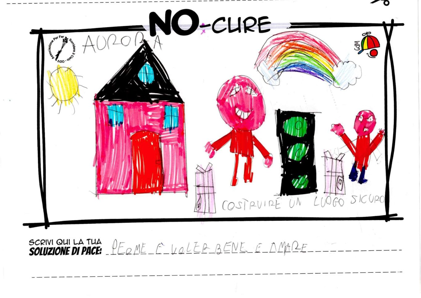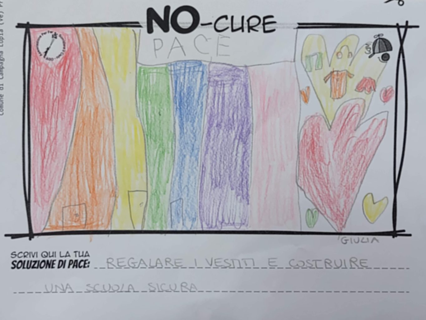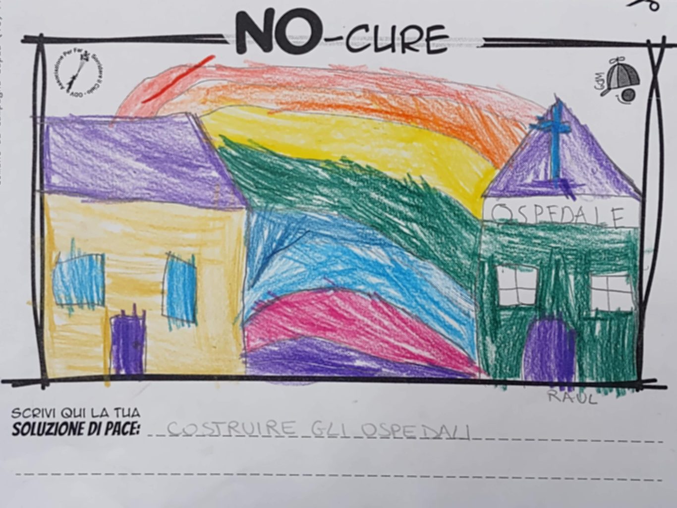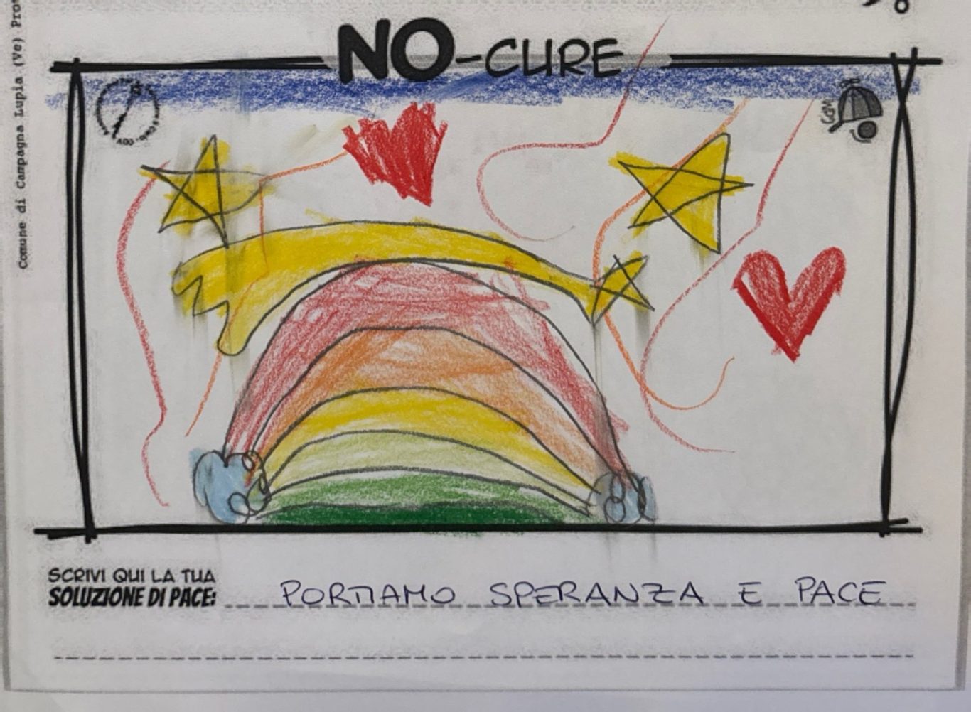 L’opera di sensibilizzazione si si esprime concretamente con la creazione di un DISEGNO DELLA MERAVIGLIA che andrà ad aiutare una delle 12 fatiche. Allo stesso modo chiederemo a tutti i partecipanti di andare a scrivere una “Soluzione di Pace” che possa aiutare anch’essa una delle 12 fatiche dei Bambini della guerra.