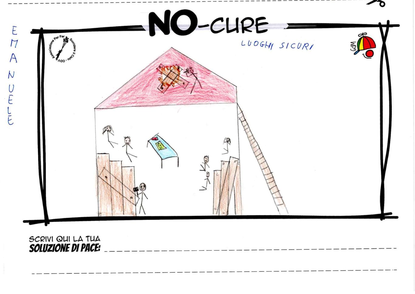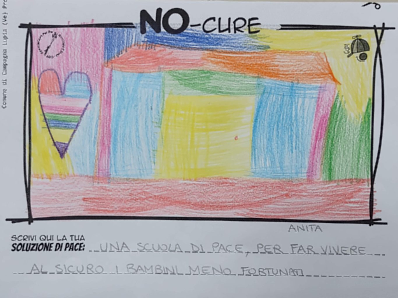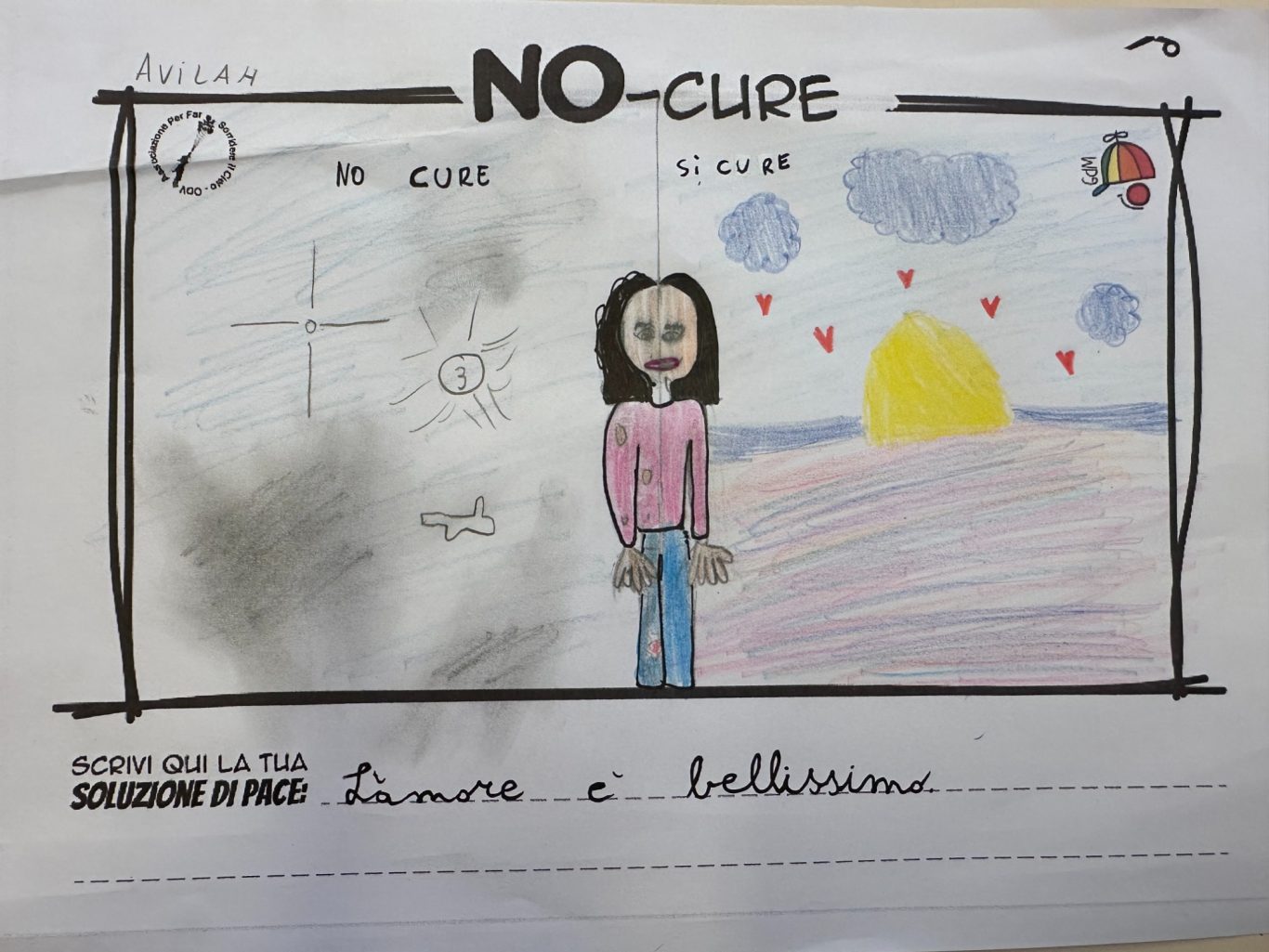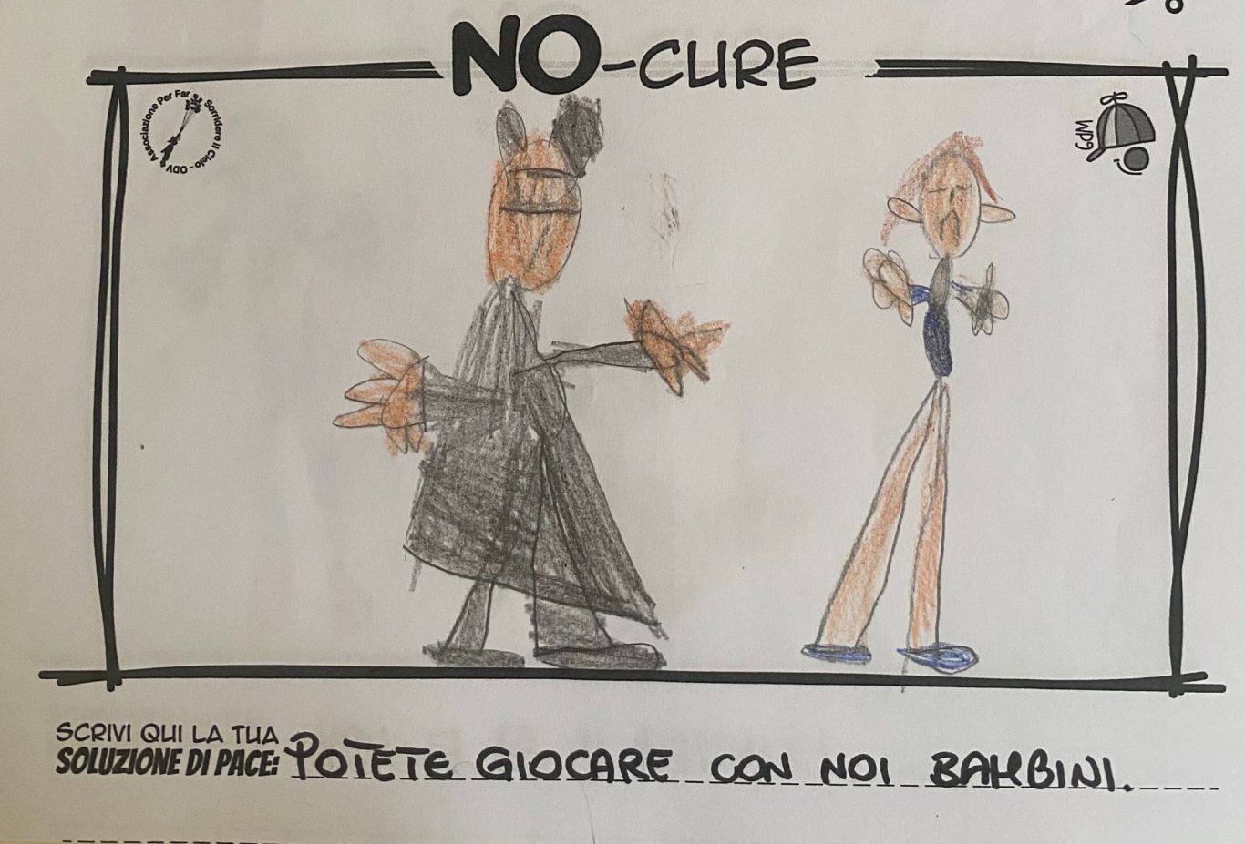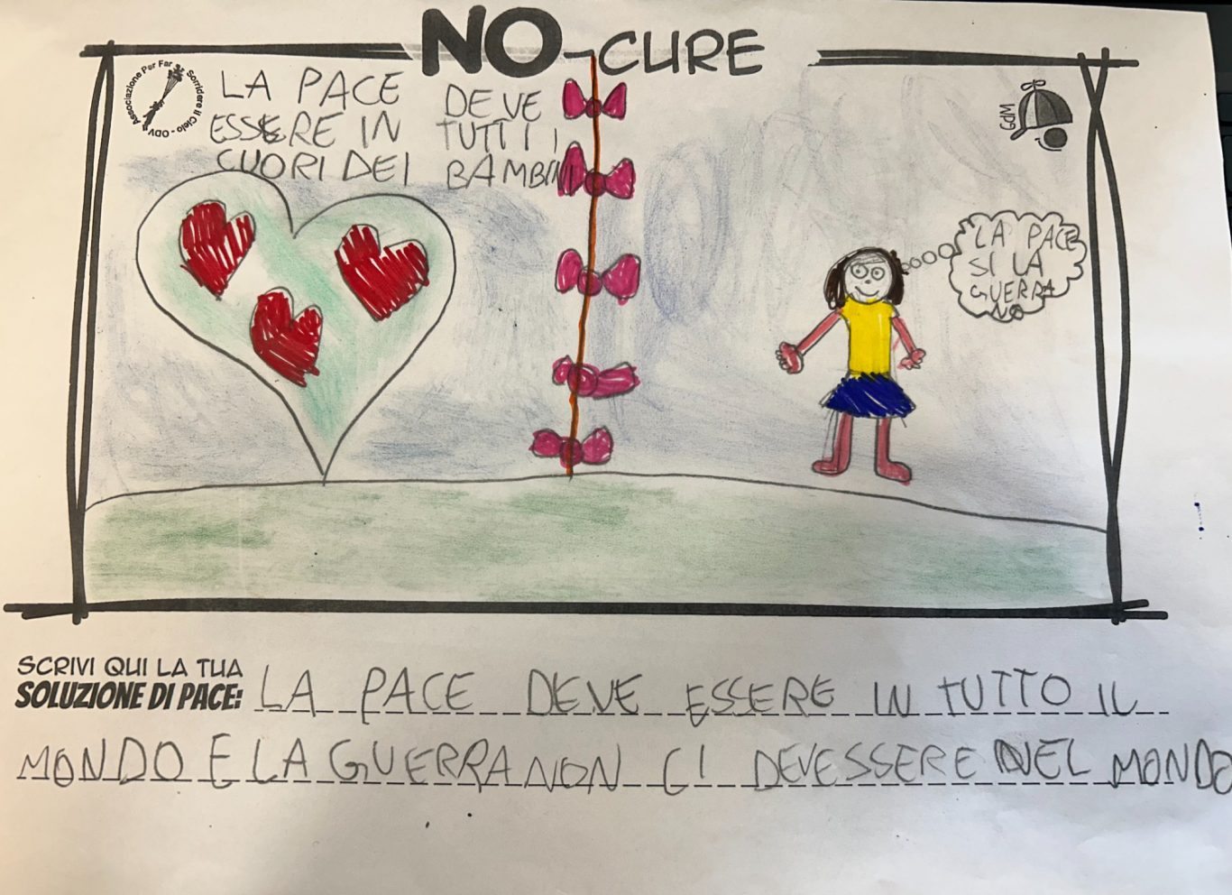 L’opera di sensibilizzazione si si esprime concretamente con la creazione di un DISEGNO DELLA MERAVIGLIA che andrà ad aiutare una delle 12 fatiche. Allo stesso modo chiederemo a tutti i partecipanti di andare a scrivere una “Soluzione di Pace” che possa aiutare anch’essa una delle 12 fatiche dei Bambini della guerra.