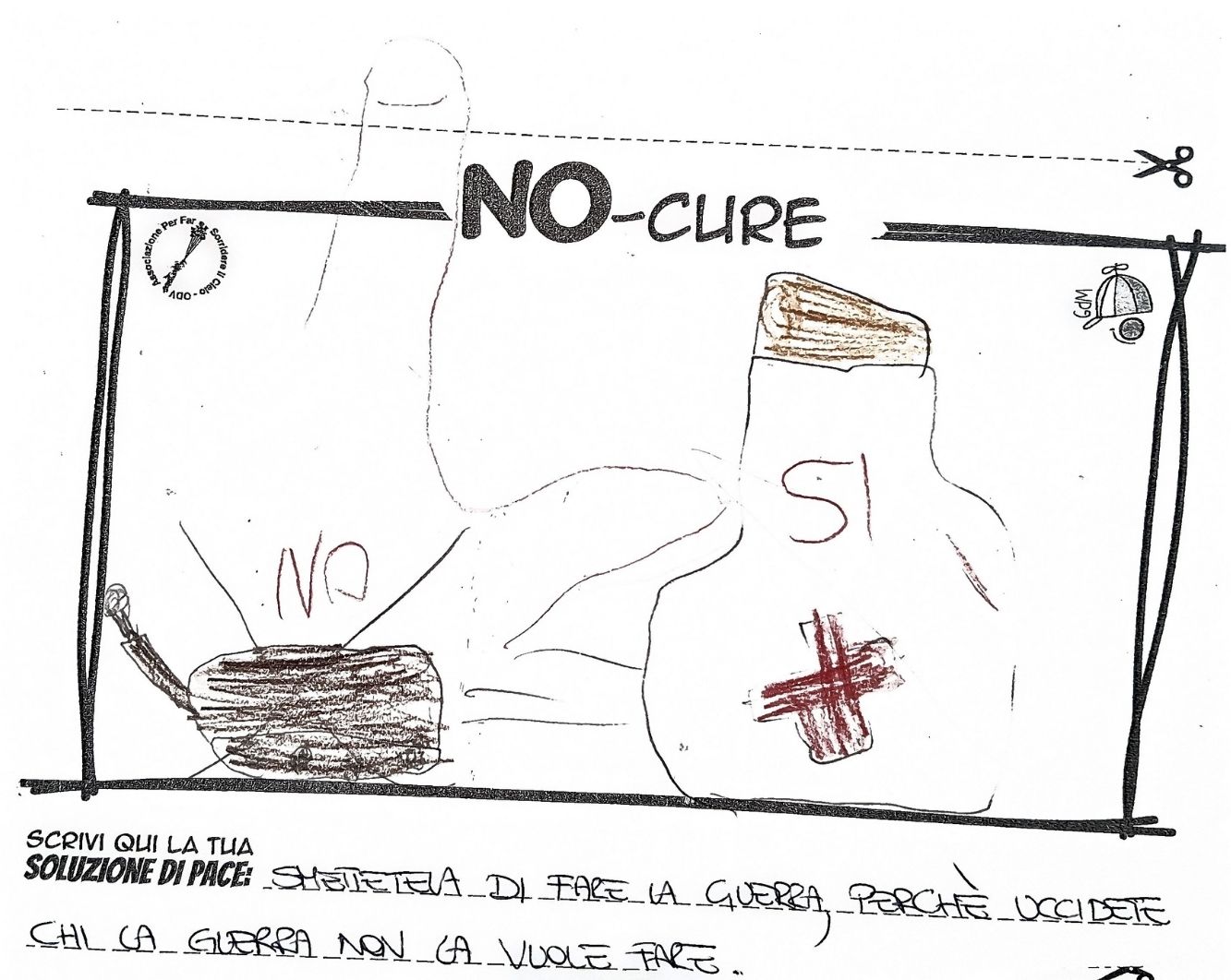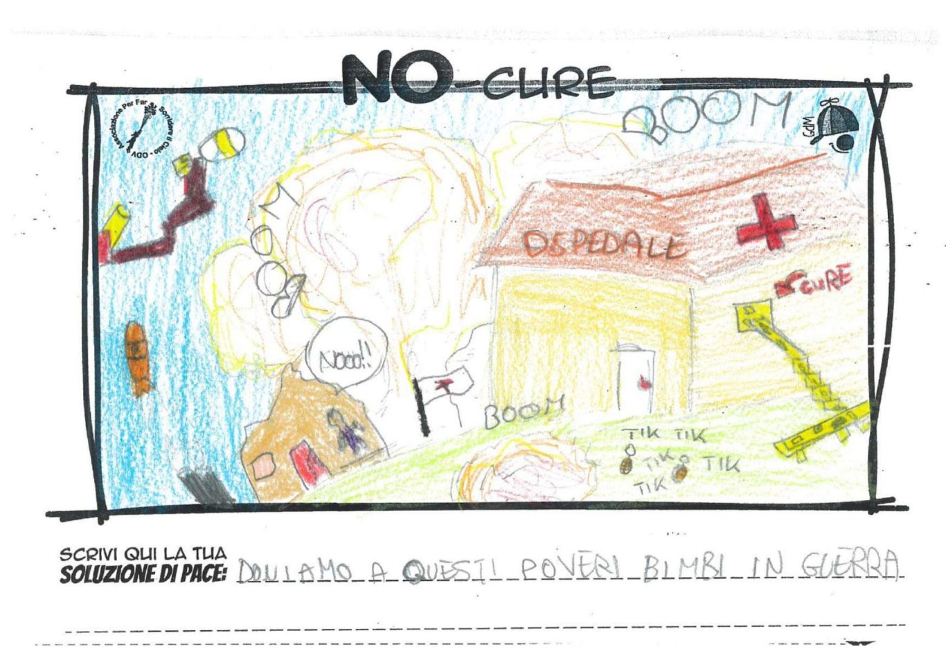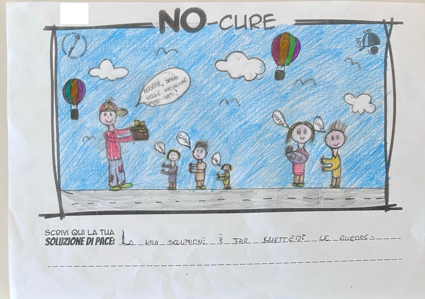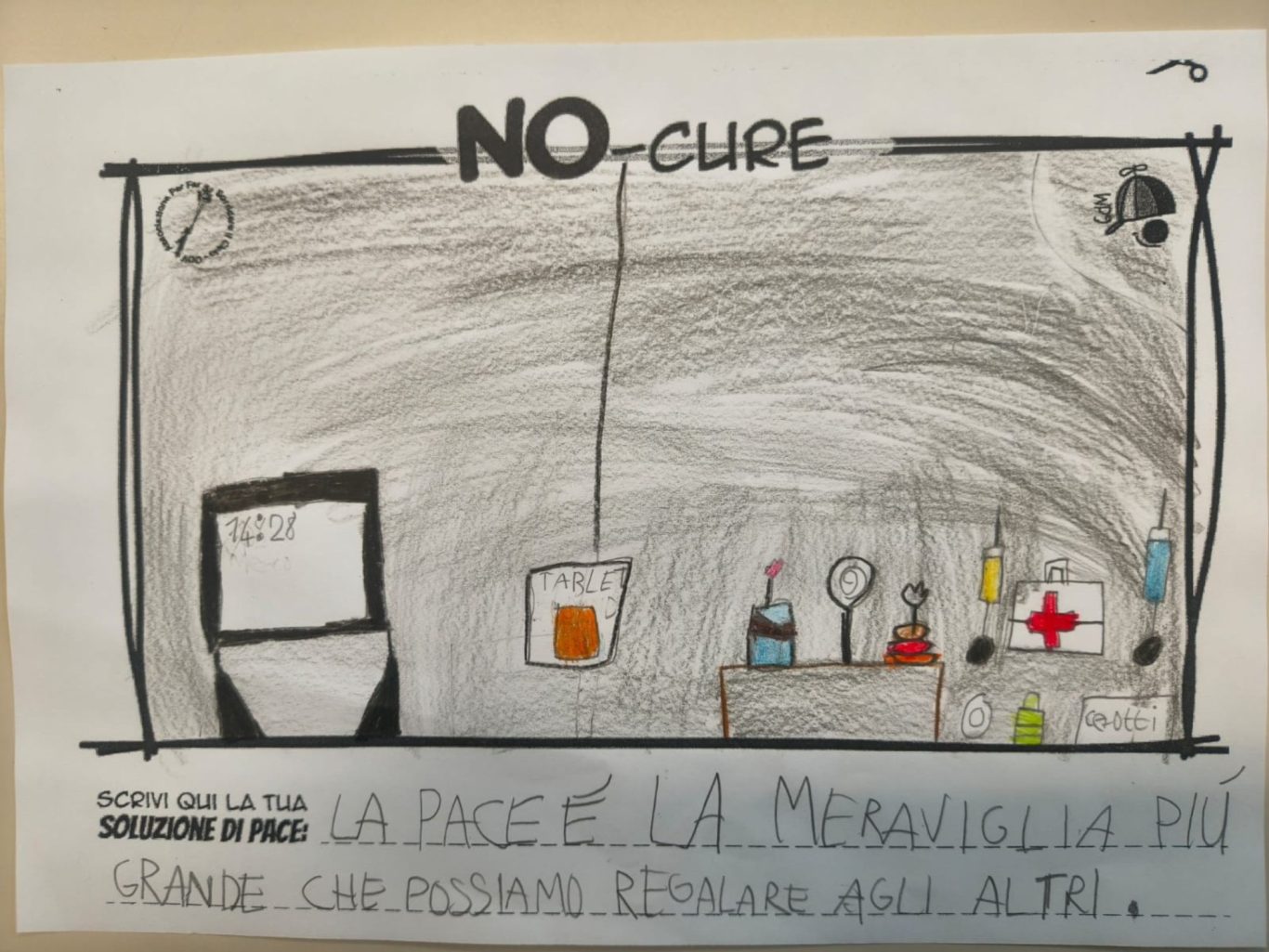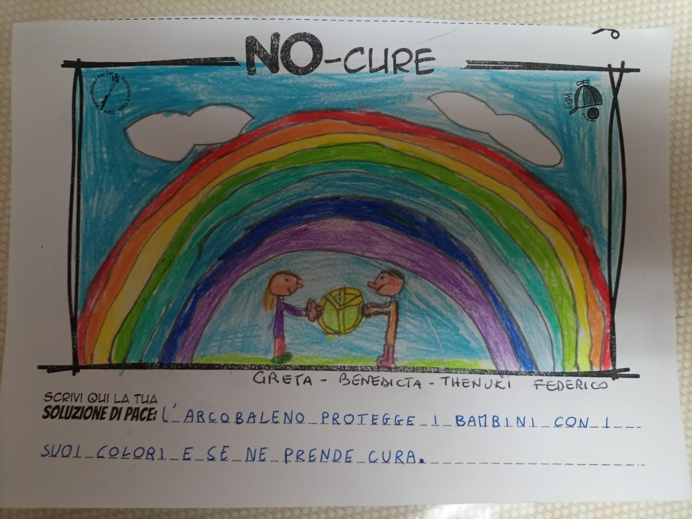 L’opera di sensibilizzazione si si esprime concretamente con la creazione di un DISEGNO DELLA MERAVIGLIA che andrà ad aiutare una delle 12 fatiche. Allo stesso modo chiederemo a tutti i partecipanti di andare a scrivere una “Soluzione di Pace” che possa aiutare anch’essa una delle 12 fatiche dei Bambini della guerra.