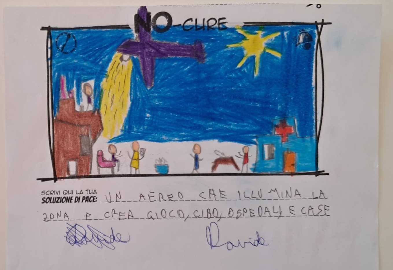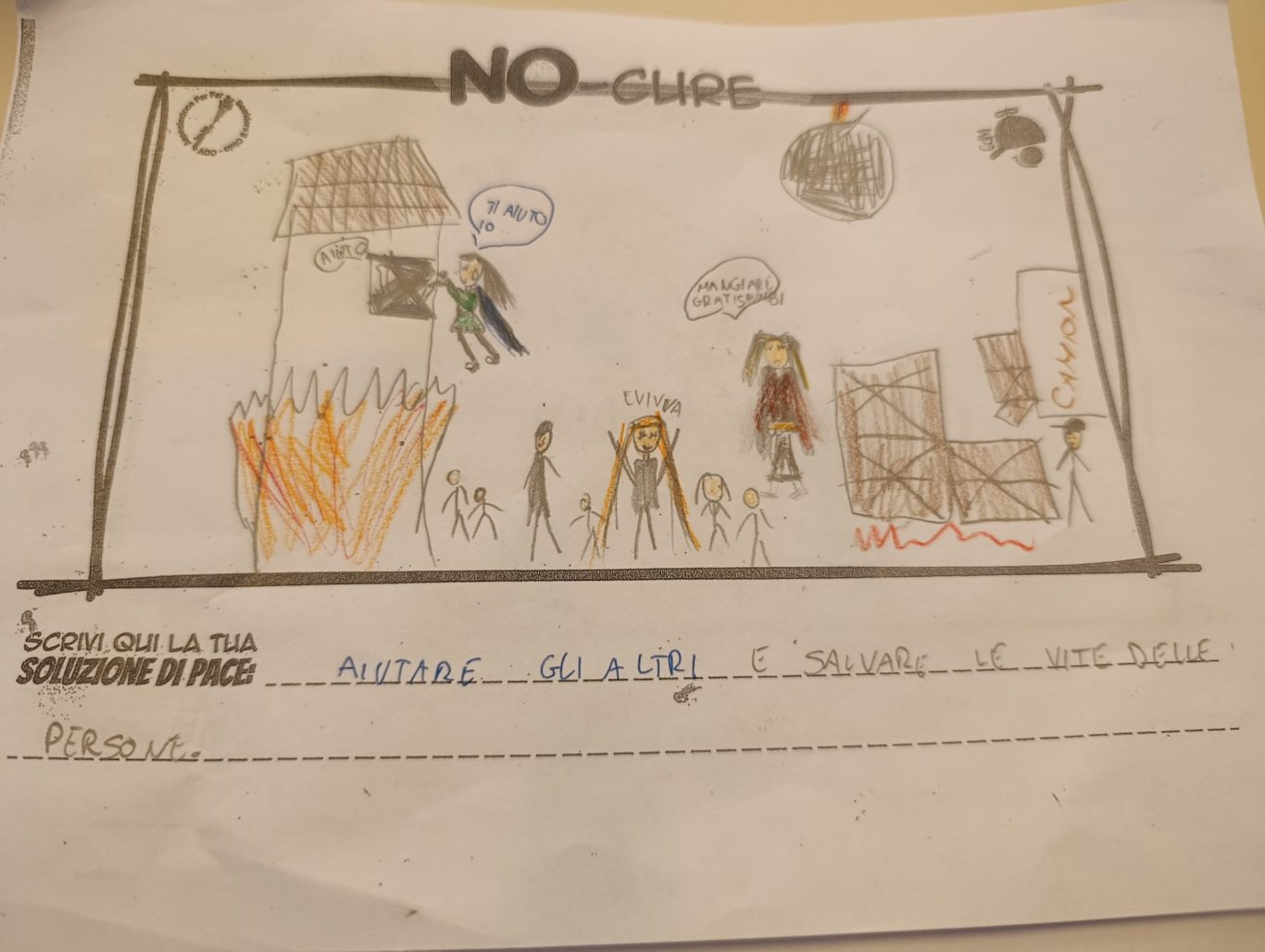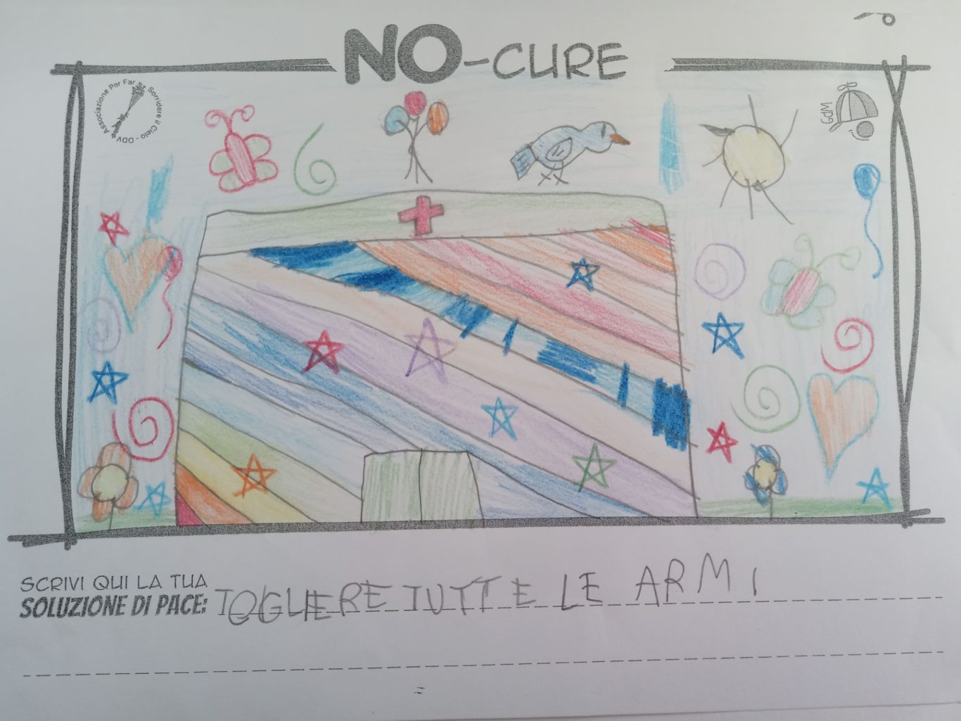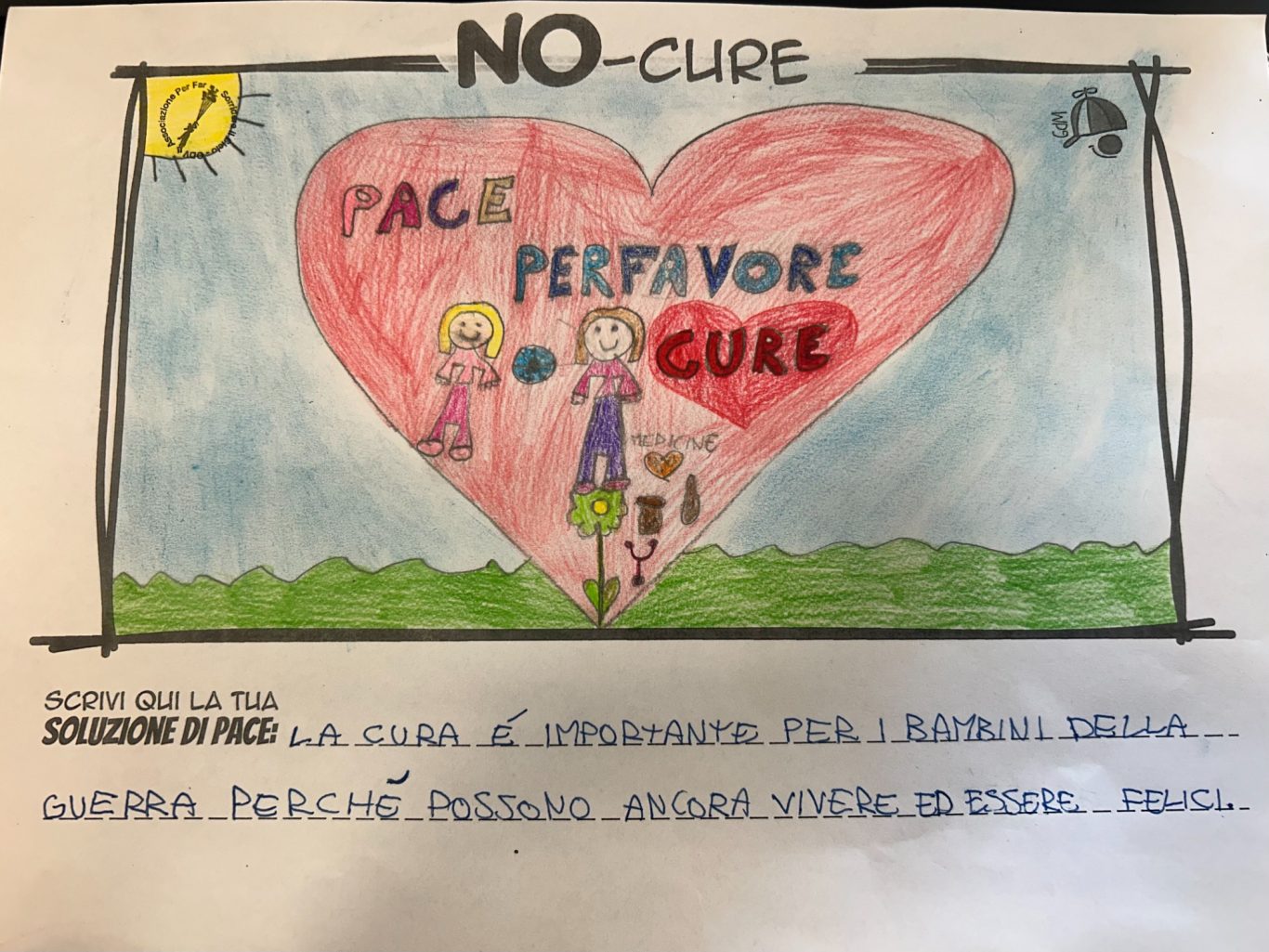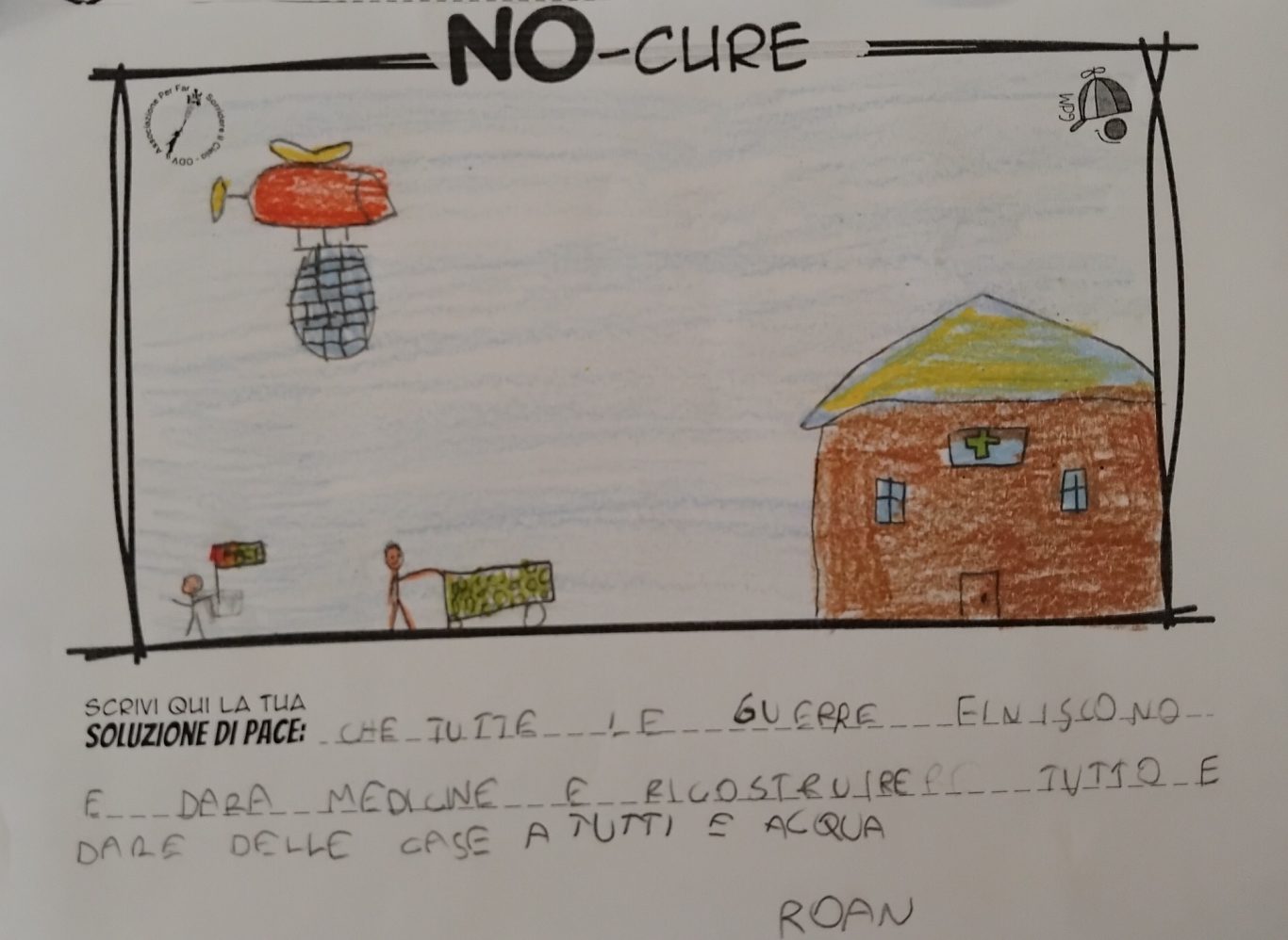 L’opera di sensibilizzazione si si esprime concretamente con la creazione di un DISEGNO DELLA MERAVIGLIA che andrà ad aiutare una delle 12 fatiche. Allo stesso modo chiederemo a tutti i partecipanti di andare a scrivere una “Soluzione di Pace” che possa aiutare anch’essa una delle 12 fatiche dei Bambini della guerra.