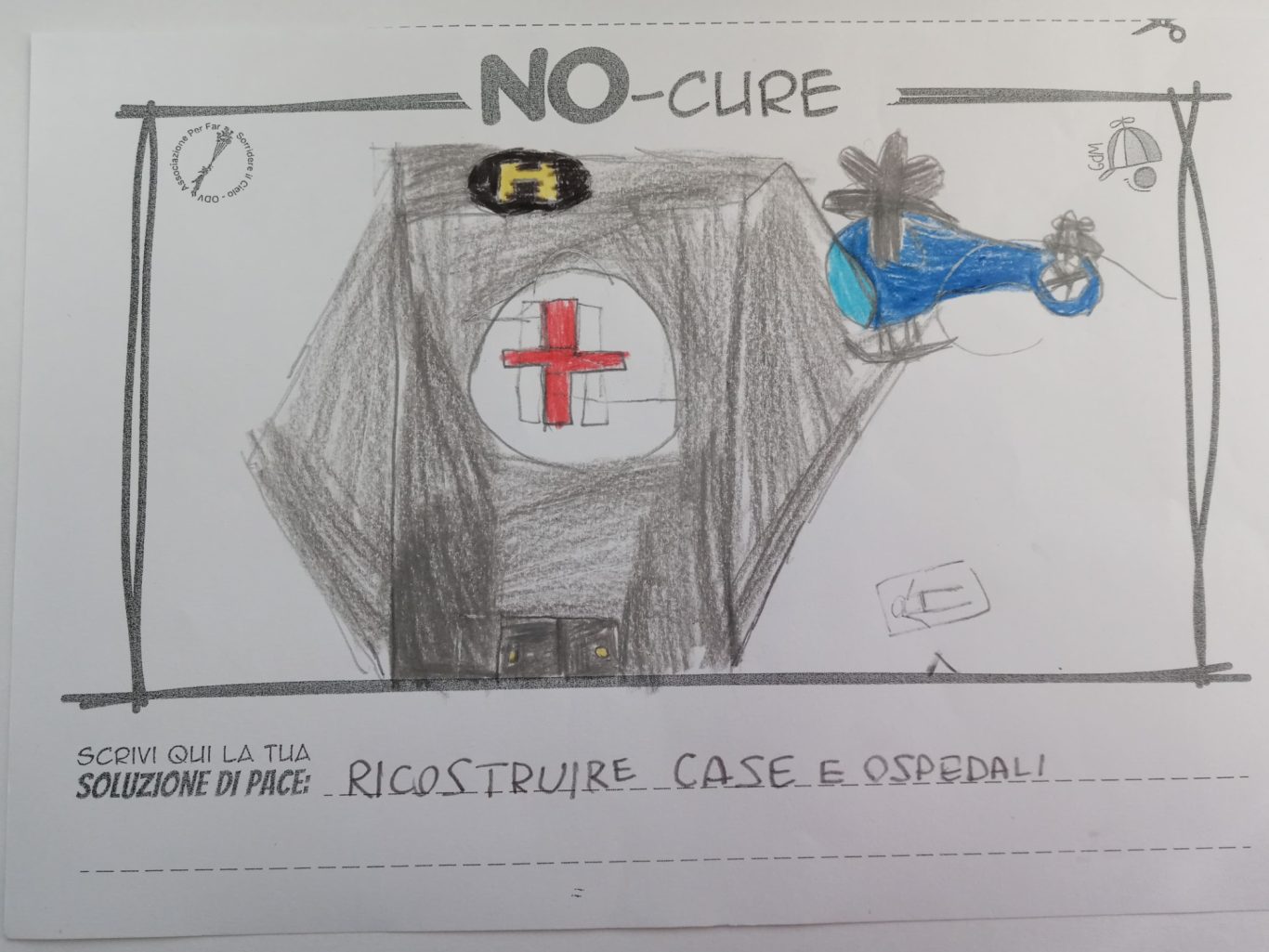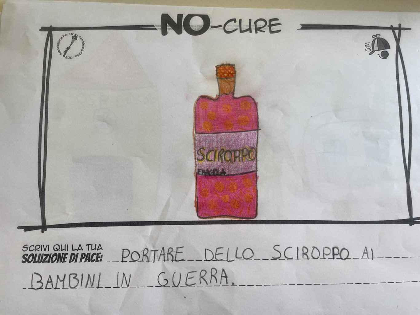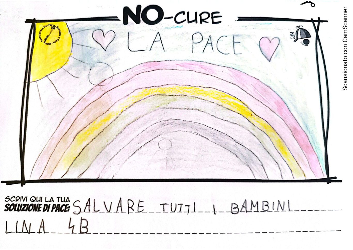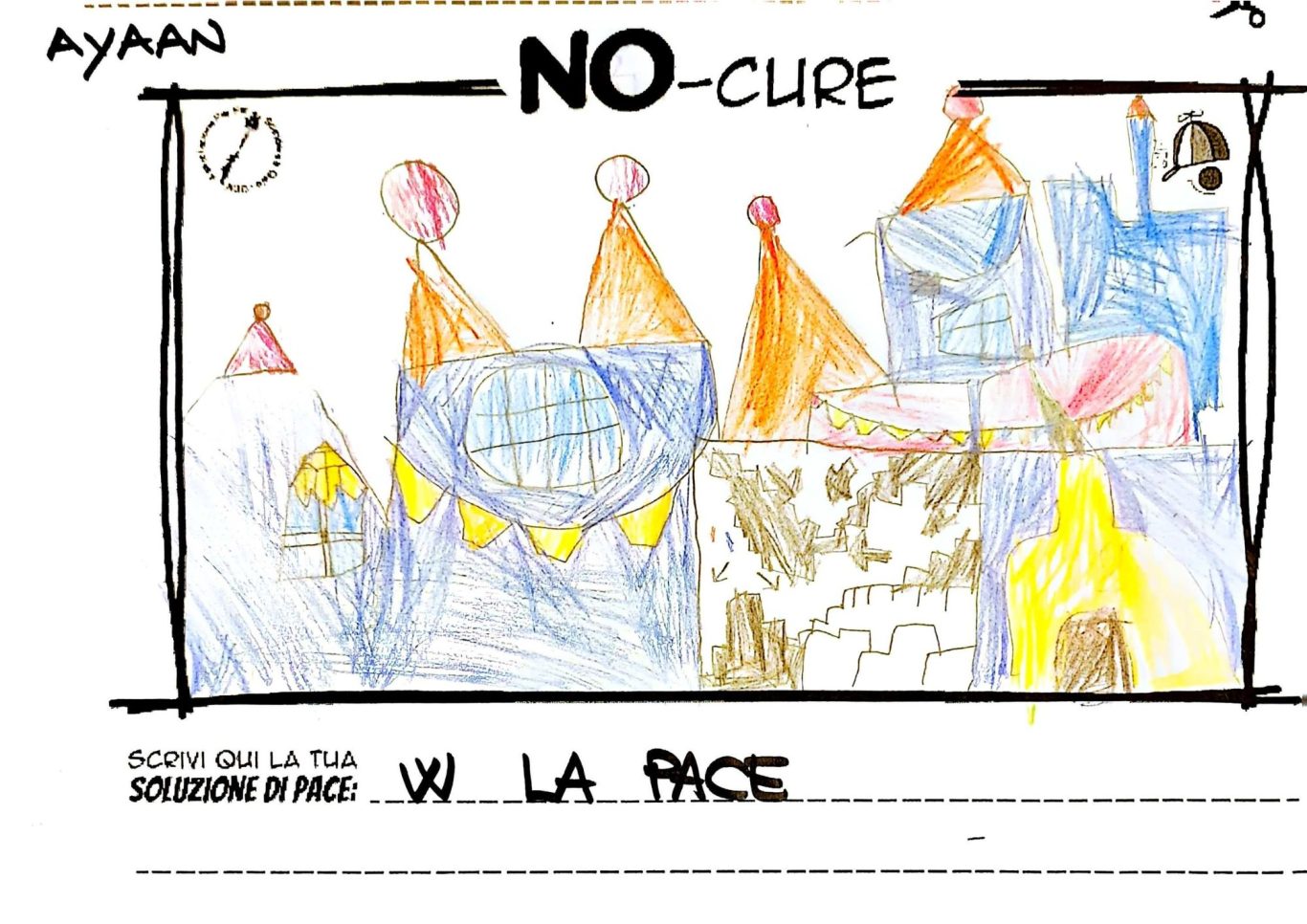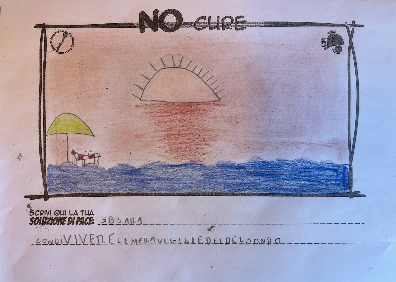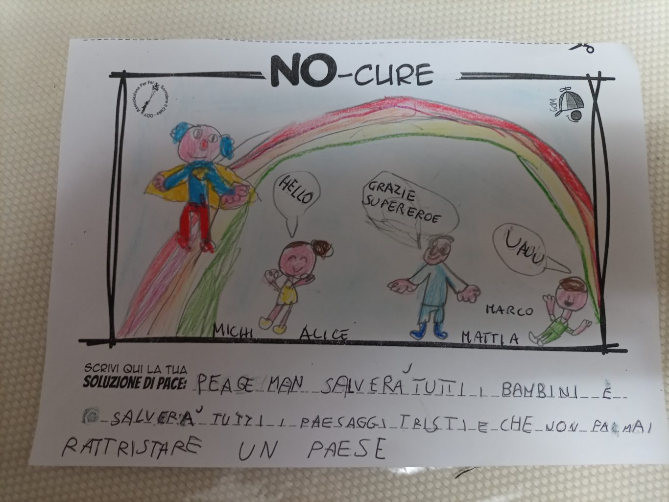 L’opera di sensibilizzazione si si esprime concretamente con la creazione di un DISEGNO DELLA MERAVIGLIA che andrà ad aiutare una delle 12 fatiche. Allo stesso modo chiederemo a tutti i partecipanti di andare a scrivere una “Soluzione di Pace” che possa aiutare anch’essa una delle 12 fatiche dei Bambini della guerra.
