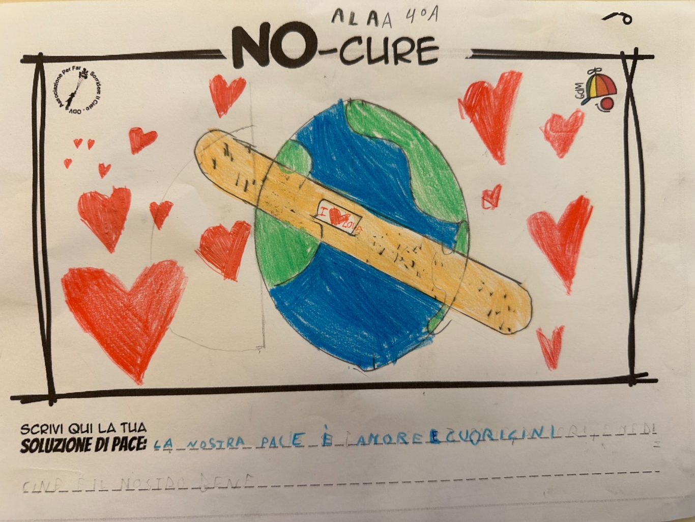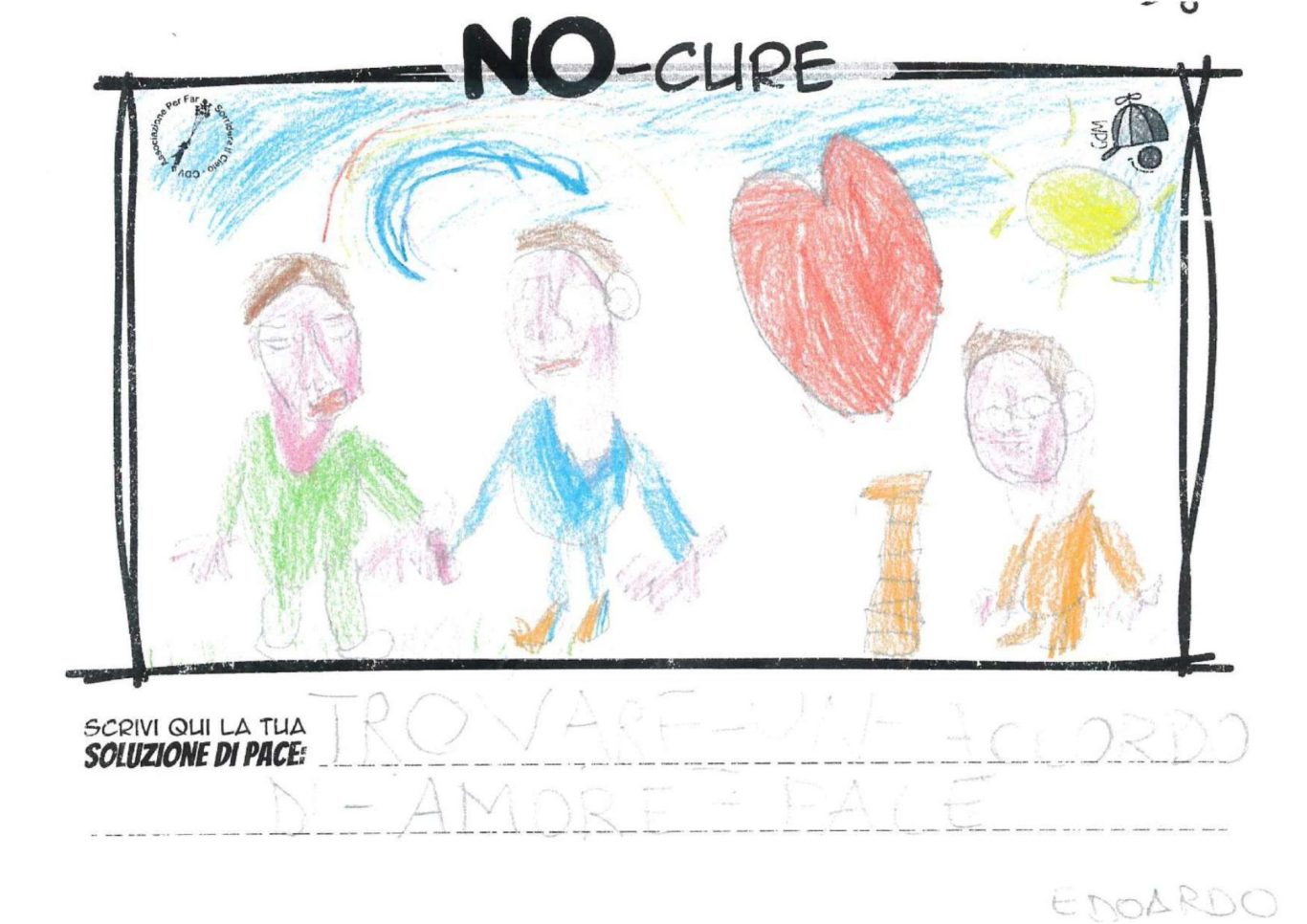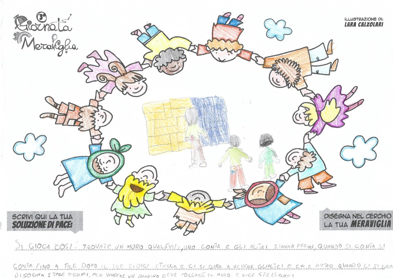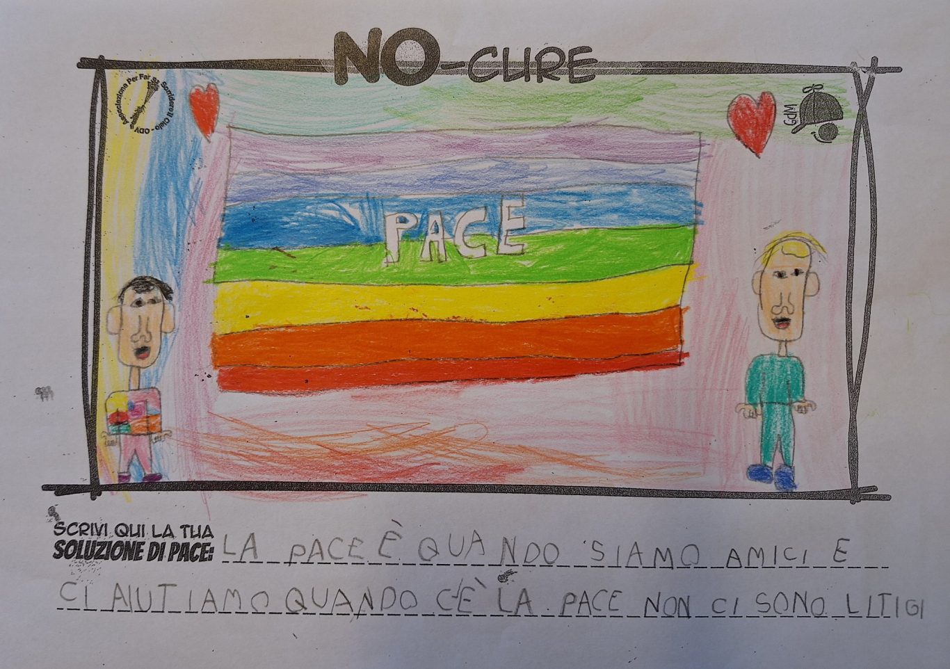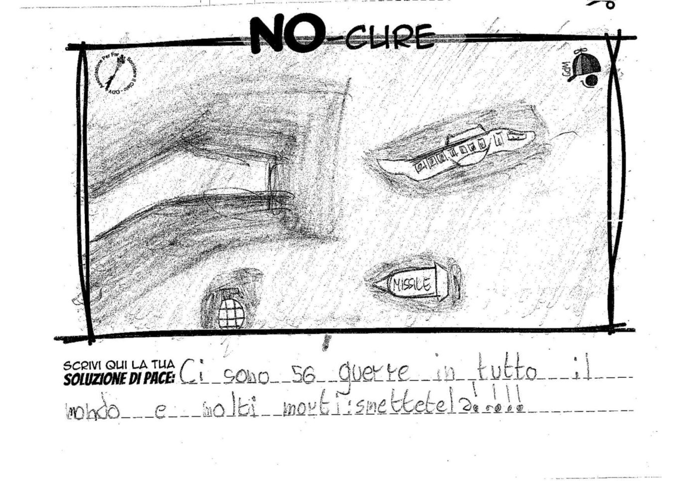 L’opera di sensibilizzazione si si esprime concretamente con la creazione di un DISEGNO DELLA MERAVIGLIA che andrà ad aiutare una delle 12 fatiche. Allo stesso modo chiederemo a tutti i partecipanti di andare a scrivere una “Soluzione di Pace” che possa aiutare anch’essa una delle 12 fatiche dei Bambini della guerra.