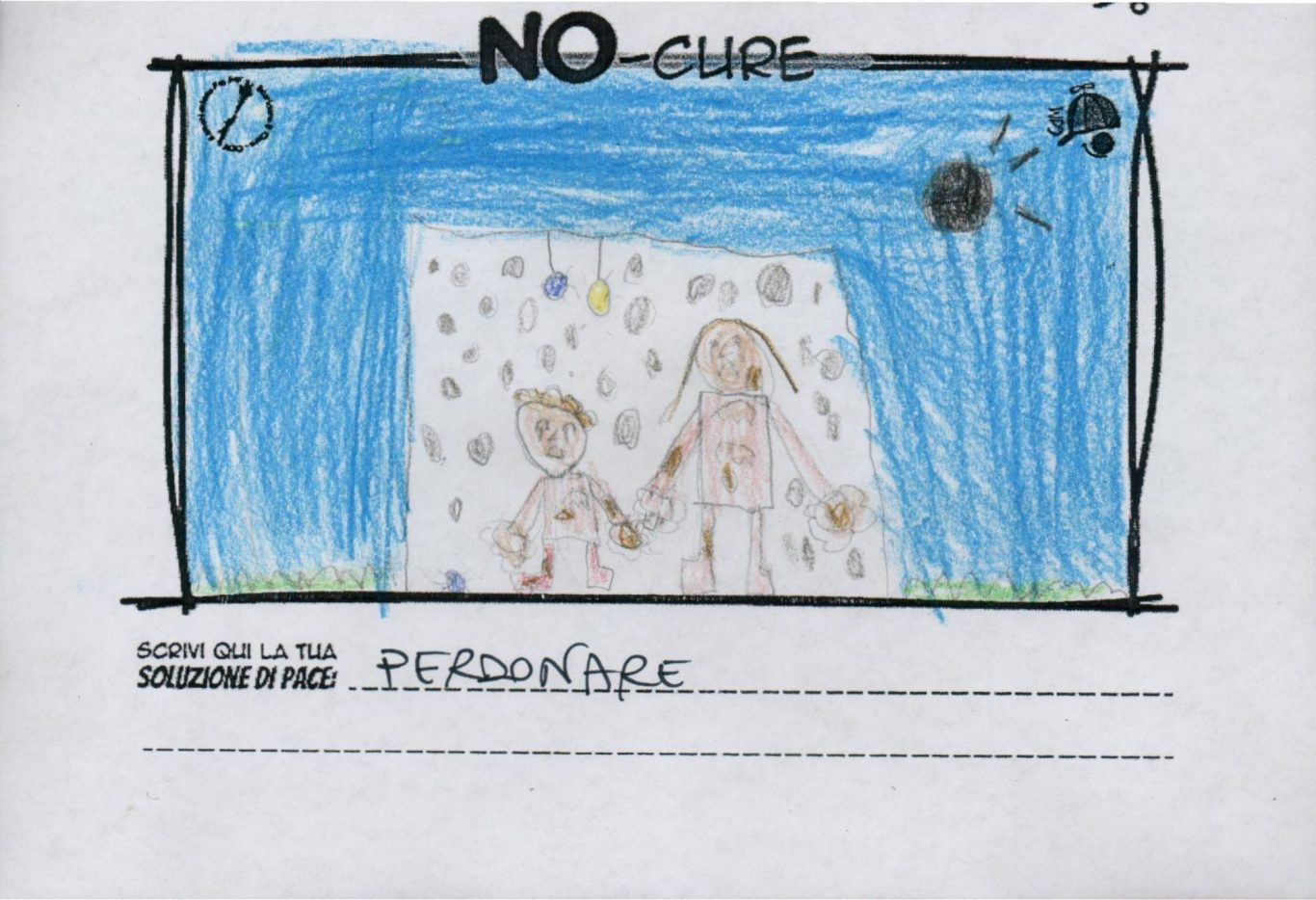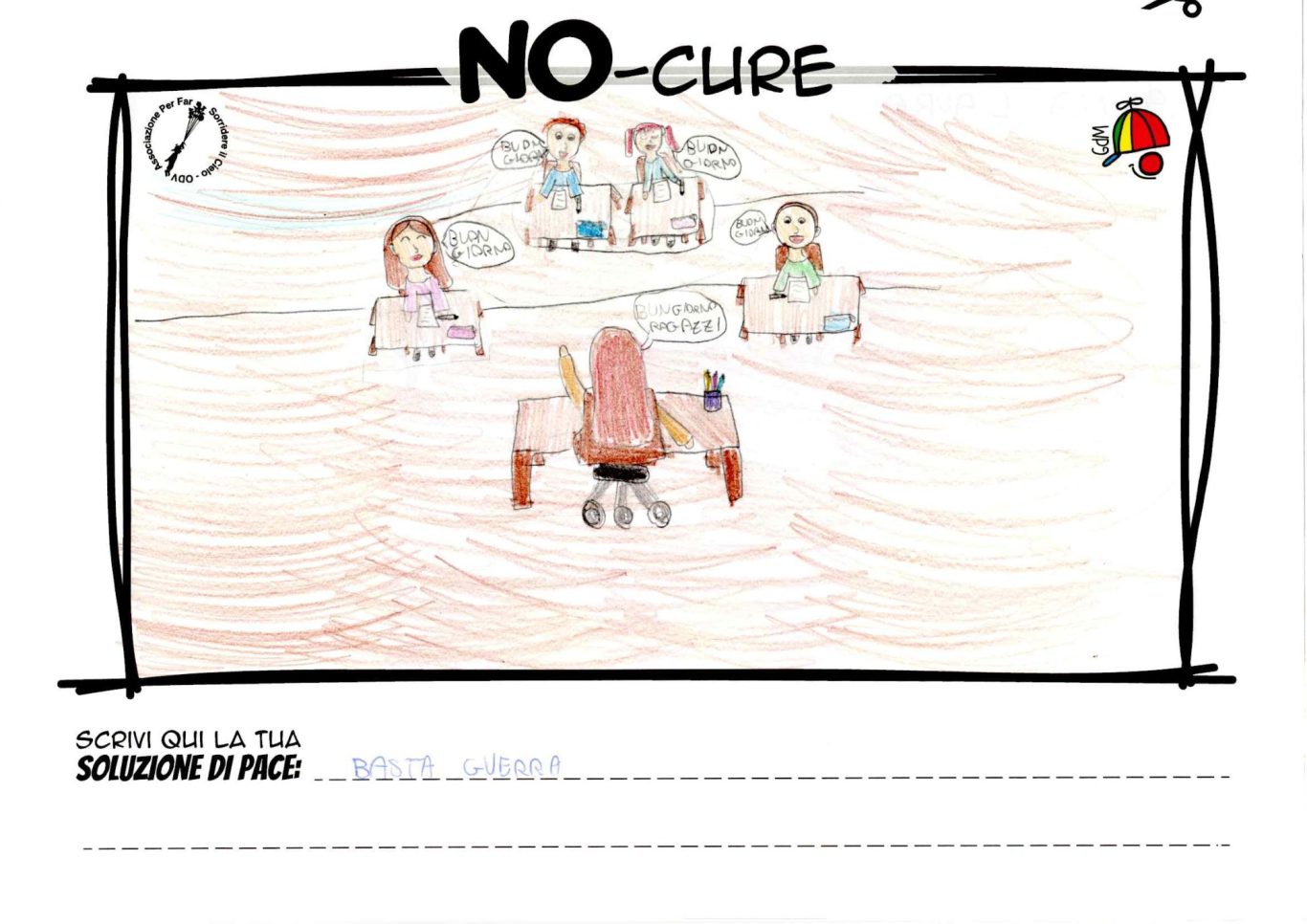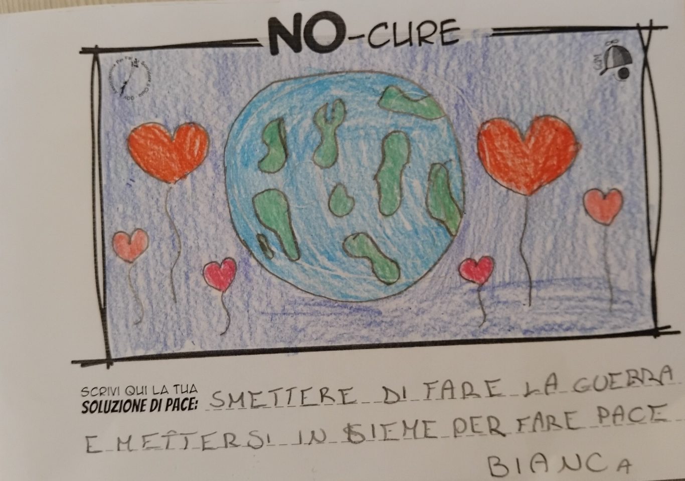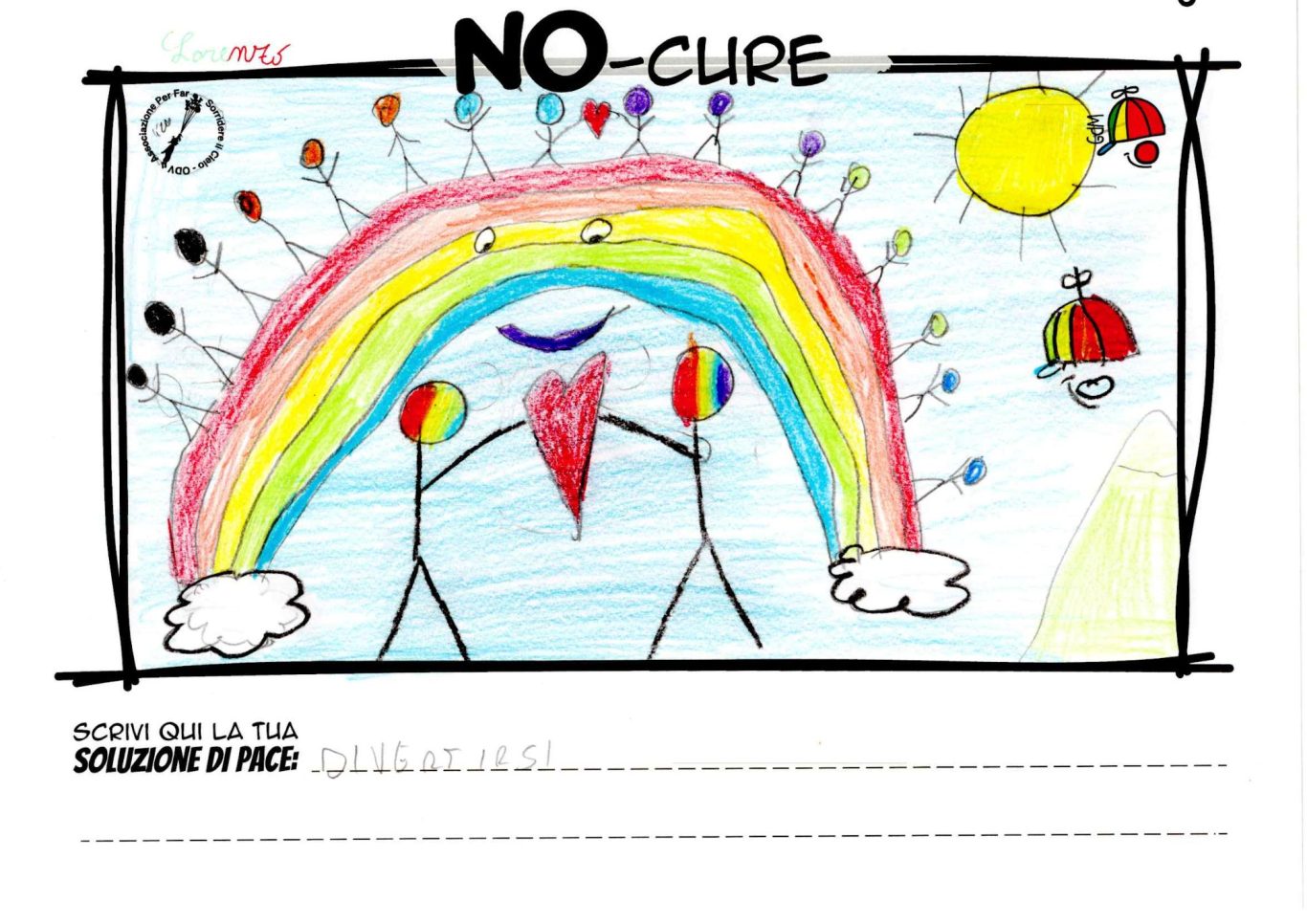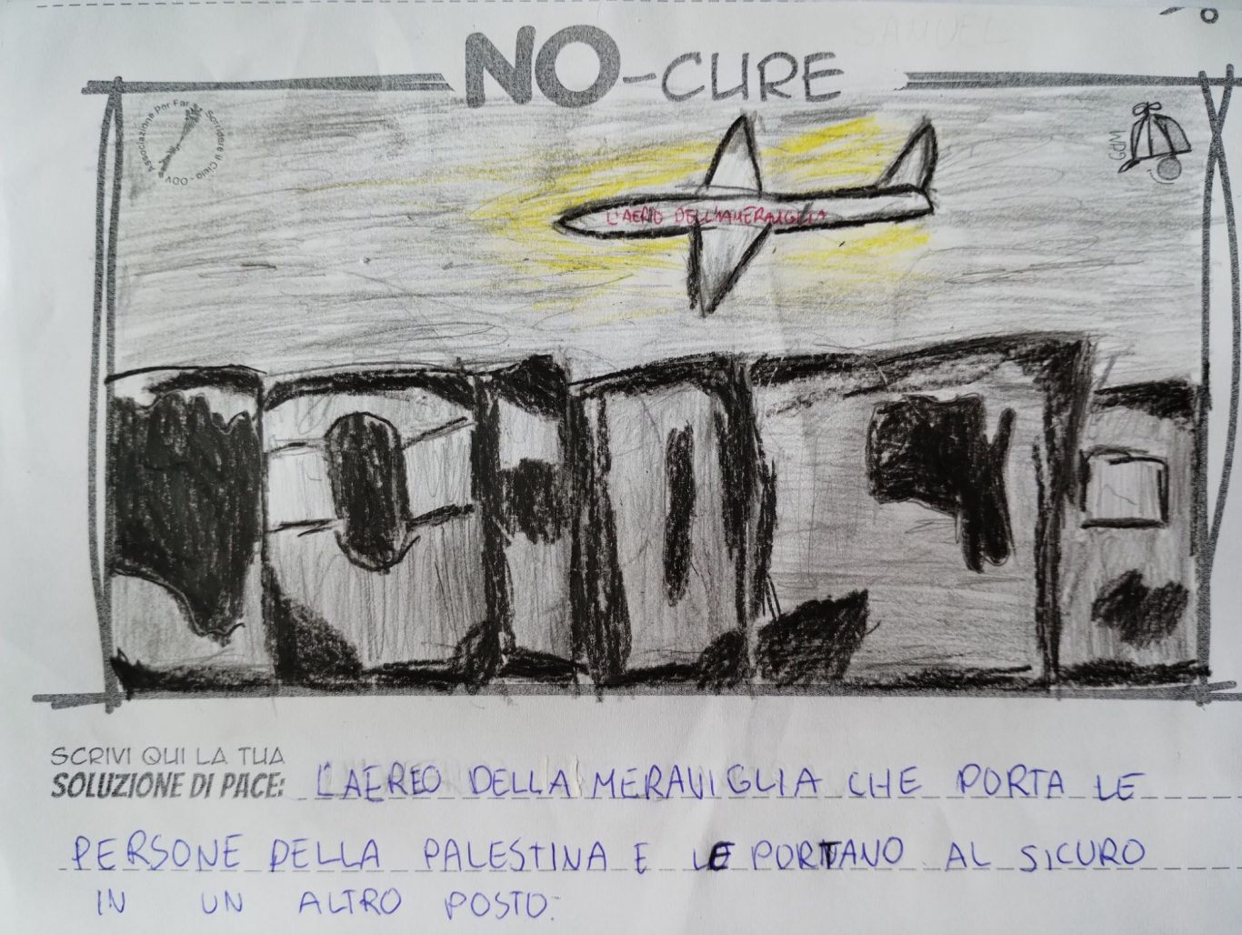 L’opera di sensibilizzazione si si esprime concretamente con la creazione di un DISEGNO DELLA MERAVIGLIA che andrà ad aiutare una delle 12 fatiche. Allo stesso modo chiederemo a tutti i partecipanti di andare a scrivere una “Soluzione di Pace” che possa aiutare anch’essa una delle 12 fatiche dei Bambini della guerra.