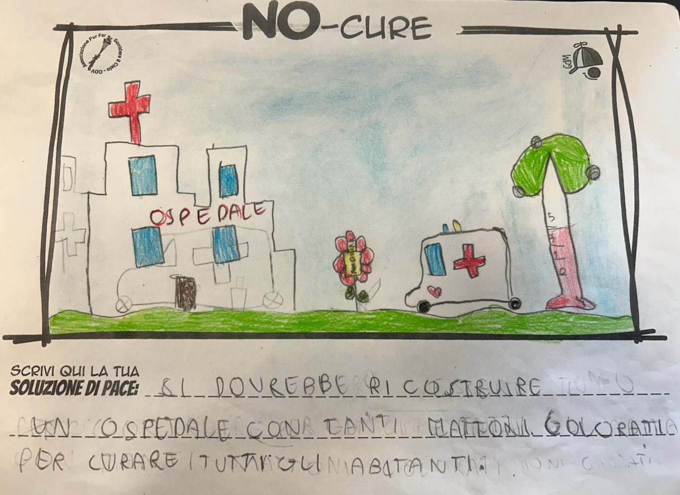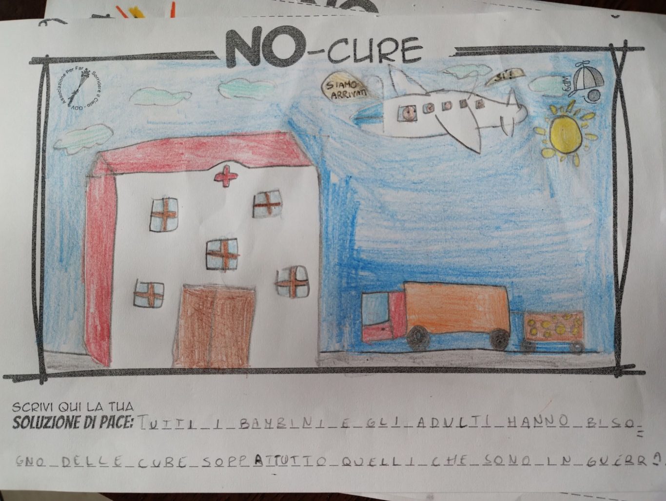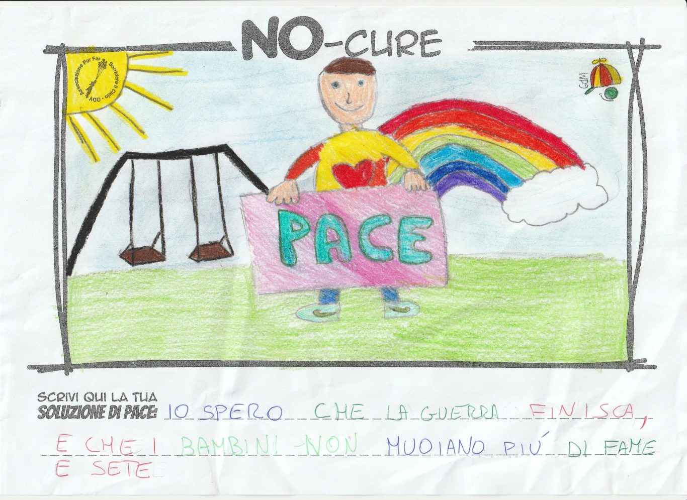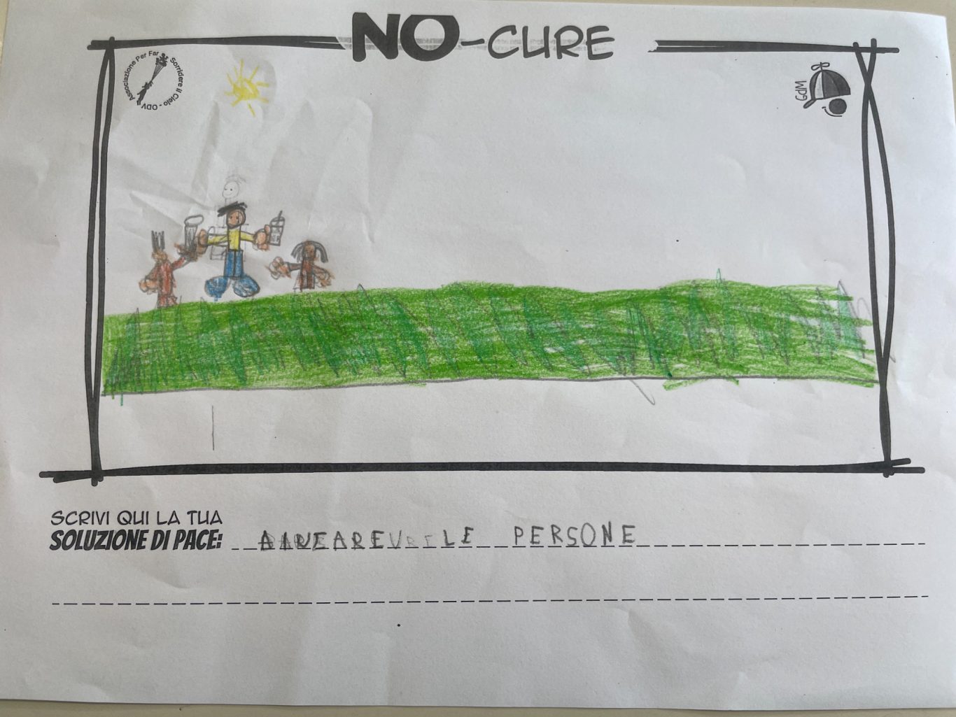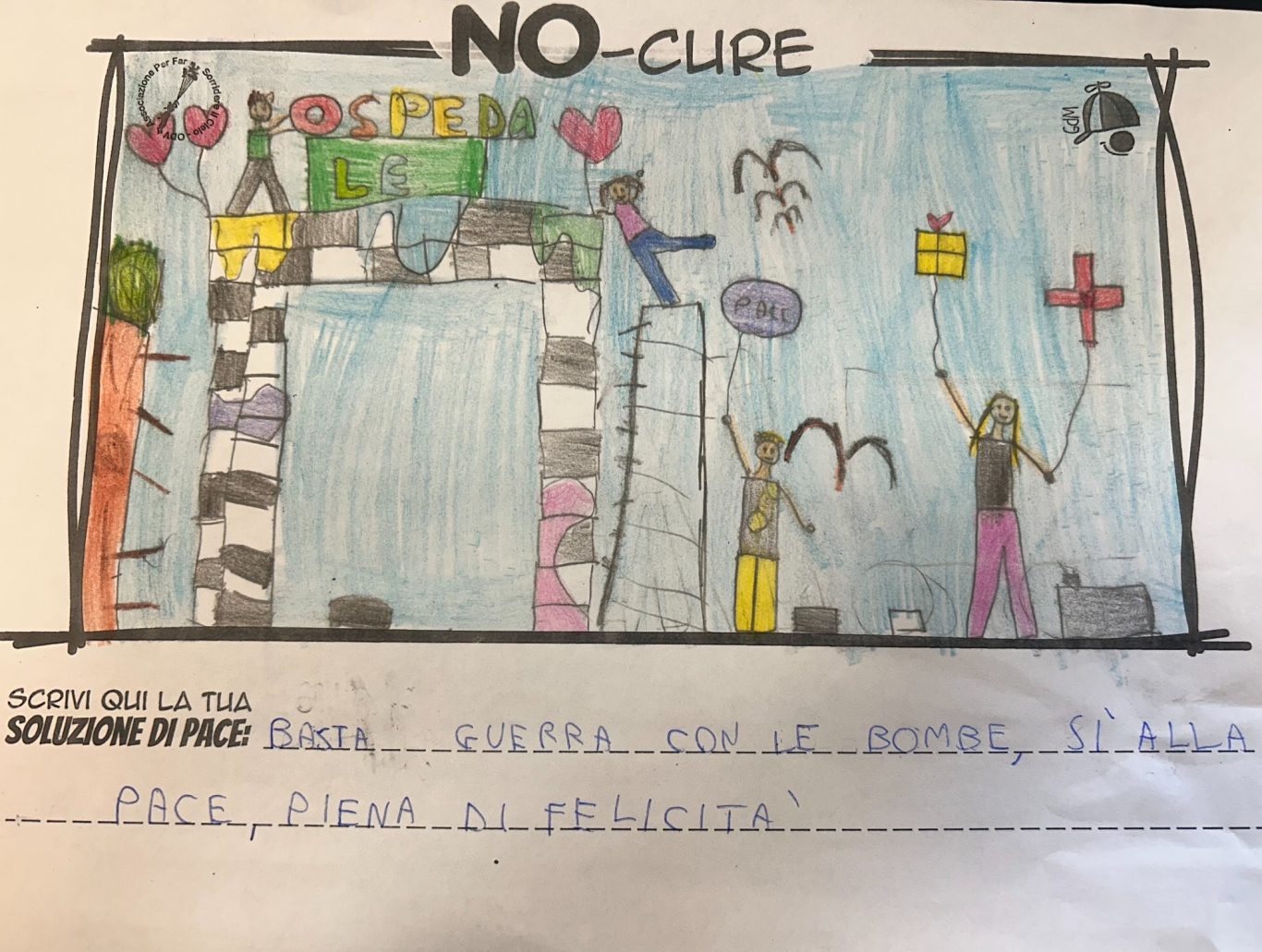 L’opera di sensibilizzazione si si esprime concretamente con la creazione di un DISEGNO DELLA MERAVIGLIA che andrà ad aiutare una delle 12 fatiche. Allo stesso modo chiederemo a tutti i partecipanti di andare a scrivere una “Soluzione di Pace” che possa aiutare anch’essa una delle 12 fatiche dei Bambini della guerra.