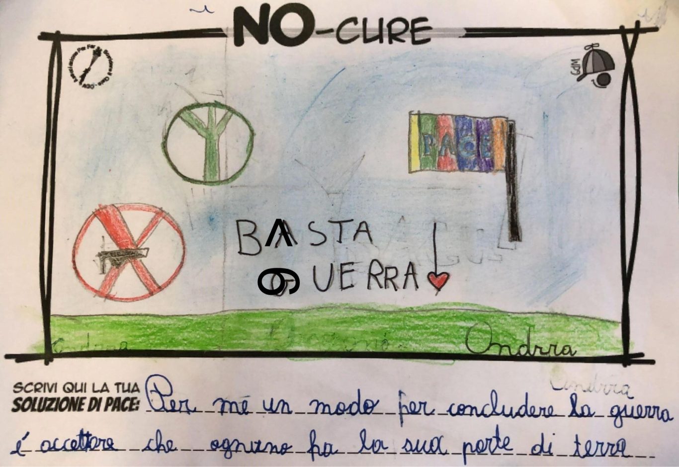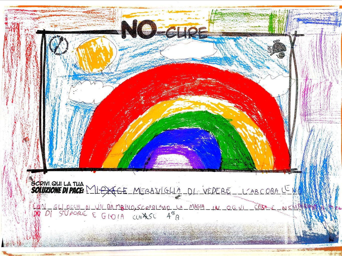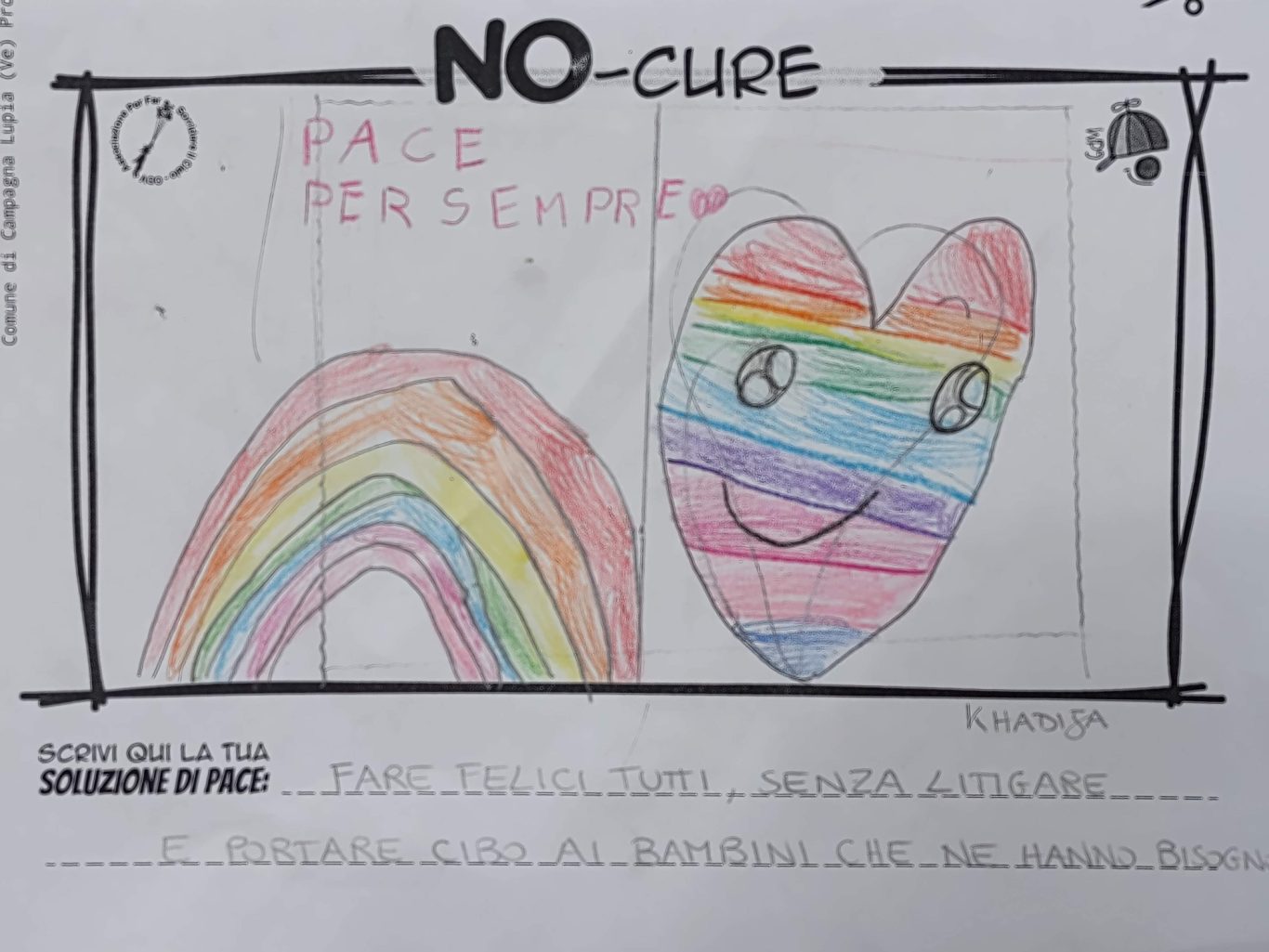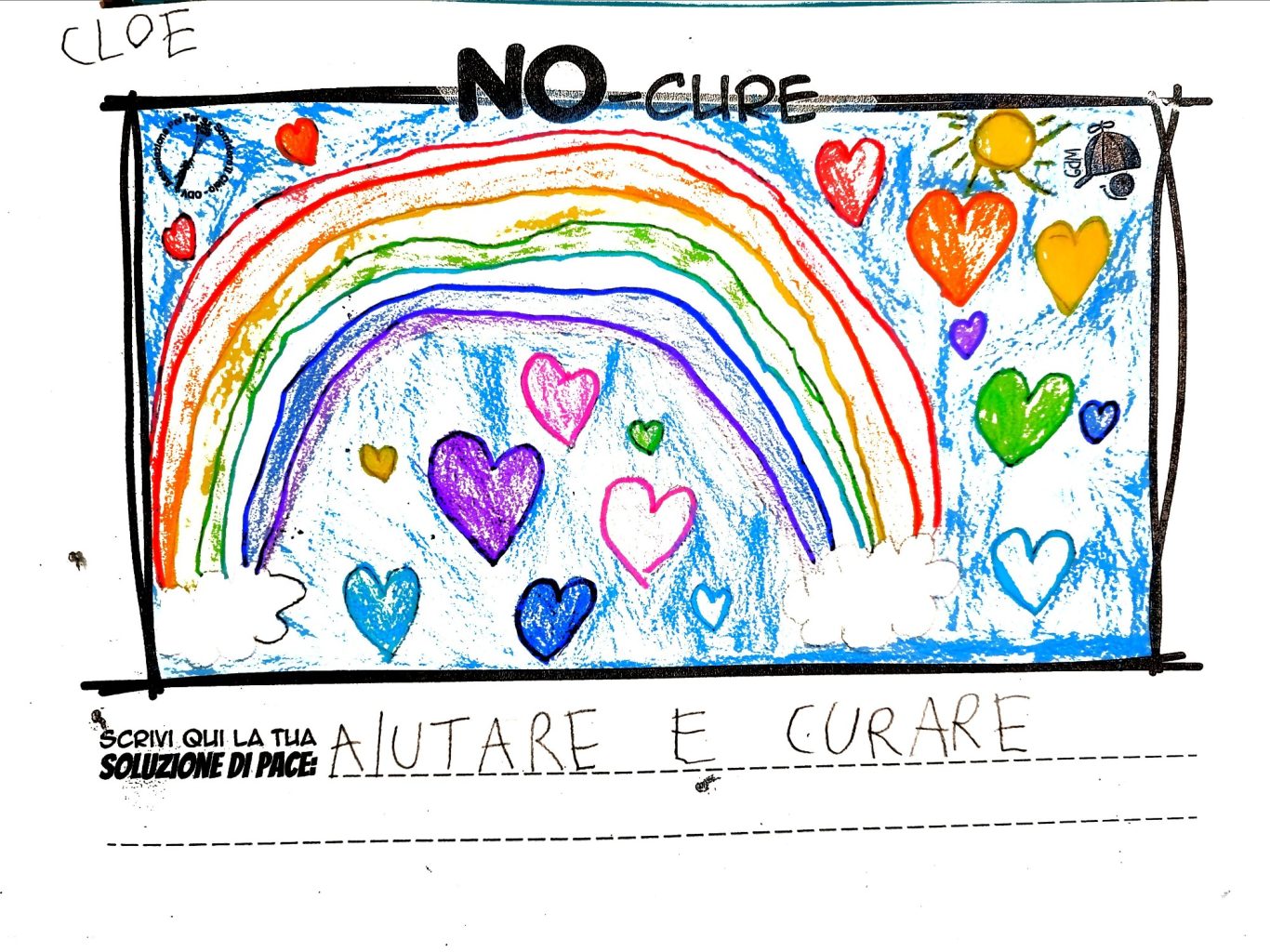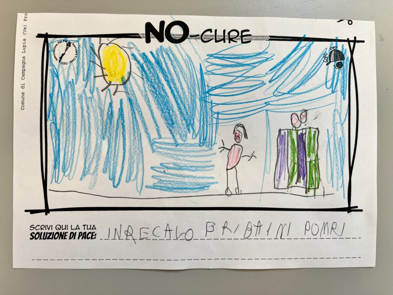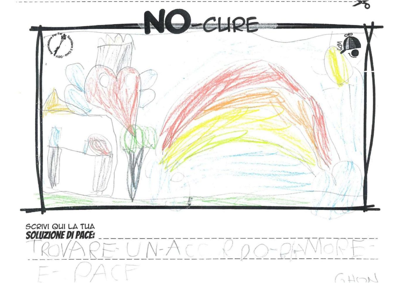 L’opera di sensibilizzazione si si esprime concretamente con la creazione di un DISEGNO DELLA MERAVIGLIA che andrà ad aiutare una delle 12 fatiche. Allo stesso modo chiederemo a tutti i partecipanti di andare a scrivere una “Soluzione di Pace” che possa aiutare anch’essa una delle 12 fatiche dei Bambini della guerra.