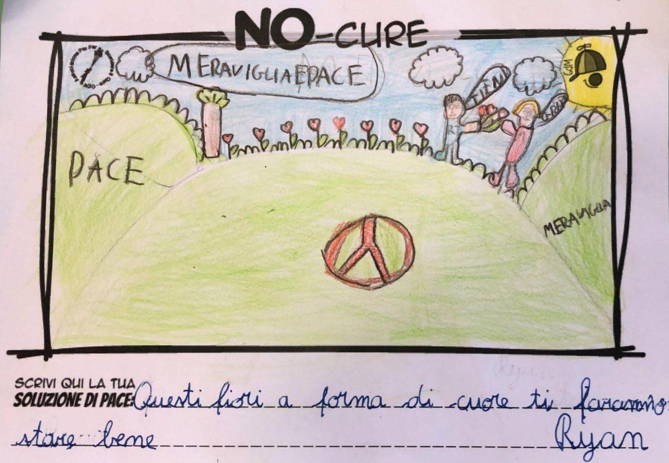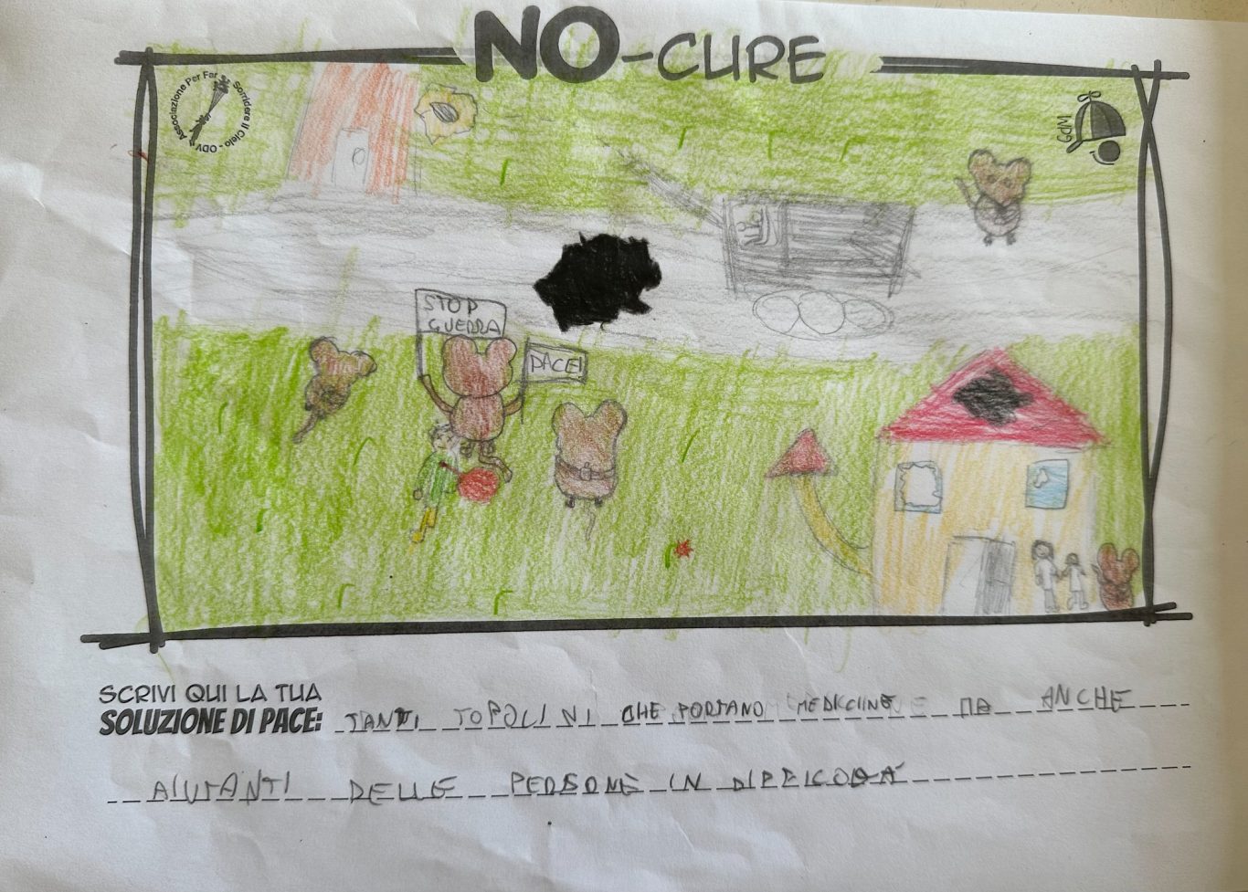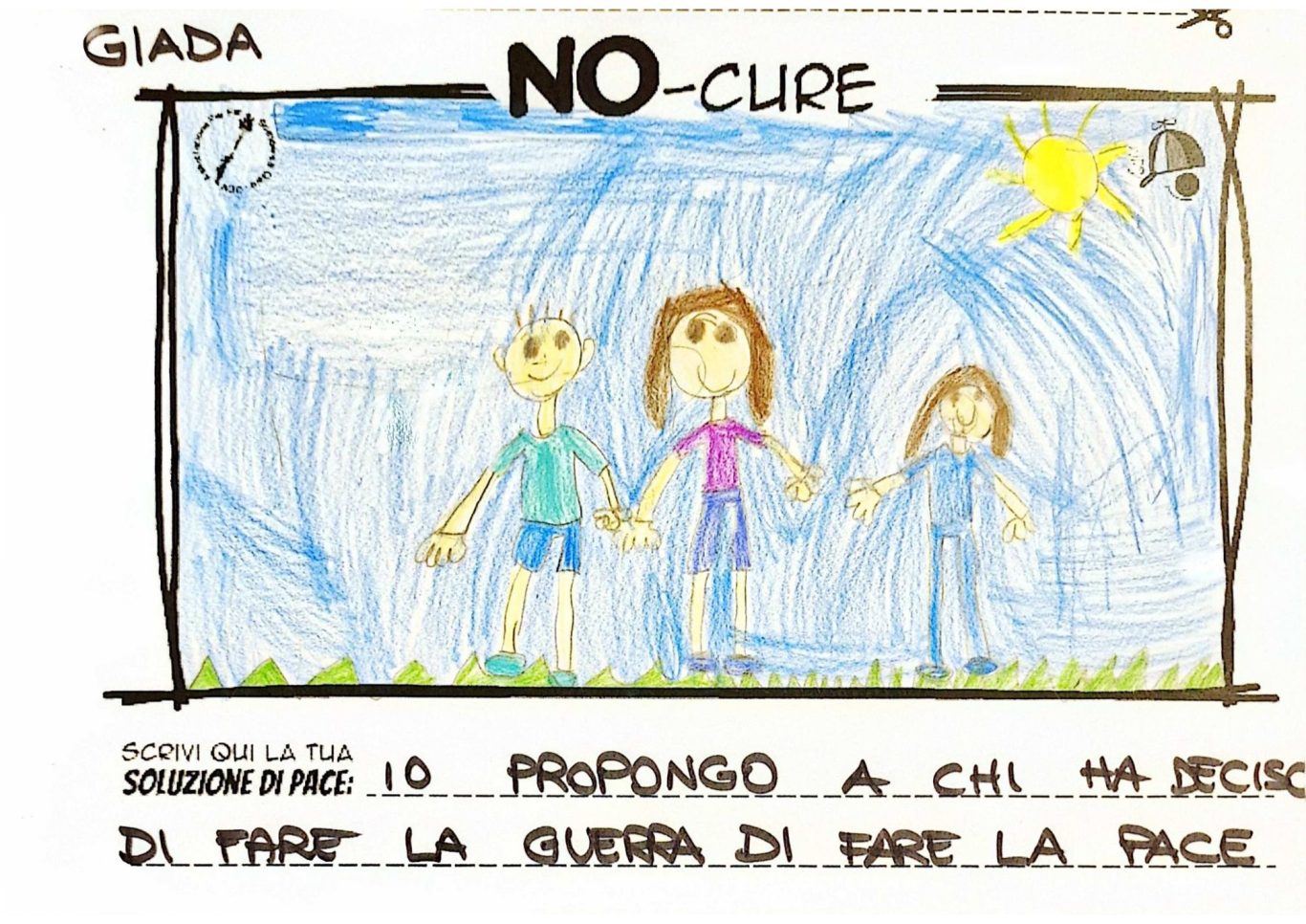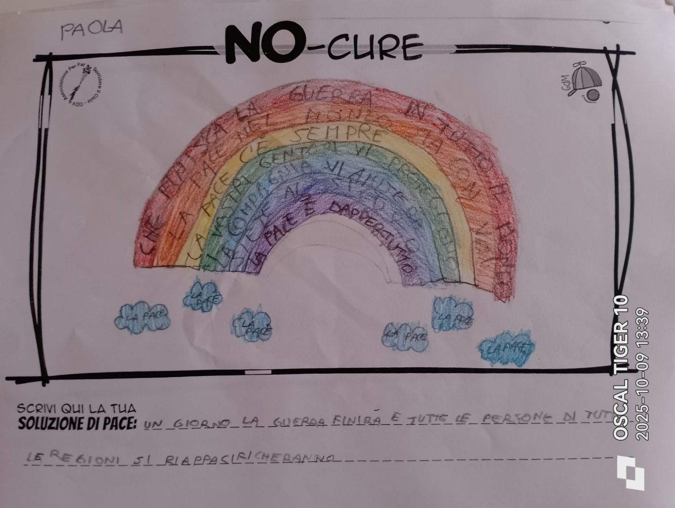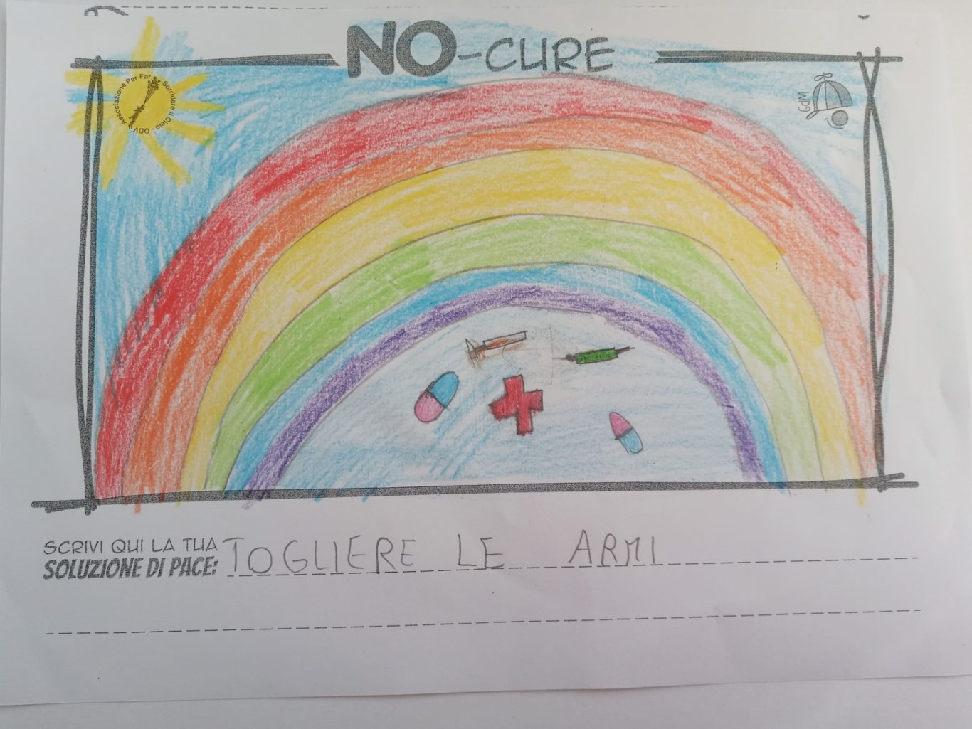 L’opera di sensibilizzazione si si esprime concretamente con la creazione di un DISEGNO DELLA MERAVIGLIA che andrà ad aiutare una delle 12 fatiche. Allo stesso modo chiederemo a tutti i partecipanti di andare a scrivere una “Soluzione di Pace” che possa aiutare anch’essa una delle 12 fatiche dei Bambini della guerra.