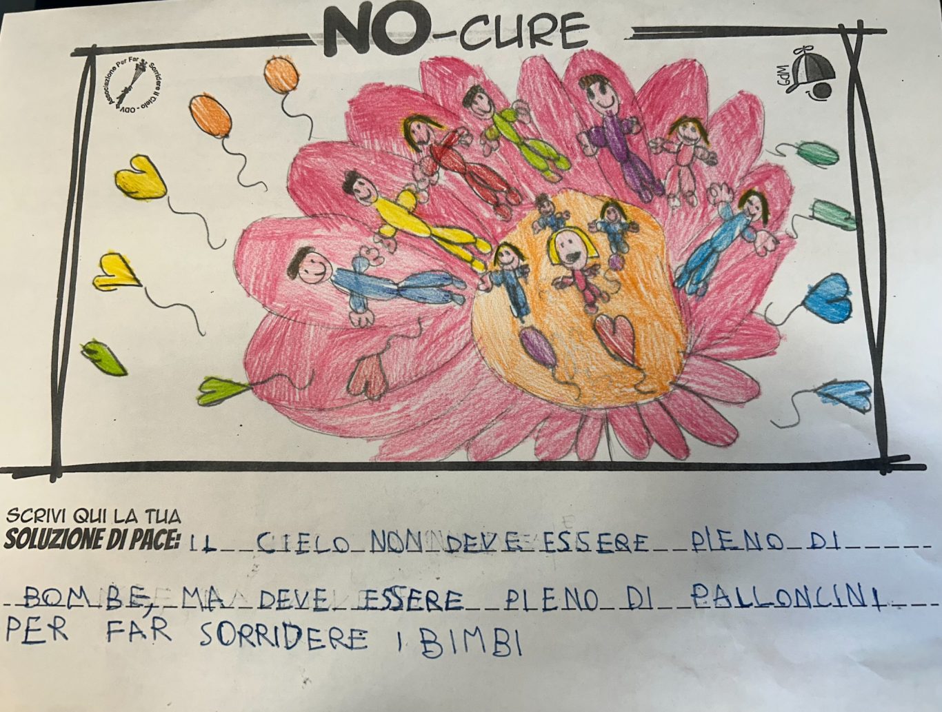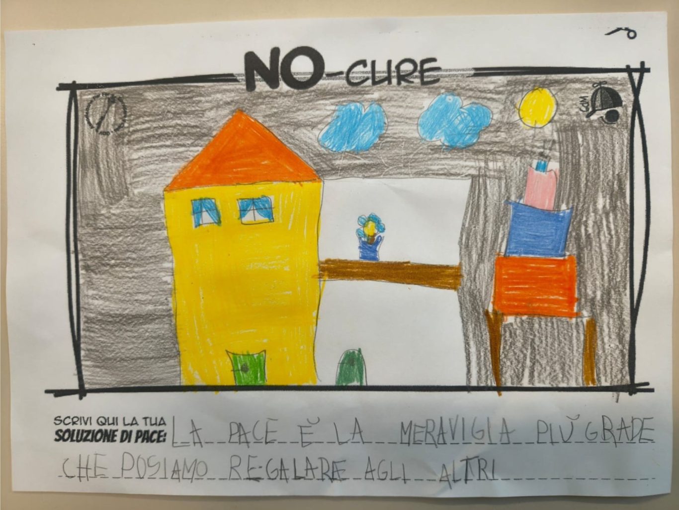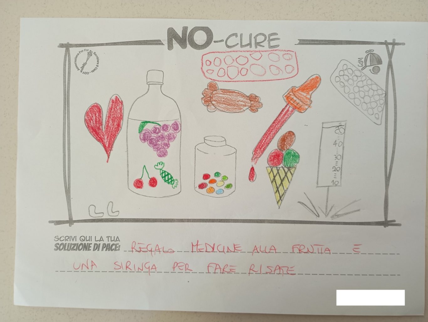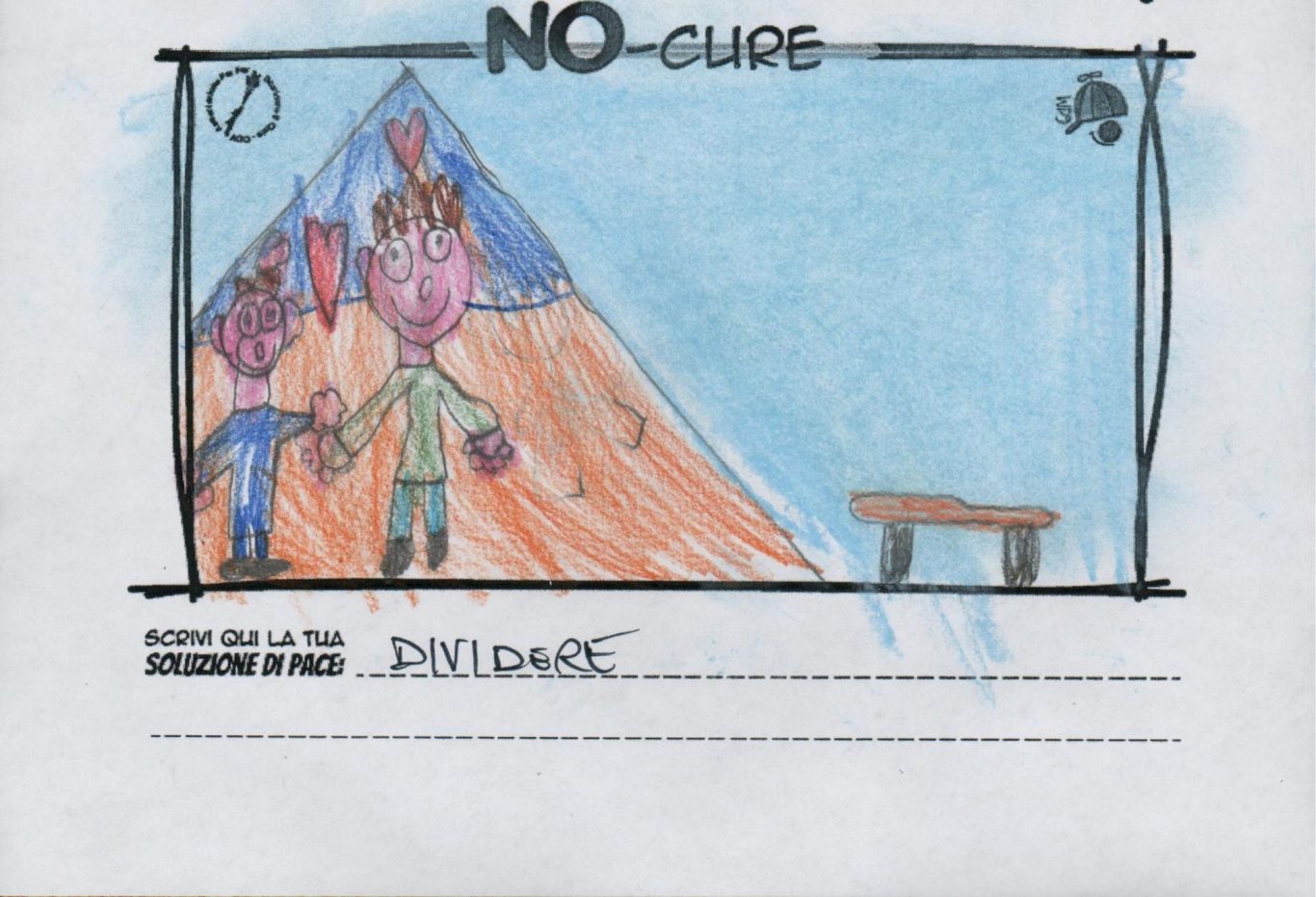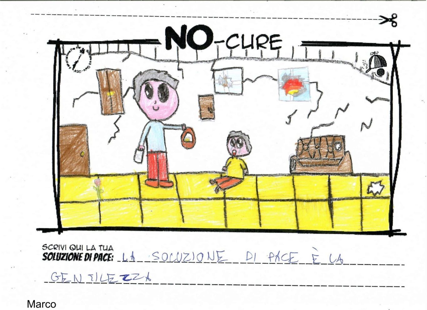 L’opera di sensibilizzazione si si esprime concretamente con la creazione di un DISEGNO DELLA MERAVIGLIA che andrà ad aiutare una delle 12 fatiche. Allo stesso modo chiederemo a tutti i partecipanti di andare a scrivere una “Soluzione di Pace” che possa aiutare anch’essa una delle 12 fatiche dei Bambini della guerra.