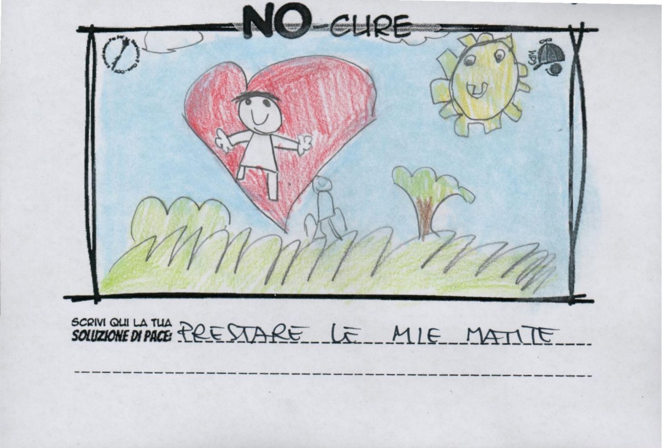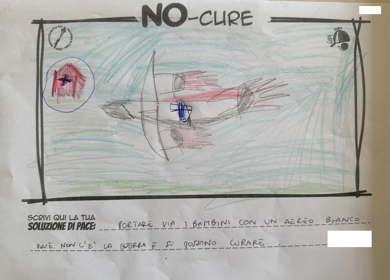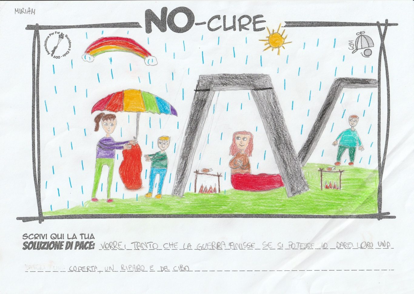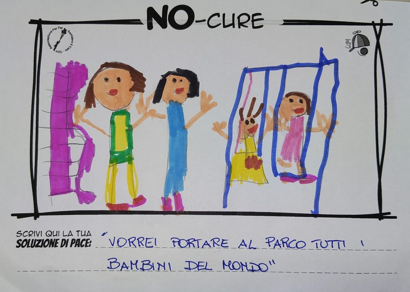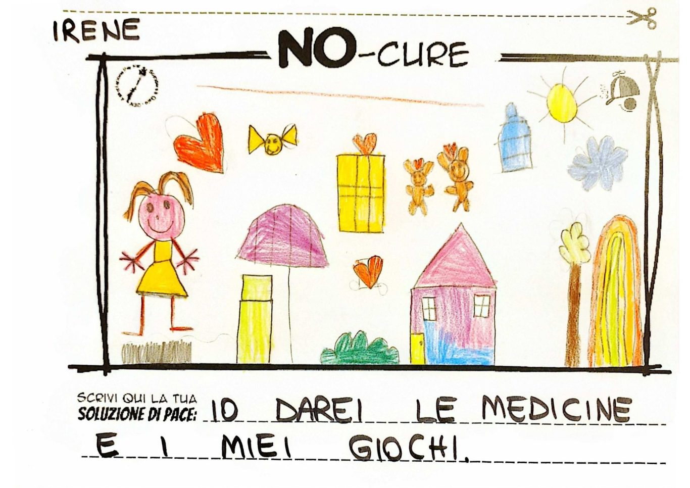 L’opera di sensibilizzazione si si esprime concretamente con la creazione di un DISEGNO DELLA MERAVIGLIA che andrà ad aiutare una delle 12 fatiche. Allo stesso modo chiederemo a tutti i partecipanti di andare a scrivere una “Soluzione di Pace” che possa aiutare anch’essa una delle 12 fatiche dei Bambini della guerra.