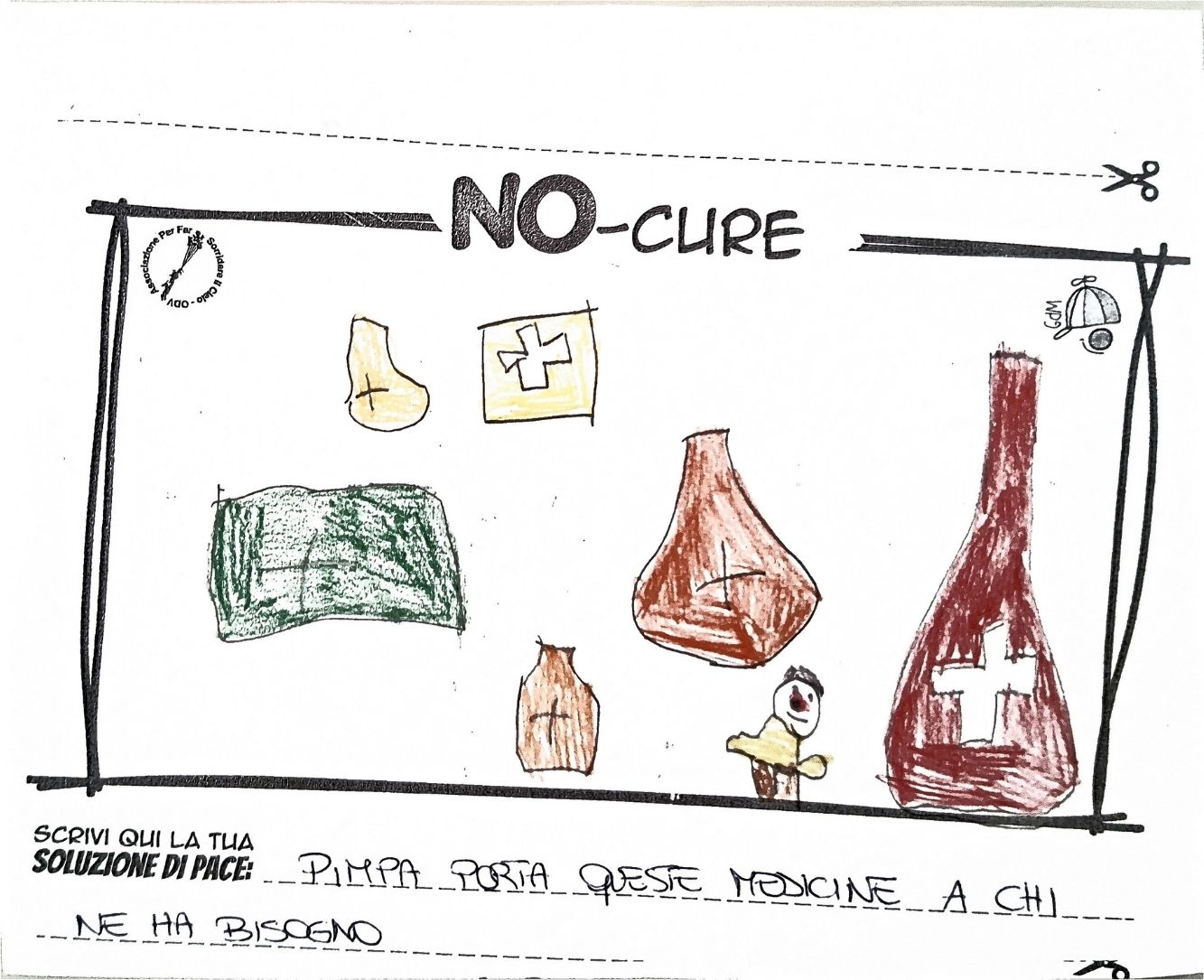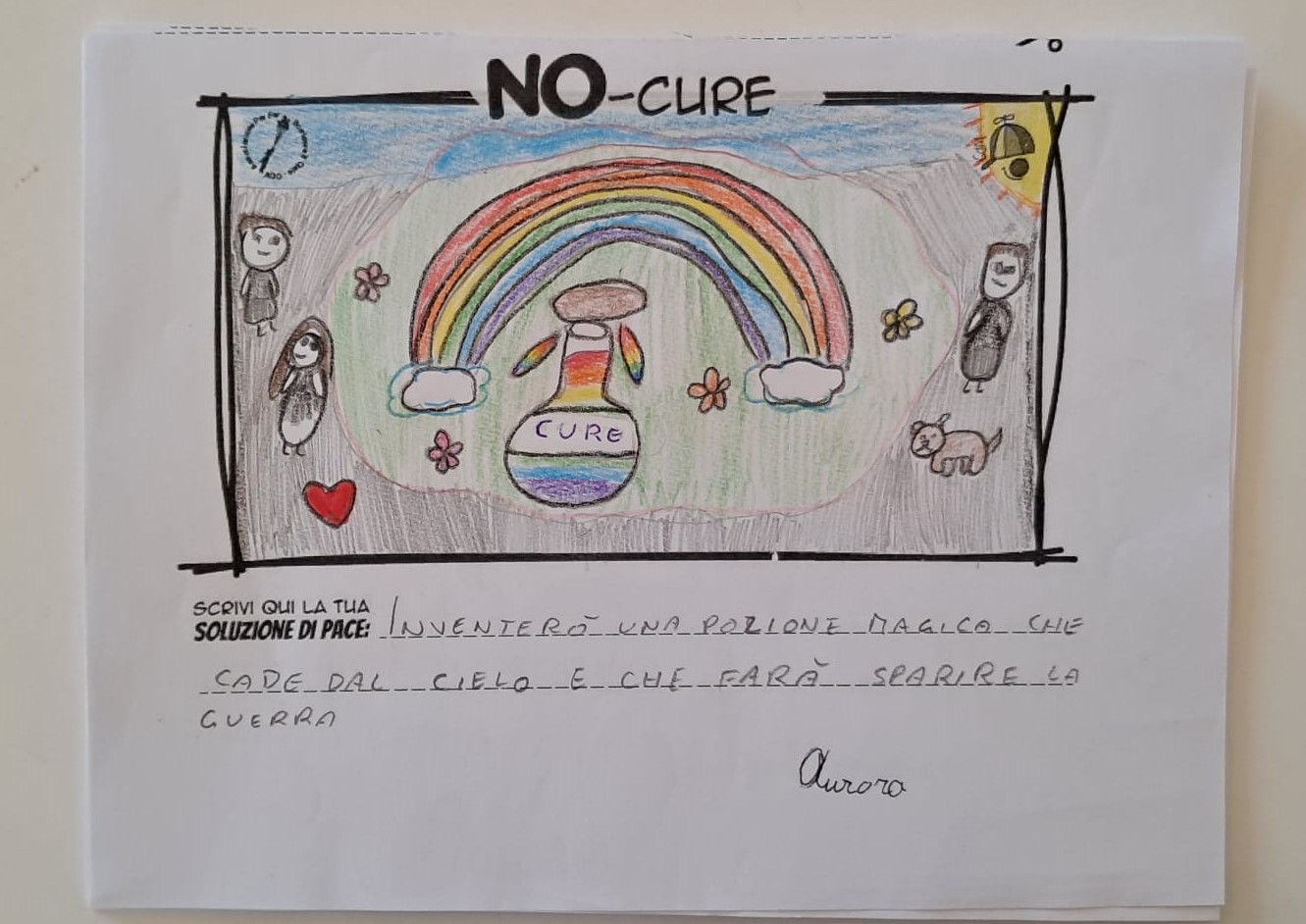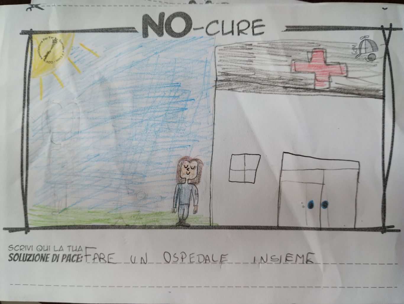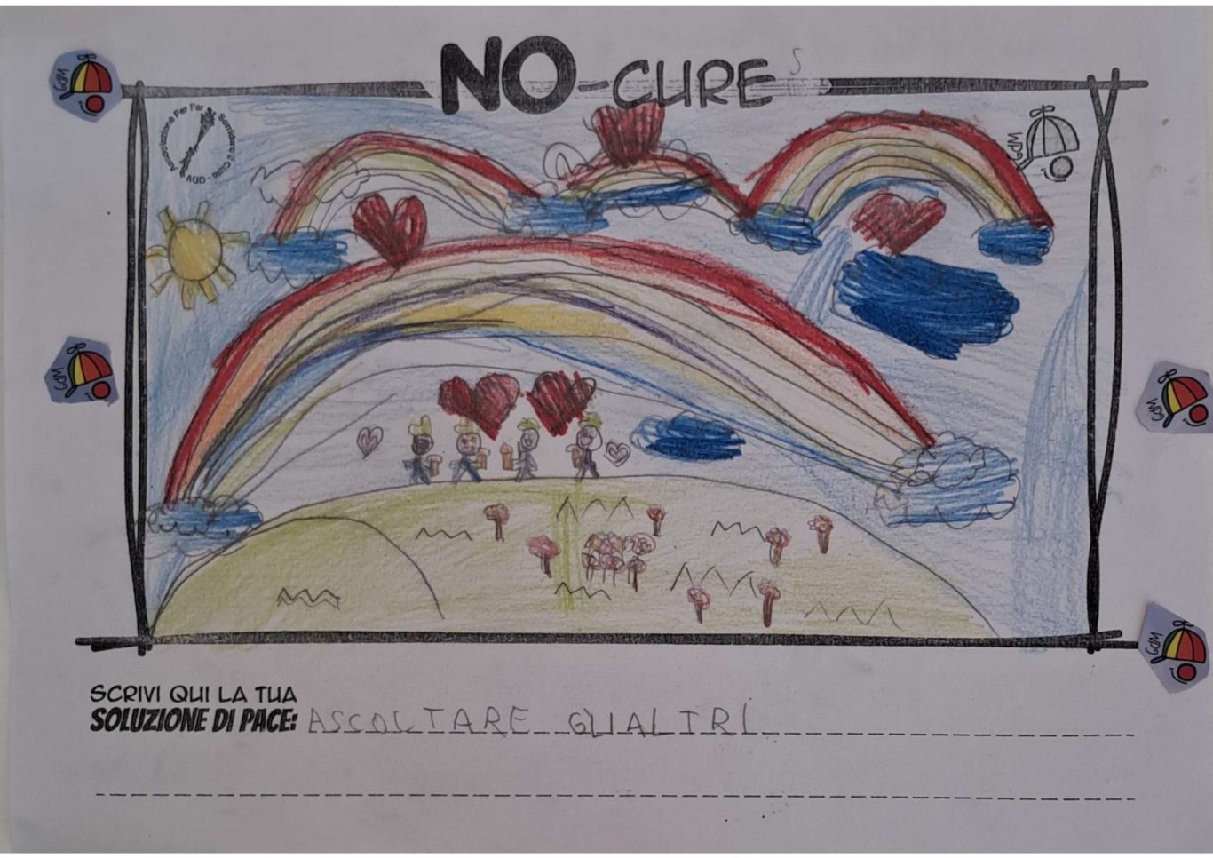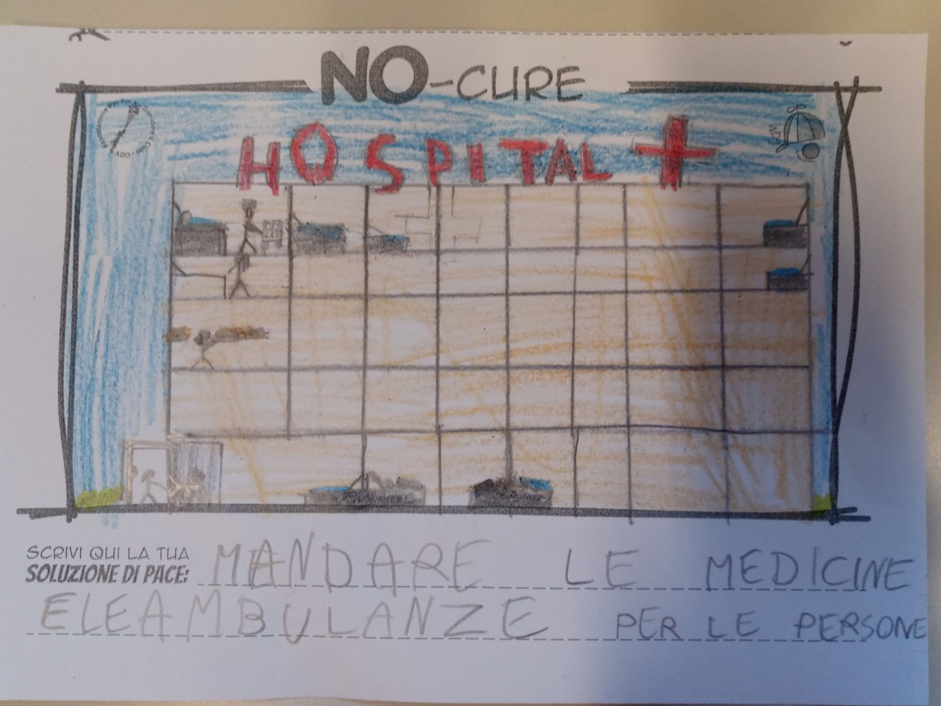 L’opera di sensibilizzazione si si esprime concretamente con la creazione di un DISEGNO DELLA MERAVIGLIA che andrà ad aiutare una delle 12 fatiche. Allo stesso modo chiederemo a tutti i partecipanti di andare a scrivere una “Soluzione di Pace” che possa aiutare anch’essa una delle 12 fatiche dei Bambini della guerra.