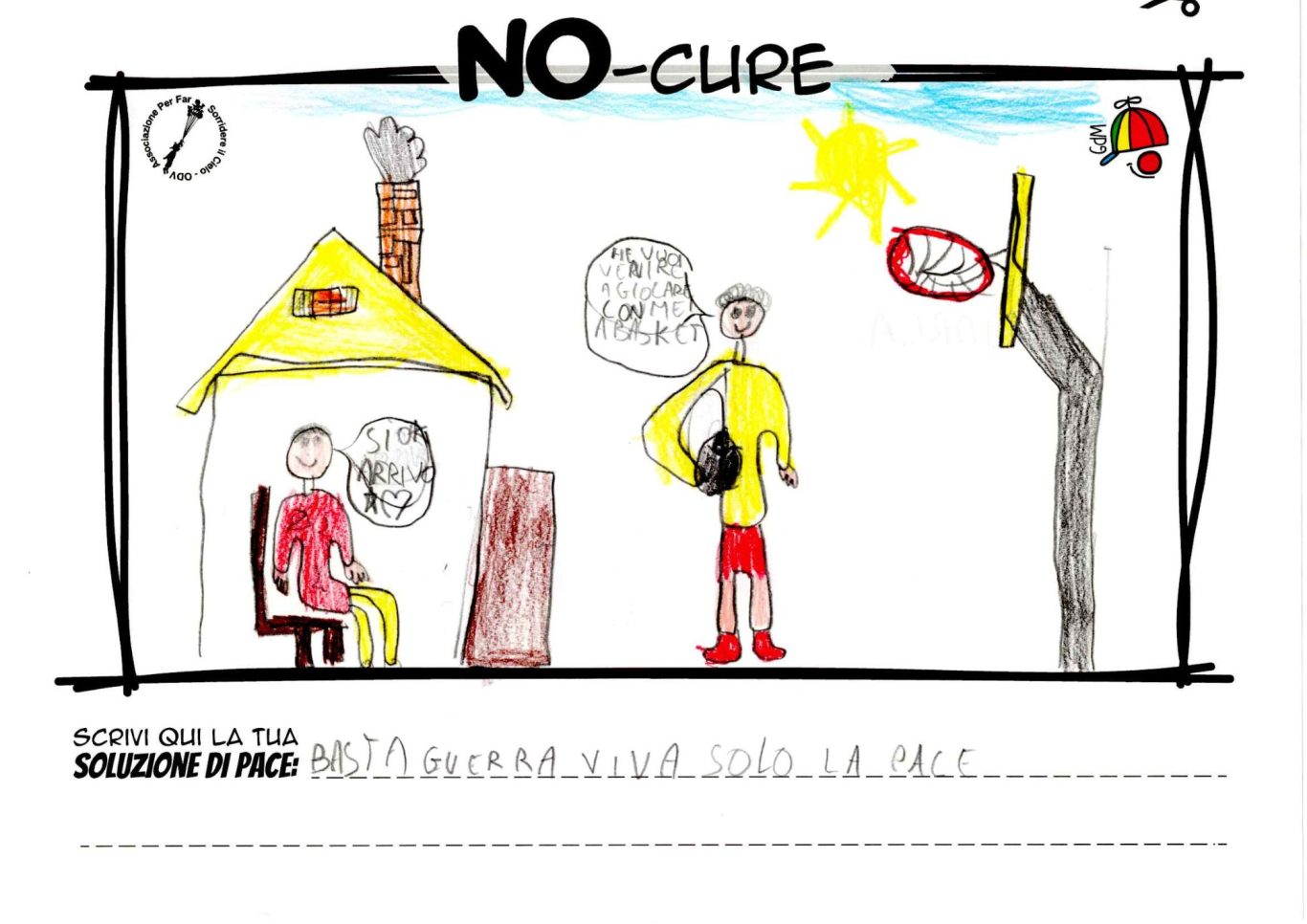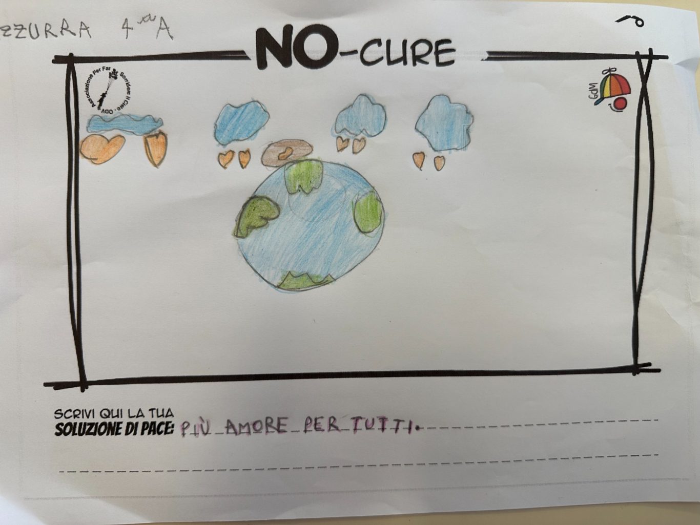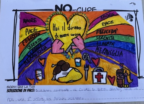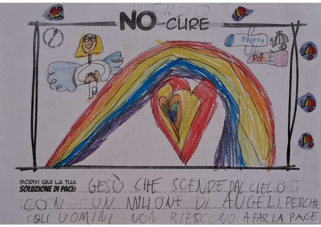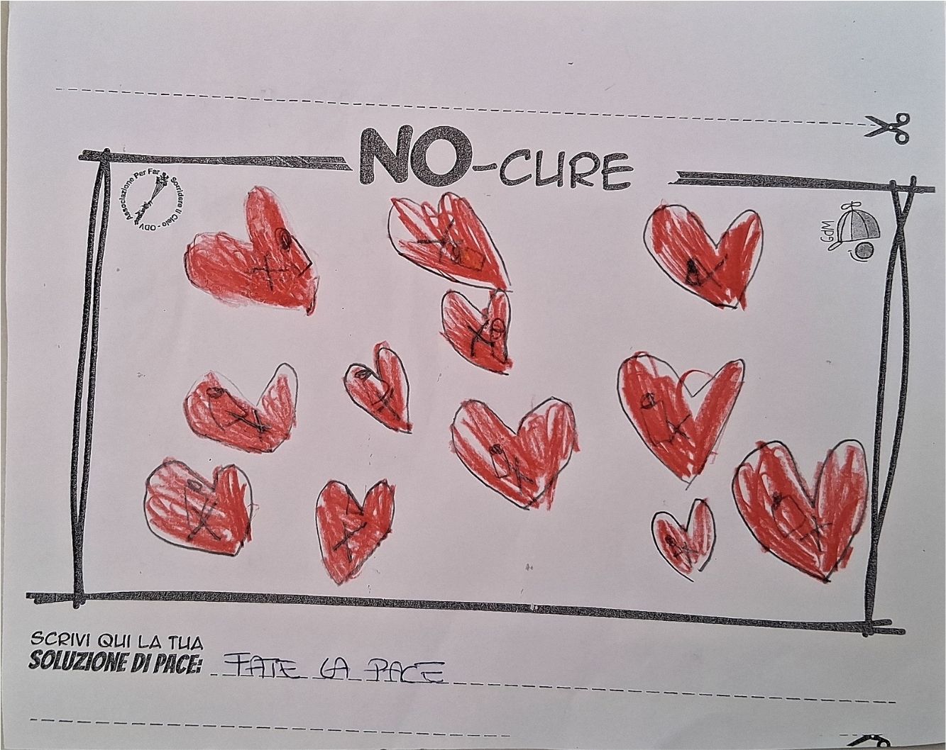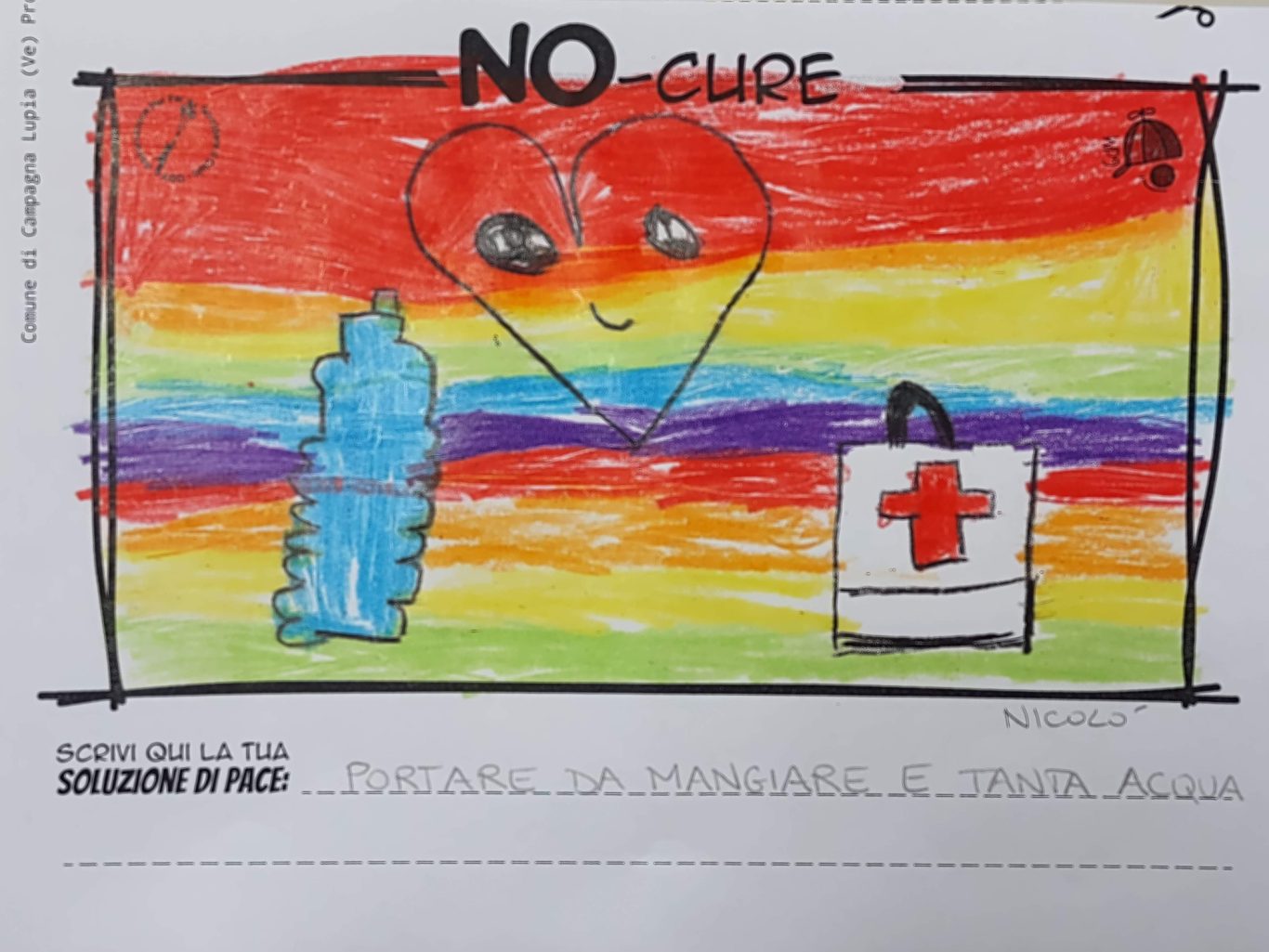 L’opera di sensibilizzazione si si esprime concretamente con la creazione di un DISEGNO DELLA MERAVIGLIA che andrà ad aiutare una delle 12 fatiche. Allo stesso modo chiederemo a tutti i partecipanti di andare a scrivere una “Soluzione di Pace” che possa aiutare anch’essa una delle 12 fatiche dei Bambini della guerra.