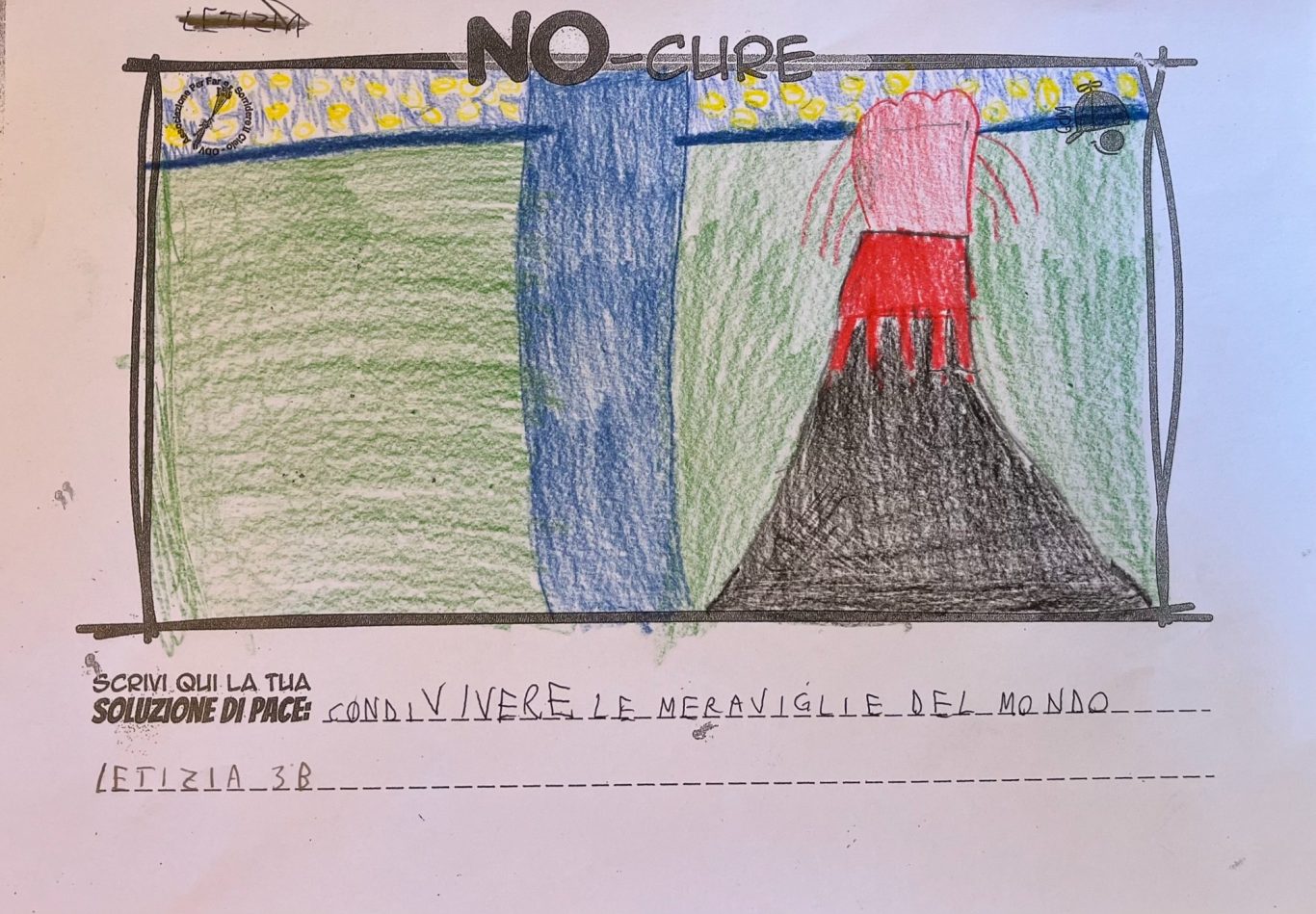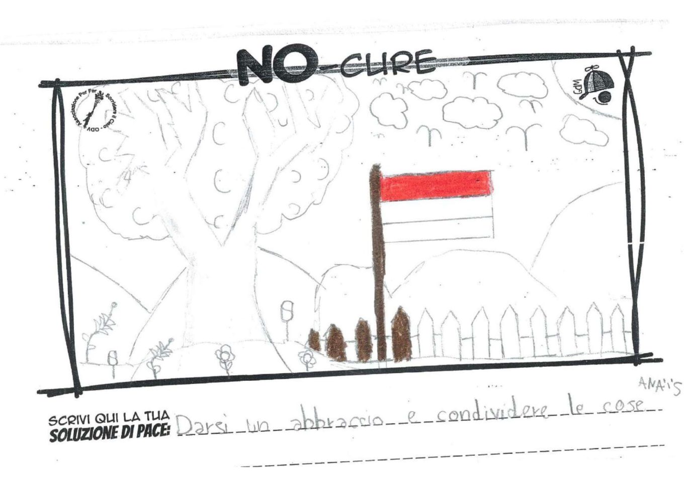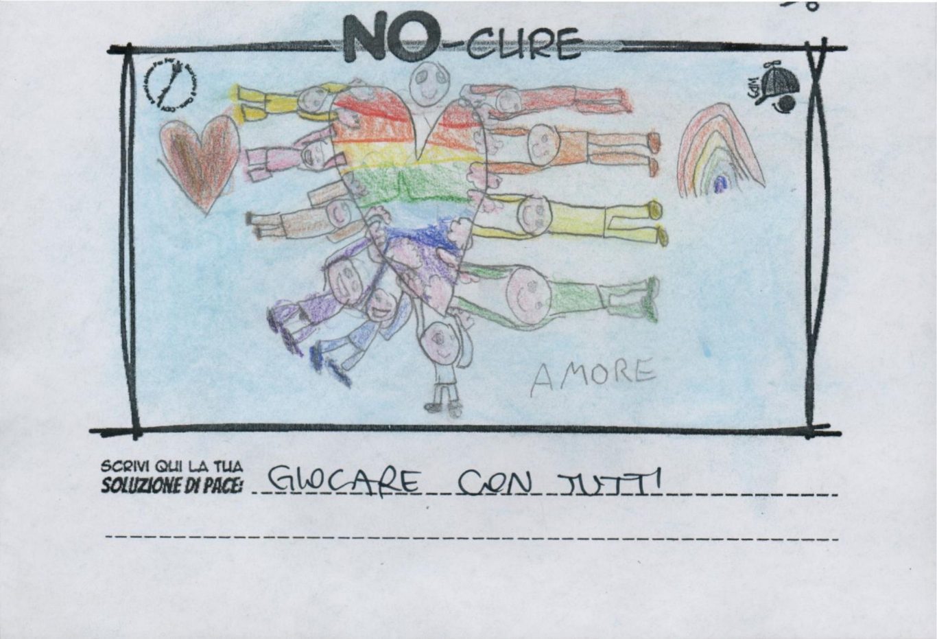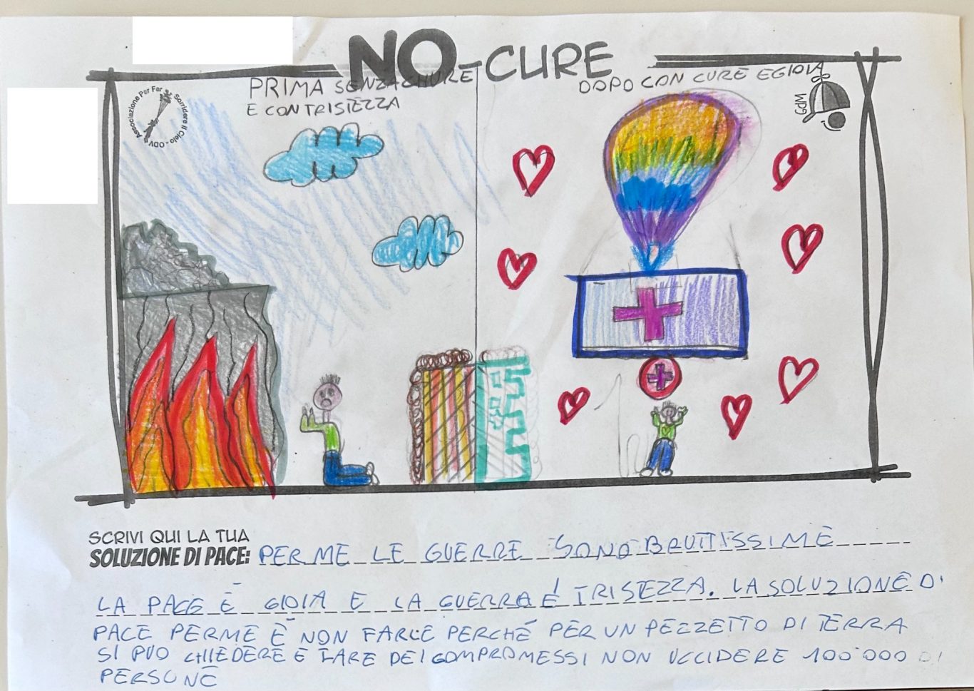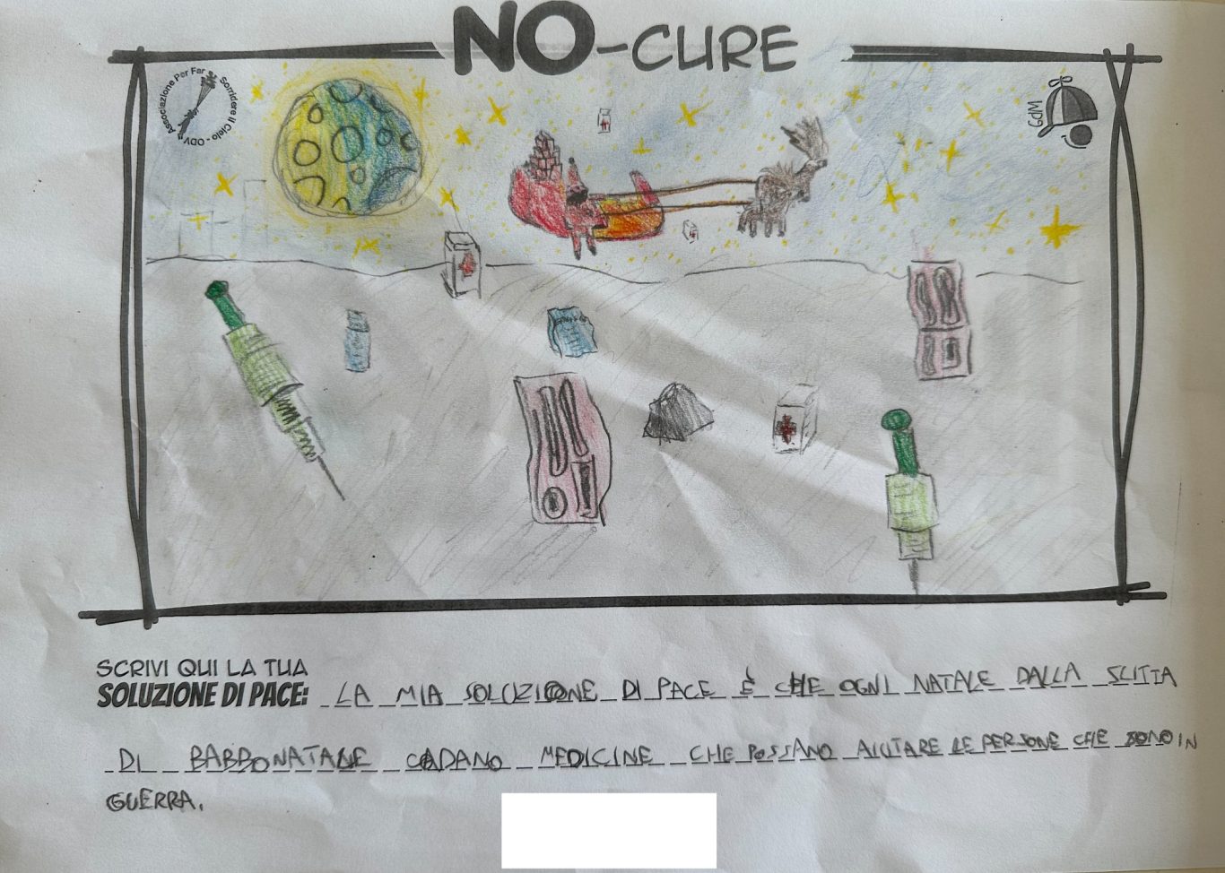 L’opera di sensibilizzazione si si esprime concretamente con la creazione di un DISEGNO DELLA MERAVIGLIA che andrà ad aiutare una delle 12 fatiche. Allo stesso modo chiederemo a tutti i partecipanti di andare a scrivere una “Soluzione di Pace” che possa aiutare anch’essa una delle 12 fatiche dei Bambini della guerra.