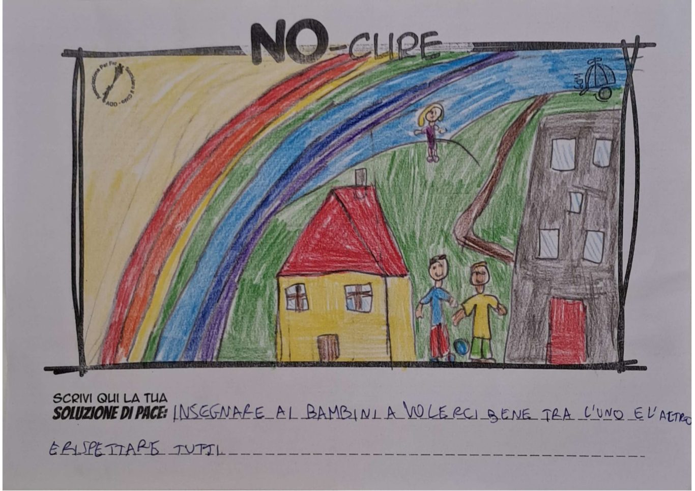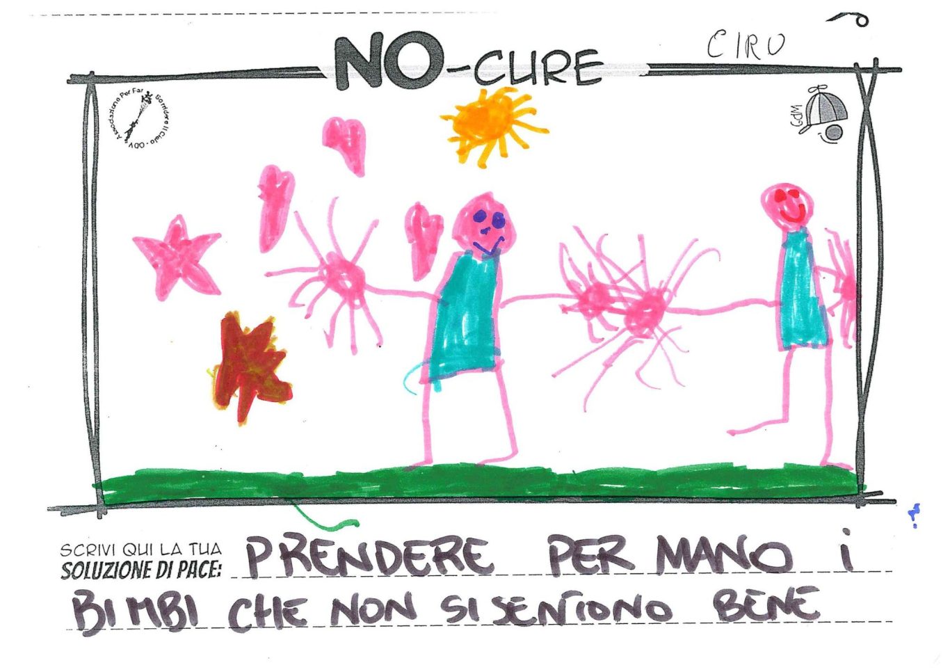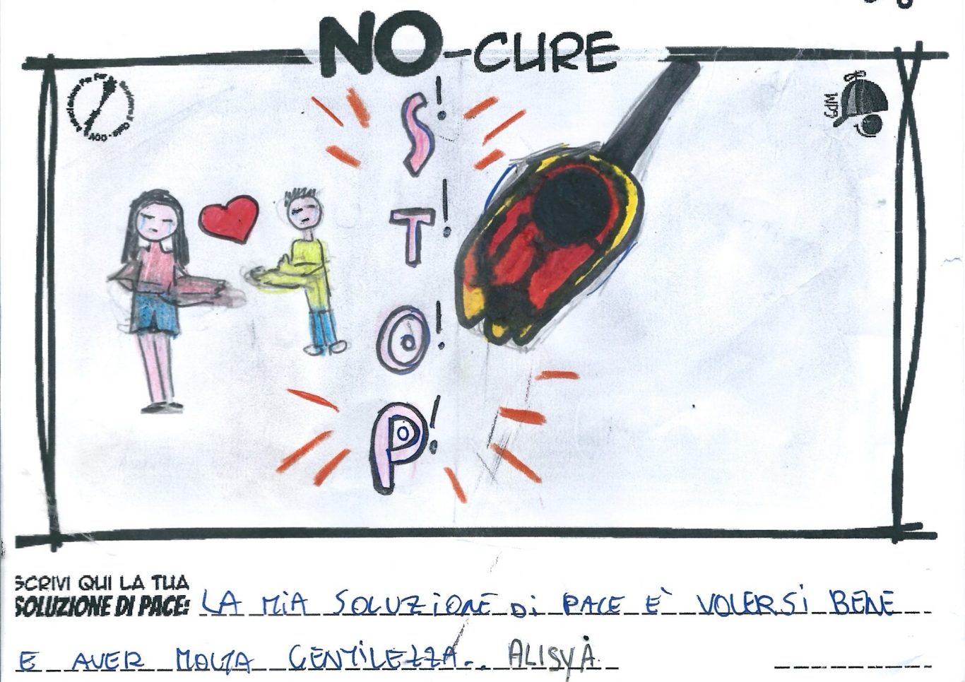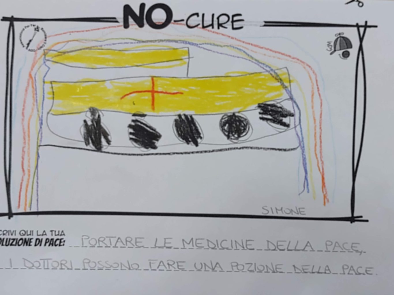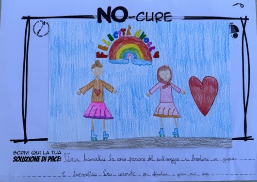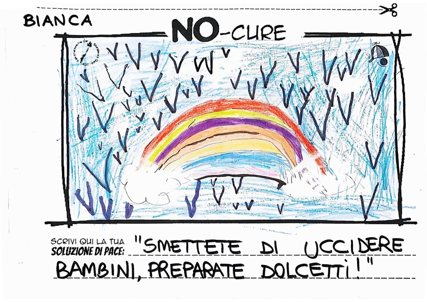 L’opera di sensibilizzazione si si esprime concretamente con la creazione di un DISEGNO DELLA MERAVIGLIA che andrà ad aiutare una delle 12 fatiche. Allo stesso modo chiederemo a tutti i partecipanti di andare a scrivere una “Soluzione di Pace” che possa aiutare anch’essa una delle 12 fatiche dei Bambini della guerra.