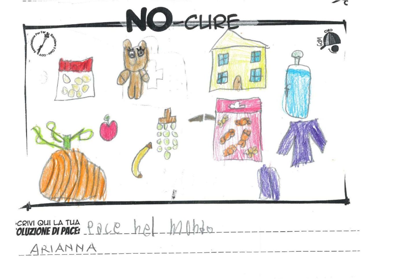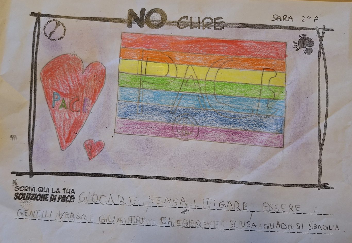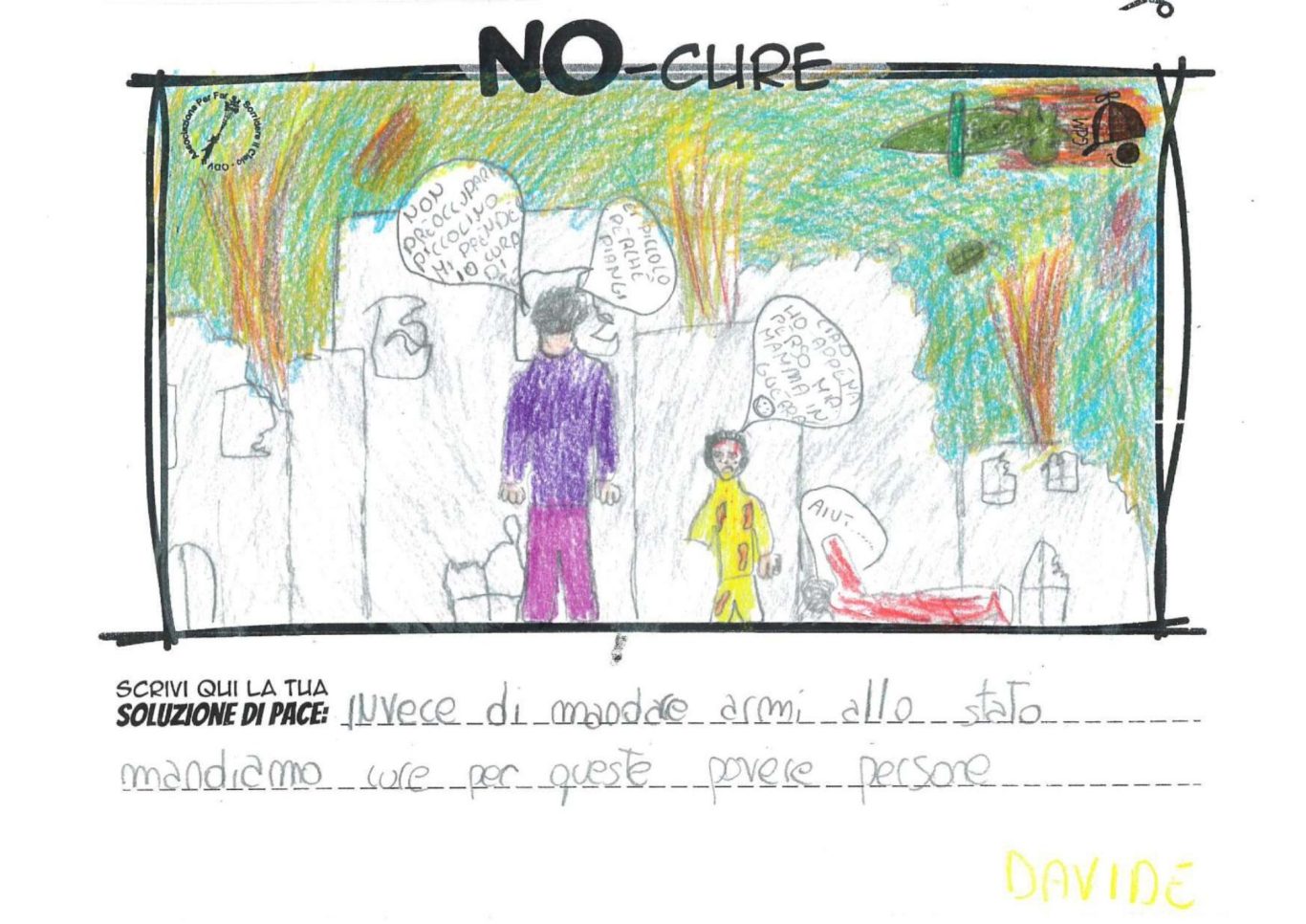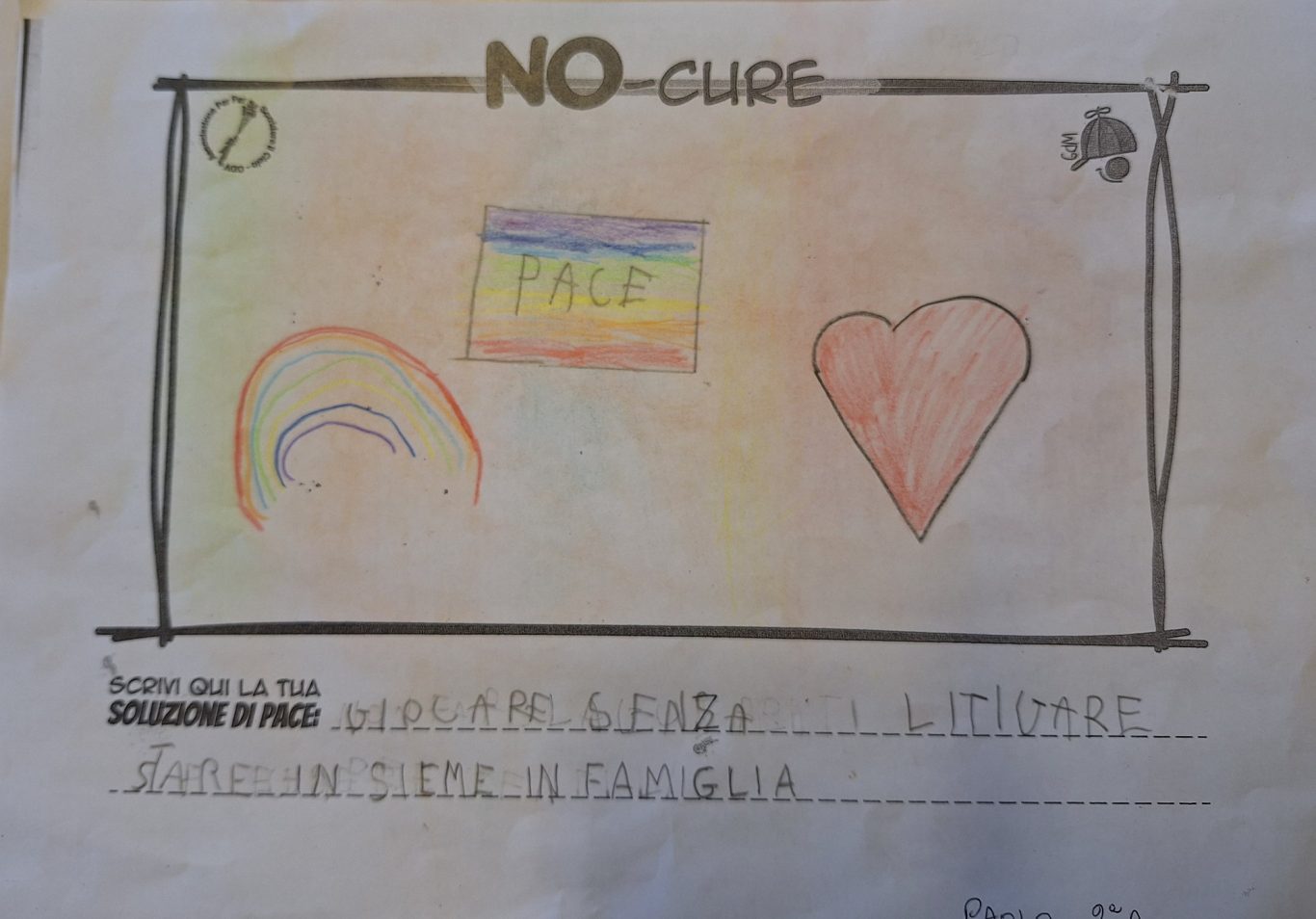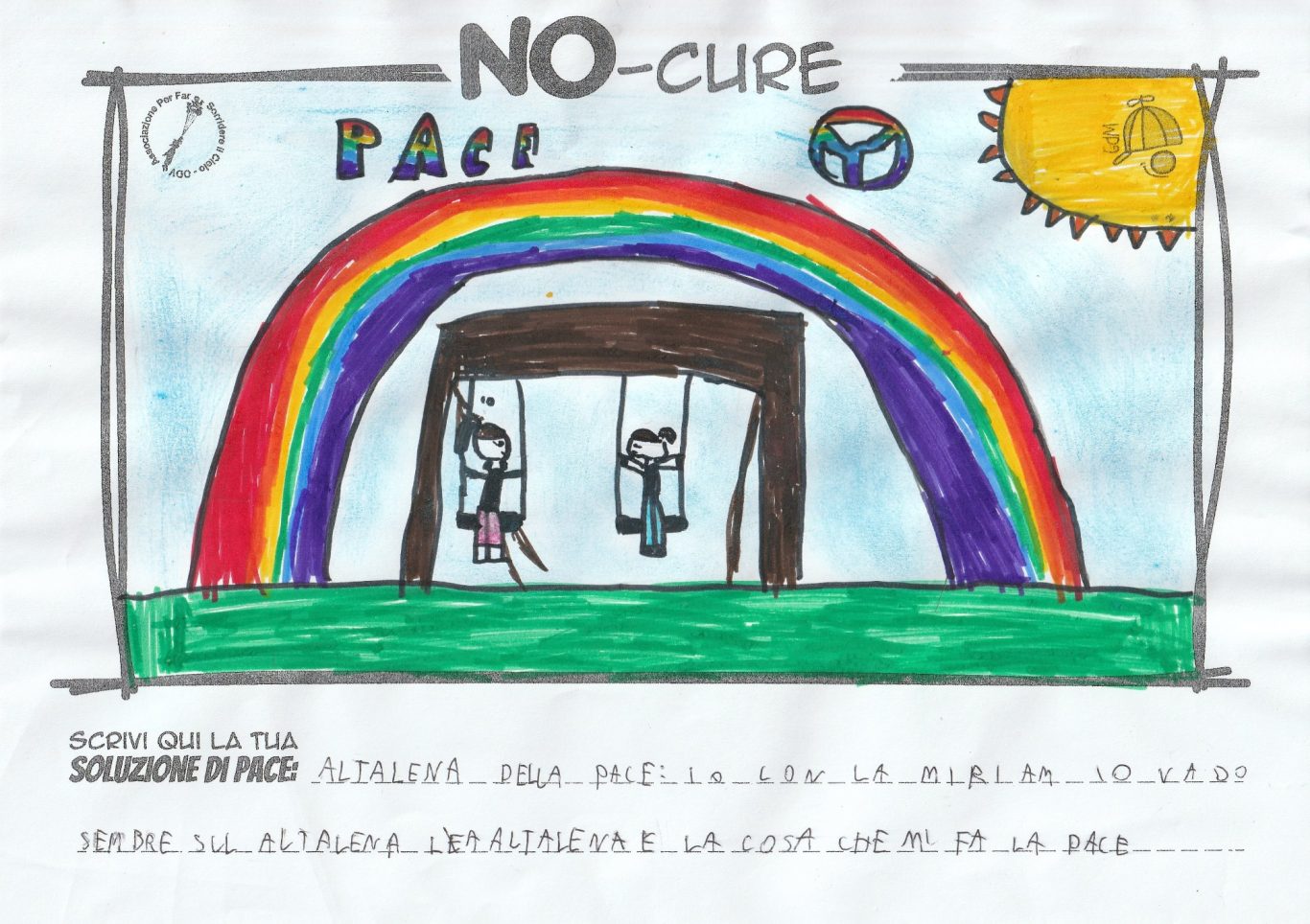 L’opera di sensibilizzazione si si esprime concretamente con la creazione di un DISEGNO DELLA MERAVIGLIA che andrà ad aiutare una delle 12 fatiche. Allo stesso modo chiederemo a tutti i partecipanti di andare a scrivere una “Soluzione di Pace” che possa aiutare anch’essa una delle 12 fatiche dei Bambini della guerra.