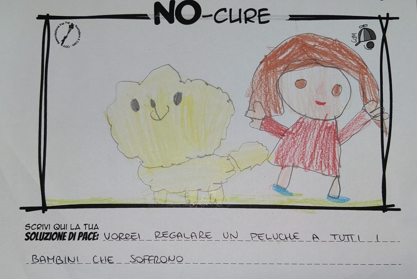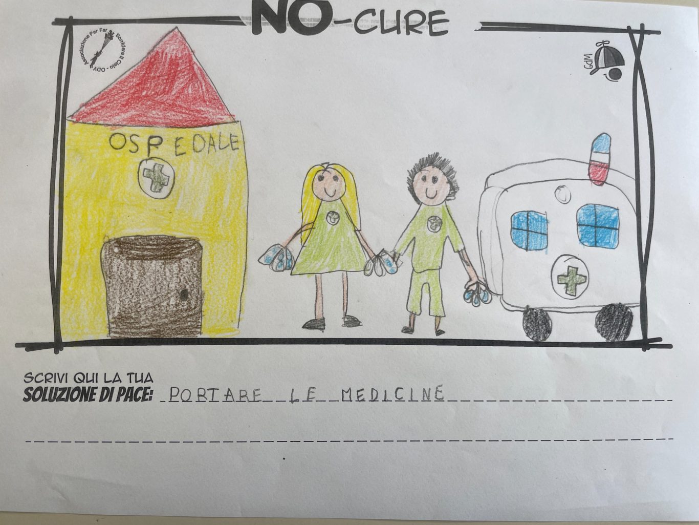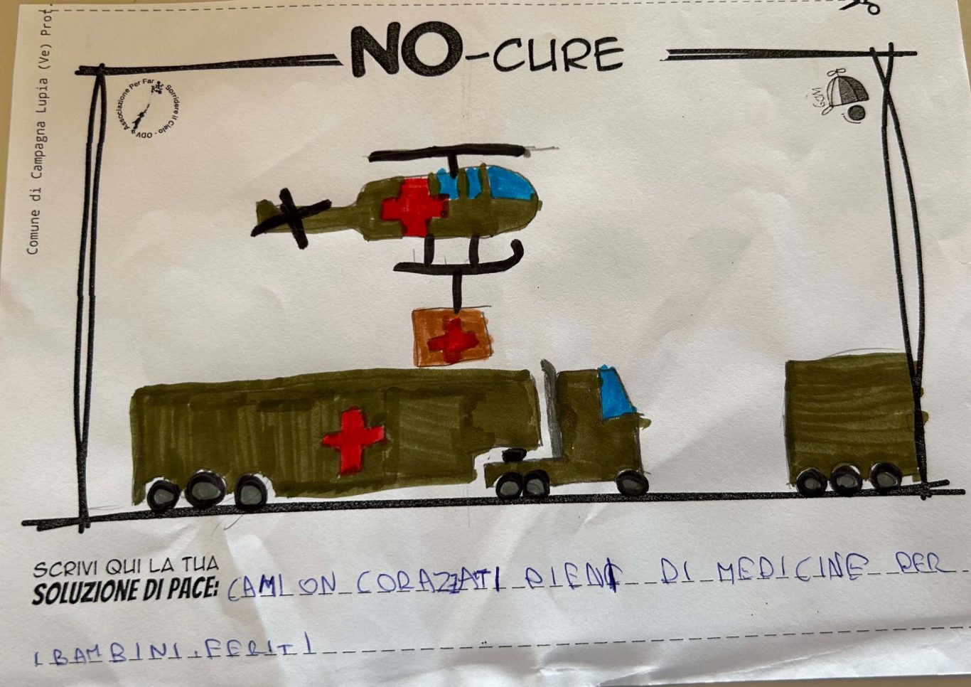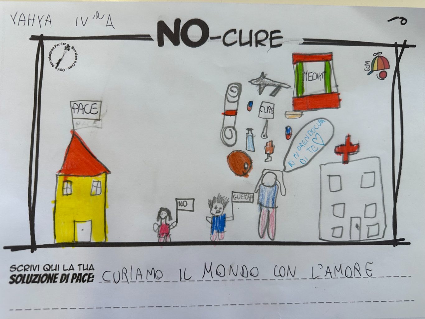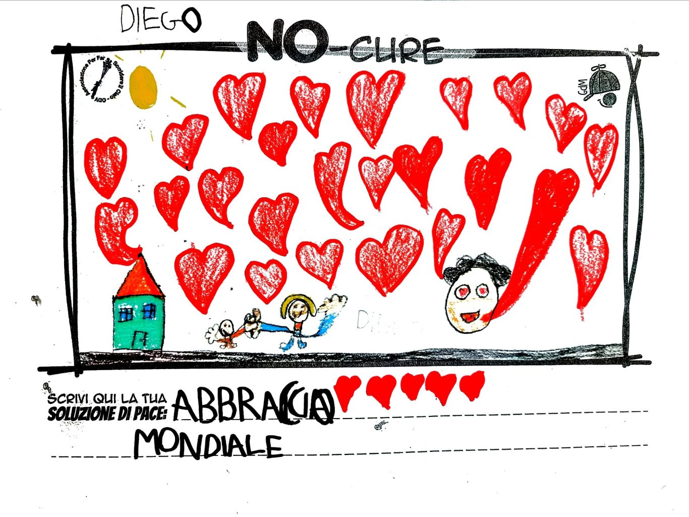 L’opera di sensibilizzazione si si esprime concretamente con la creazione di un DISEGNO DELLA MERAVIGLIA che andrà ad aiutare una delle 12 fatiche. Allo stesso modo chiederemo a tutti i partecipanti di andare a scrivere una “Soluzione di Pace” che possa aiutare anch’essa una delle 12 fatiche dei Bambini della guerra.