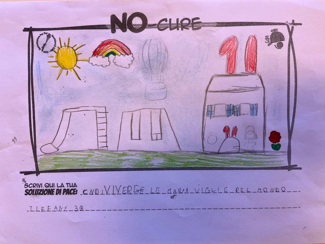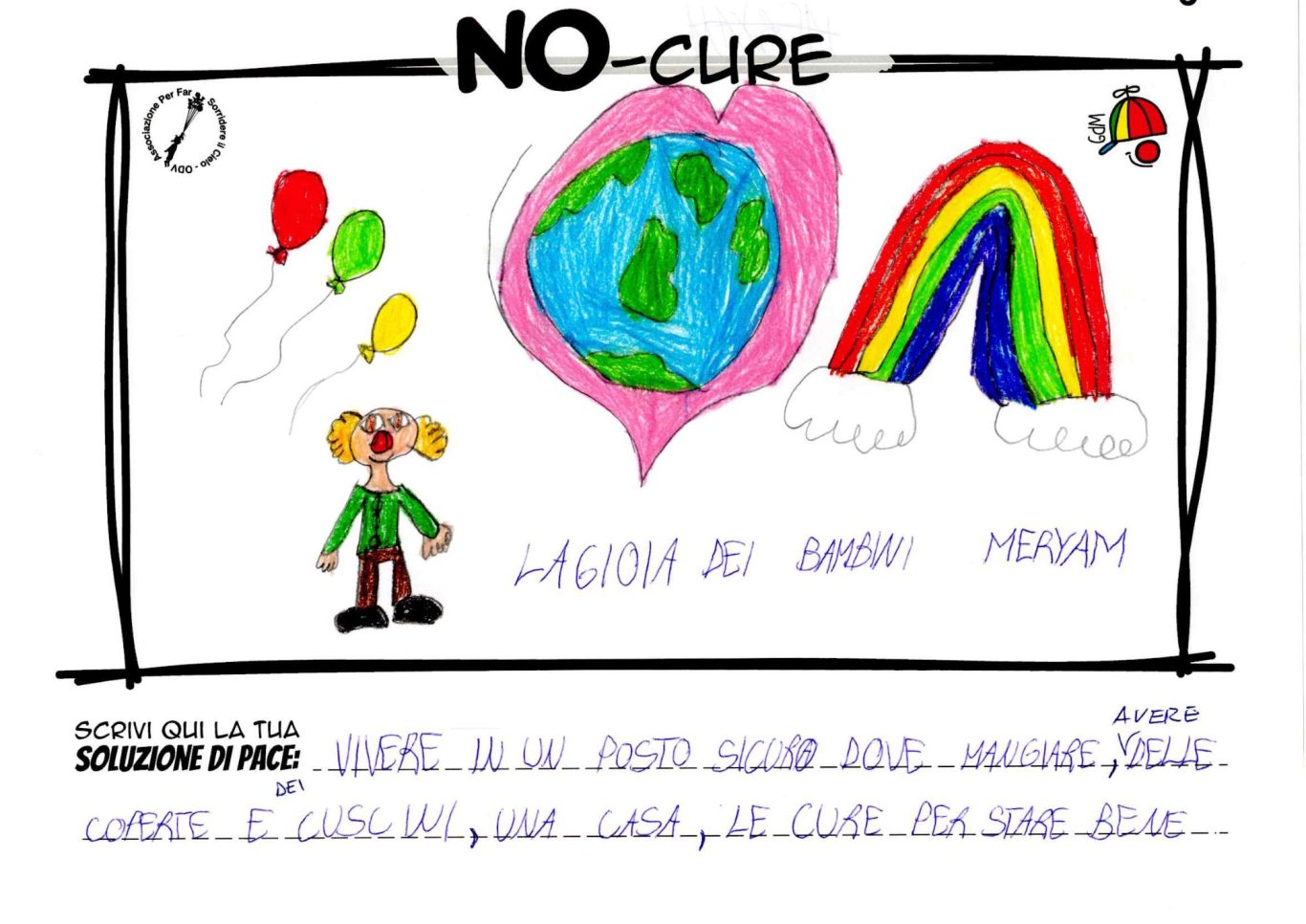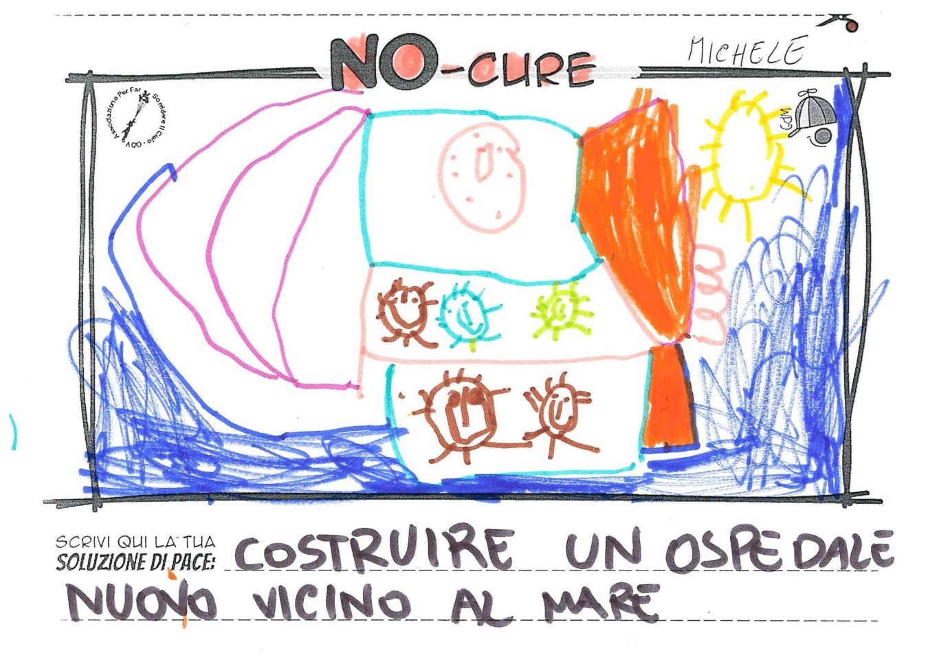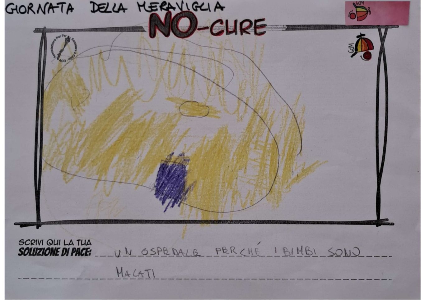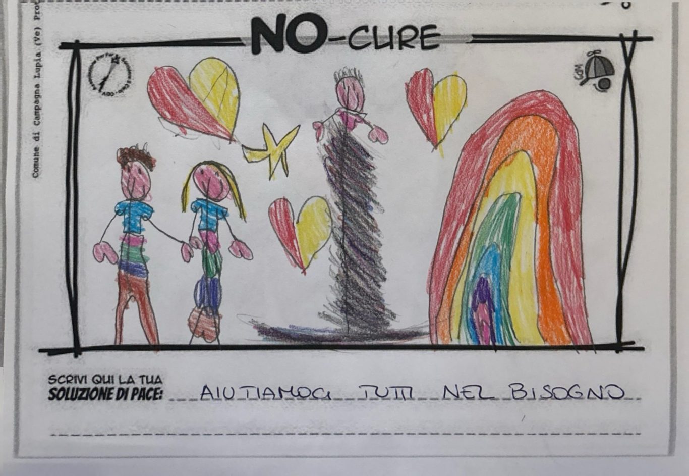 L’opera di sensibilizzazione si si esprime concretamente con la creazione di un DISEGNO DELLA MERAVIGLIA che andrà ad aiutare una delle 12 fatiche. Allo stesso modo chiederemo a tutti i partecipanti di andare a scrivere una “Soluzione di Pace” che possa aiutare anch’essa una delle 12 fatiche dei Bambini della guerra.