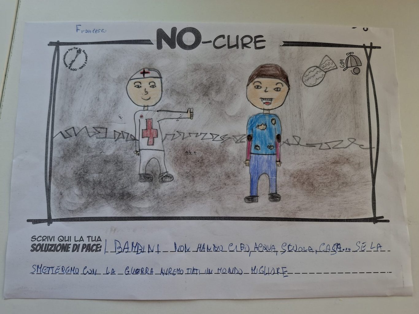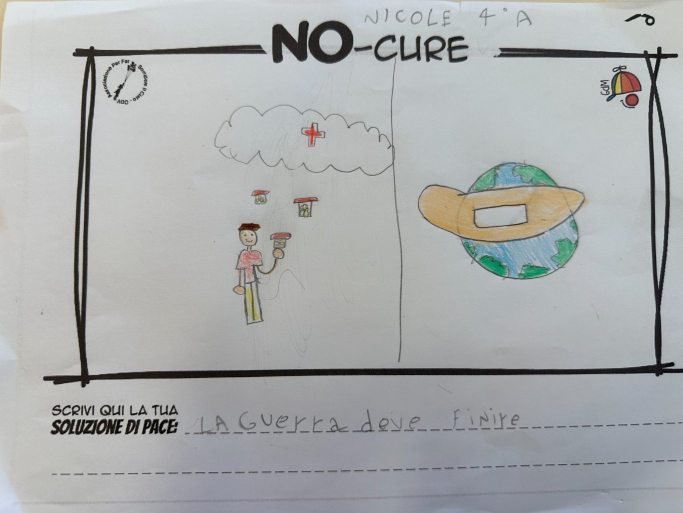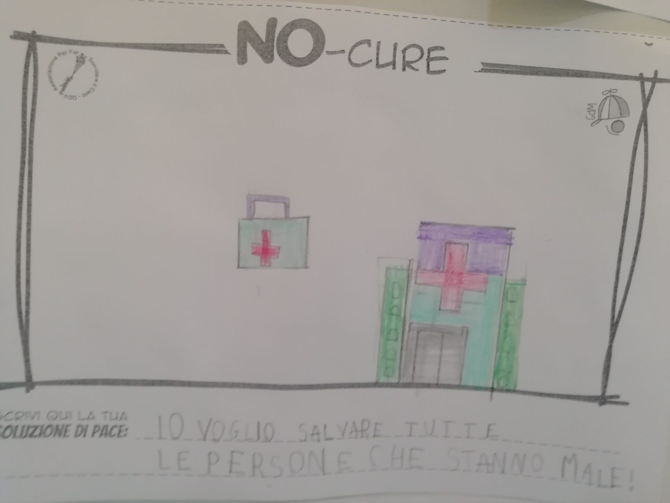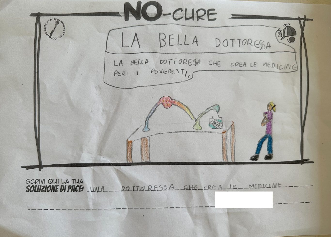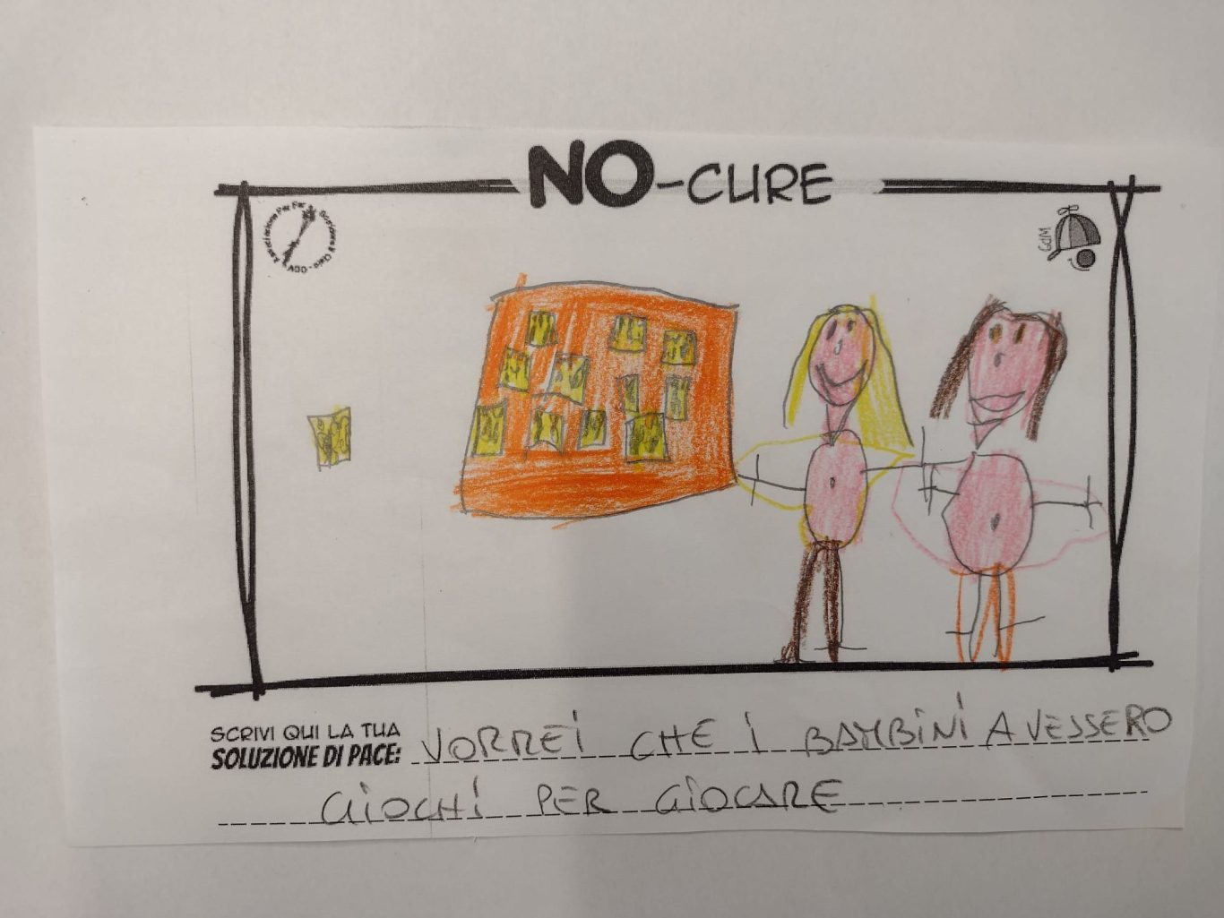 L’opera di sensibilizzazione si si esprime concretamente con la creazione di un DISEGNO DELLA MERAVIGLIA che andrà ad aiutare una delle 12 fatiche. Allo stesso modo chiederemo a tutti i partecipanti di andare a scrivere una “Soluzione di Pace” che possa aiutare anch’essa una delle 12 fatiche dei Bambini della guerra.