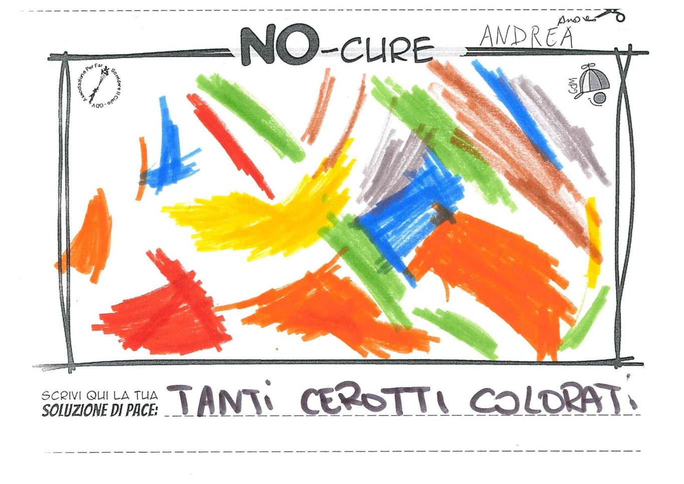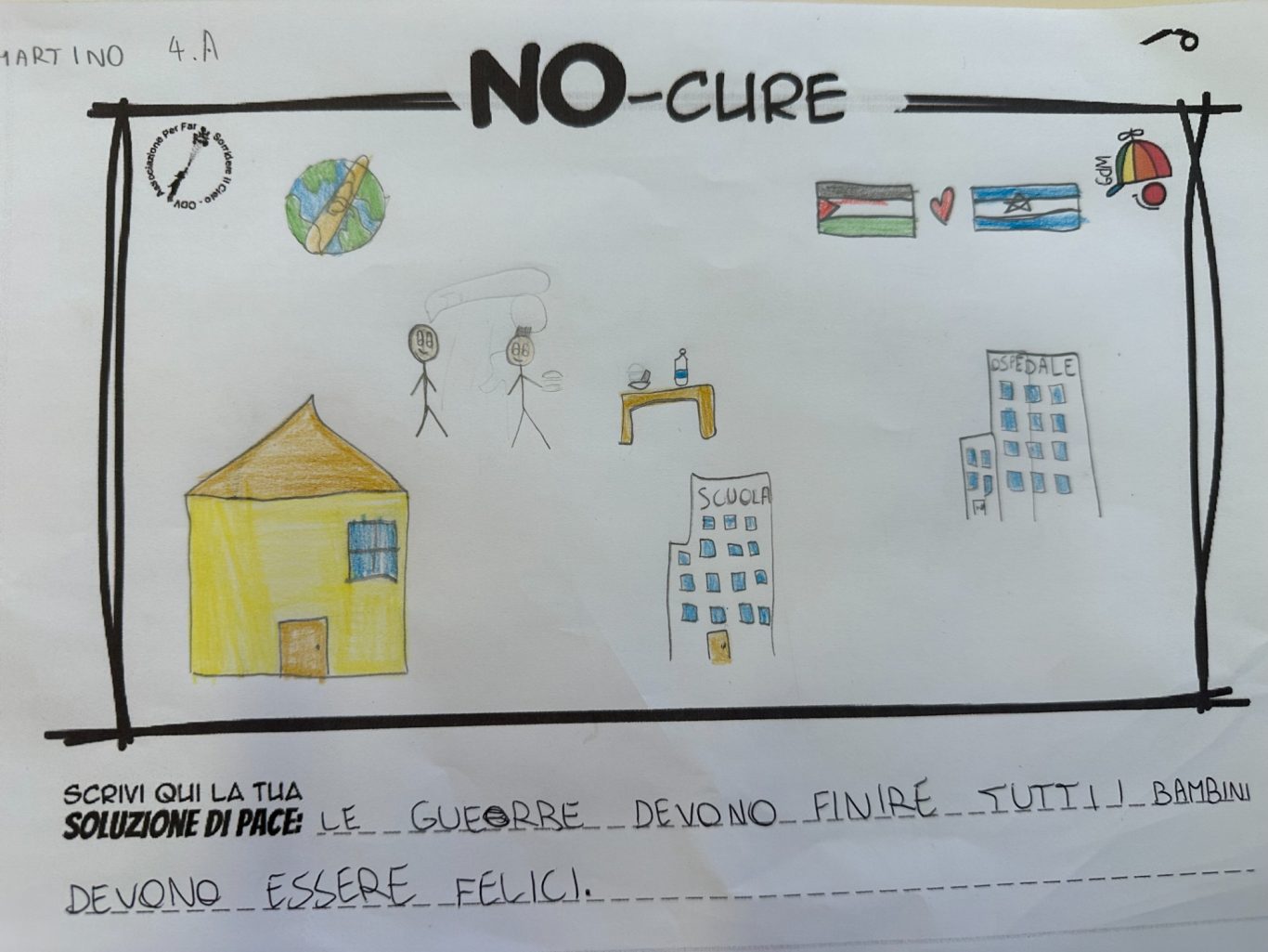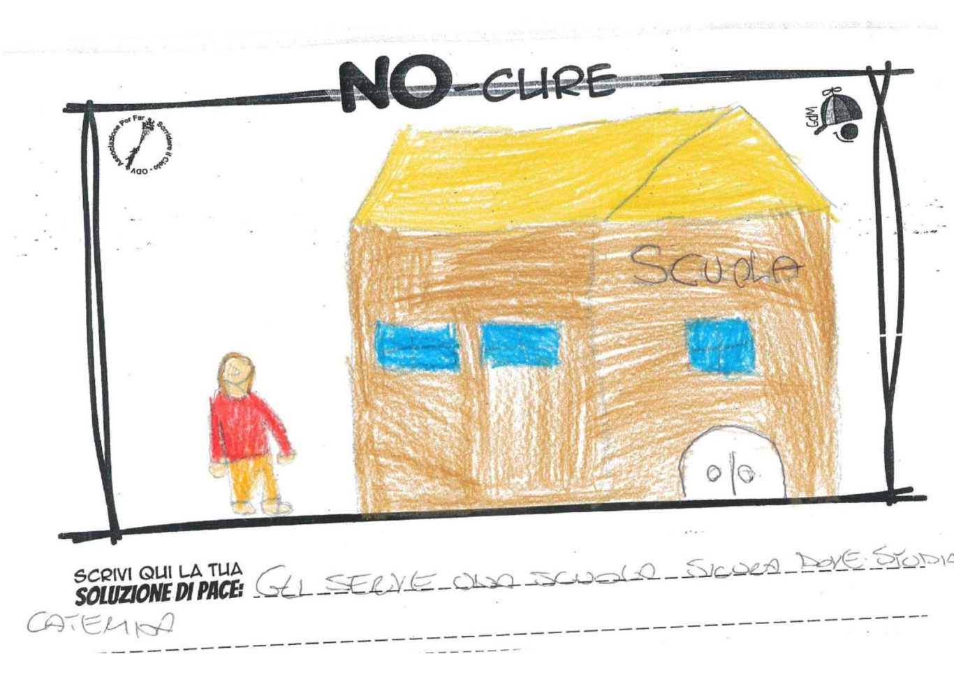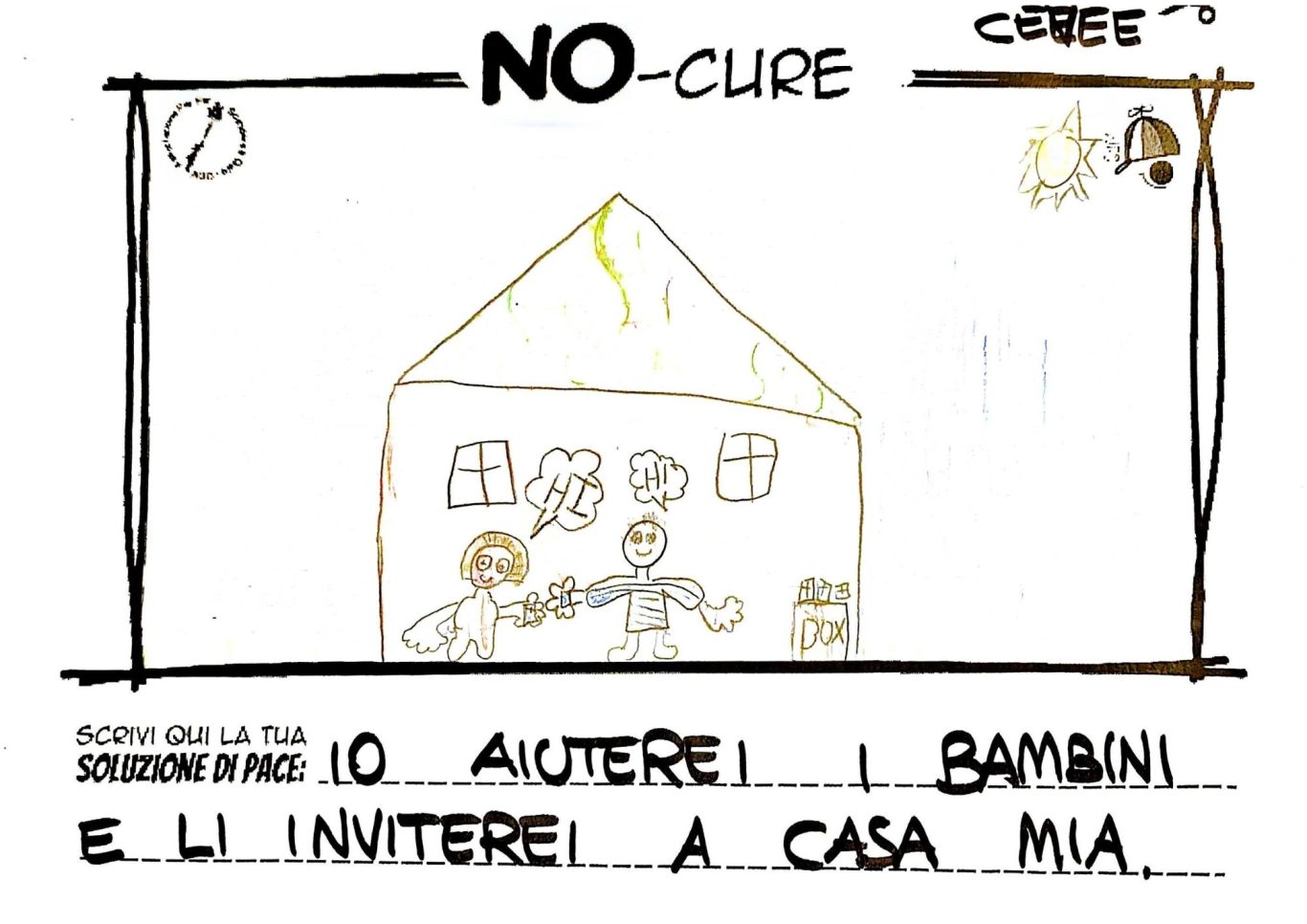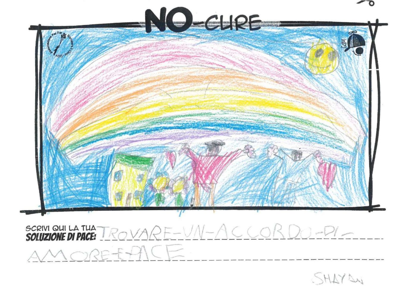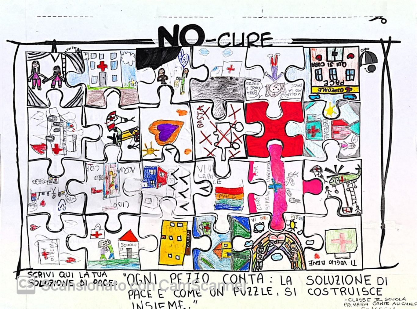 L’opera di sensibilizzazione si si esprime concretamente con la creazione di un DISEGNO DELLA MERAVIGLIA che andrà ad aiutare una delle 12 fatiche. Allo stesso modo chiederemo a tutti i partecipanti di andare a scrivere una “Soluzione di Pace” che possa aiutare anch’essa una delle 12 fatiche dei Bambini della guerra.
