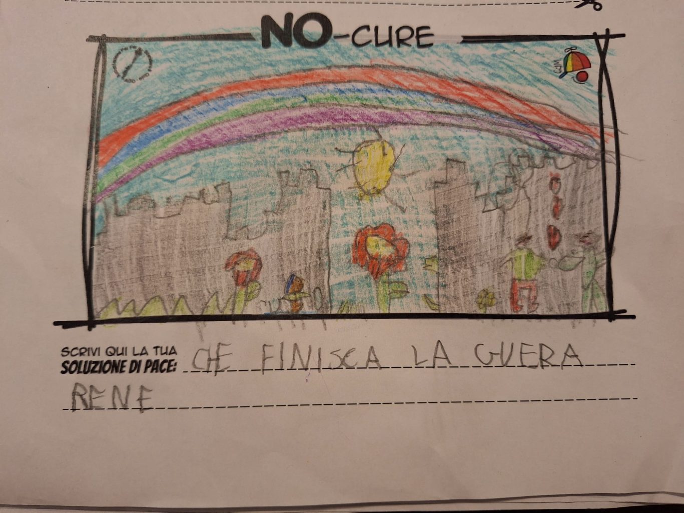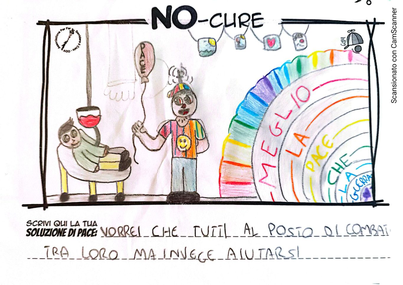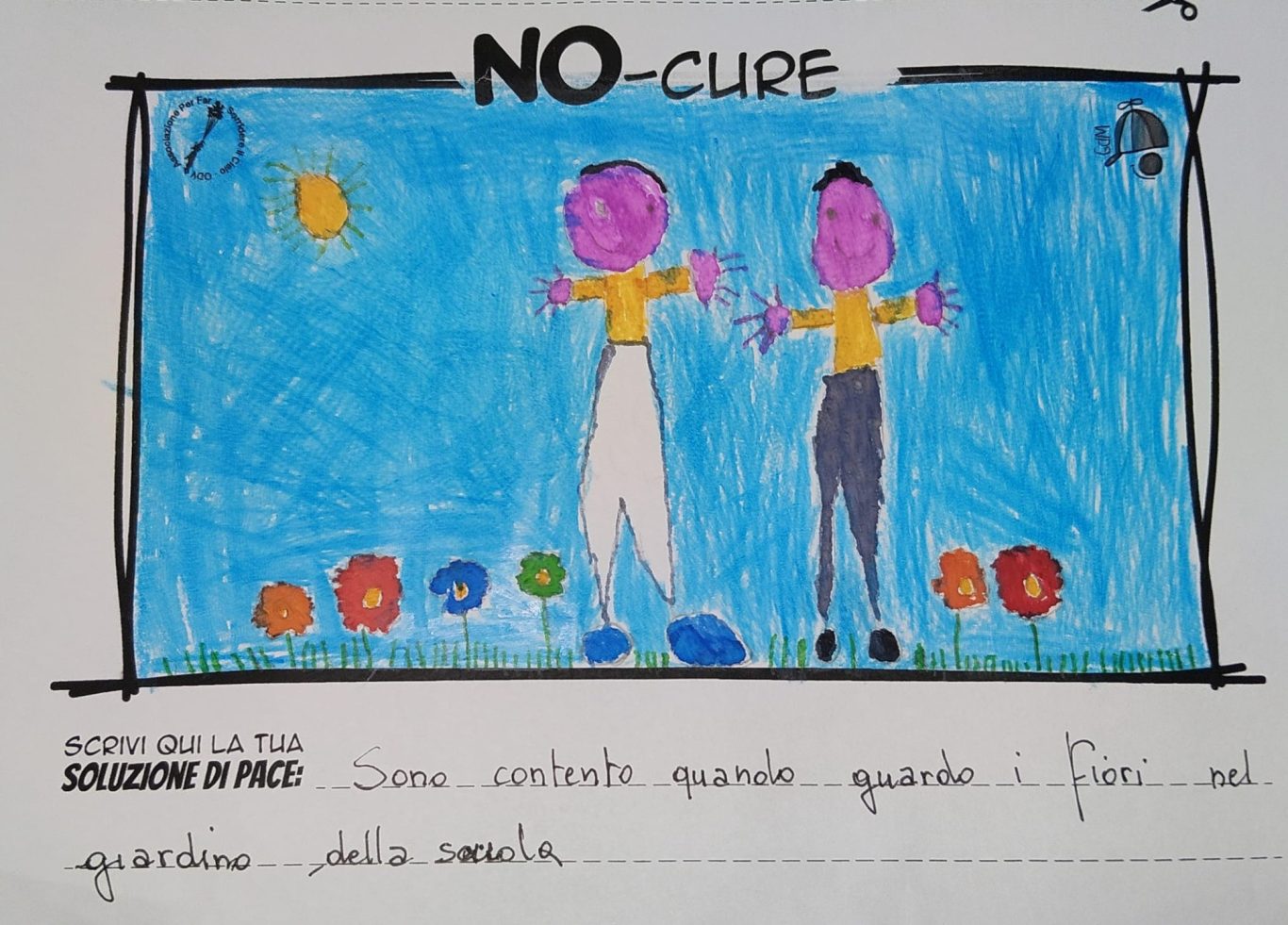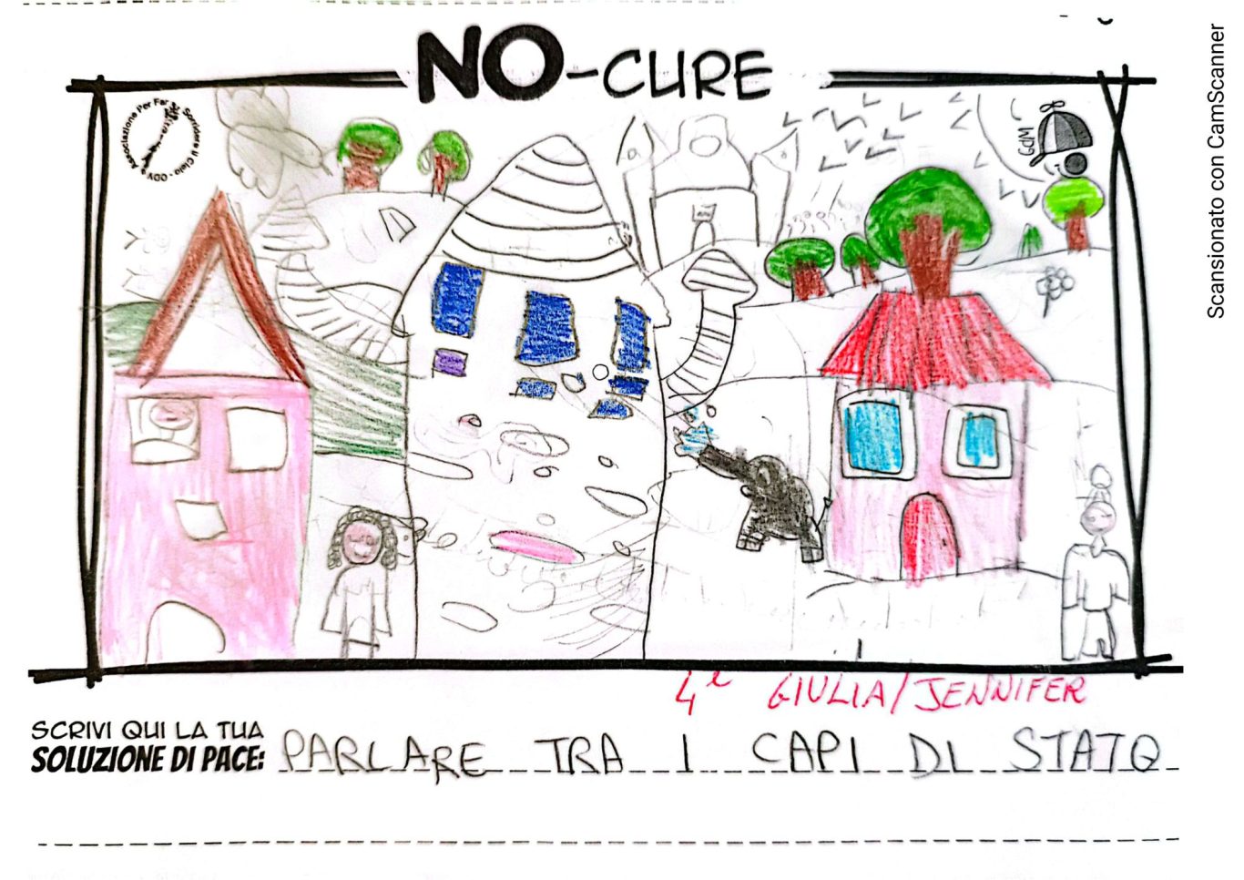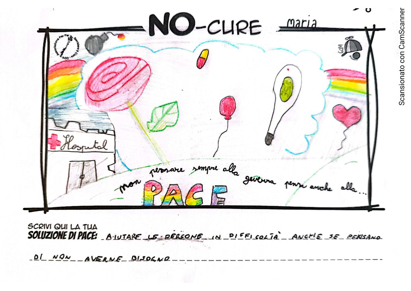 L’opera di sensibilizzazione si si esprime concretamente con la creazione di un DISEGNO DELLA MERAVIGLIA che andrà ad aiutare una delle 12 fatiche. Allo stesso modo chiederemo a tutti i partecipanti di andare a scrivere una “Soluzione di Pace” che possa aiutare anch’essa una delle 12 fatiche dei Bambini della guerra.