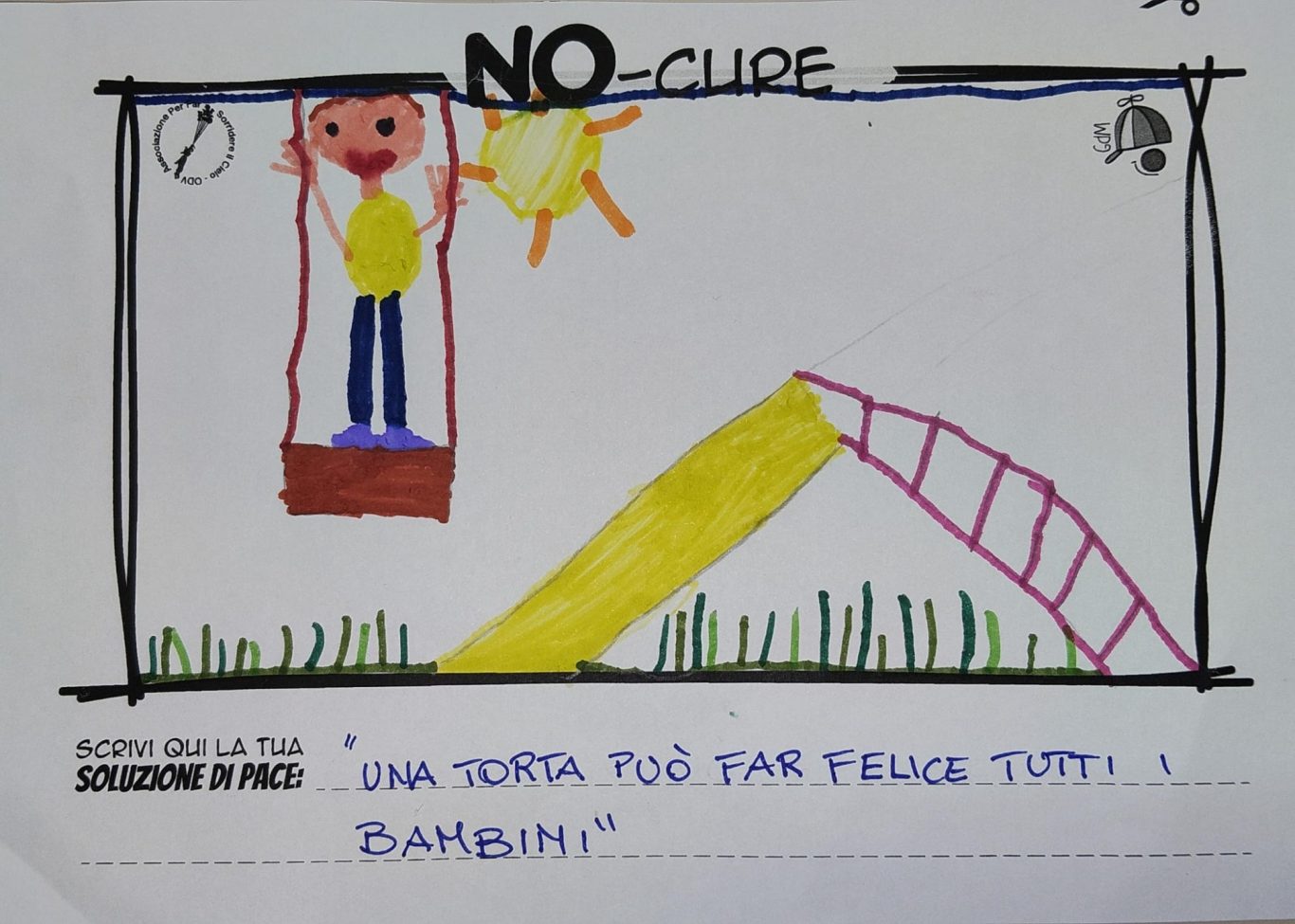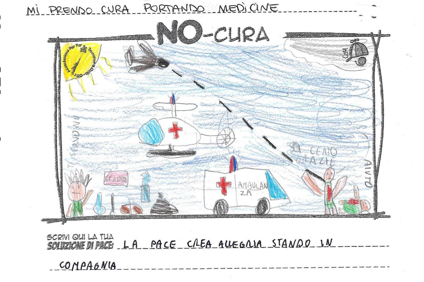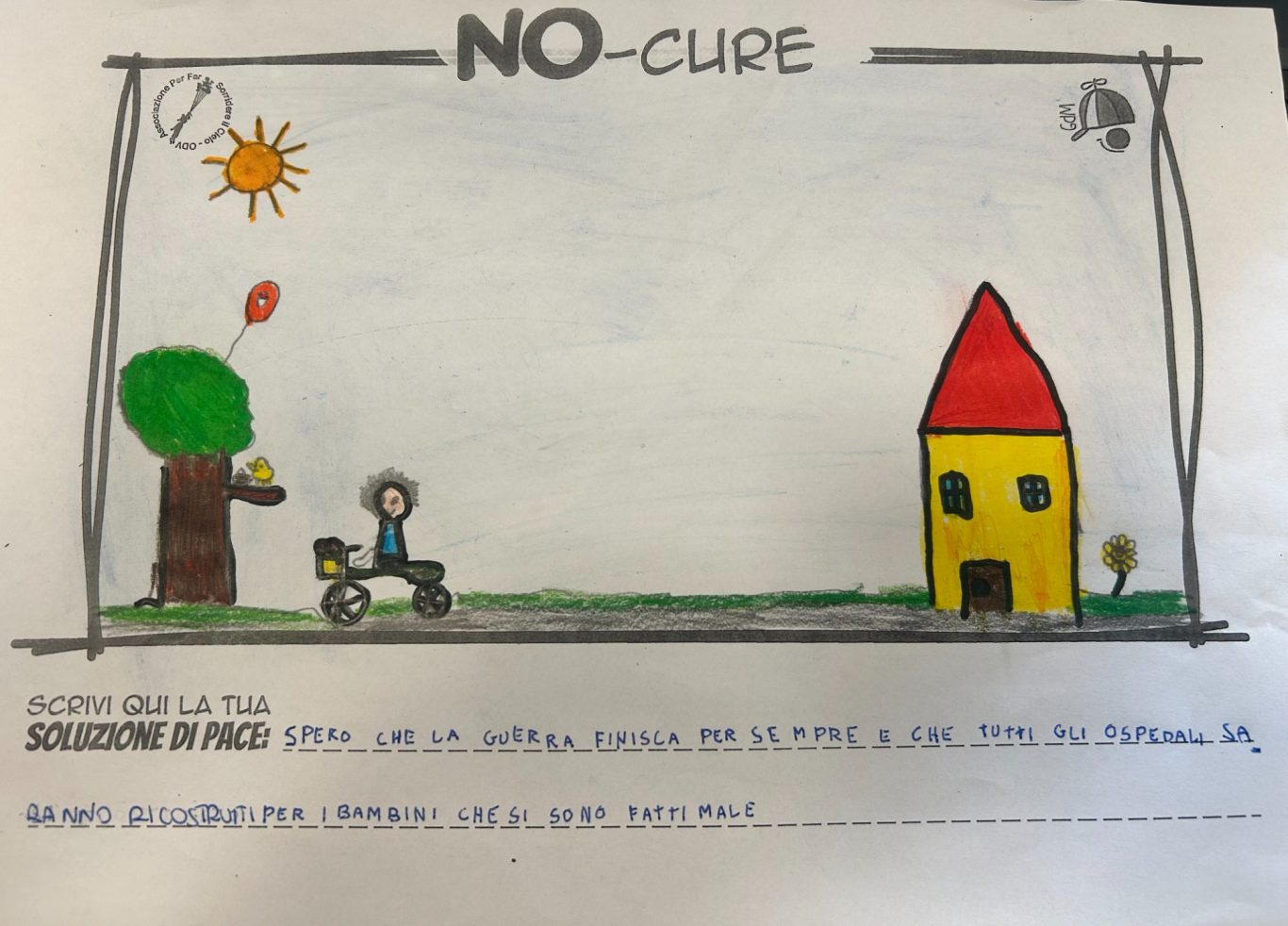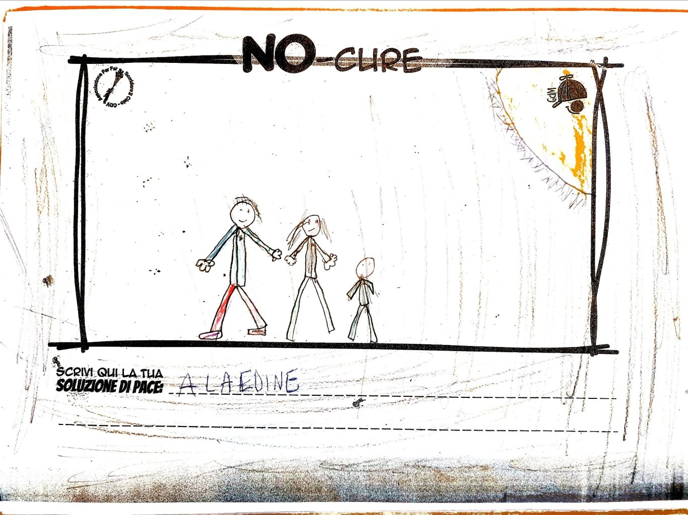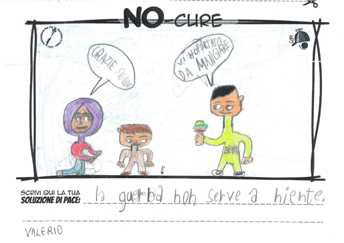 L’opera di sensibilizzazione si si esprime concretamente con la creazione di un DISEGNO DELLA MERAVIGLIA che andrà ad aiutare una delle 12 fatiche. Allo stesso modo chiederemo a tutti i partecipanti di andare a scrivere una “Soluzione di Pace” che possa aiutare anch’essa una delle 12 fatiche dei Bambini della guerra.