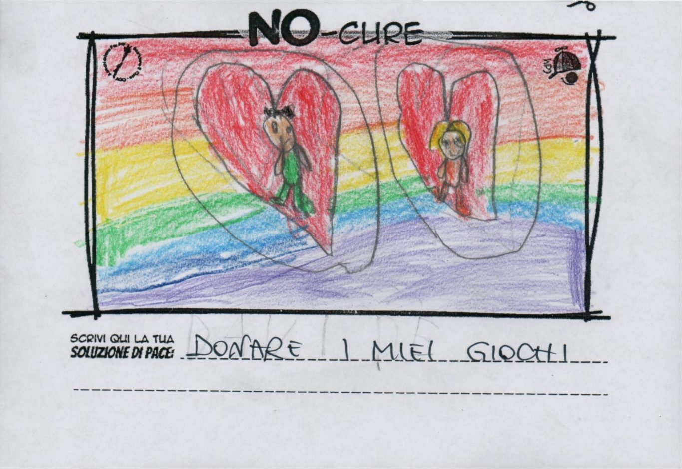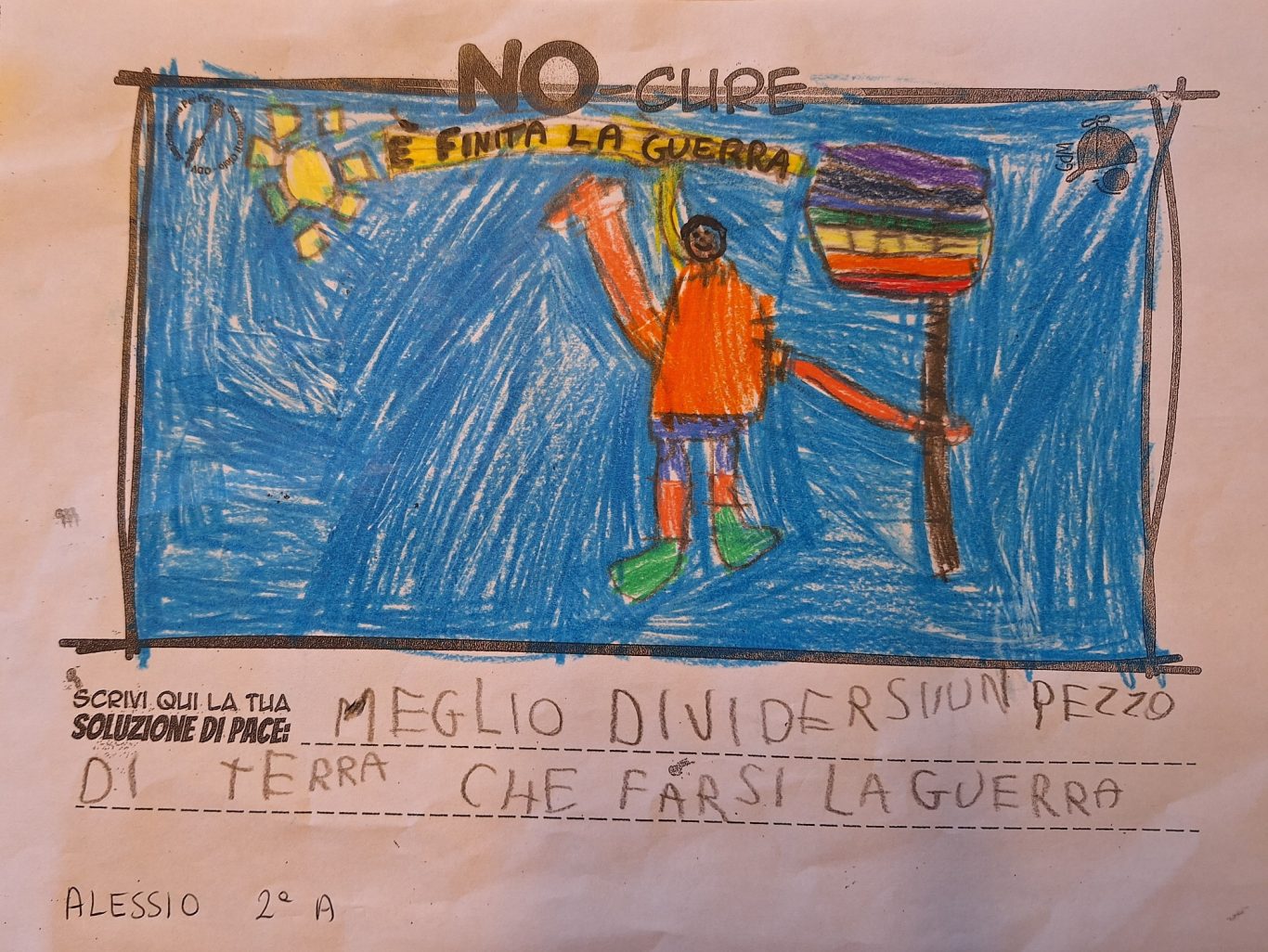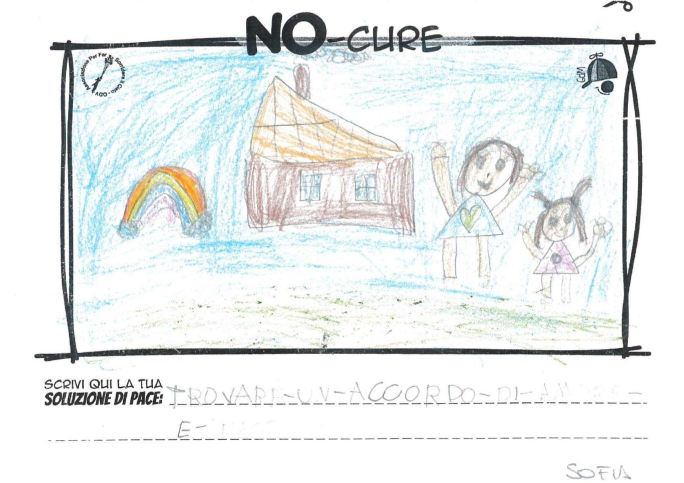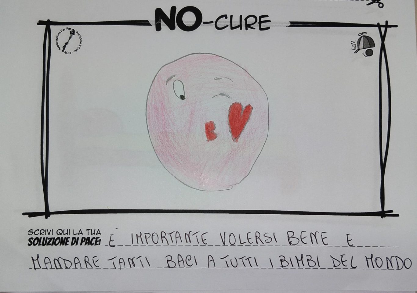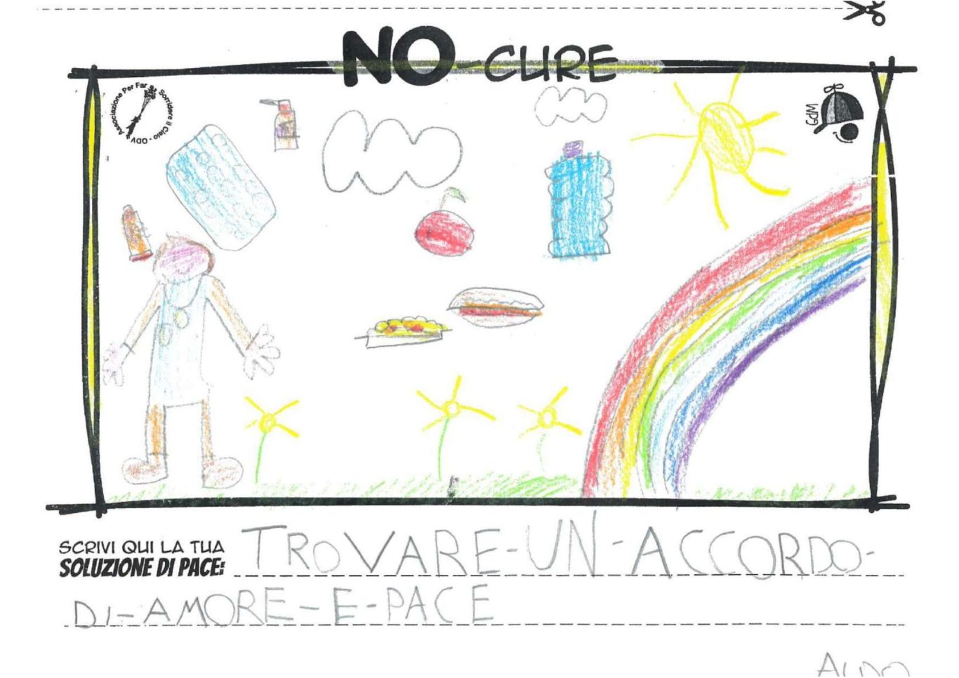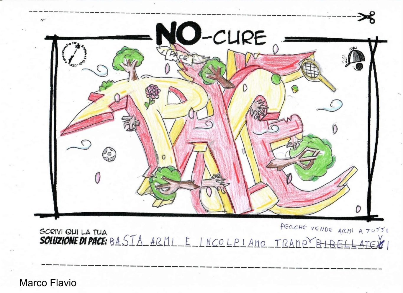 L’opera di sensibilizzazione si si esprime concretamente con la creazione di un DISEGNO DELLA MERAVIGLIA che andrà ad aiutare una delle 12 fatiche. Allo stesso modo chiederemo a tutti i partecipanti di andare a scrivere una “Soluzione di Pace” che possa aiutare anch’essa una delle 12 fatiche dei Bambini della guerra.