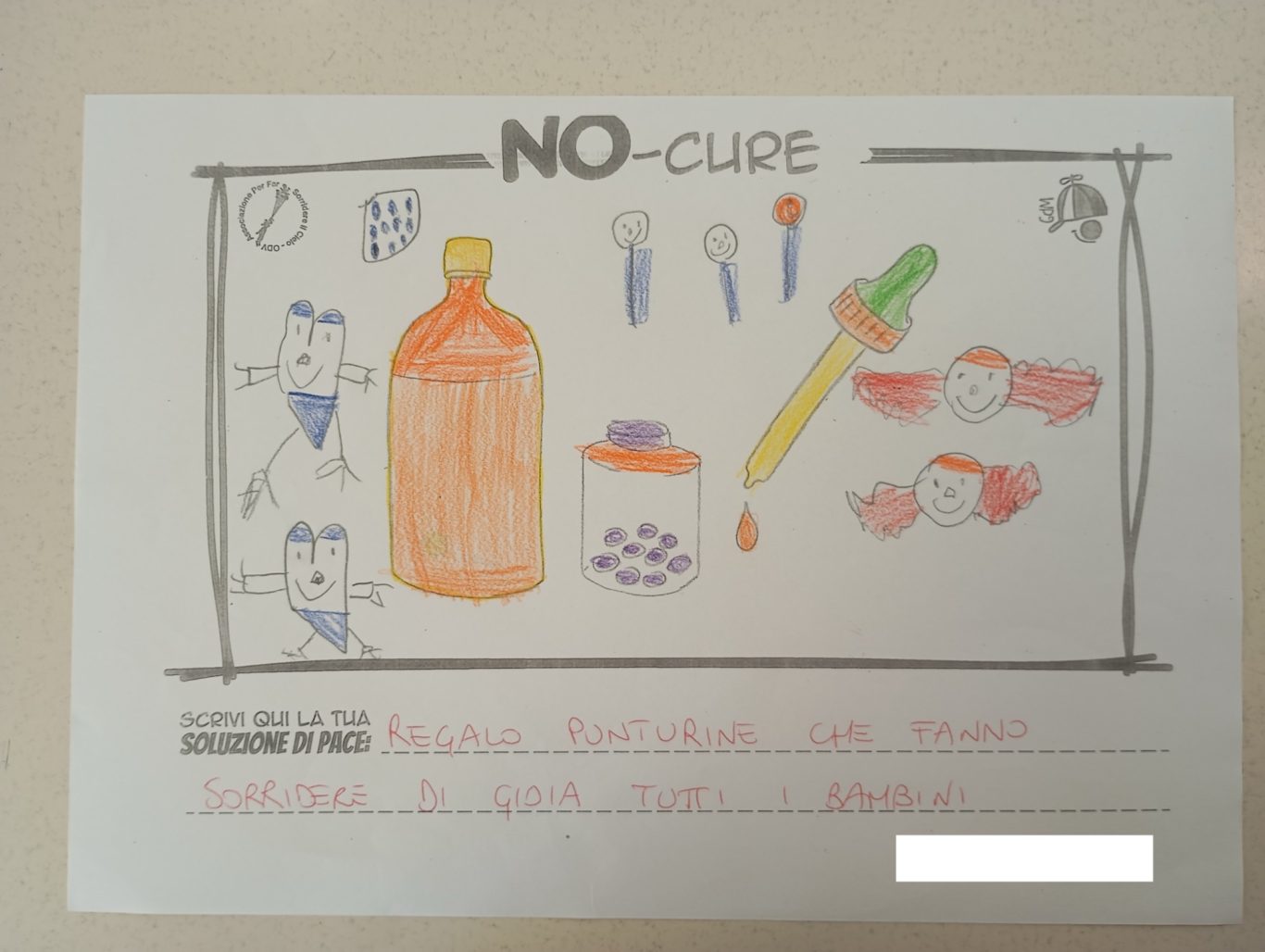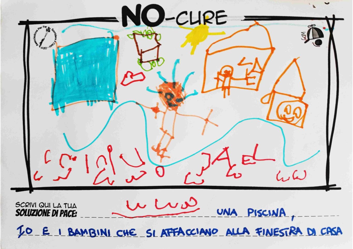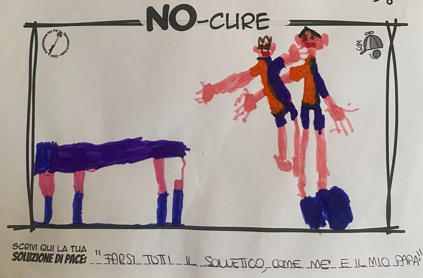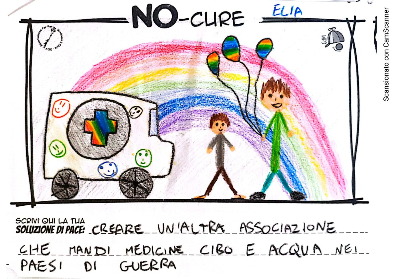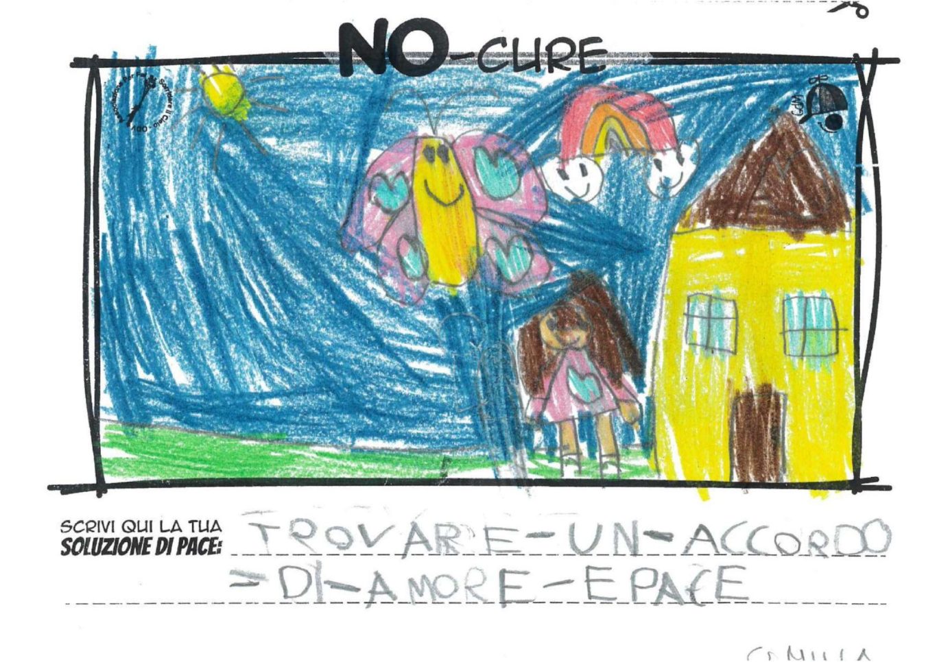 L’opera di sensibilizzazione si si esprime concretamente con la creazione di un DISEGNO DELLA MERAVIGLIA che andrà ad aiutare una delle 12 fatiche. Allo stesso modo chiederemo a tutti i partecipanti di andare a scrivere una “Soluzione di Pace” che possa aiutare anch’essa una delle 12 fatiche dei Bambini della guerra.