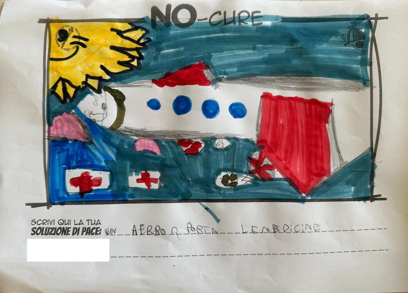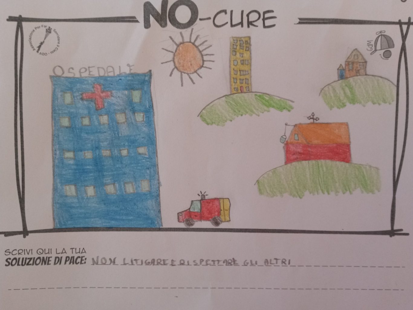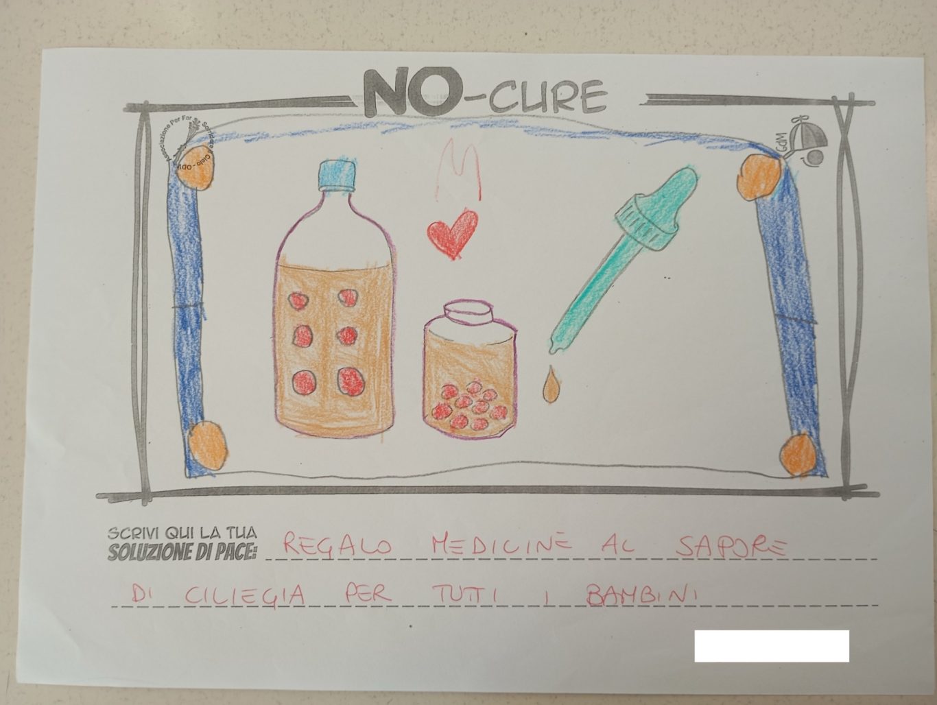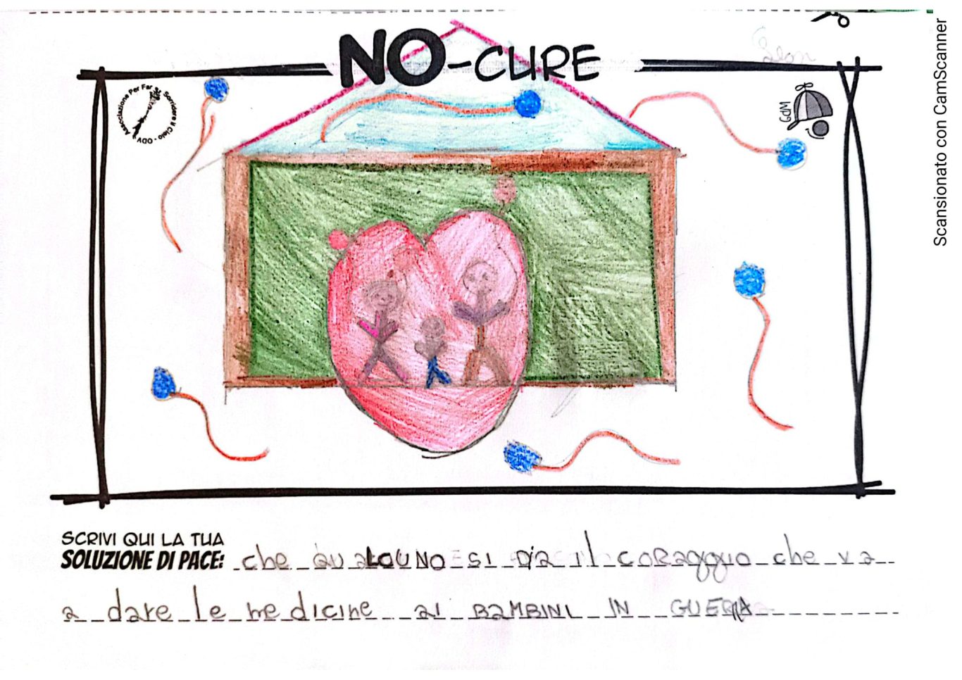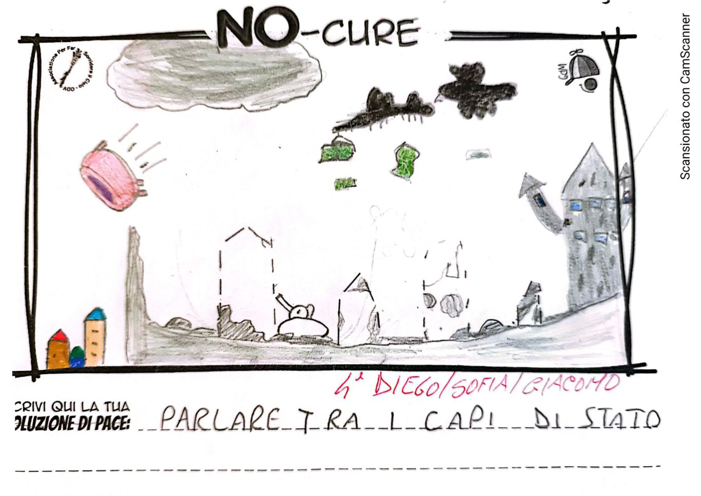 L’opera di sensibilizzazione si si esprime concretamente con la creazione di un DISEGNO DELLA MERAVIGLIA che andrà ad aiutare una delle 12 fatiche. Allo stesso modo chiederemo a tutti i partecipanti di andare a scrivere una “Soluzione di Pace” che possa aiutare anch’essa una delle 12 fatiche dei Bambini della guerra.