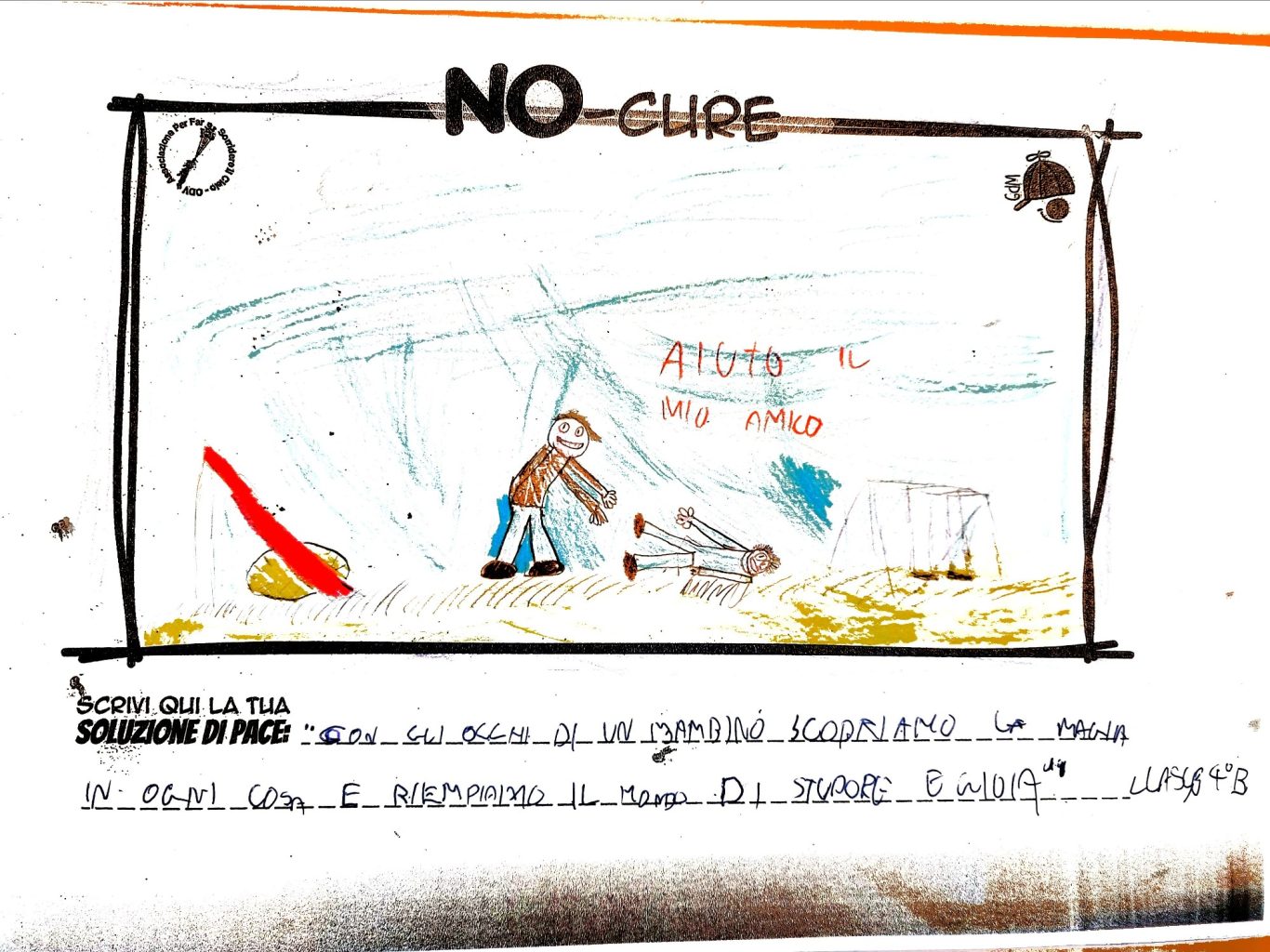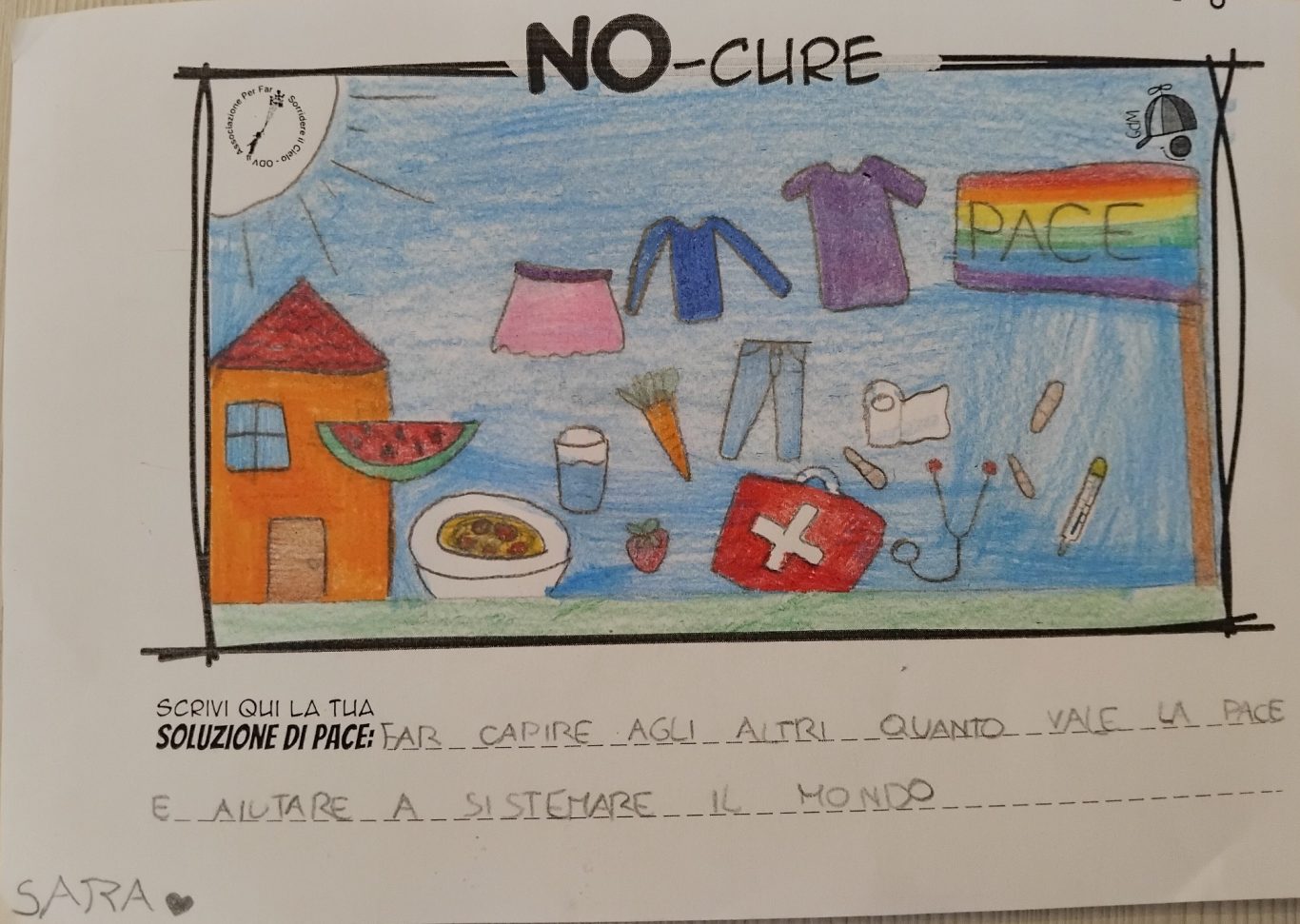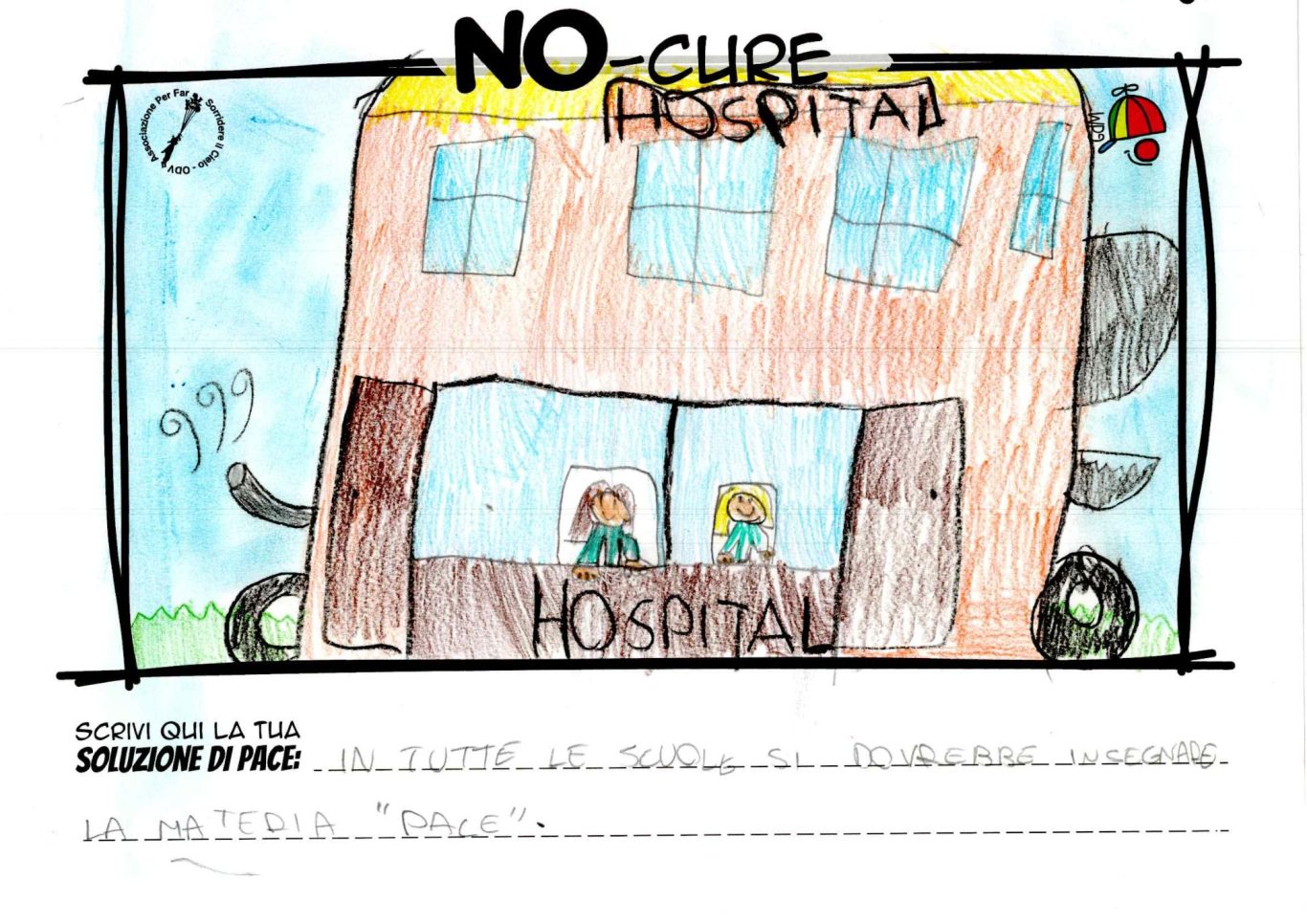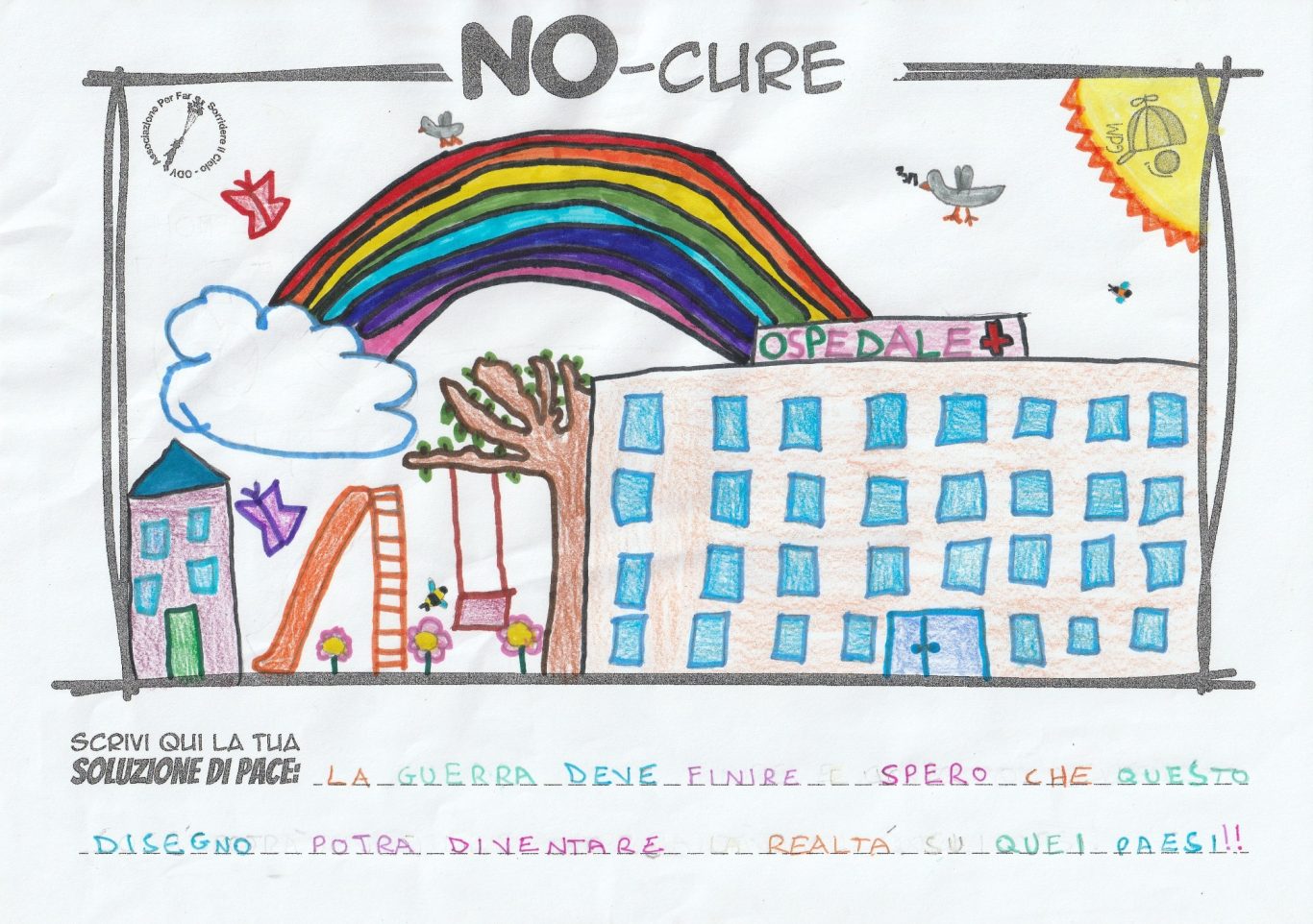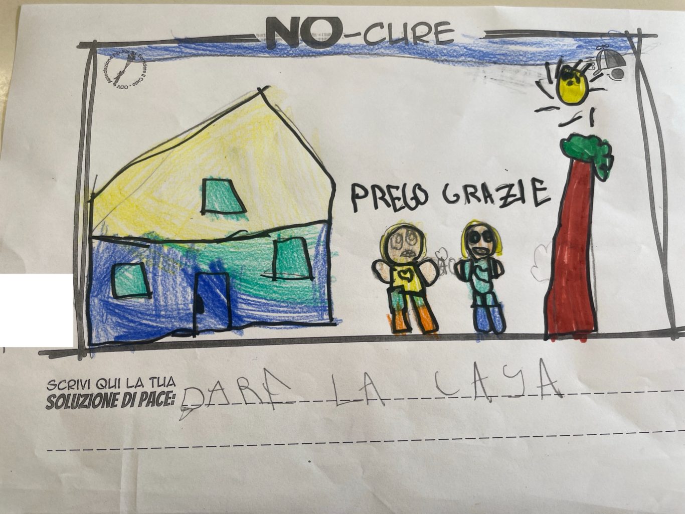 L’opera di sensibilizzazione si si esprime concretamente con la creazione di un DISEGNO DELLA MERAVIGLIA che andrà ad aiutare una delle 12 fatiche. Allo stesso modo chiederemo a tutti i partecipanti di andare a scrivere una “Soluzione di Pace” che possa aiutare anch’essa una delle 12 fatiche dei Bambini della guerra.