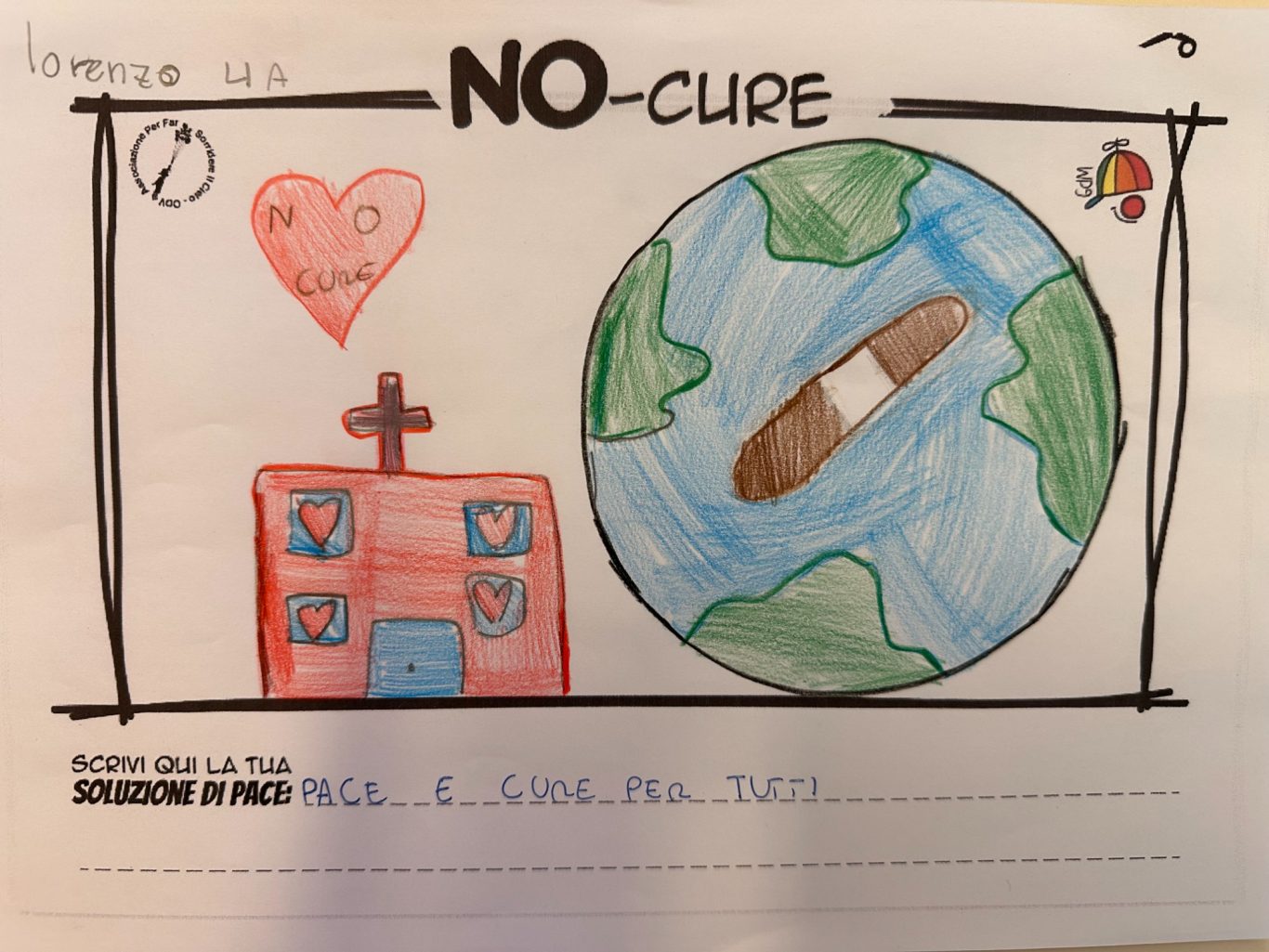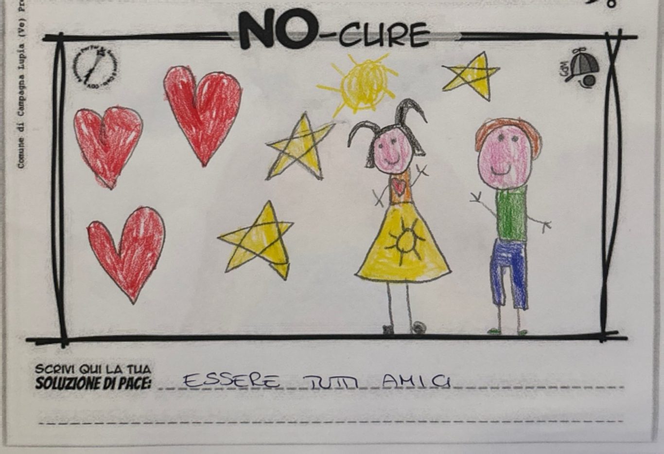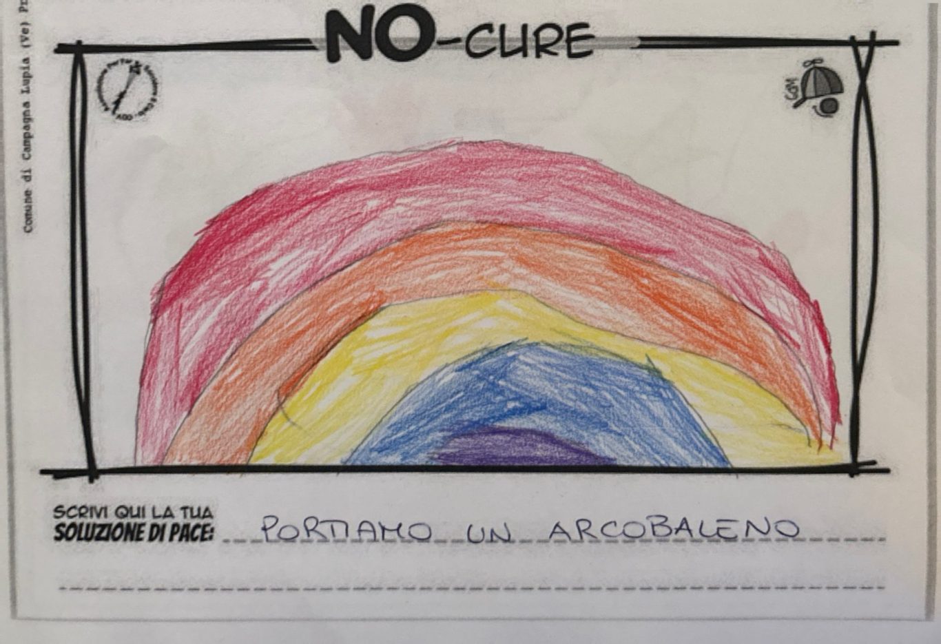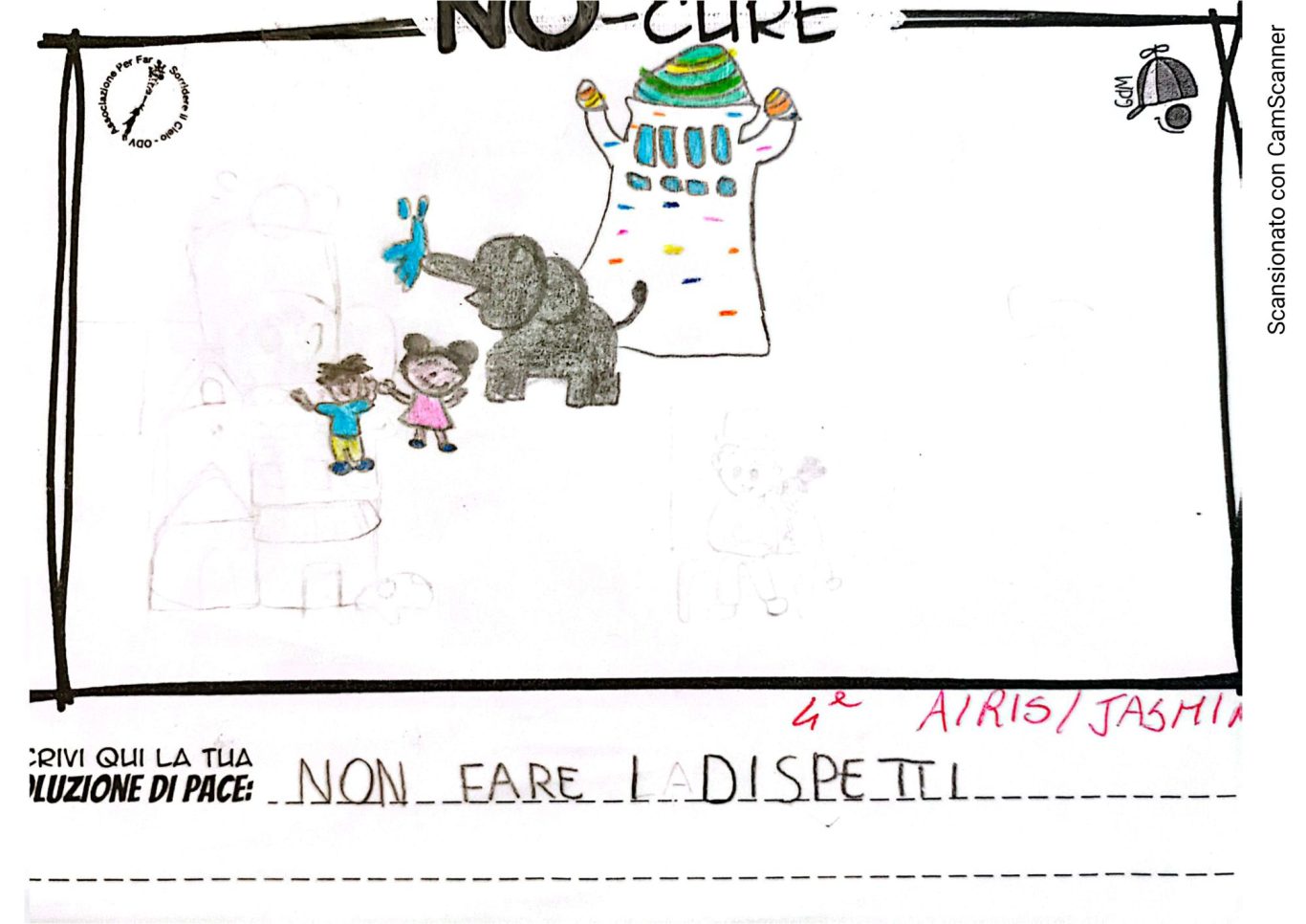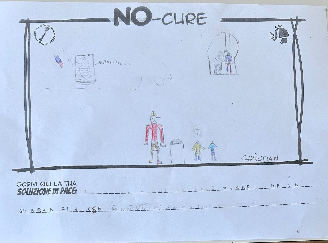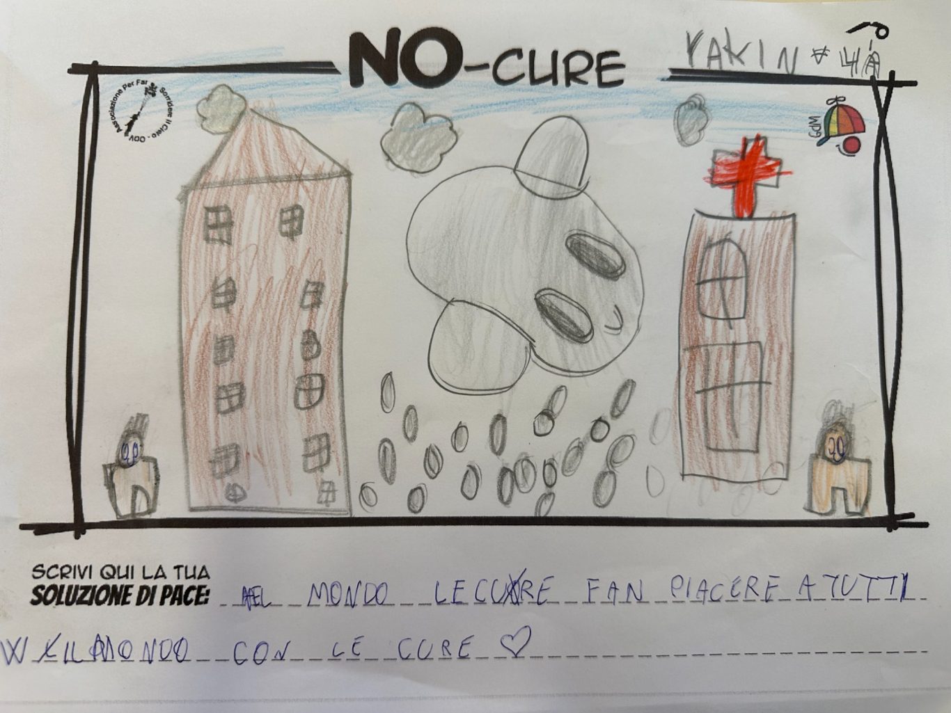 L’opera di sensibilizzazione si si esprime concretamente con la creazione di un DISEGNO DELLA MERAVIGLIA che andrà ad aiutare una delle 12 fatiche. Allo stesso modo chiederemo a tutti i partecipanti di andare a scrivere una “Soluzione di Pace” che possa aiutare anch’essa una delle 12 fatiche dei Bambini della guerra.