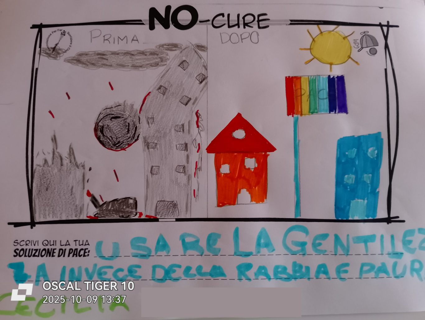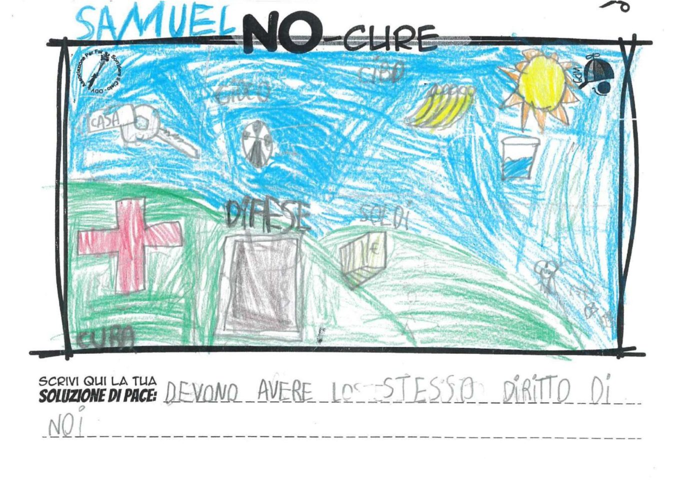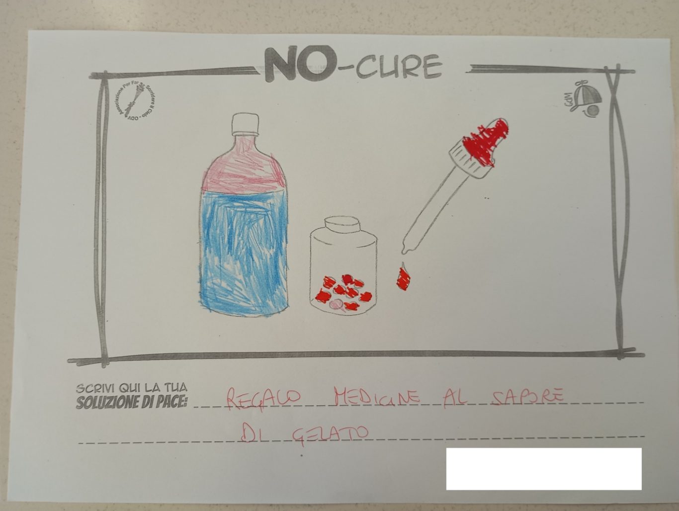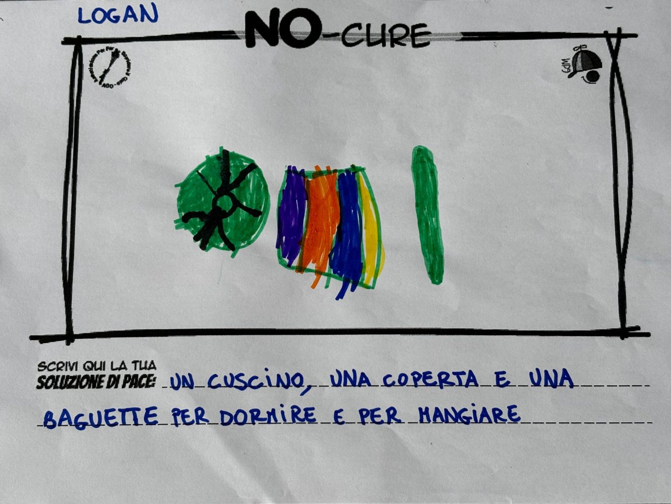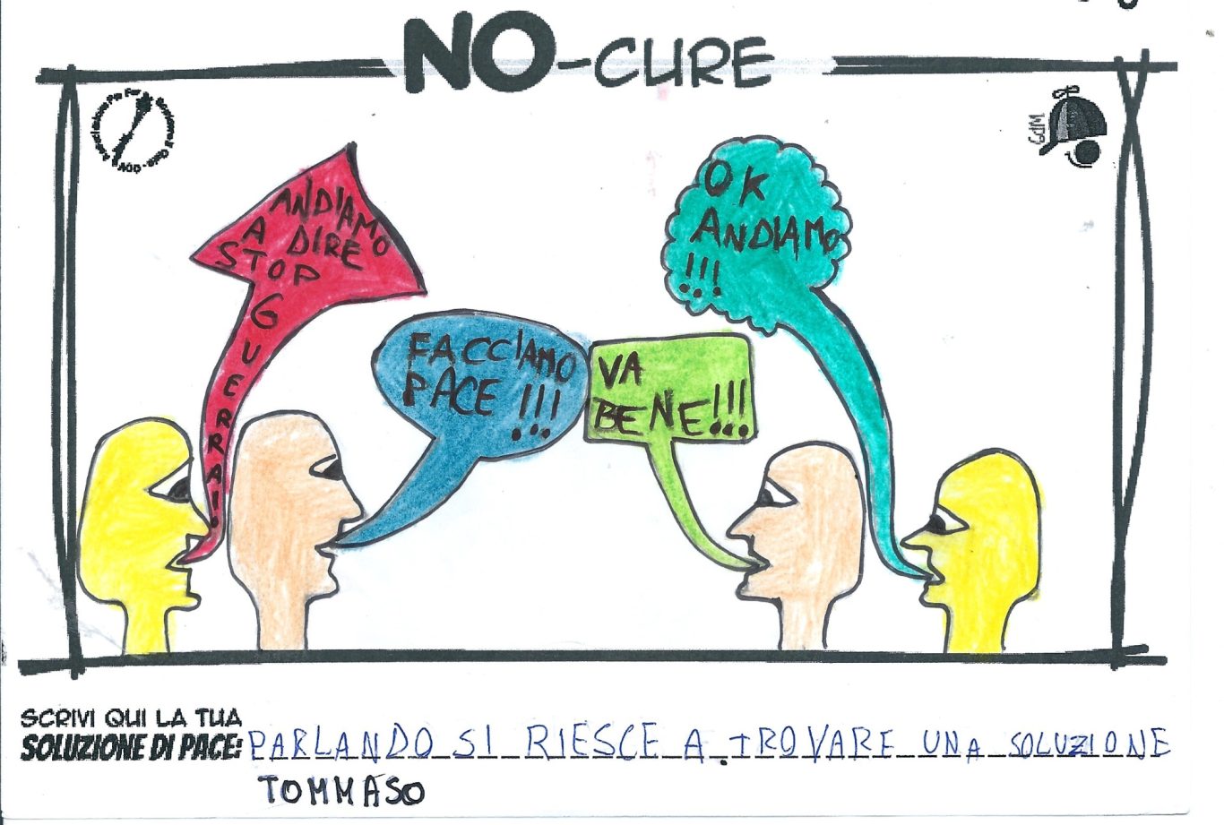L’opera di sensibilizzazione si si esprime concretamente con la creazione di un DISEGNO DELLA MERAVIGLIA che andrà ad aiutare una delle 12 fatiche. Allo stesso modo chiederemo a tutti i partecipanti di andare a scrivere una “Soluzione di Pace” che possa aiutare anch’essa una delle 12 fatiche dei Bambini della guerra.