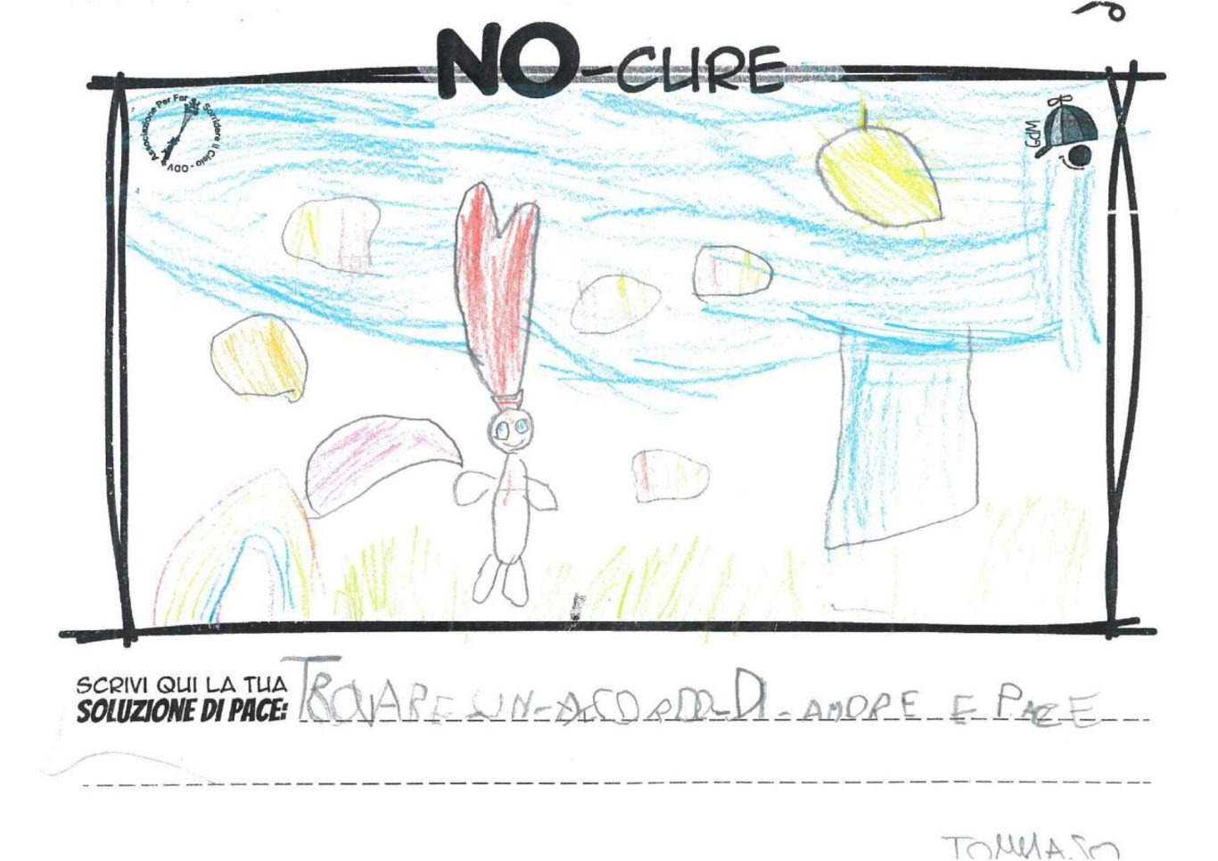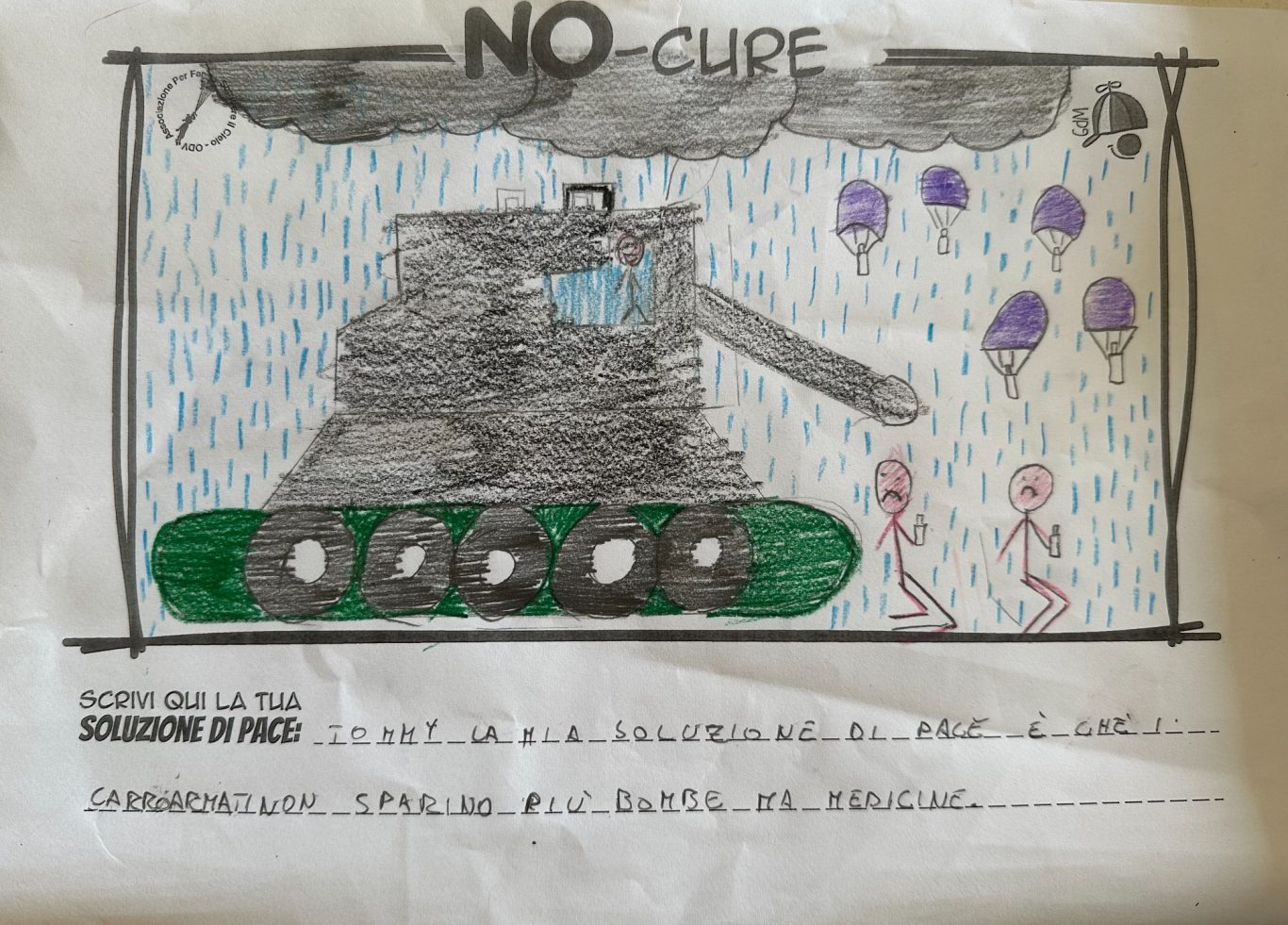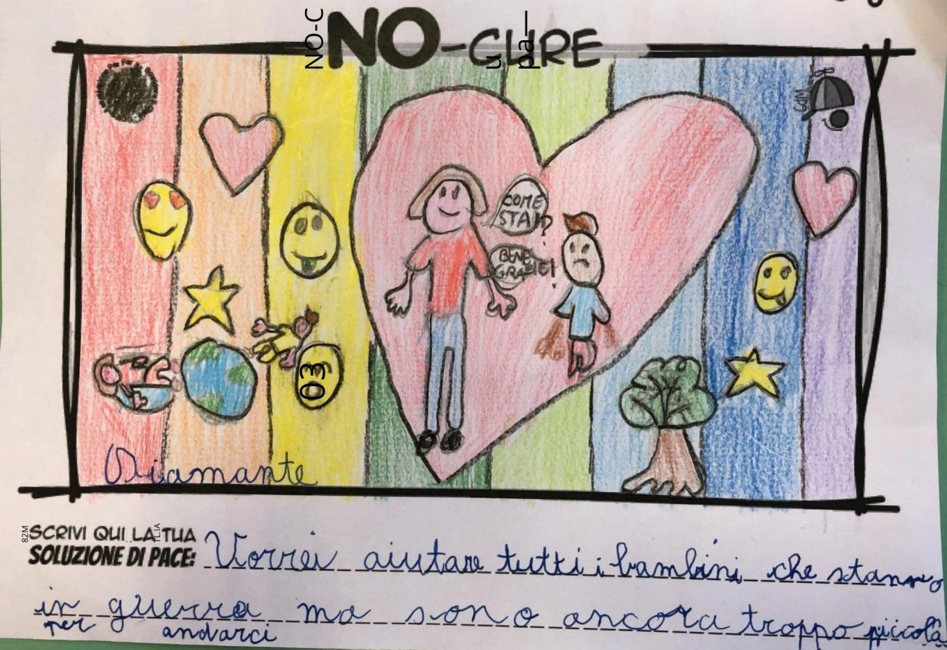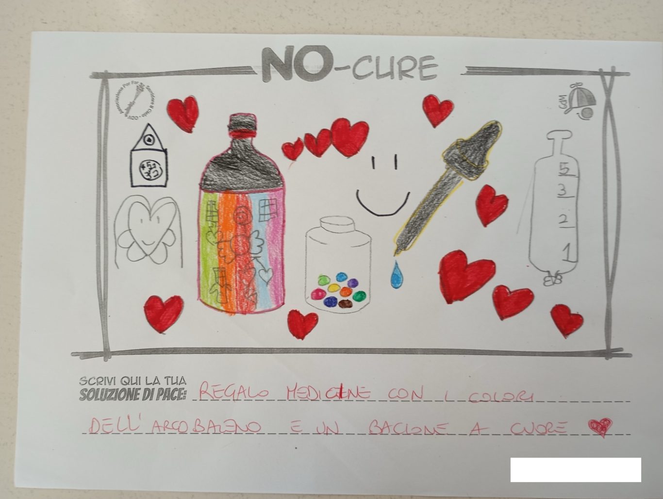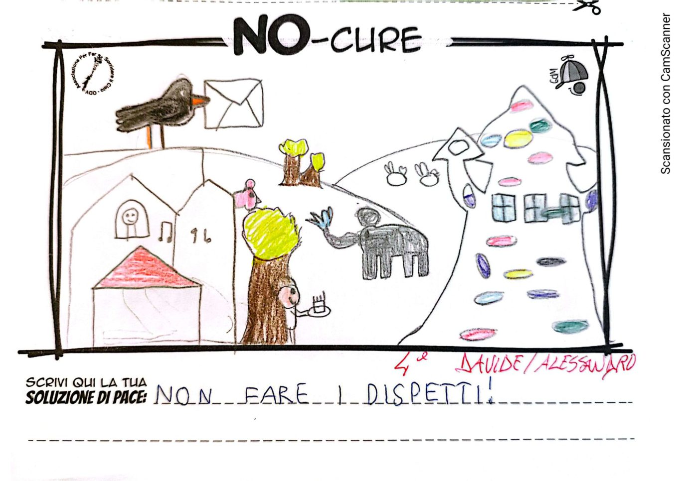 L’opera di sensibilizzazione si si esprime concretamente con la creazione di un DISEGNO DELLA MERAVIGLIA che andrà ad aiutare una delle 12 fatiche. Allo stesso modo chiederemo a tutti i partecipanti di andare a scrivere una “Soluzione di Pace” che possa aiutare anch’essa una delle 12 fatiche dei Bambini della guerra.