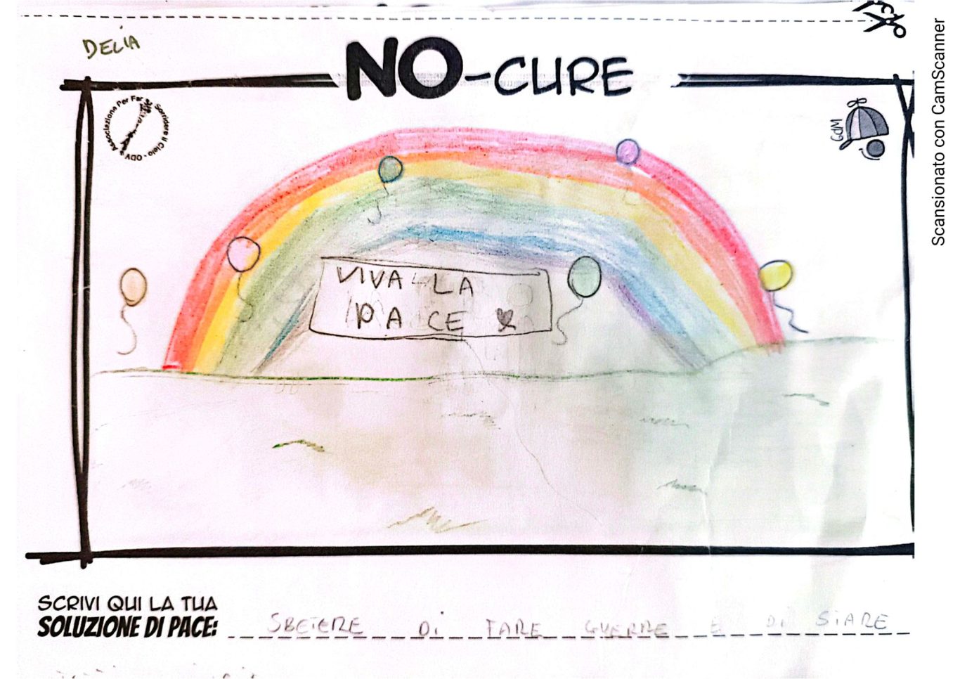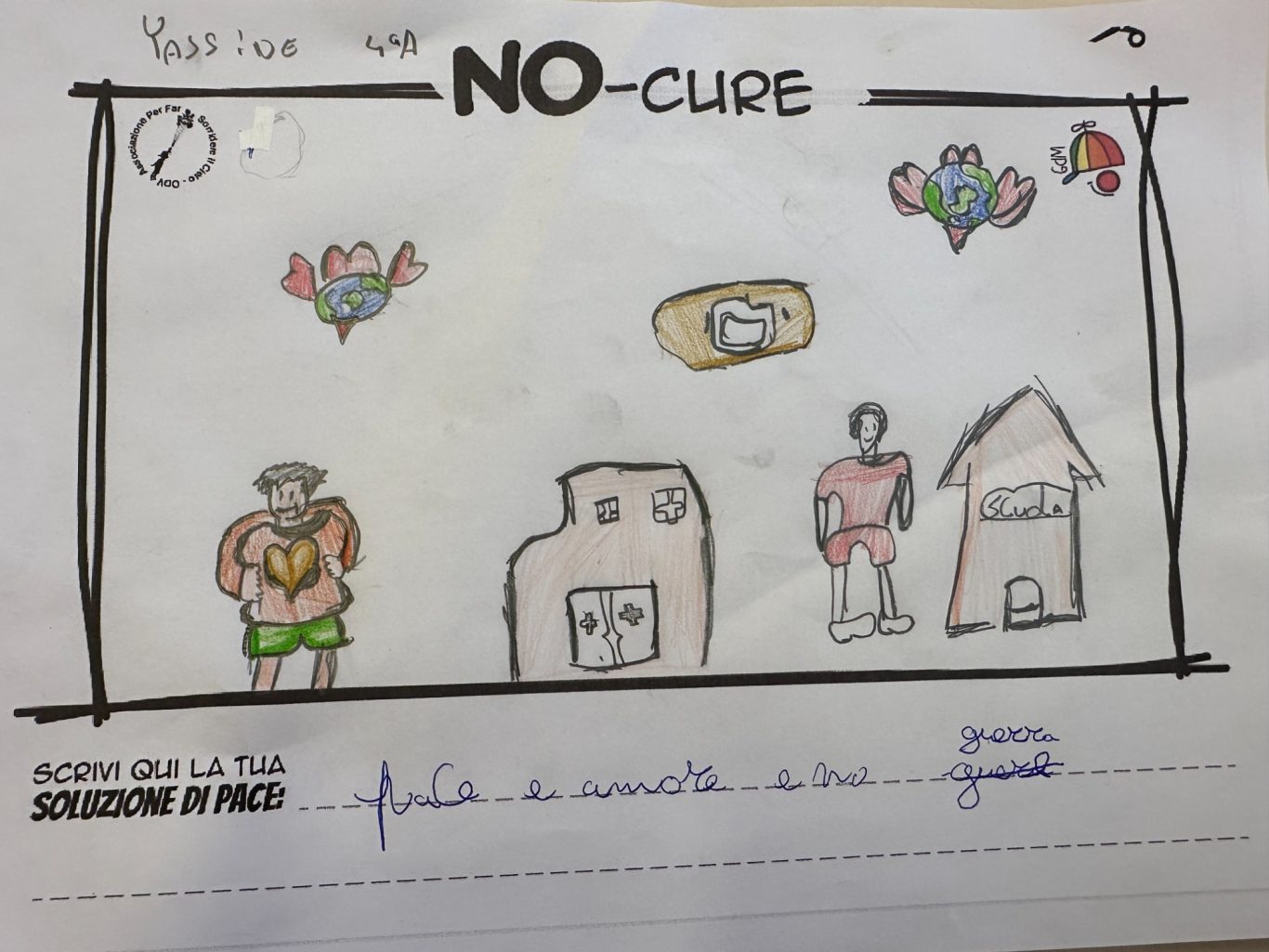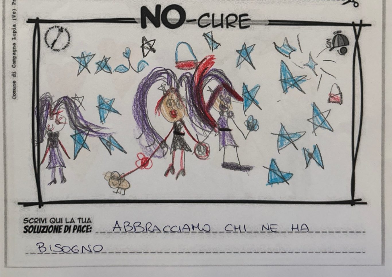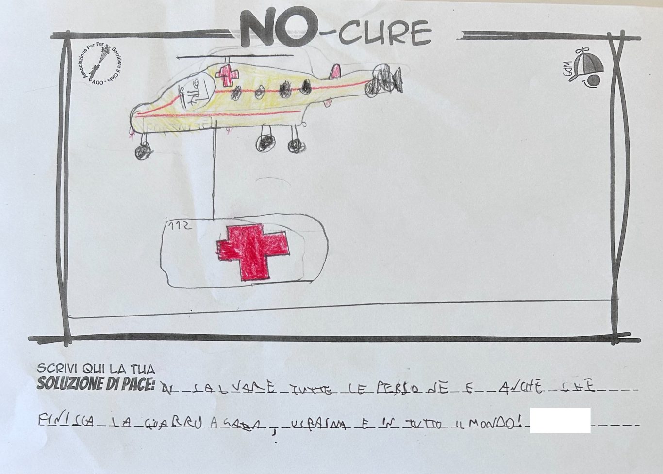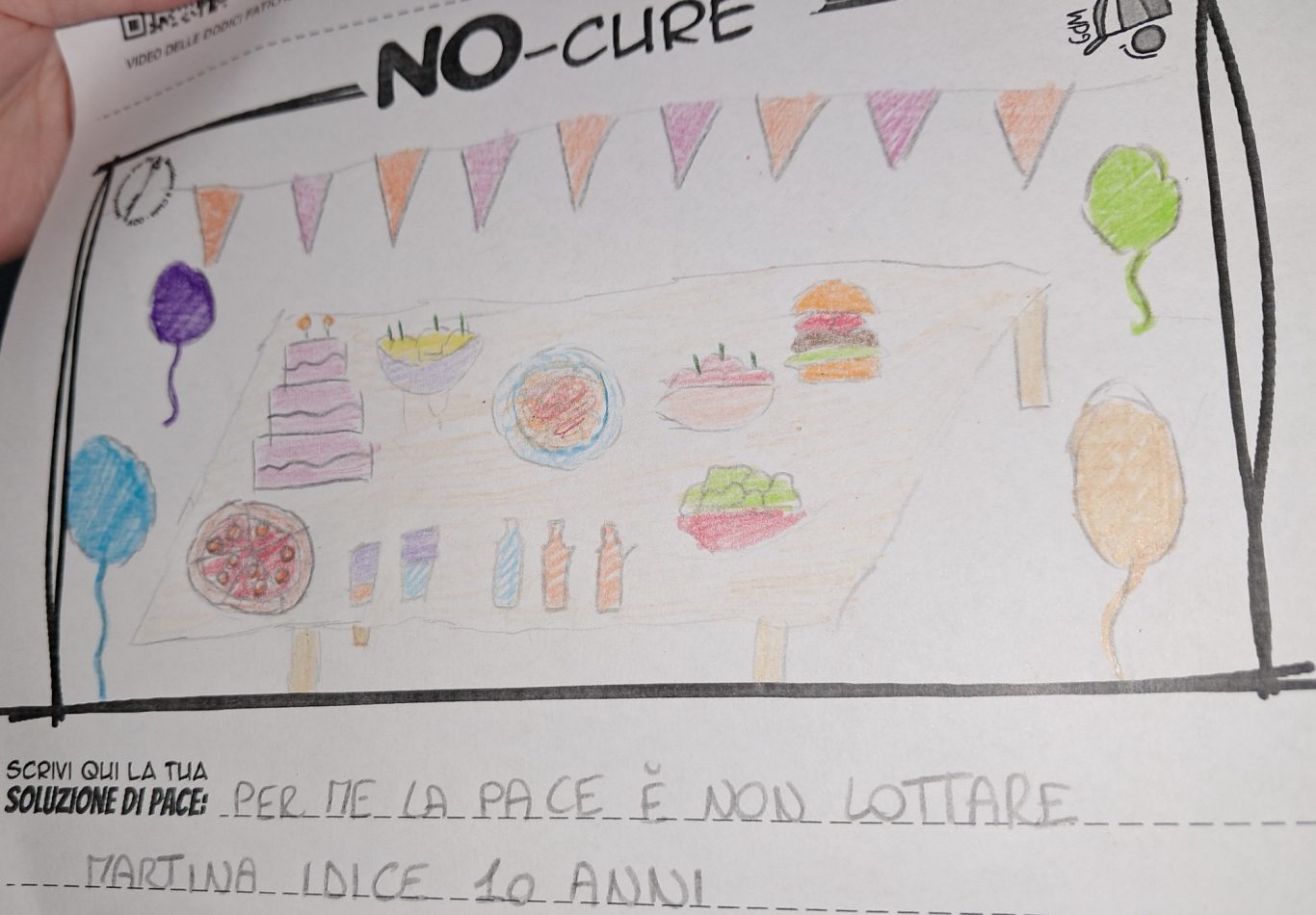 L’opera di sensibilizzazione si si esprime concretamente con la creazione di un DISEGNO DELLA MERAVIGLIA che andrà ad aiutare una delle 12 fatiche. Allo stesso modo chiederemo a tutti i partecipanti di andare a scrivere una “Soluzione di Pace” che possa aiutare anch’essa una delle 12 fatiche dei Bambini della guerra.