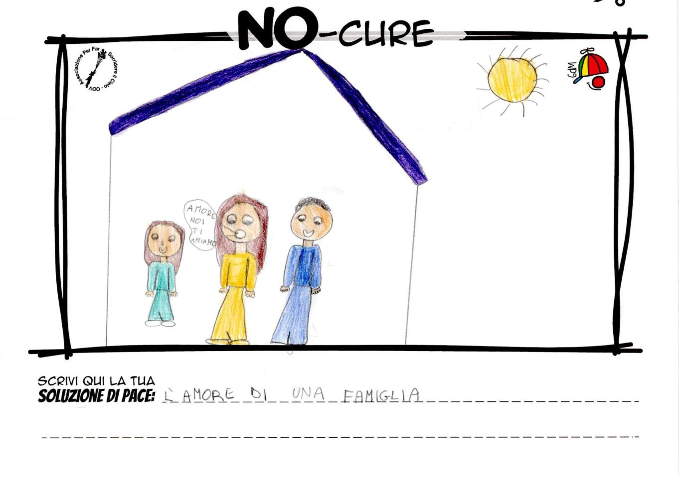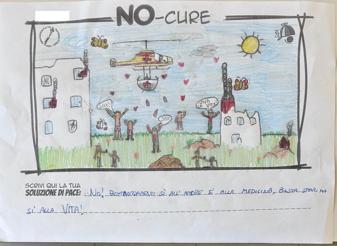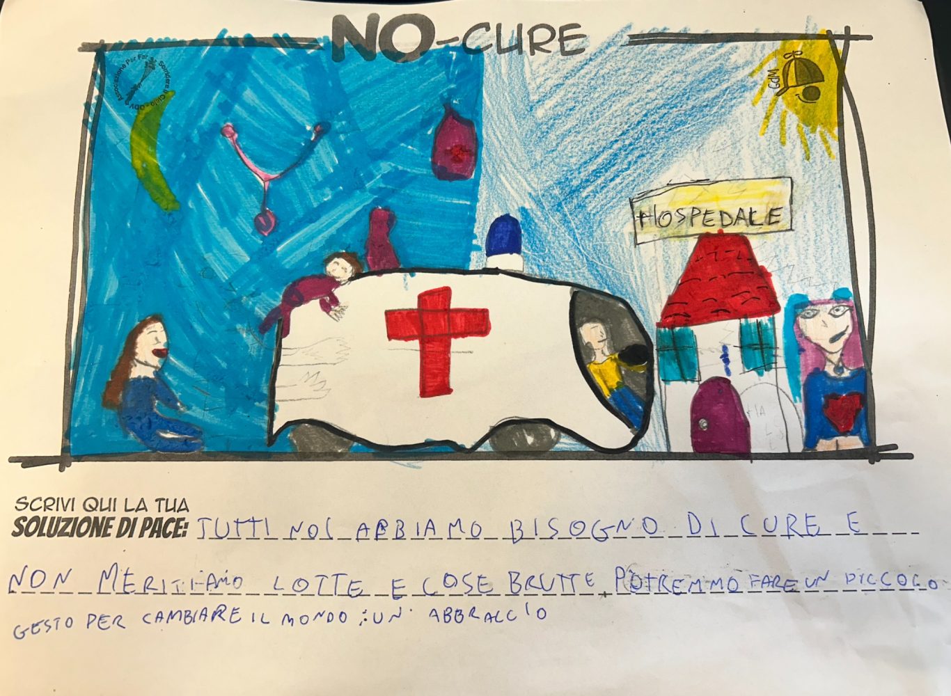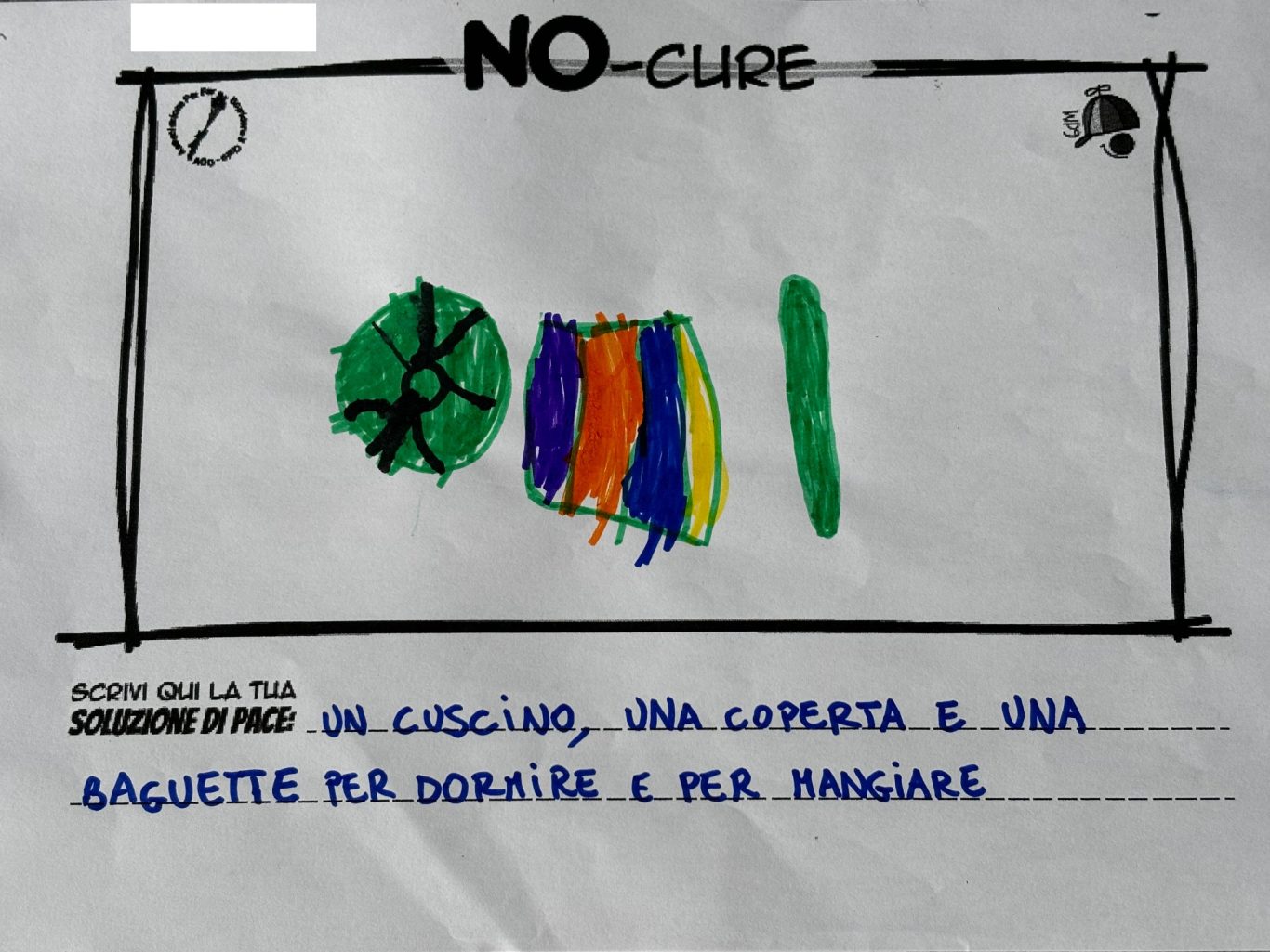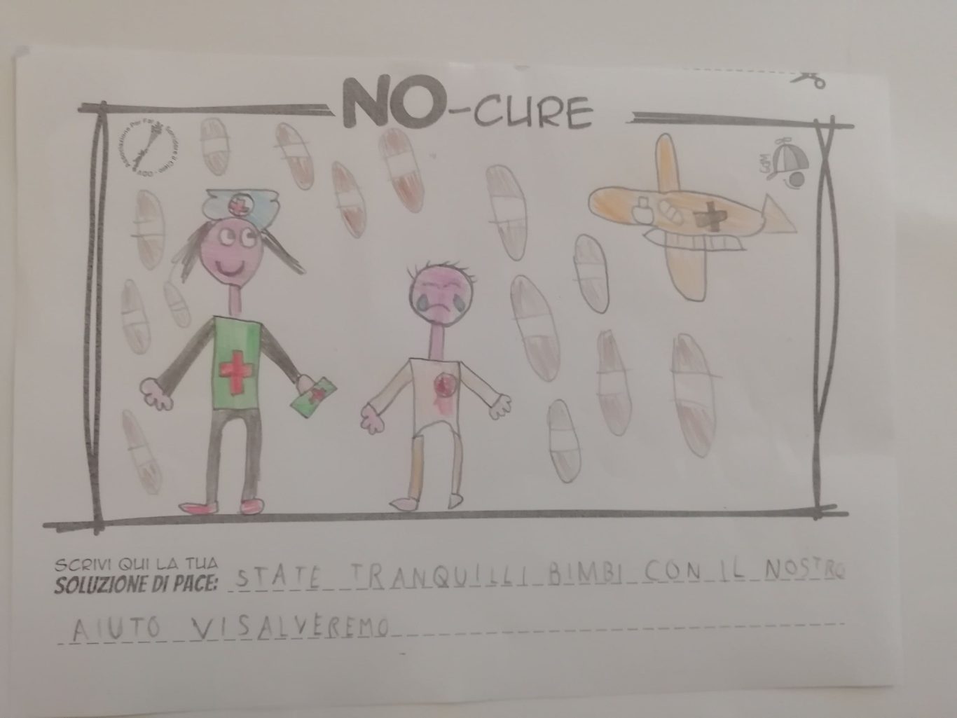 L’opera di sensibilizzazione si si esprime concretamente con la creazione di un DISEGNO DELLA MERAVIGLIA che andrà ad aiutare una delle 12 fatiche. Allo stesso modo chiederemo a tutti i partecipanti di andare a scrivere una “Soluzione di Pace” che possa aiutare anch’essa una delle 12 fatiche dei Bambini della guerra.
