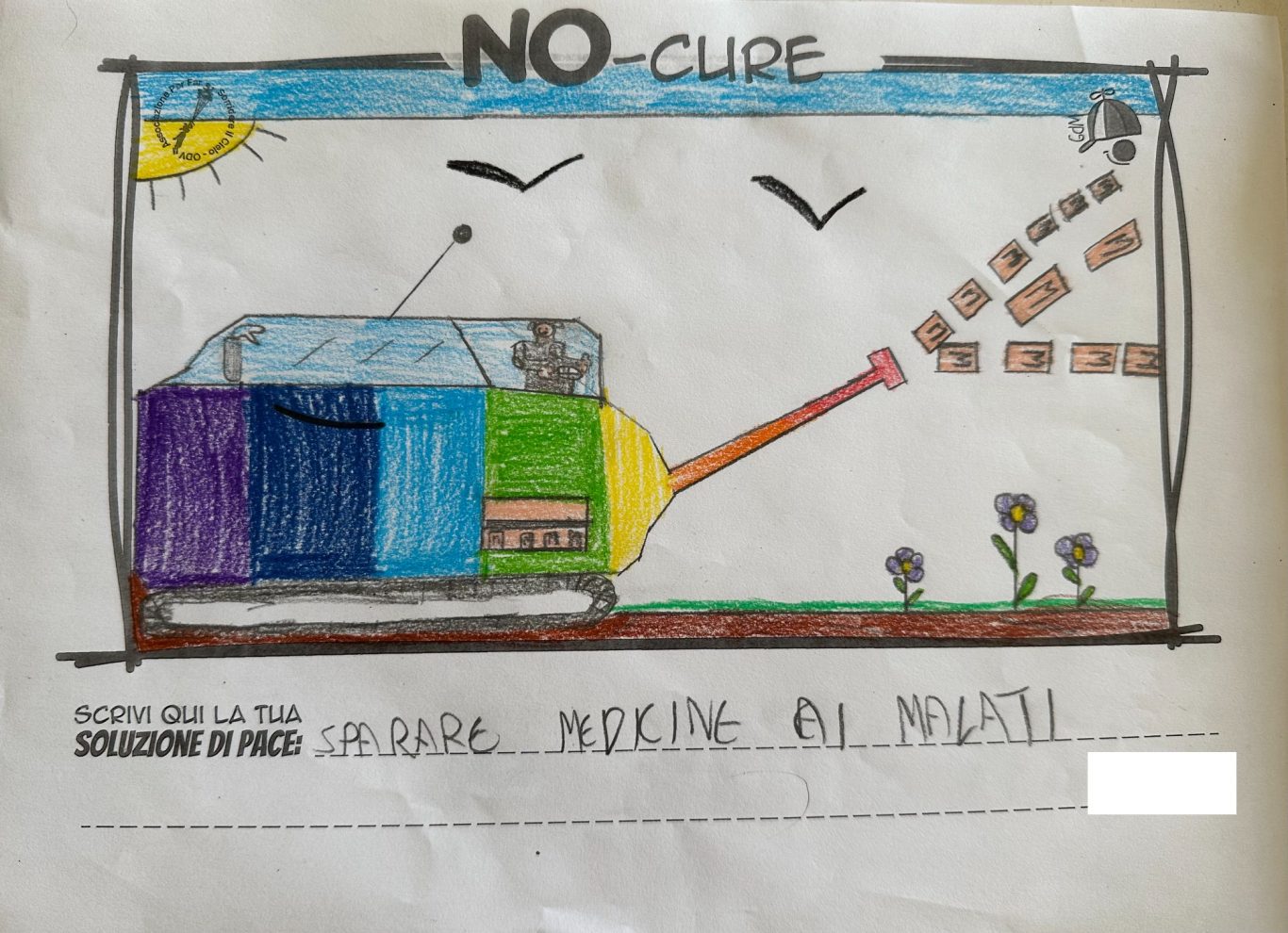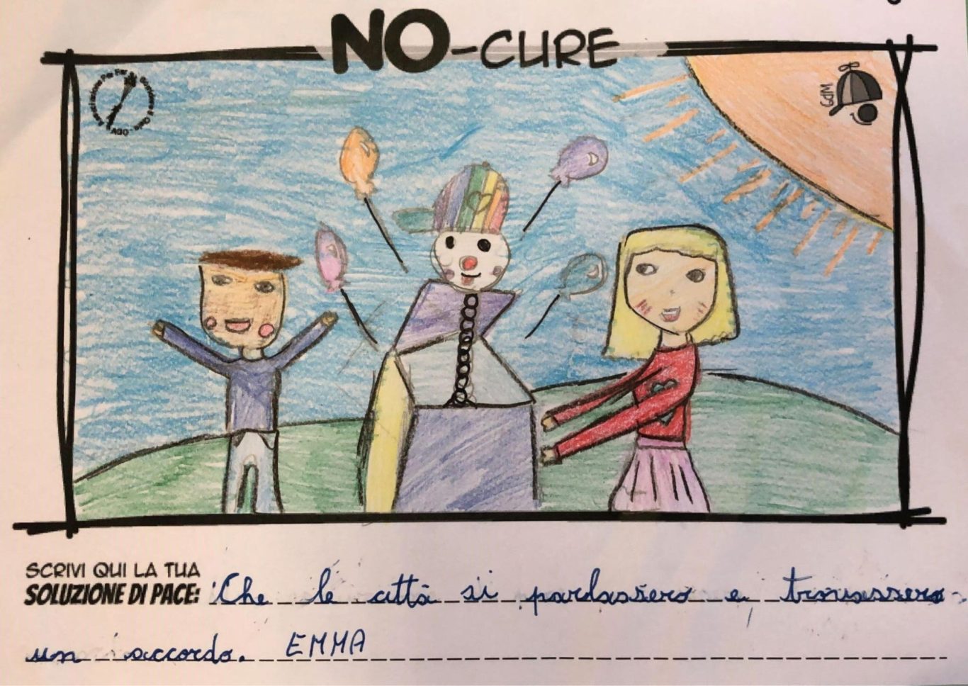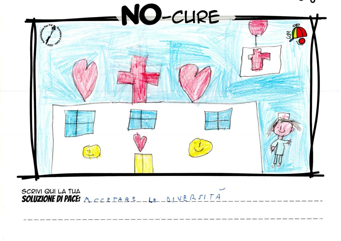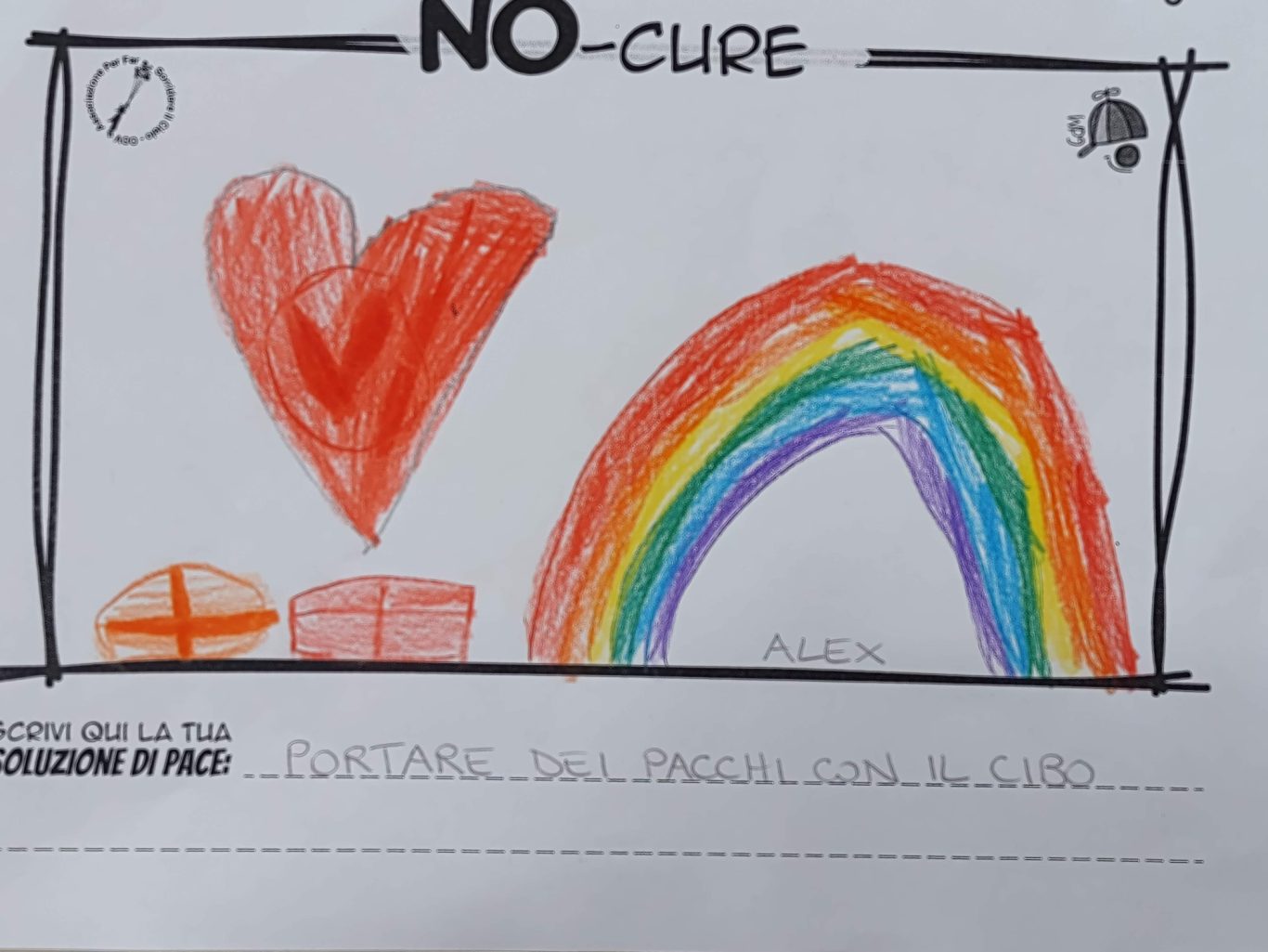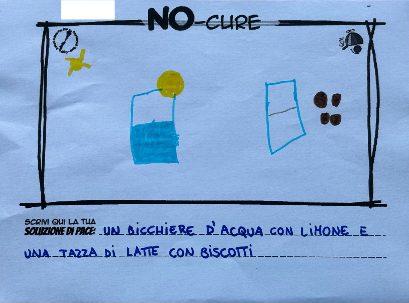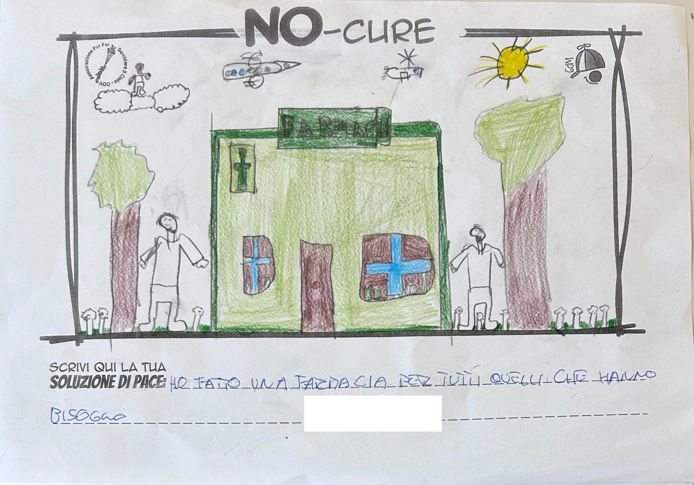 L’opera di sensibilizzazione si si esprime concretamente con la creazione di un DISEGNO DELLA MERAVIGLIA che andrà ad aiutare una delle 12 fatiche. Allo stesso modo chiederemo a tutti i partecipanti di andare a scrivere una “Soluzione di Pace” che possa aiutare anch’essa una delle 12 fatiche dei Bambini della guerra.